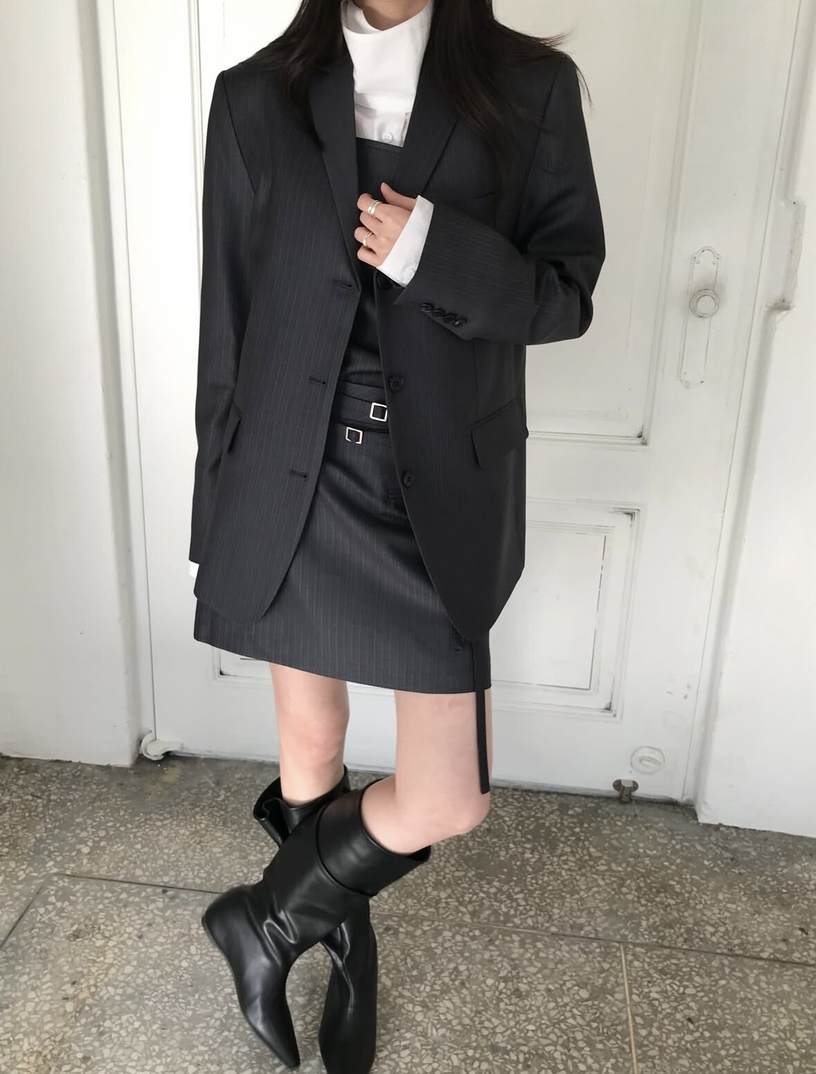 charcoal-darcy stripe jk+bustier 함께 착용