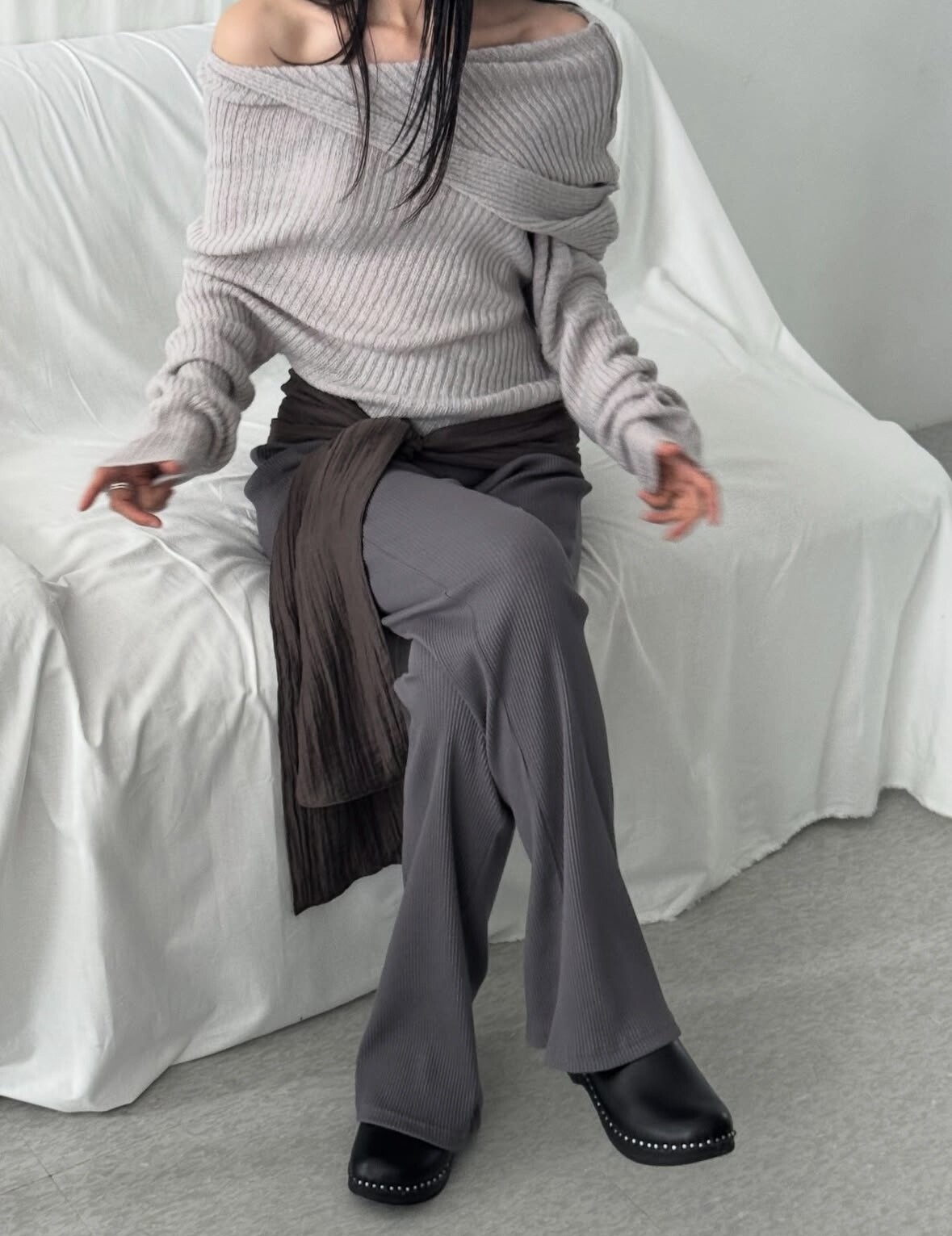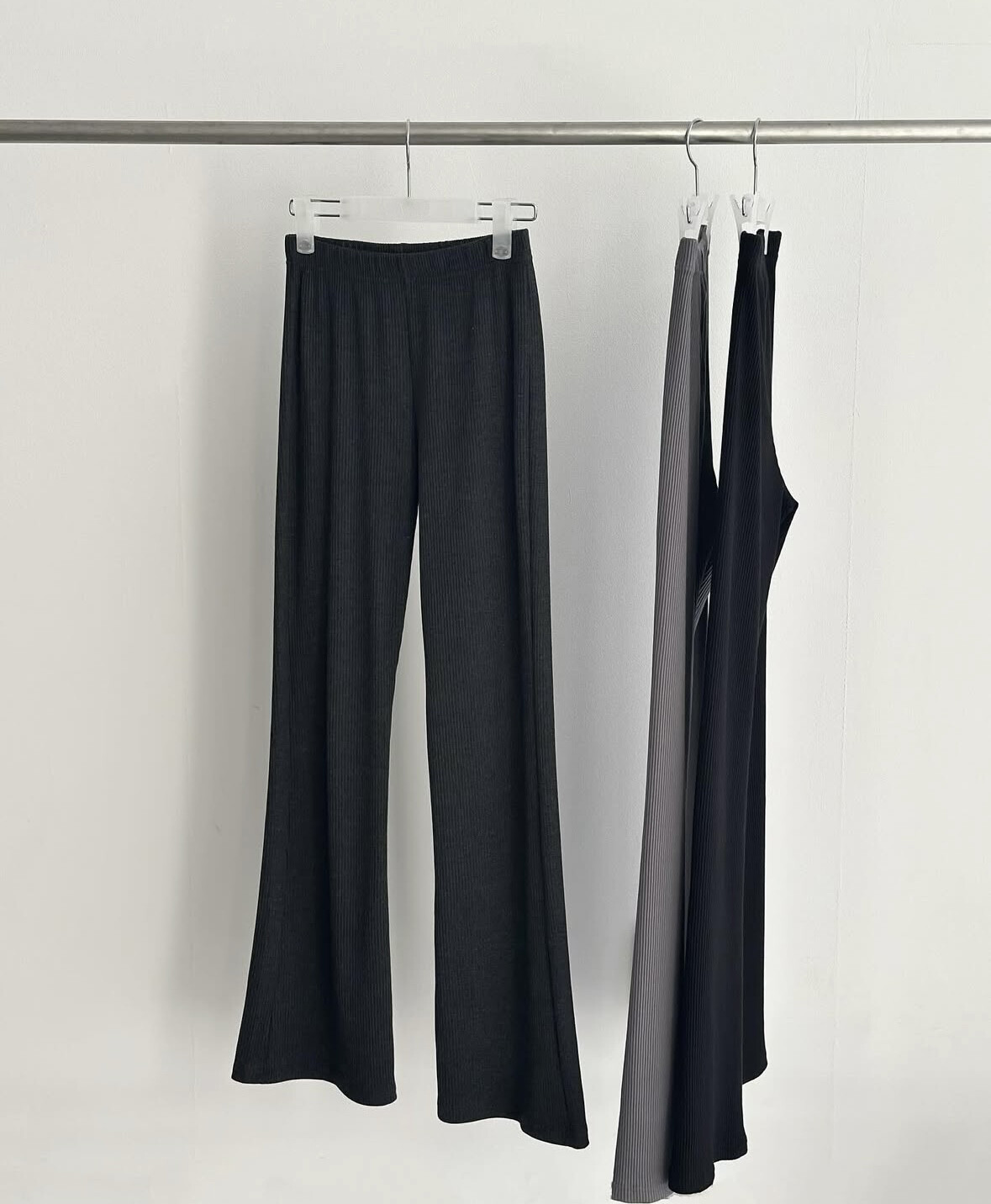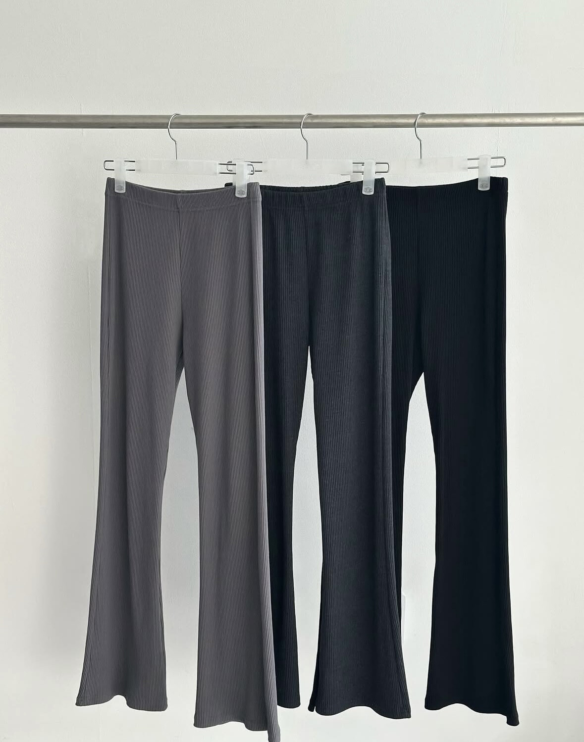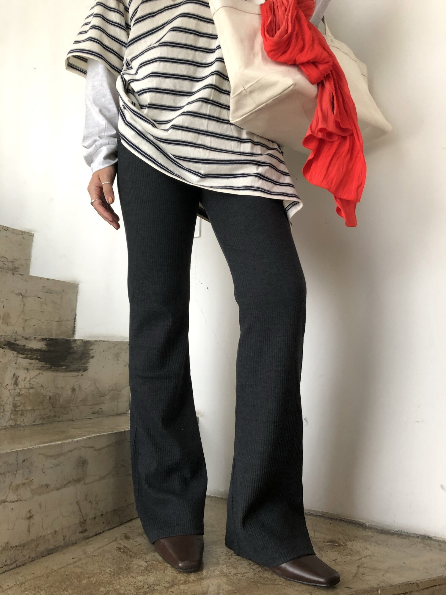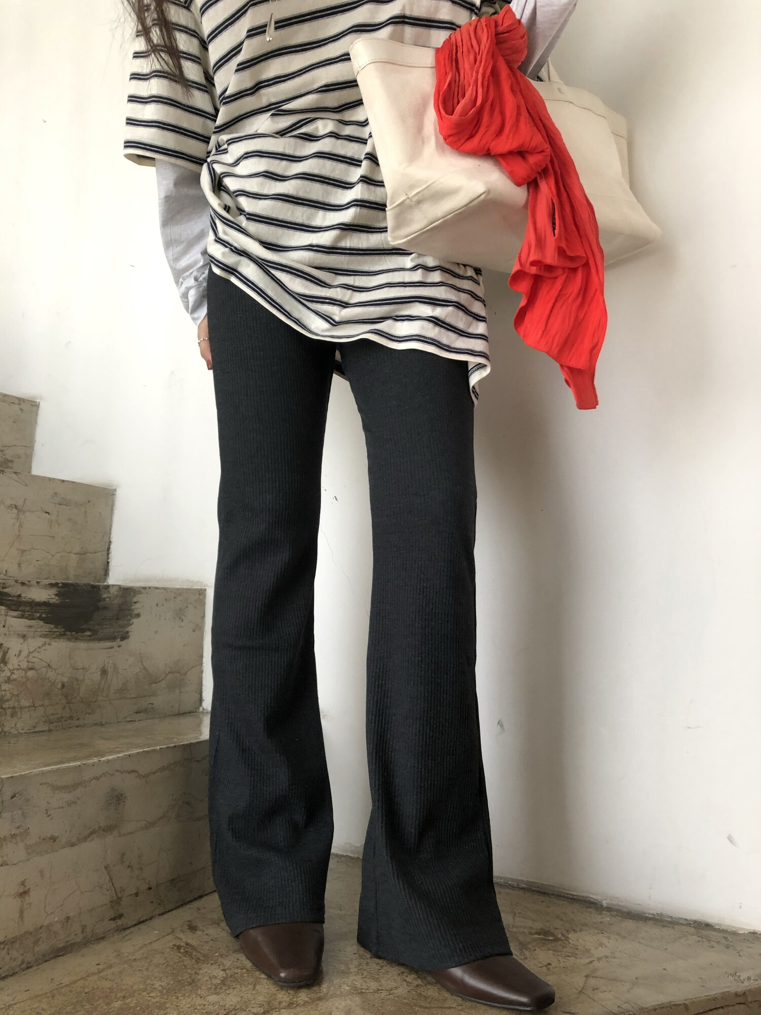 허벅지도 여유있게 나와 딱 붙지 않아 슬림하게 연출해주는 골지 패턴의 부츠컷입니다.