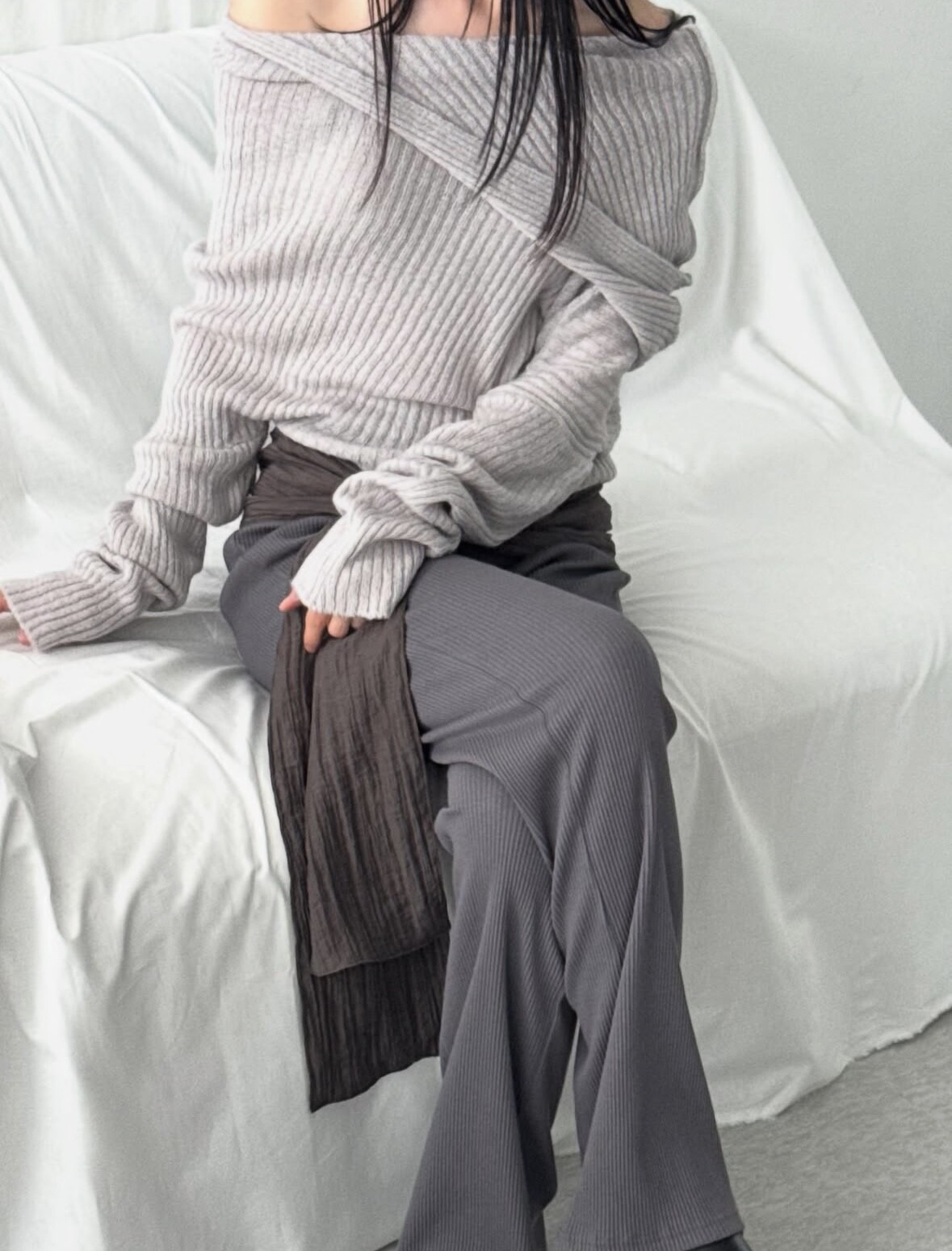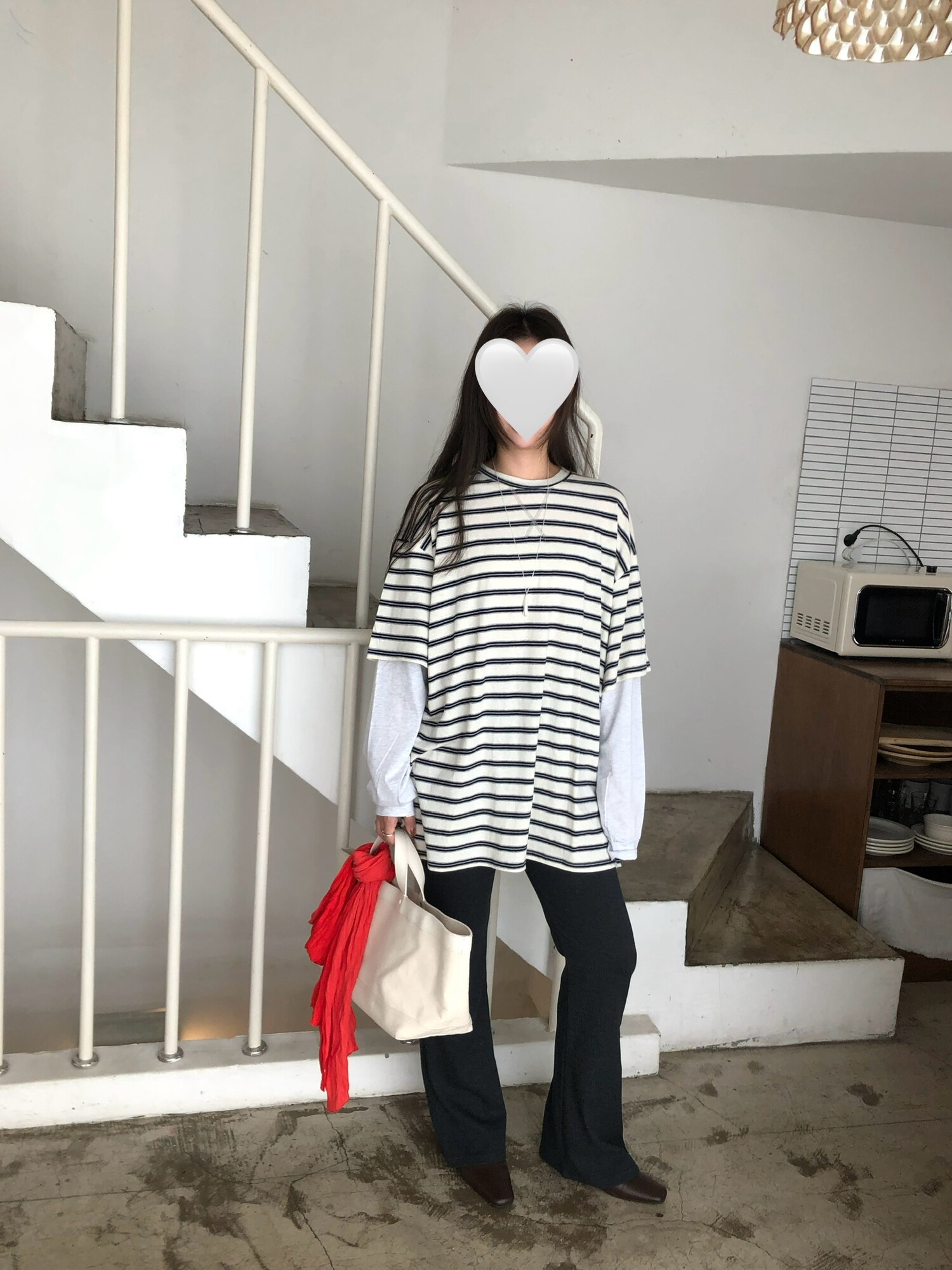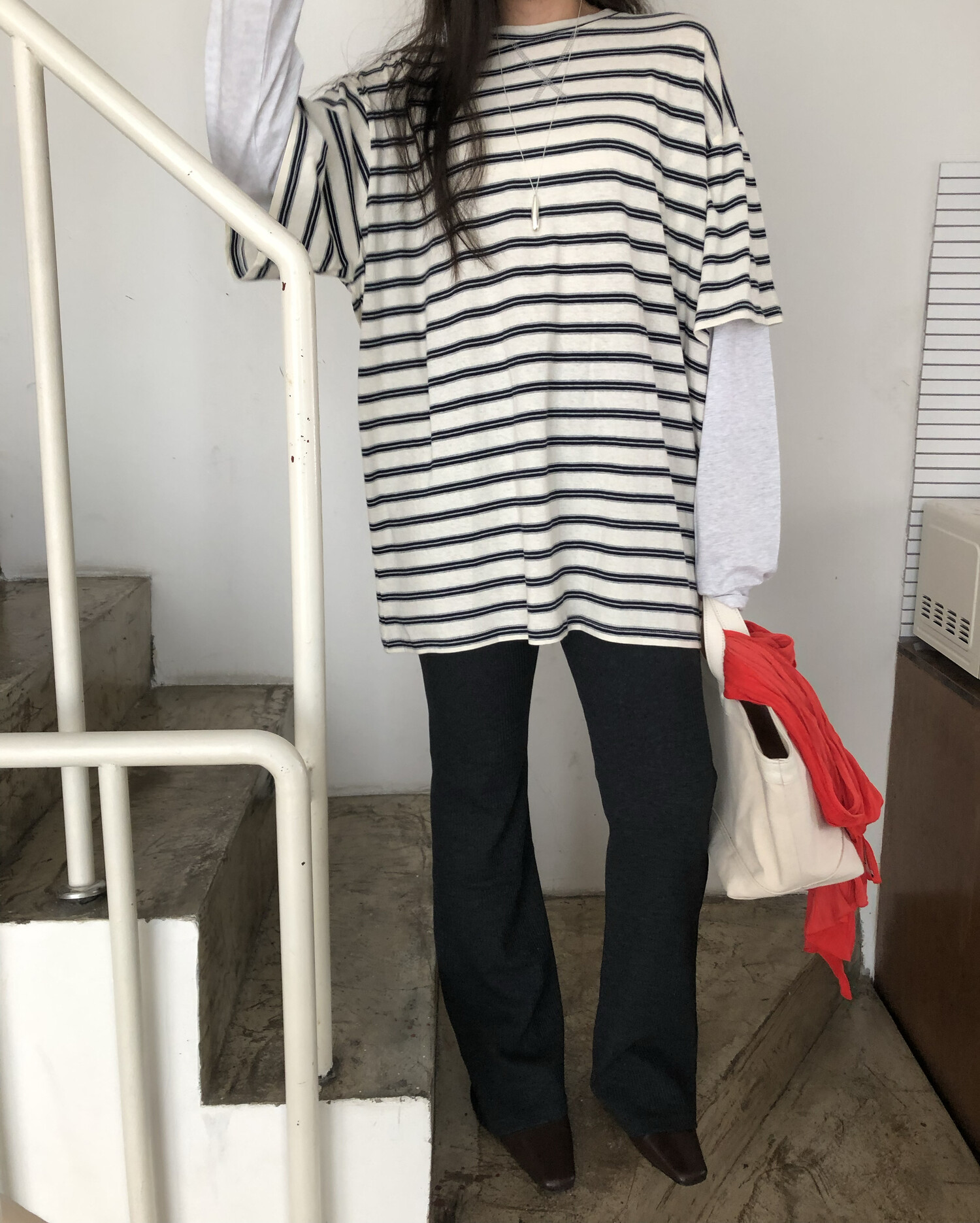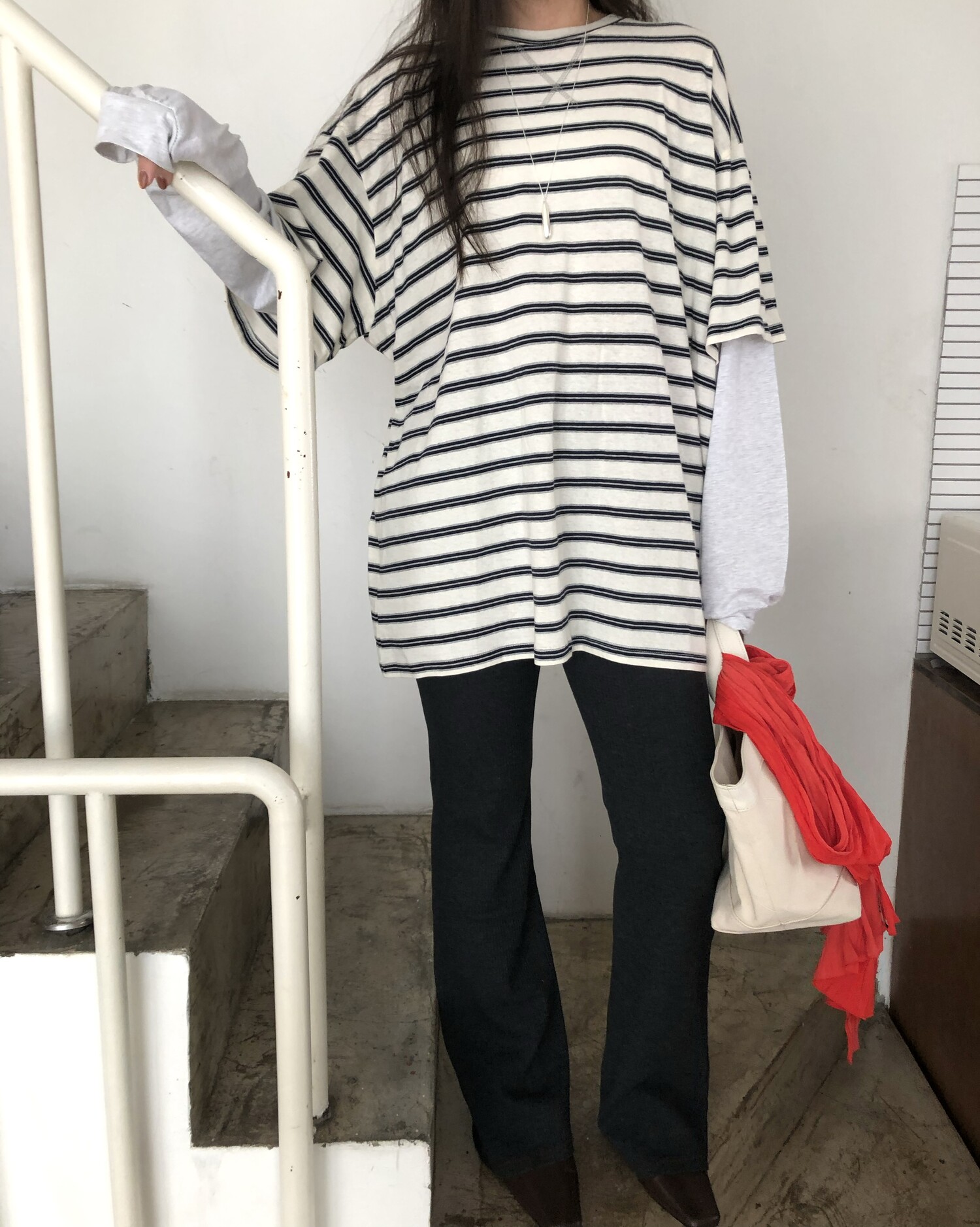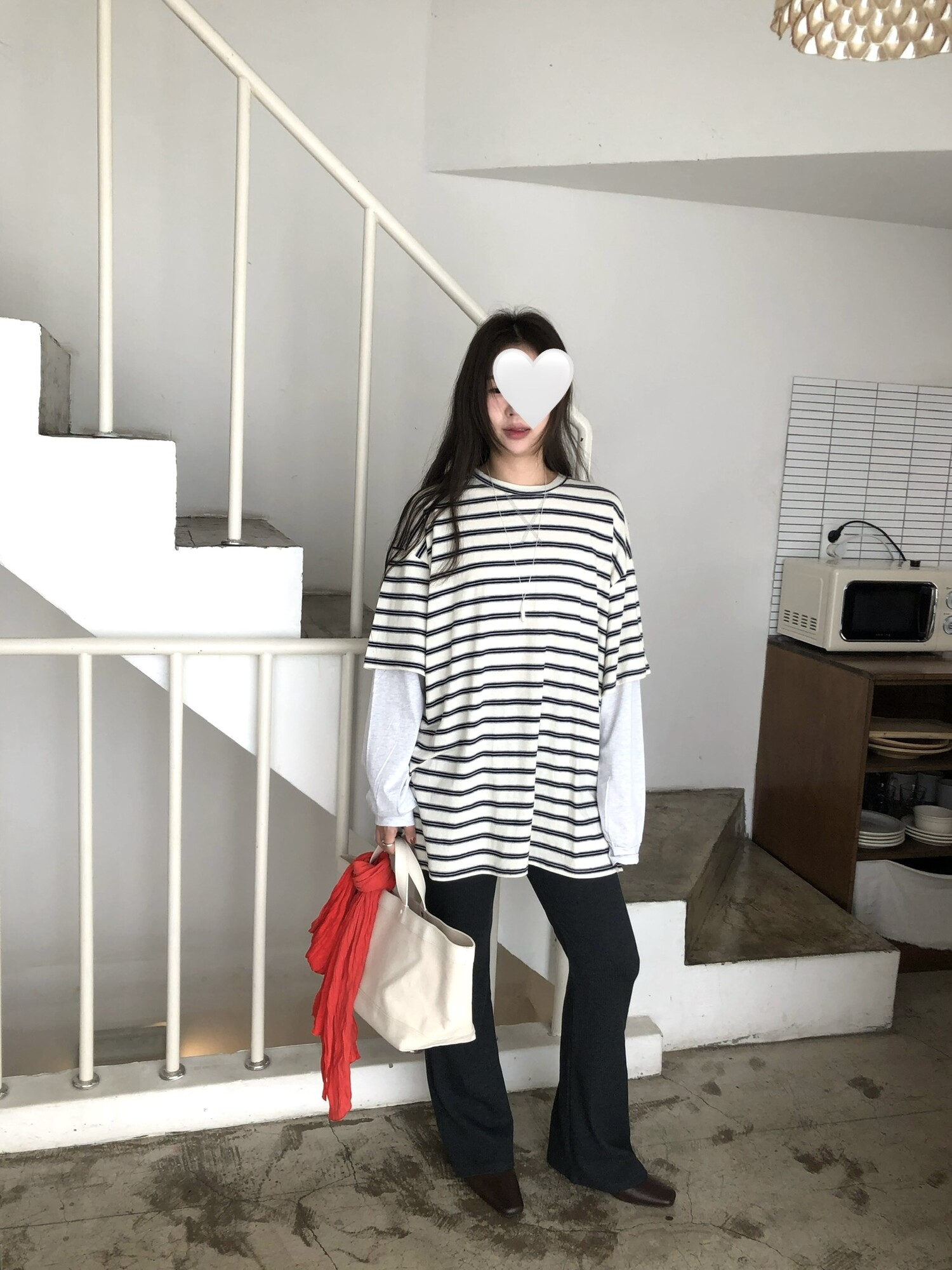 허벅지도 여유있게 나와 딱 붙지 않아 슬림하게 연출해주는 골지 패턴의 부츠컷입니다.