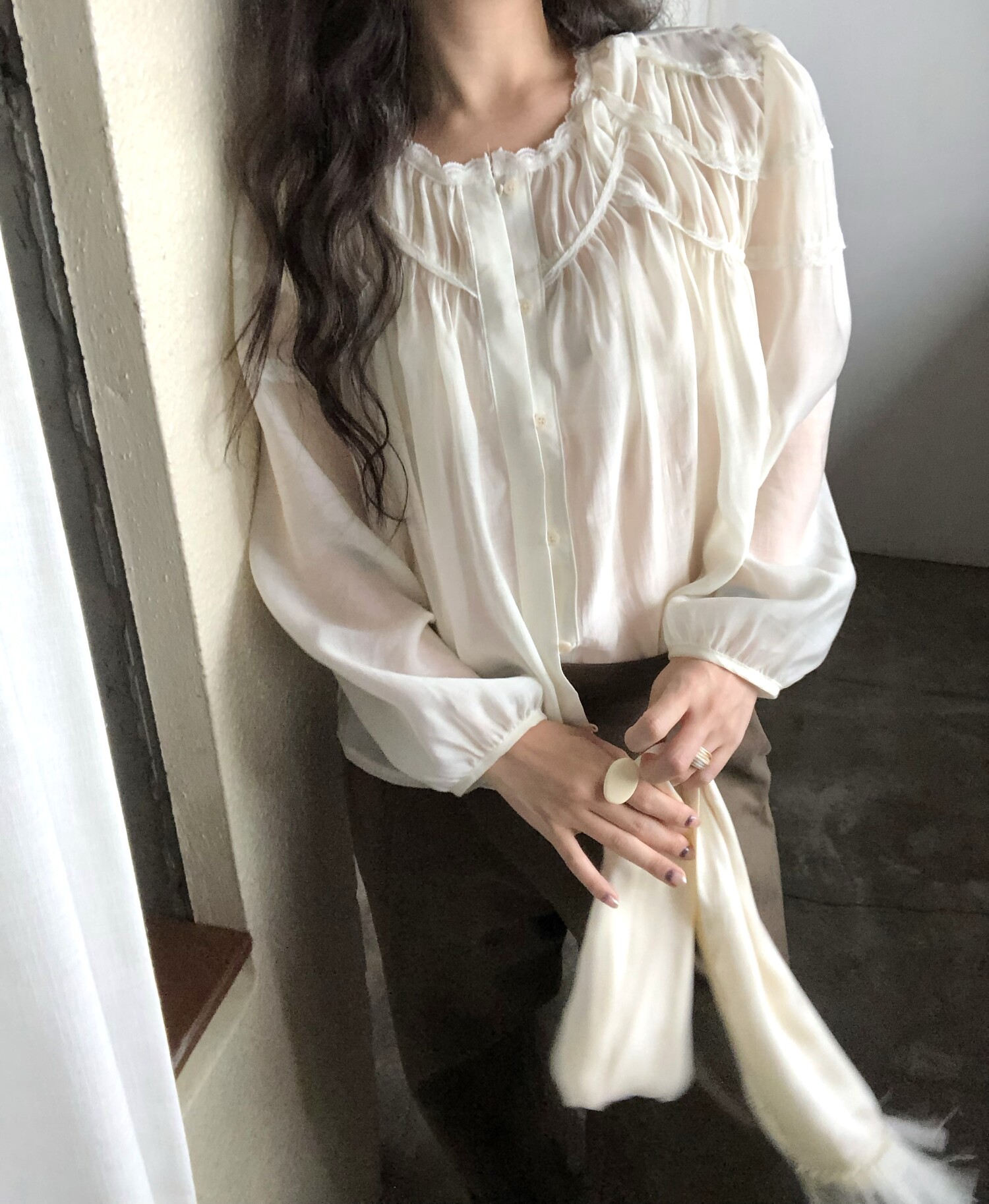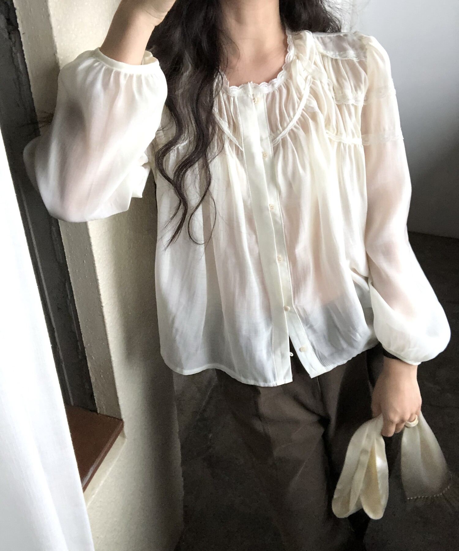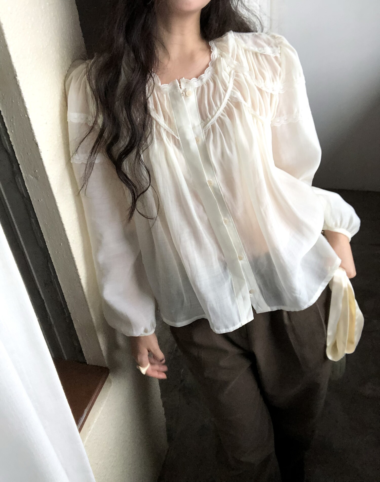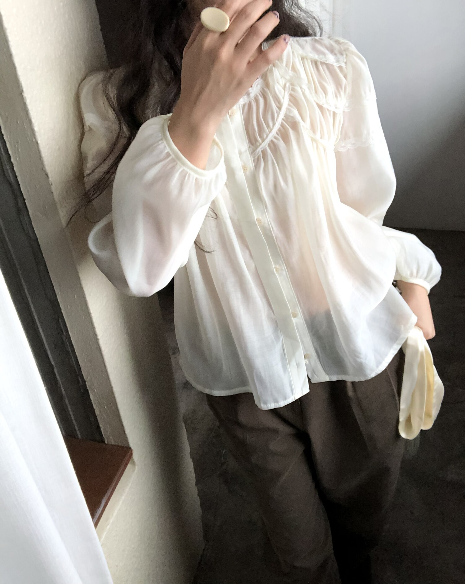 -샤랄라st 자려한 블라우스에요 💛 유럽 빈티지숍 어디선가 볼법한, 그렇지만 흔치않은 디자인이에요,,!