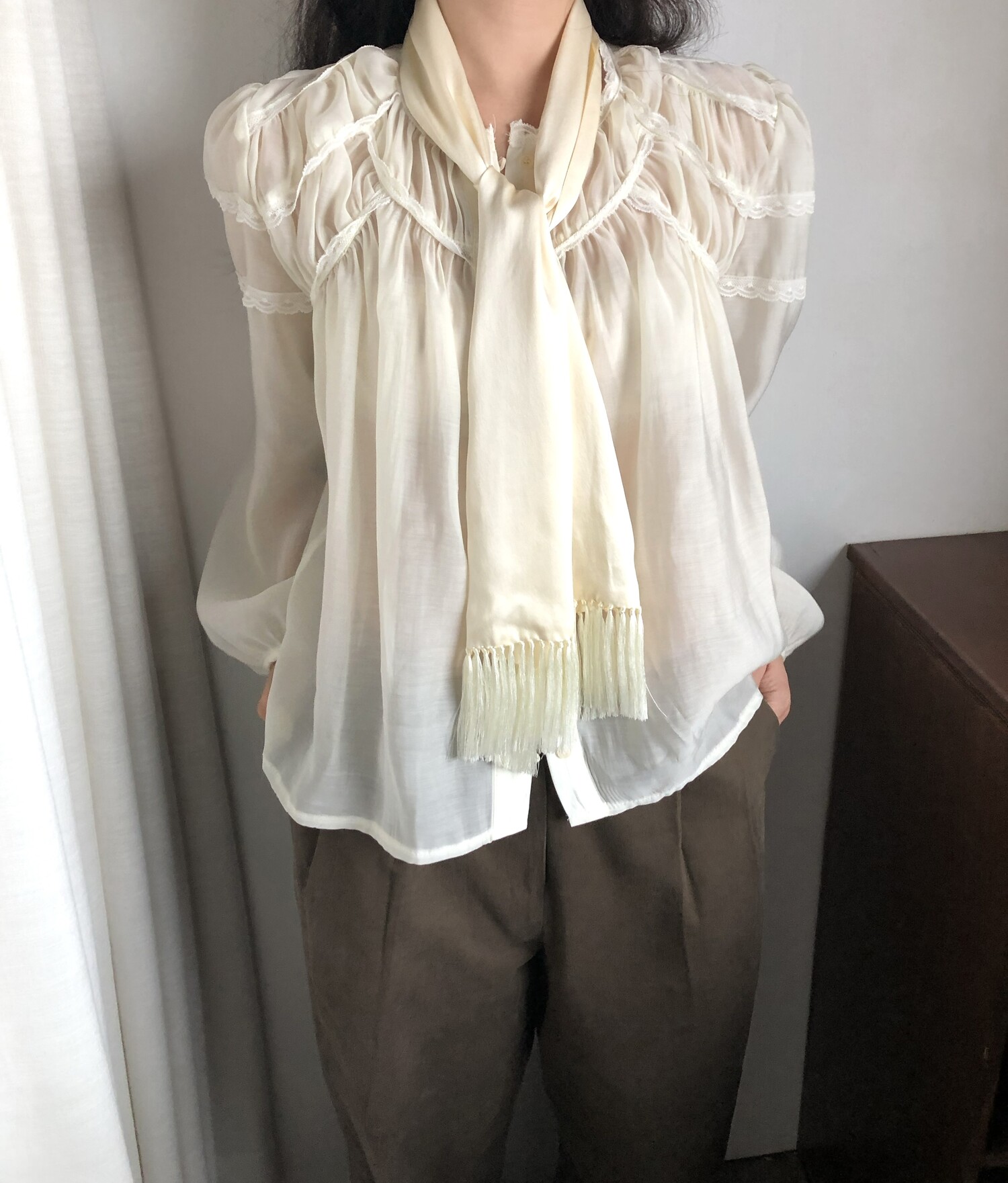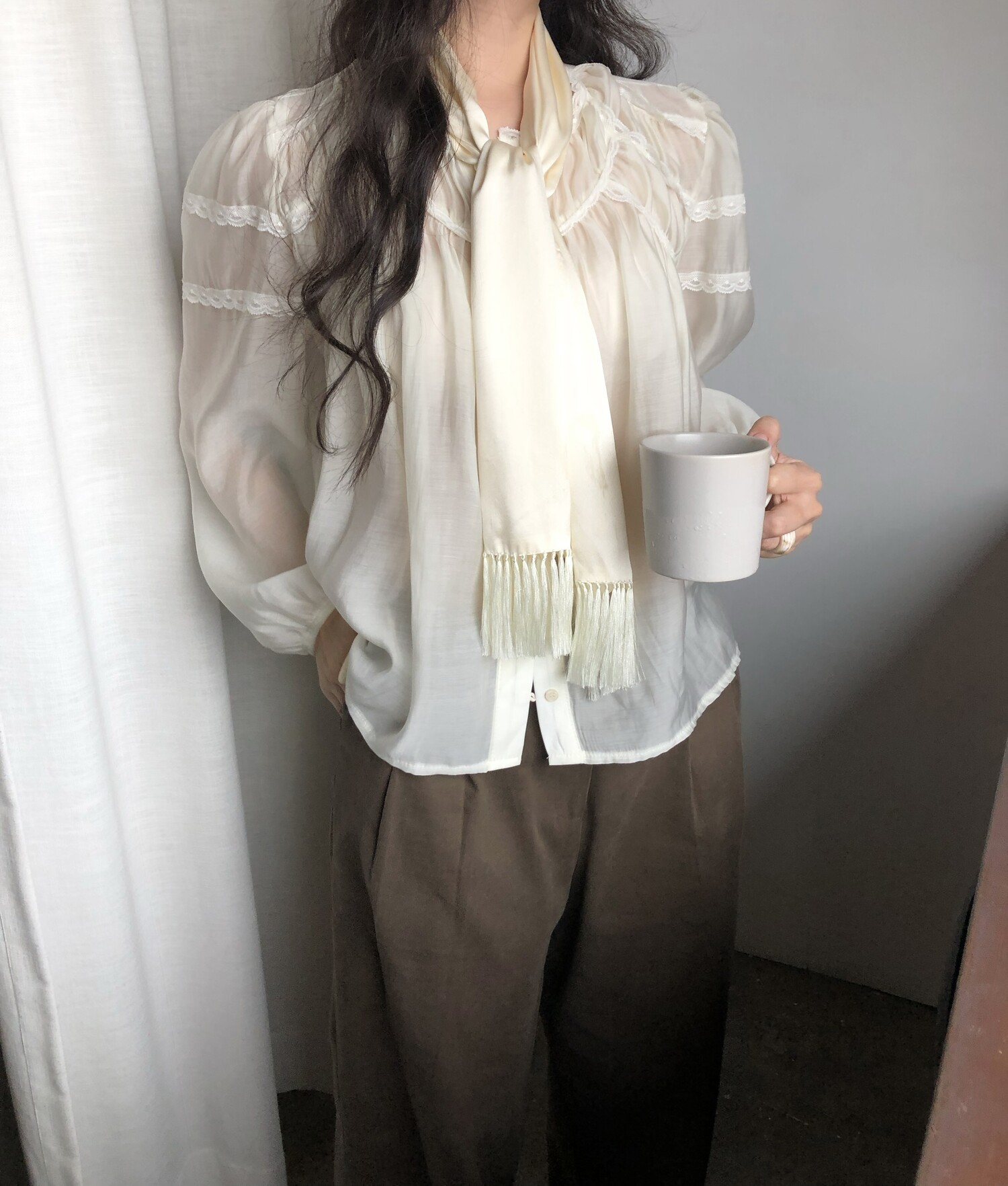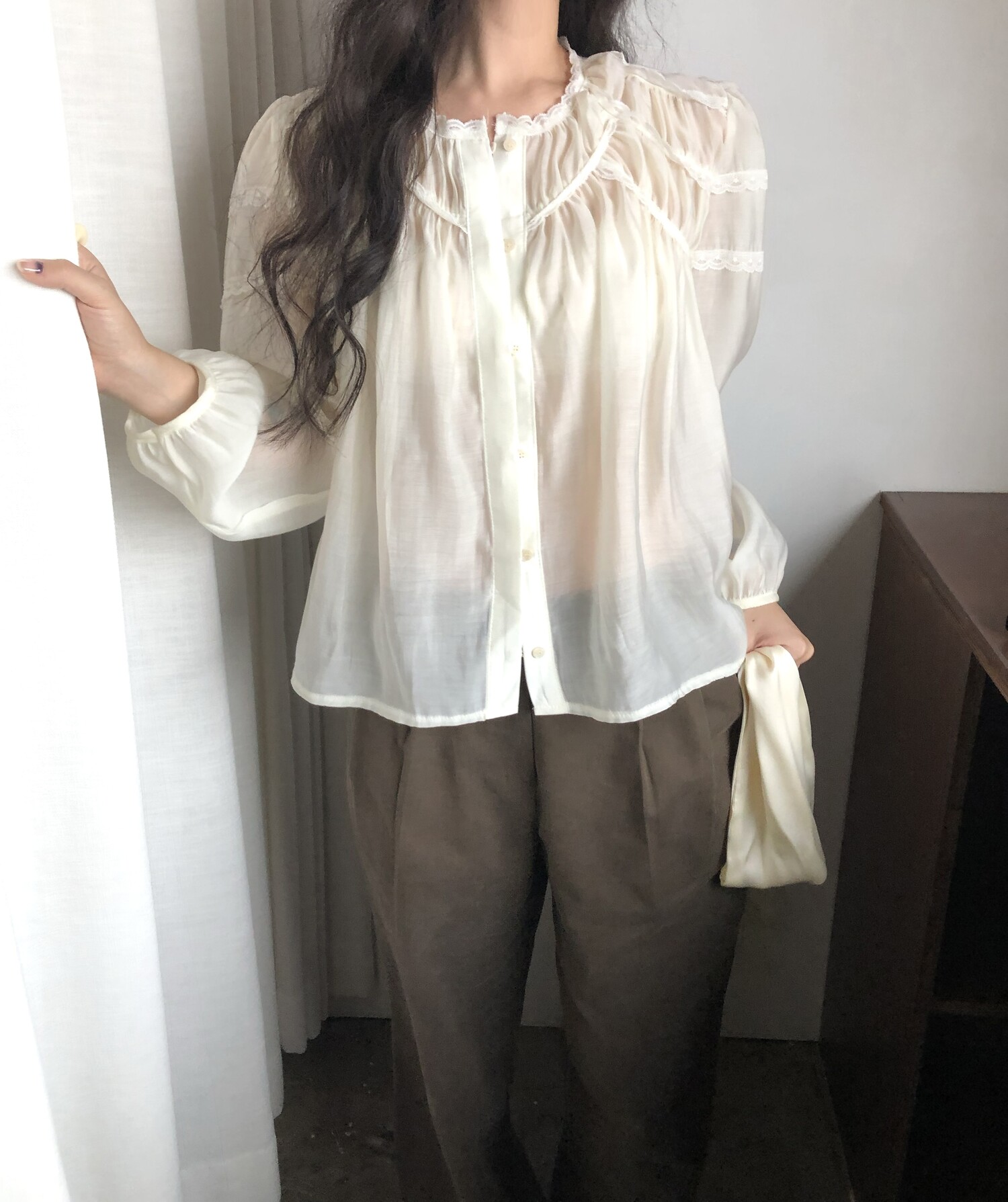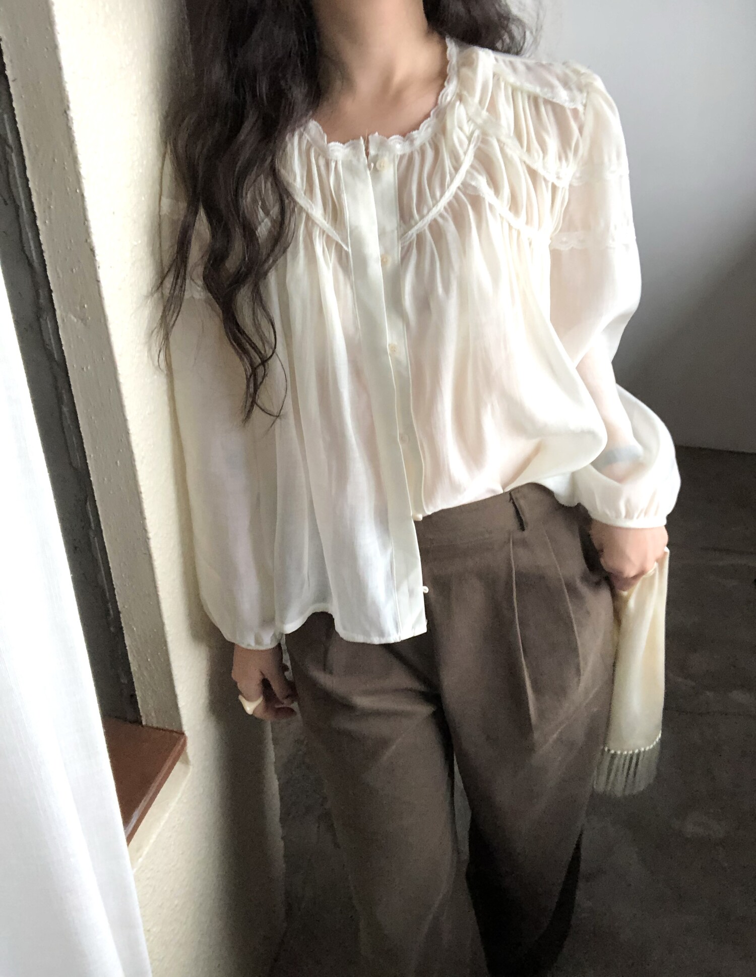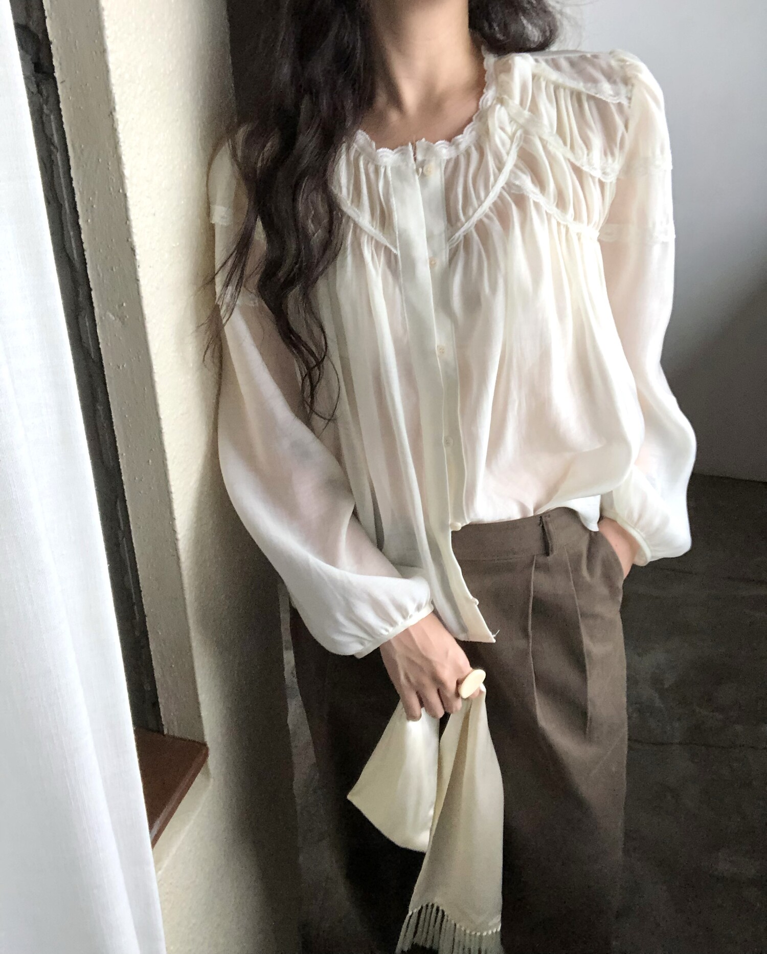 -샤랄라st 자려한 블라우스에요 💛 유럽 빈티지숍 어디선가 볼법한, 그렇지만 흔치않은 디자인이에요,,!