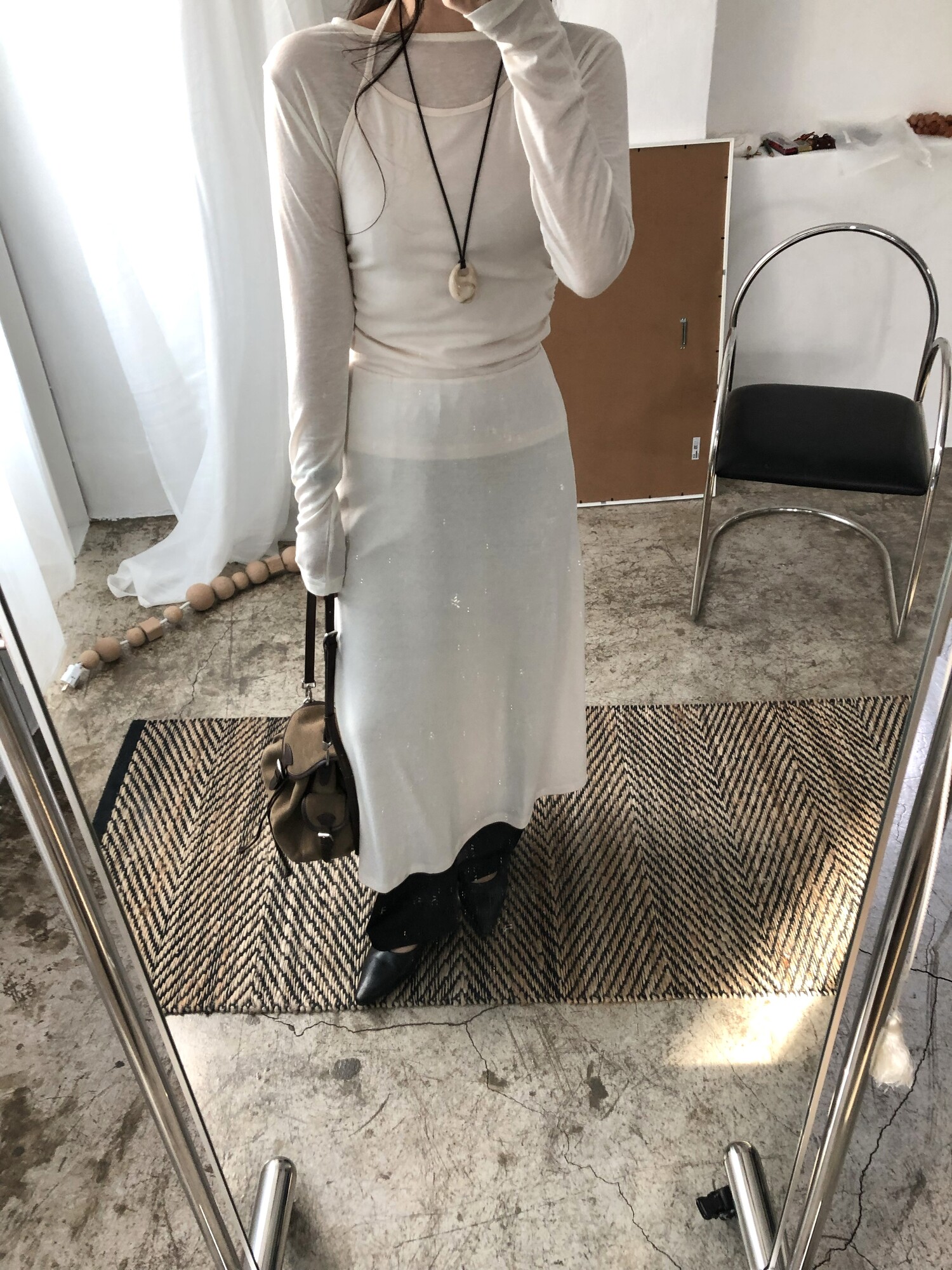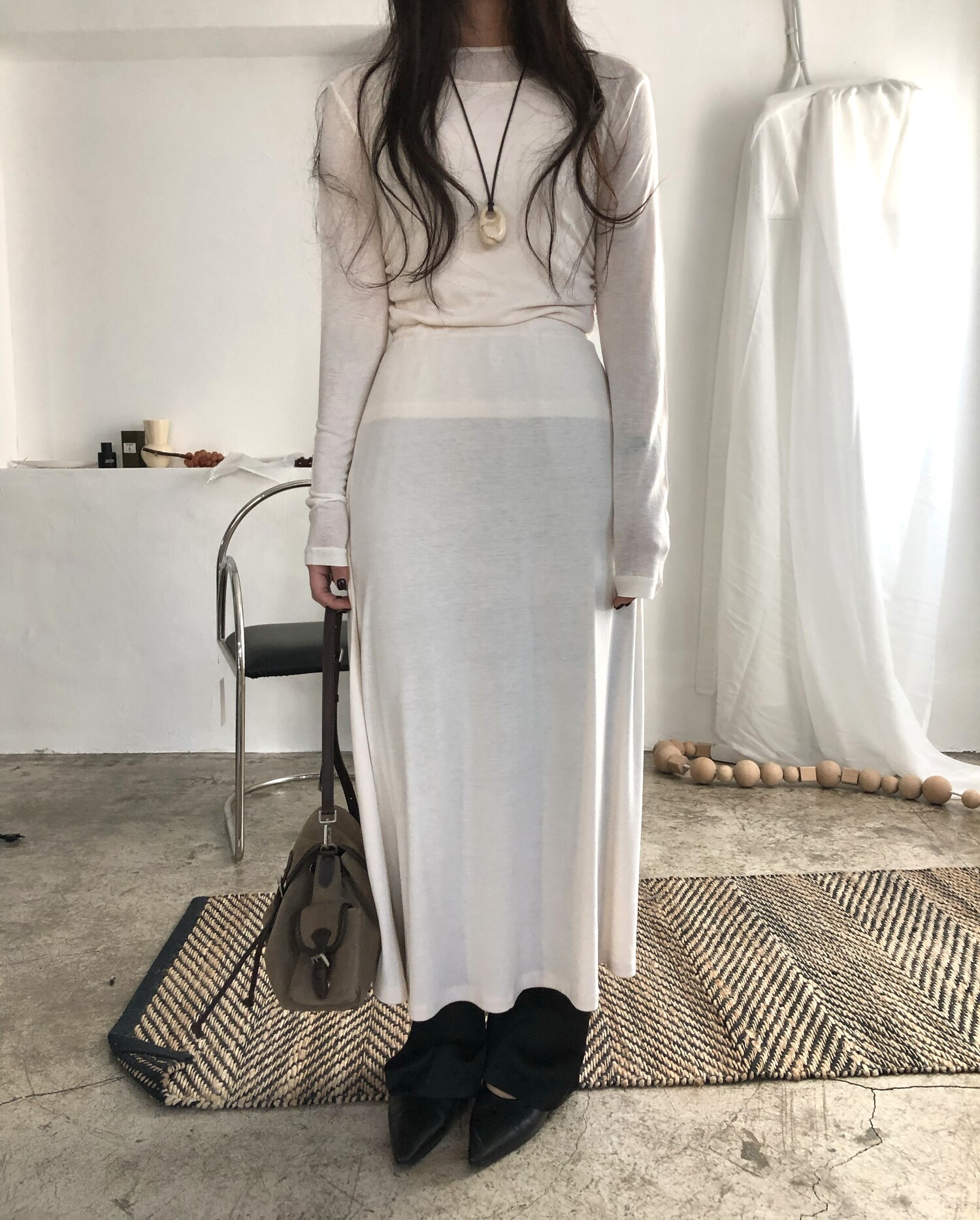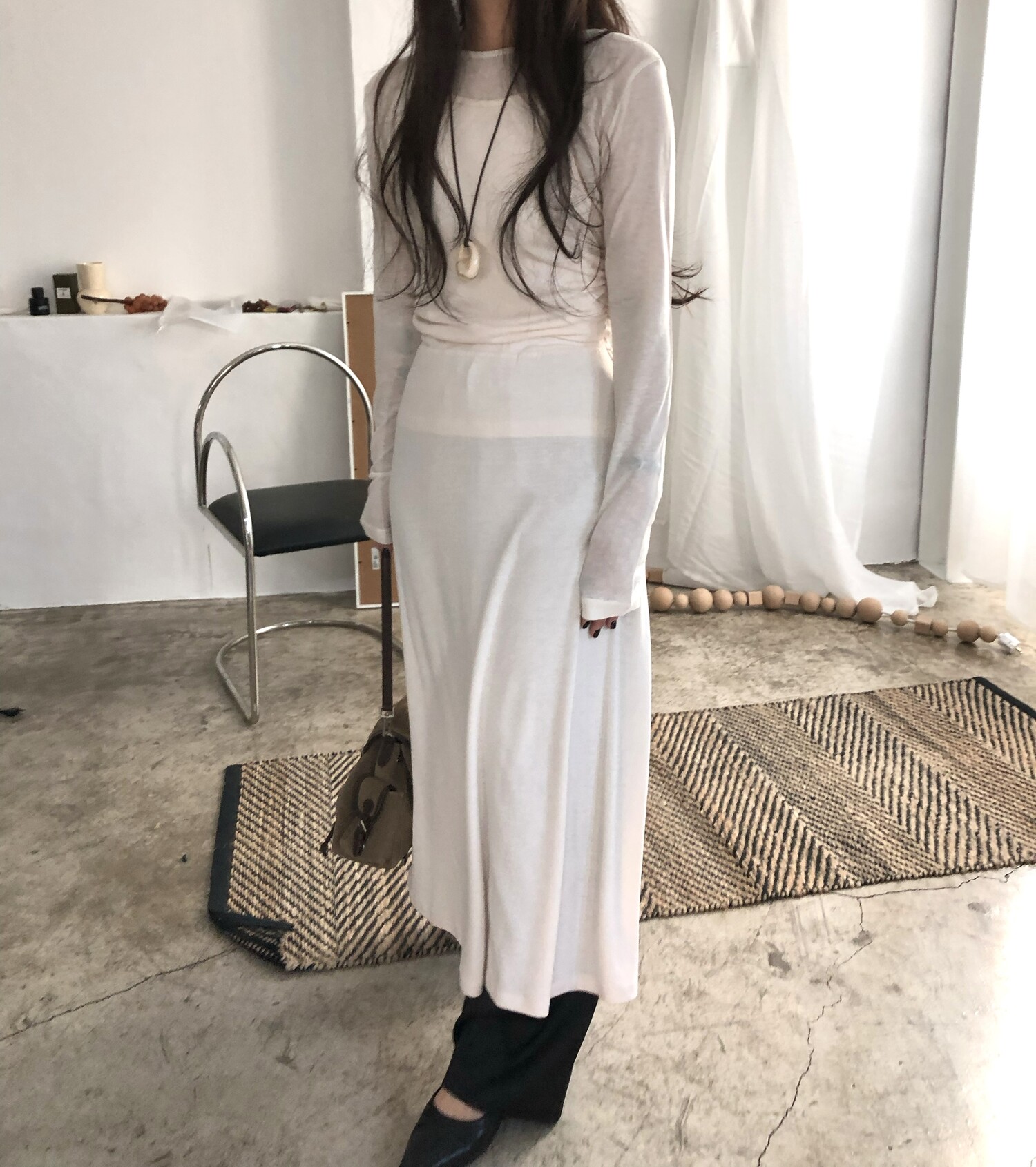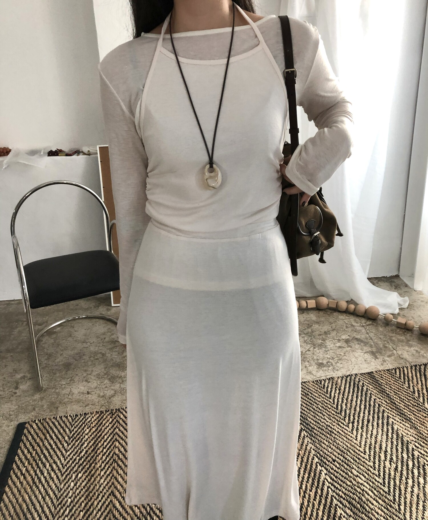 Elastic see-through tencel t-3color