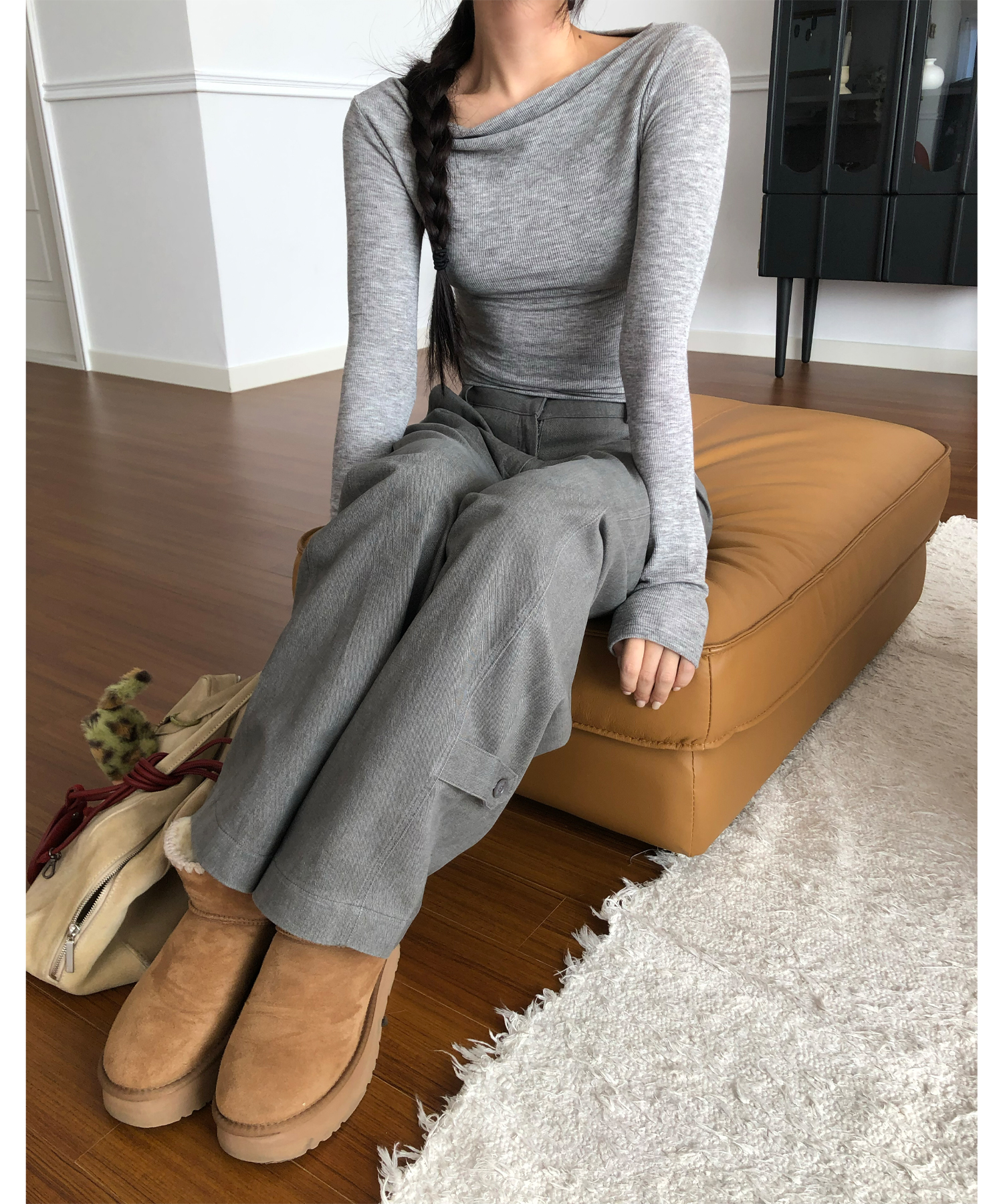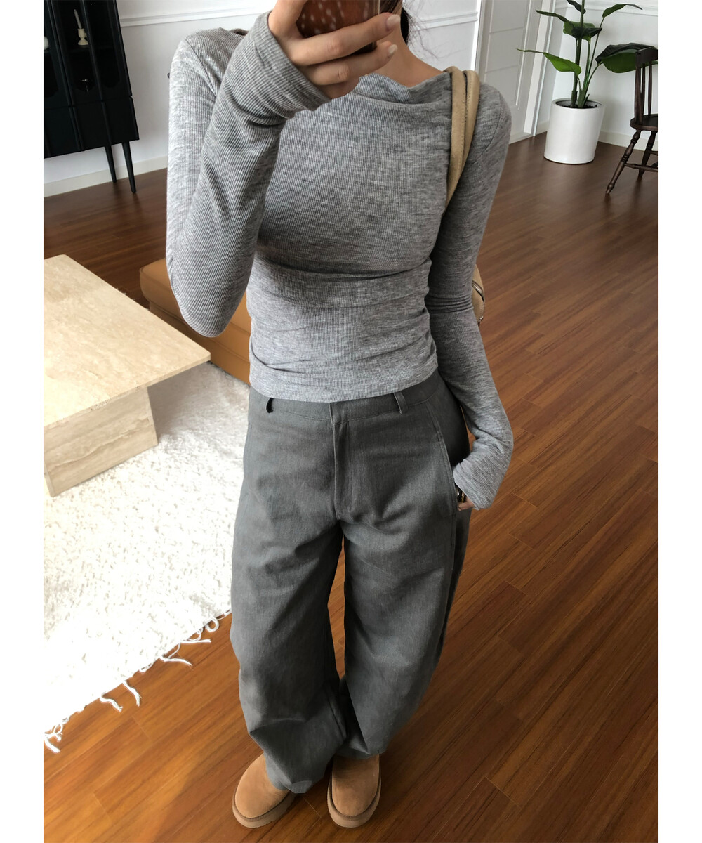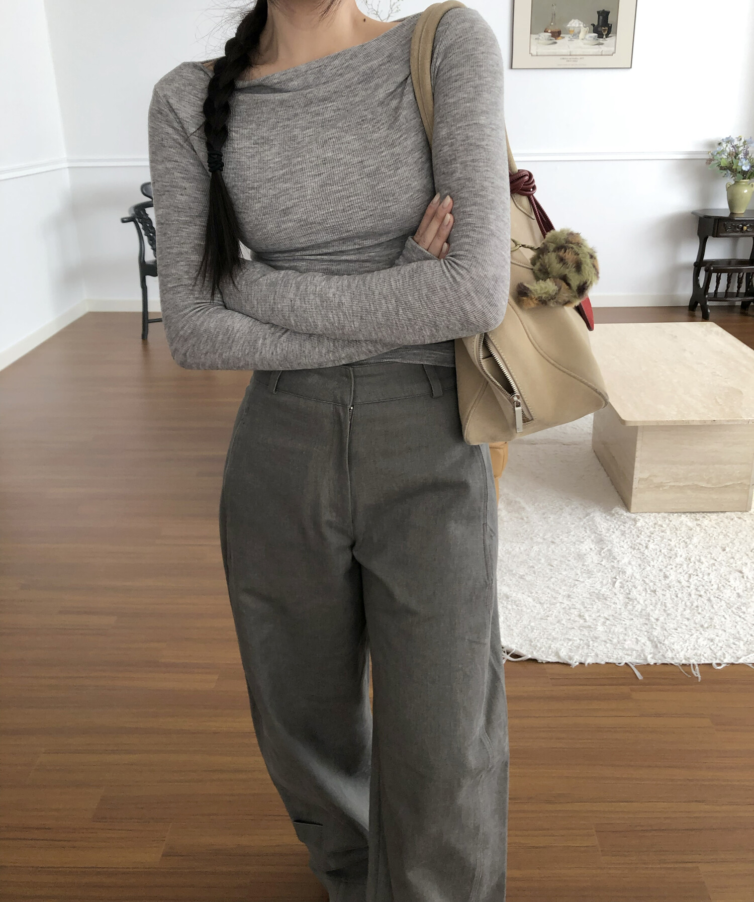 -텐셀감 좋은 레이온 혼방의 골지 조직감으로 바디에 핏되며 슬림하게 연출