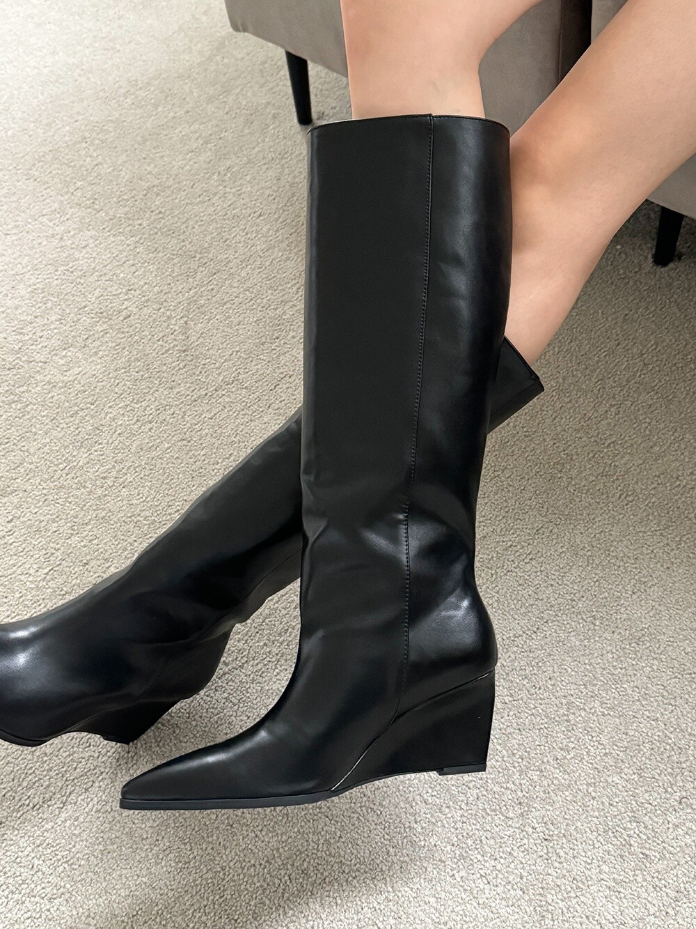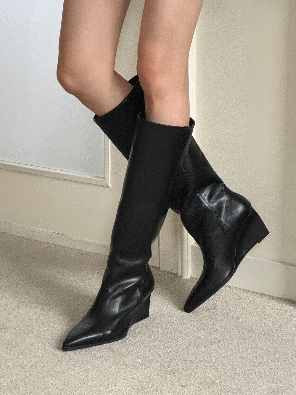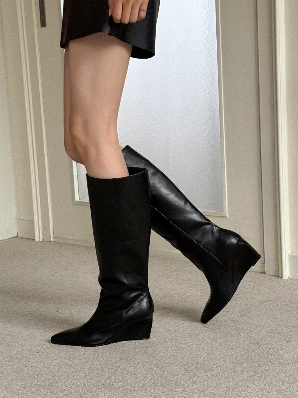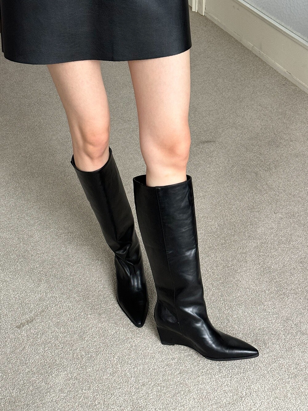 Wedge long boots-black