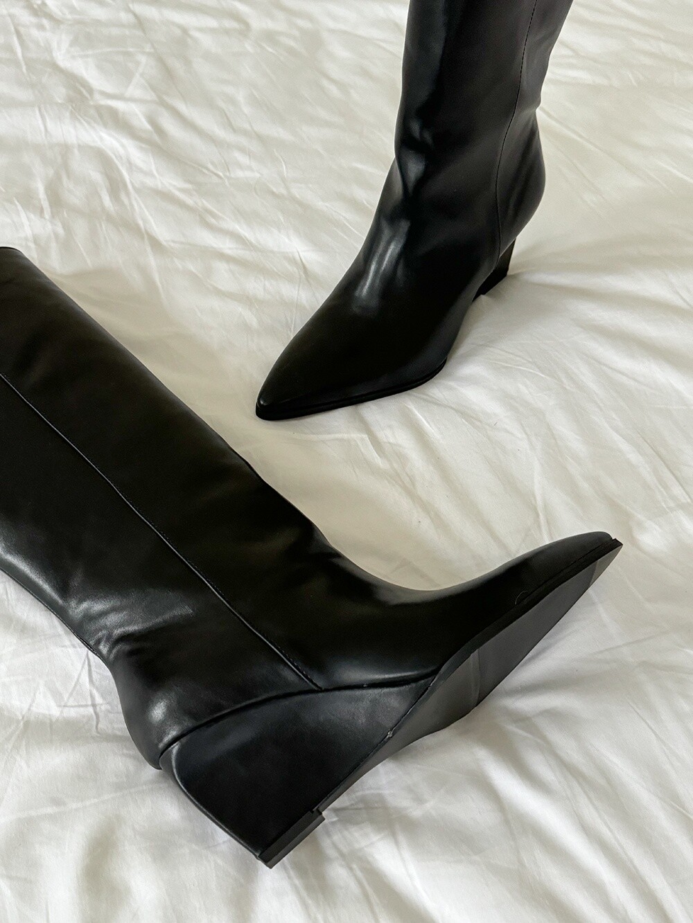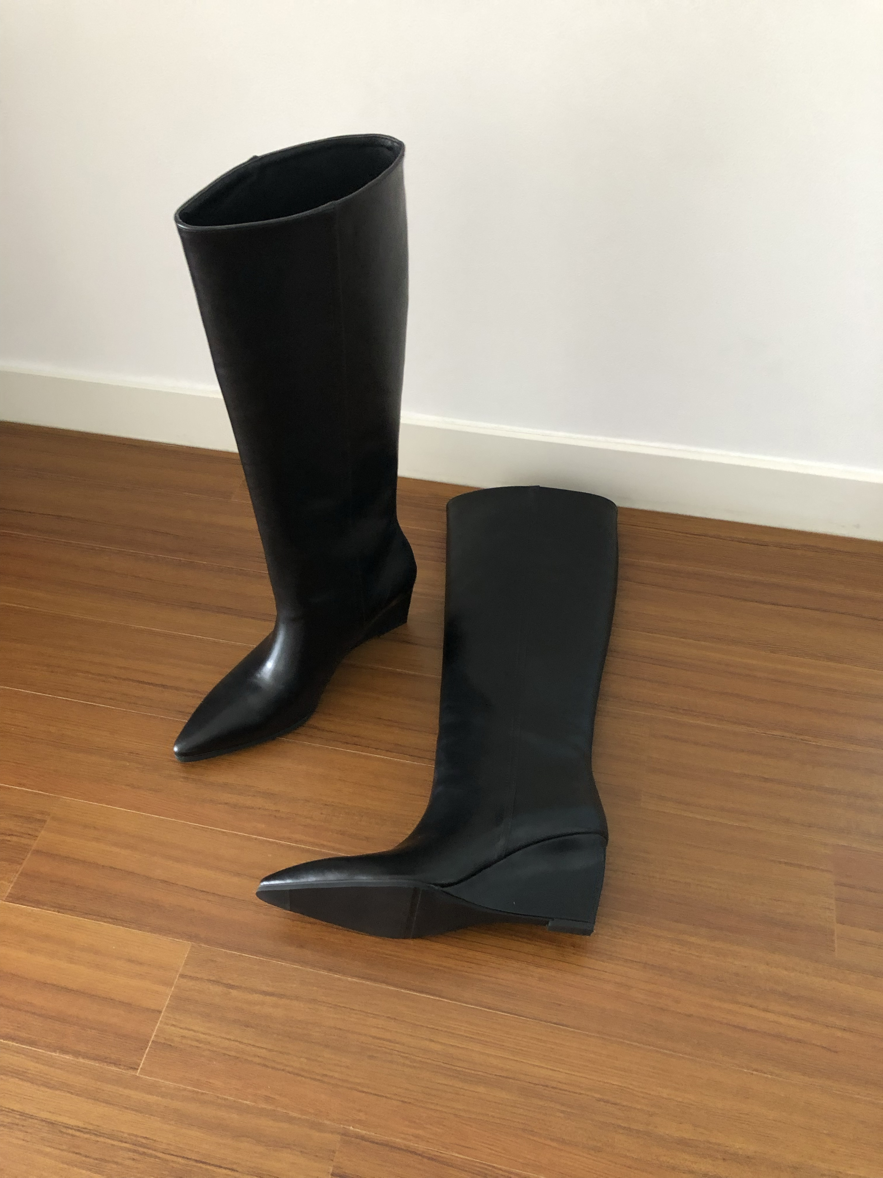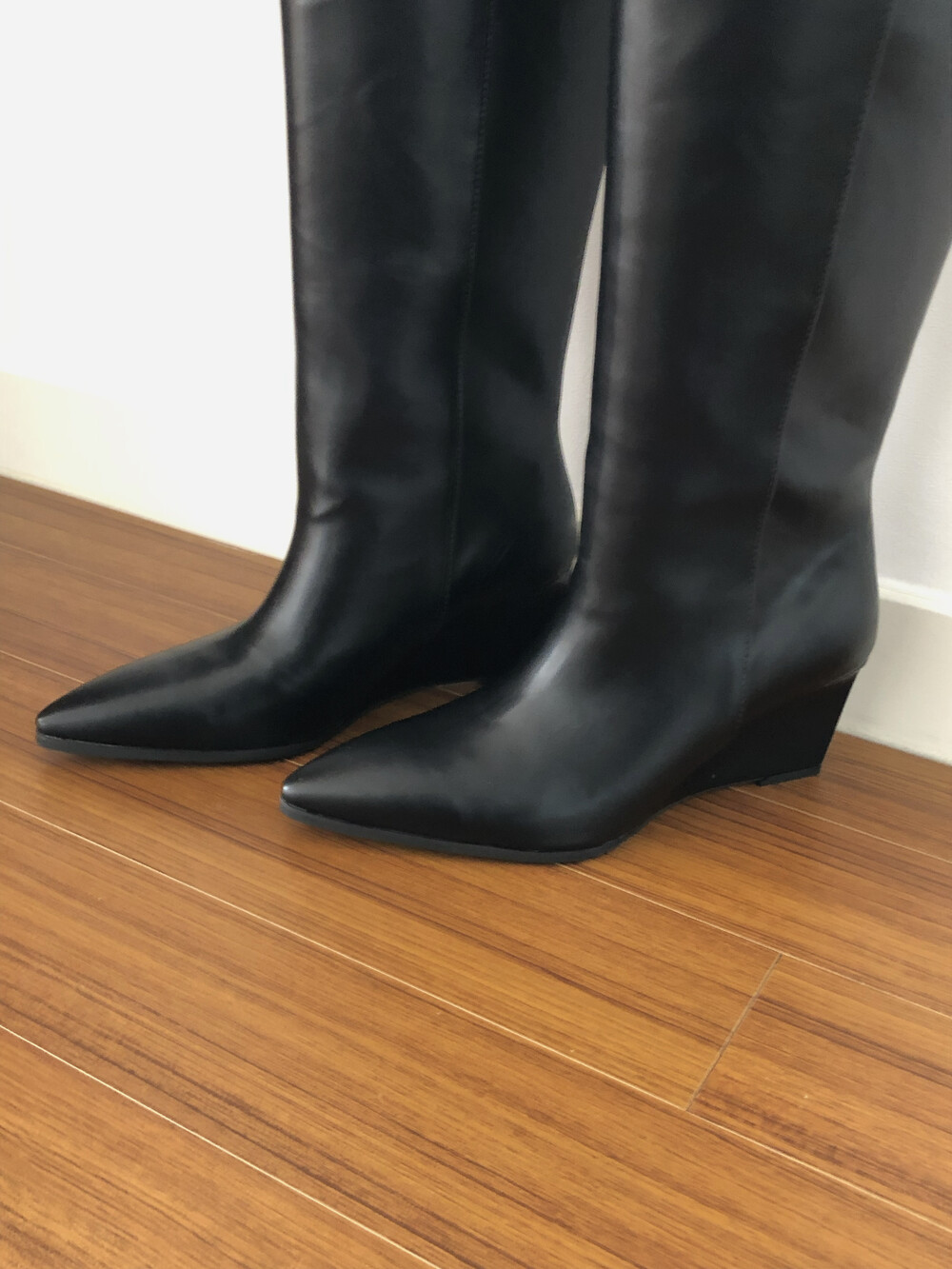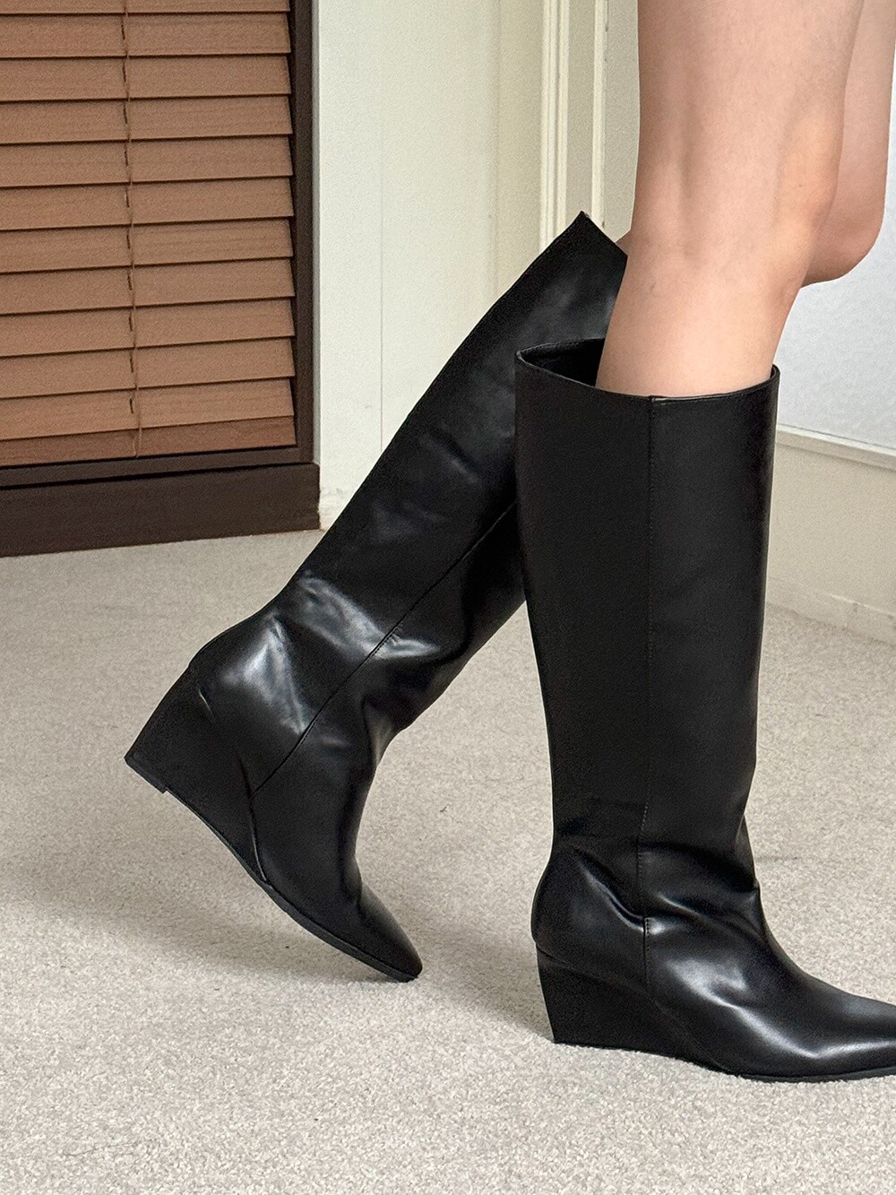 Wedge long boots-black