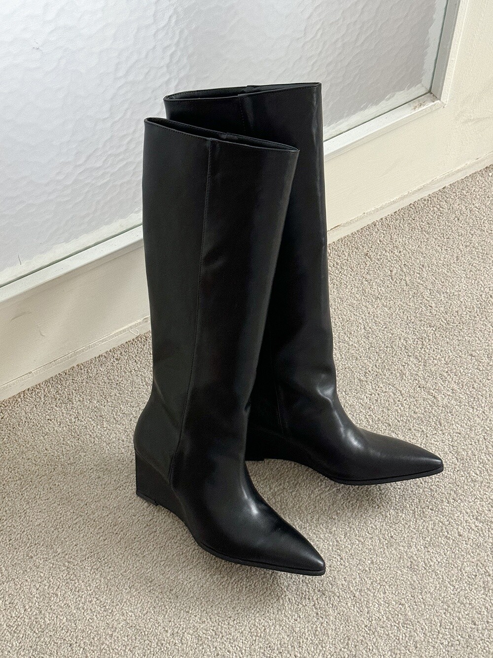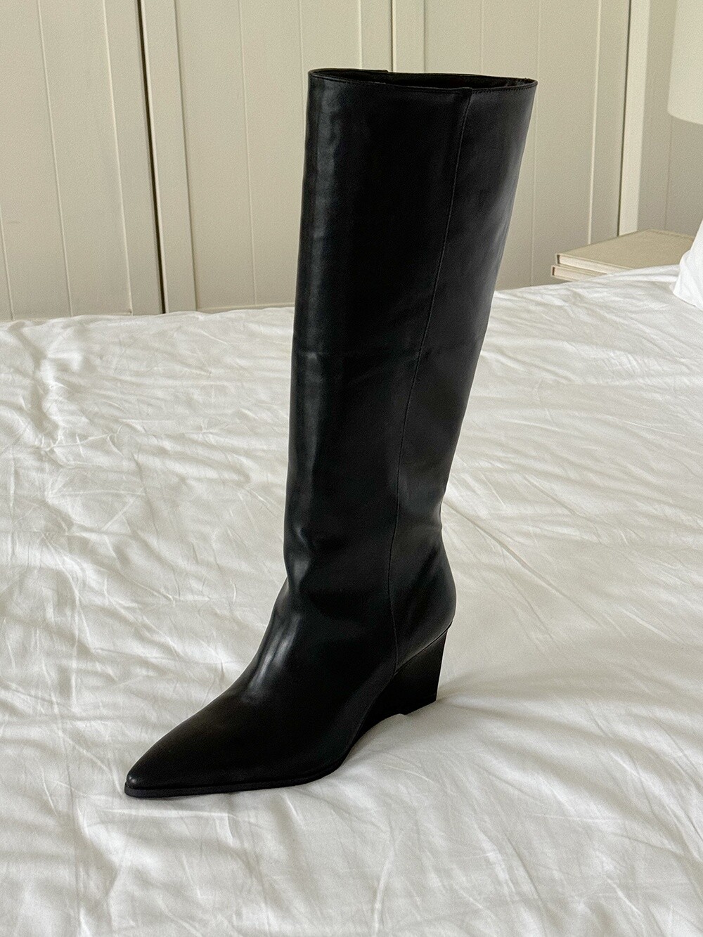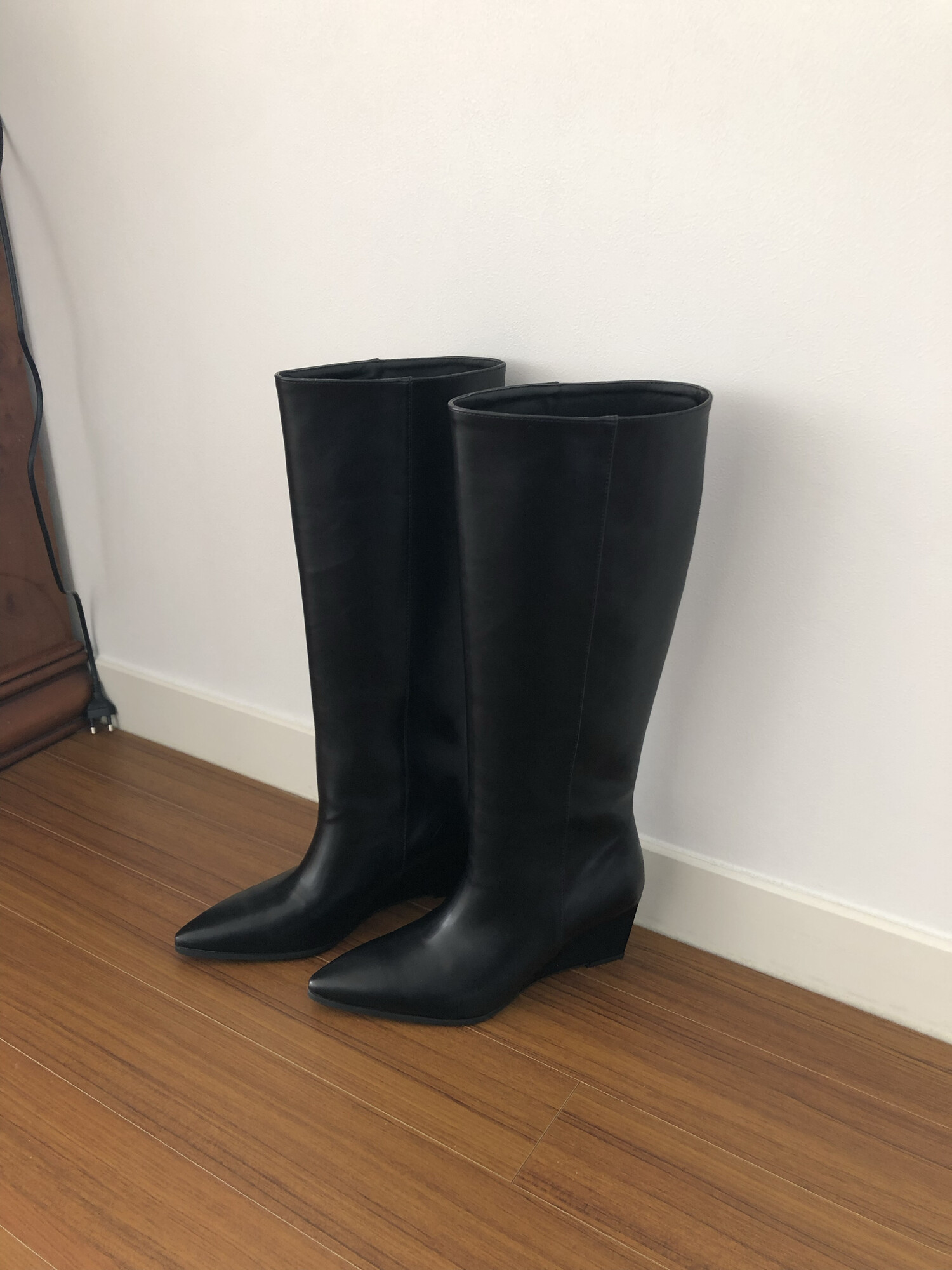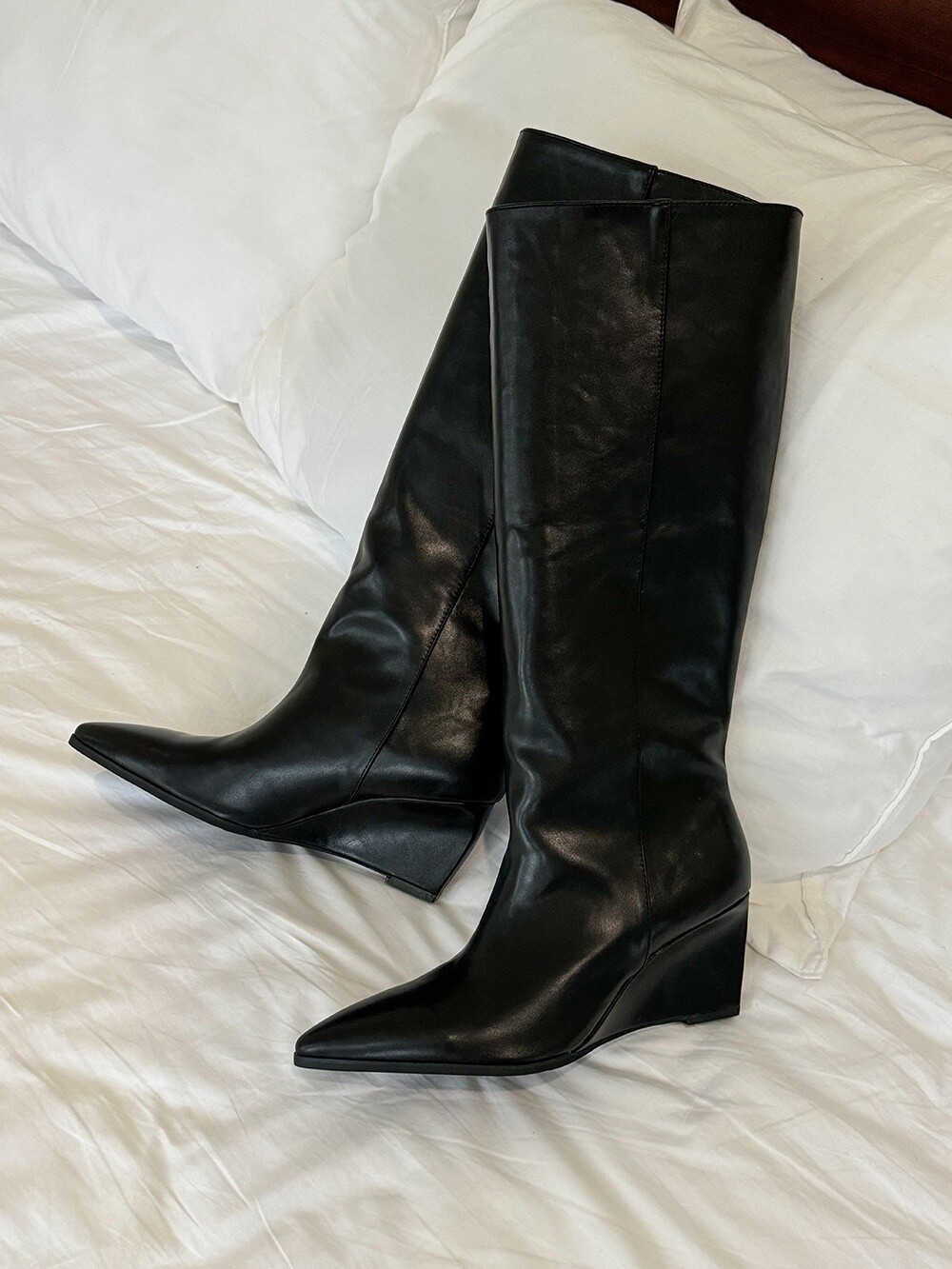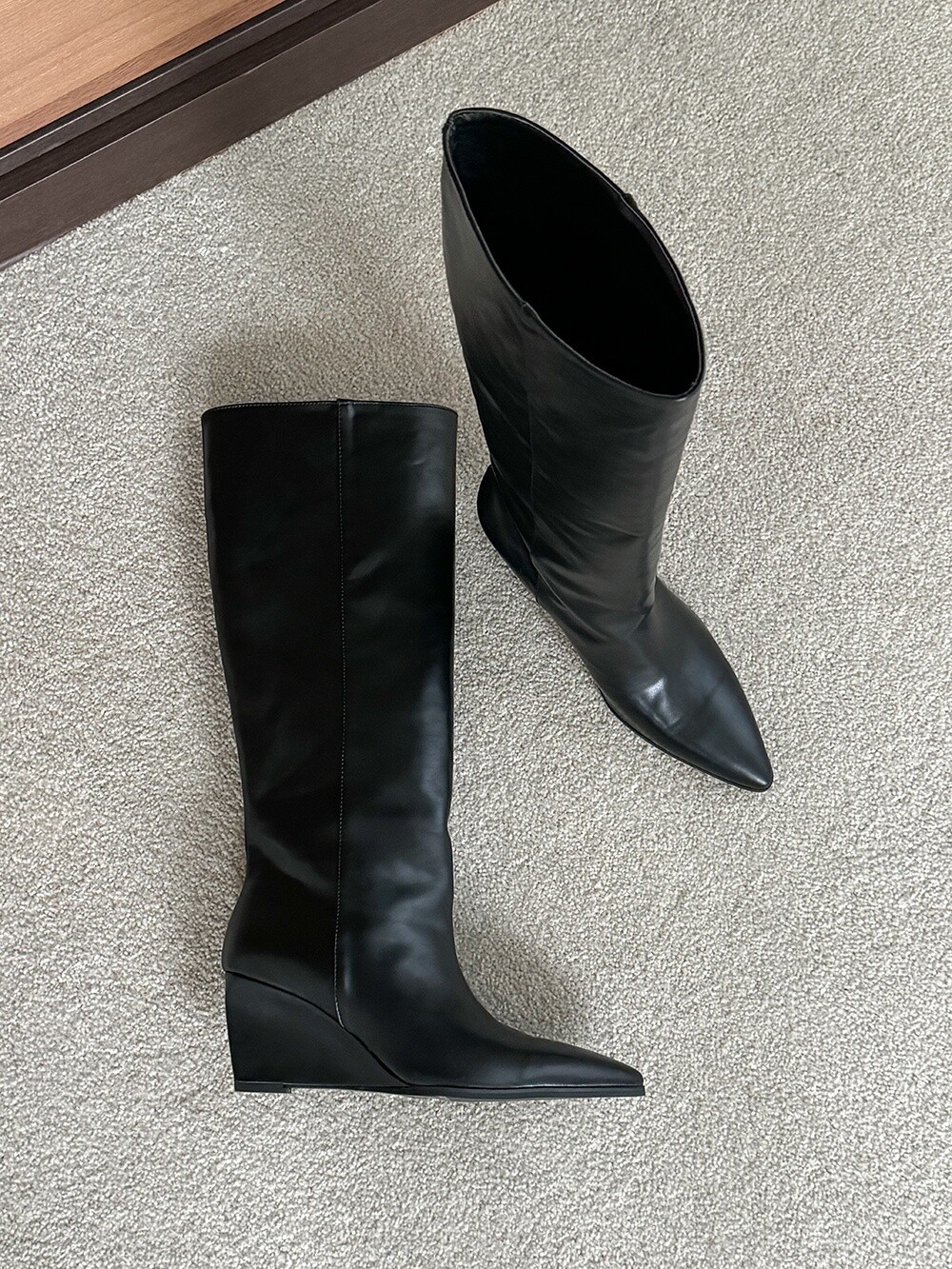 Wedge long boots-black
