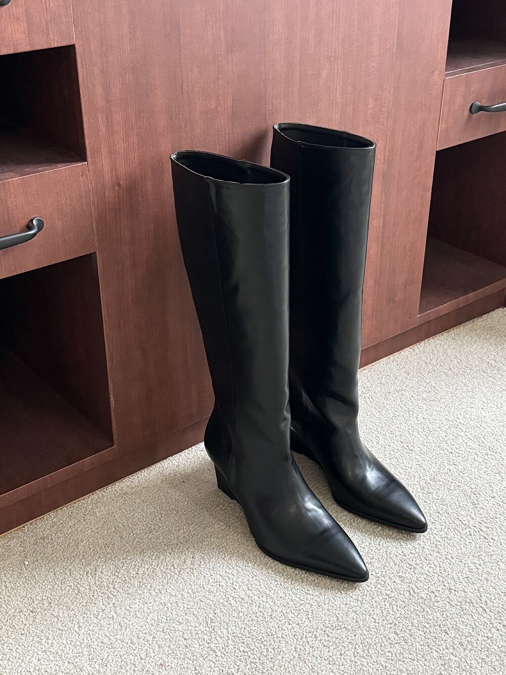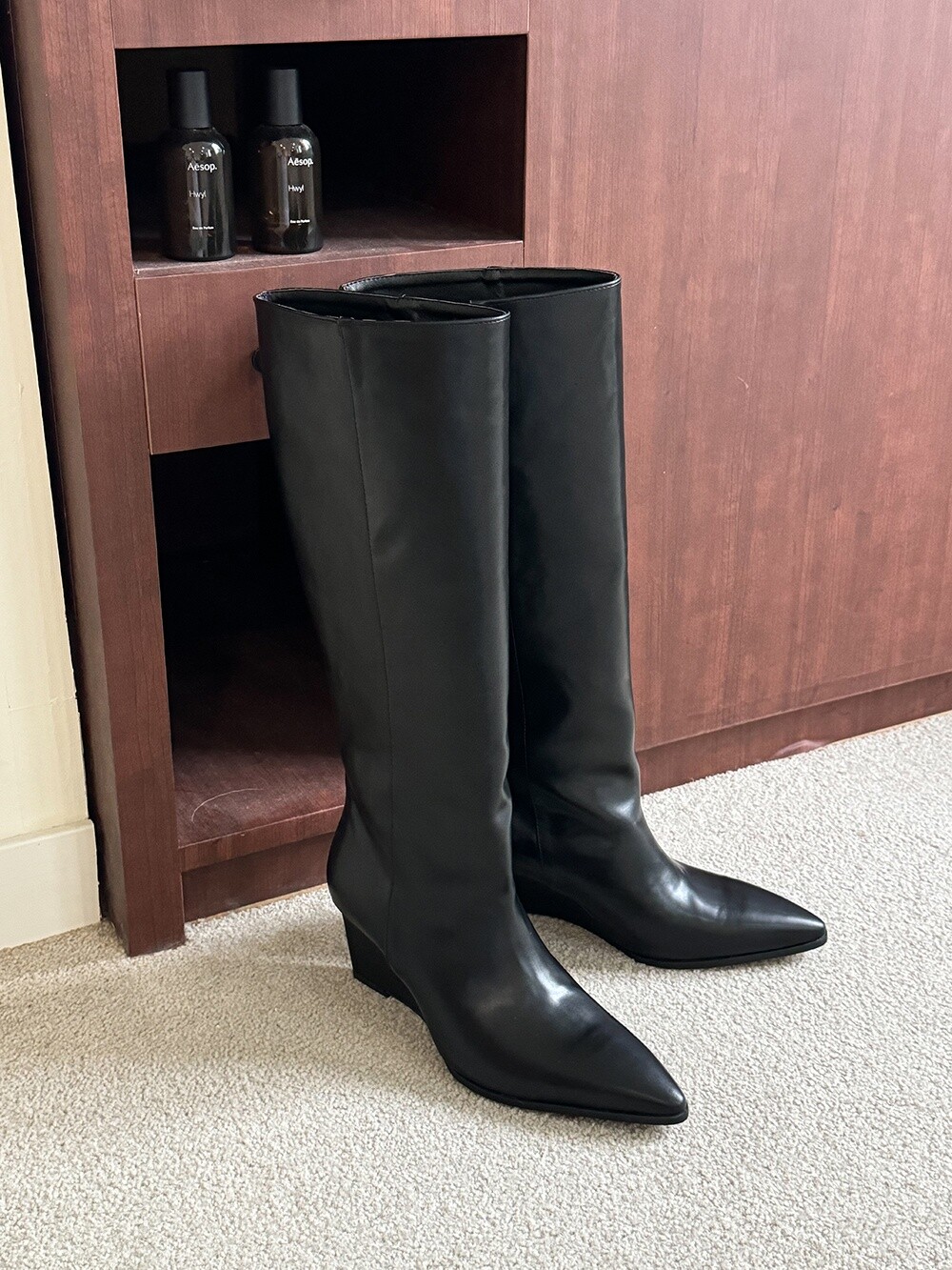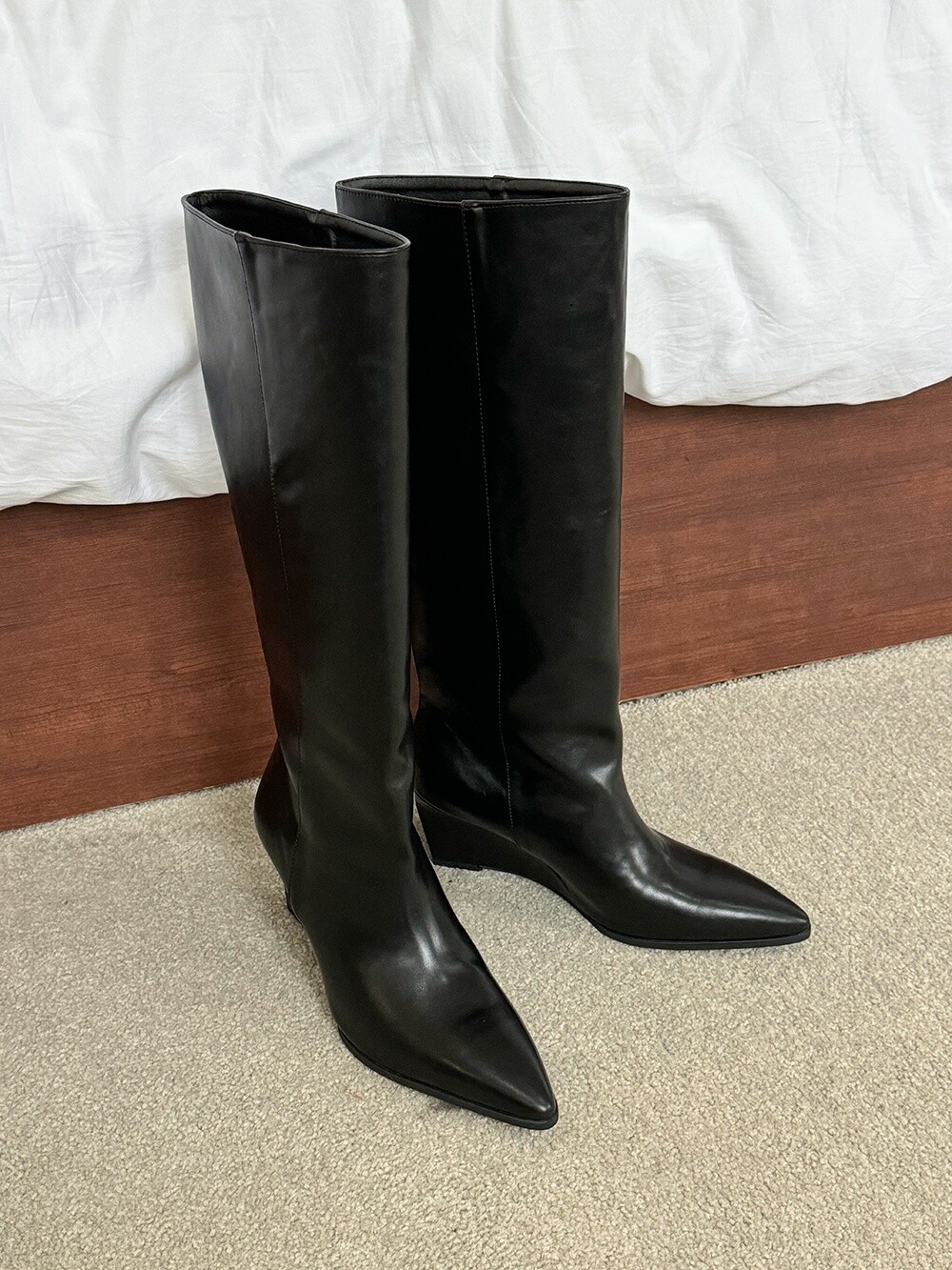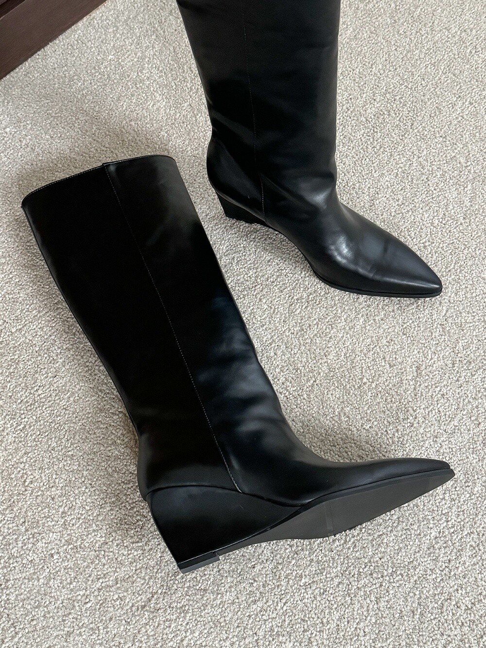Wedge long boots-black