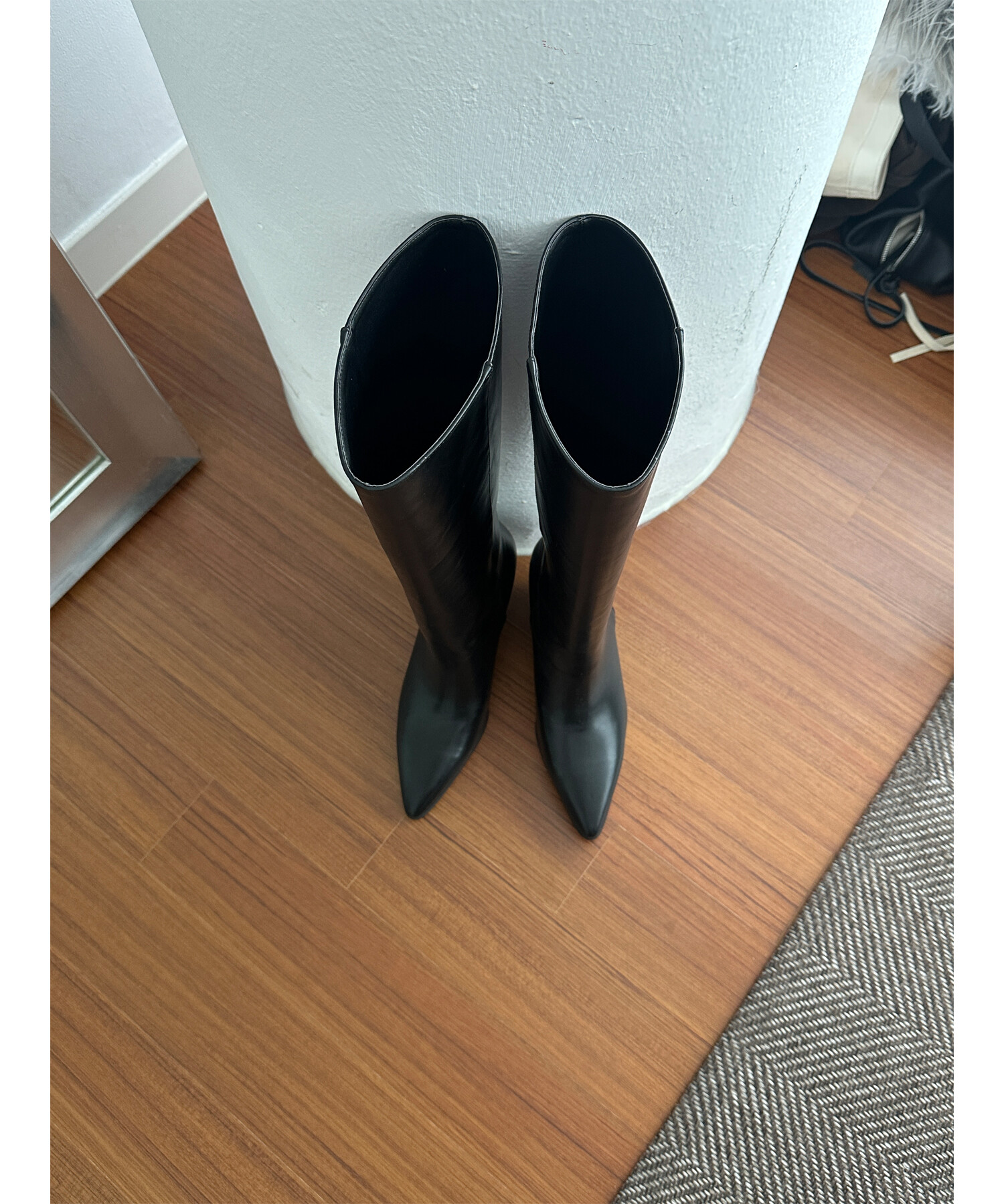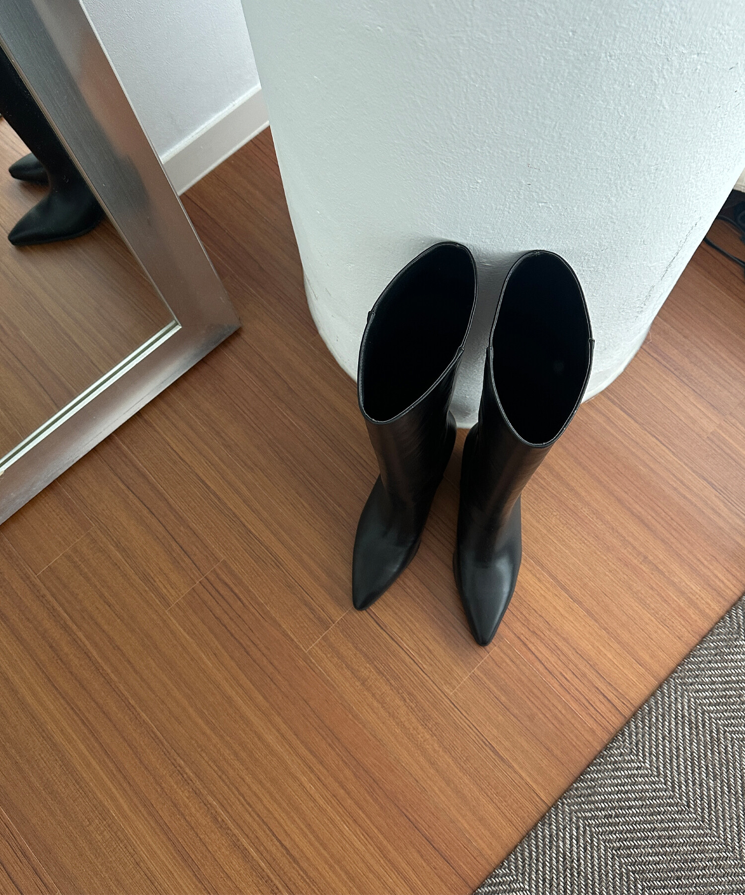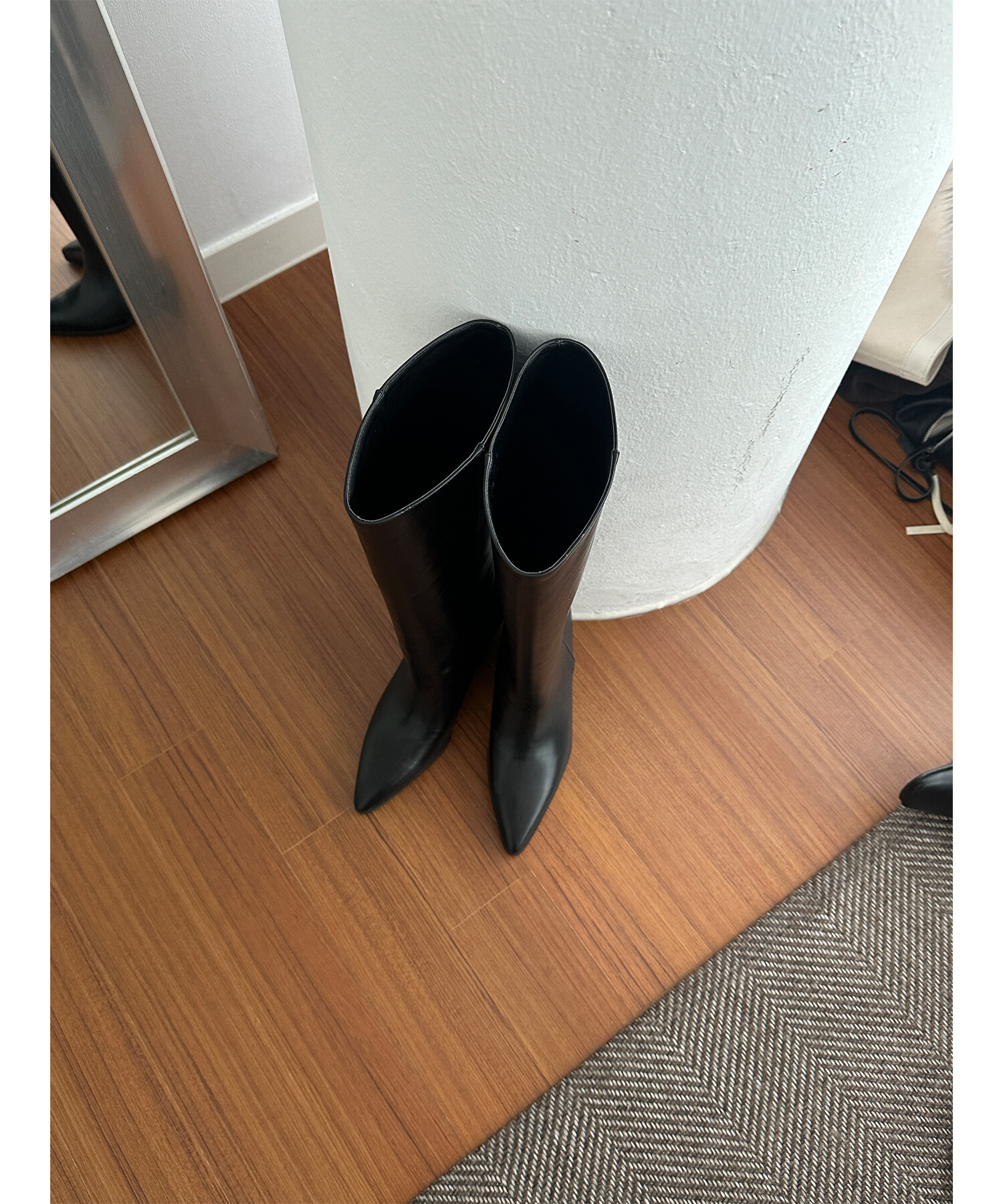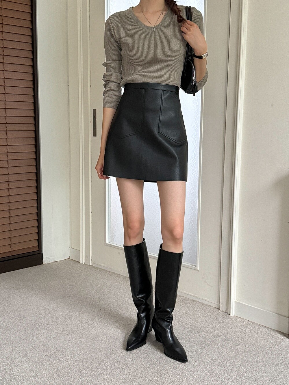 -다리를 슬림하게 연출해주는 군더더기 없이 깔끔한 쉐잎의 스틸레토 롱부츠