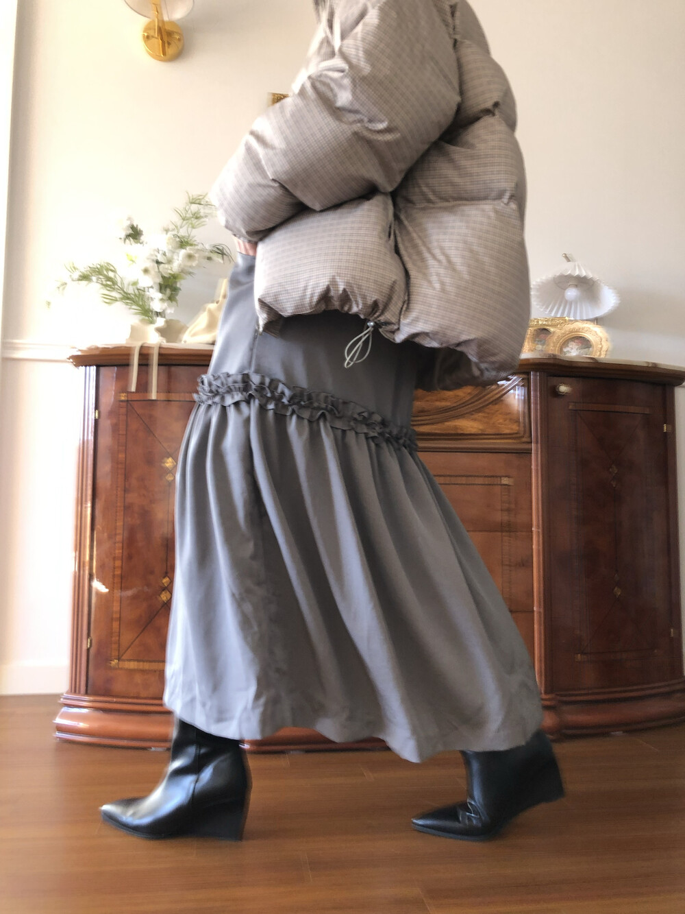 245기준-굽부터 종아리까지 총장46.5/발길이25.5cm/앞굽0.5cm/뒷굽7cm/발볼너비9