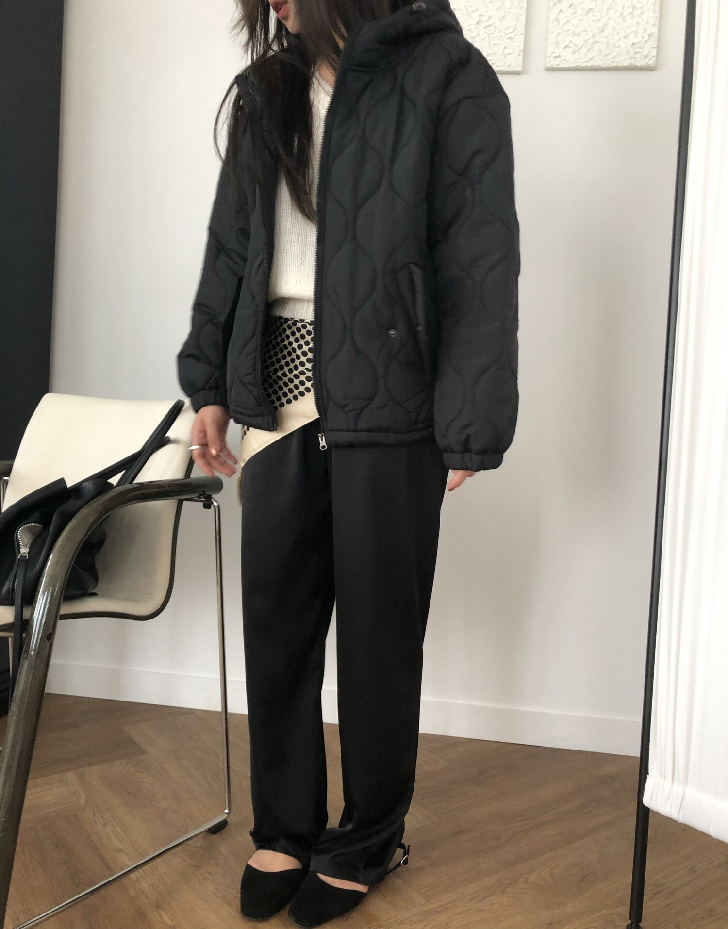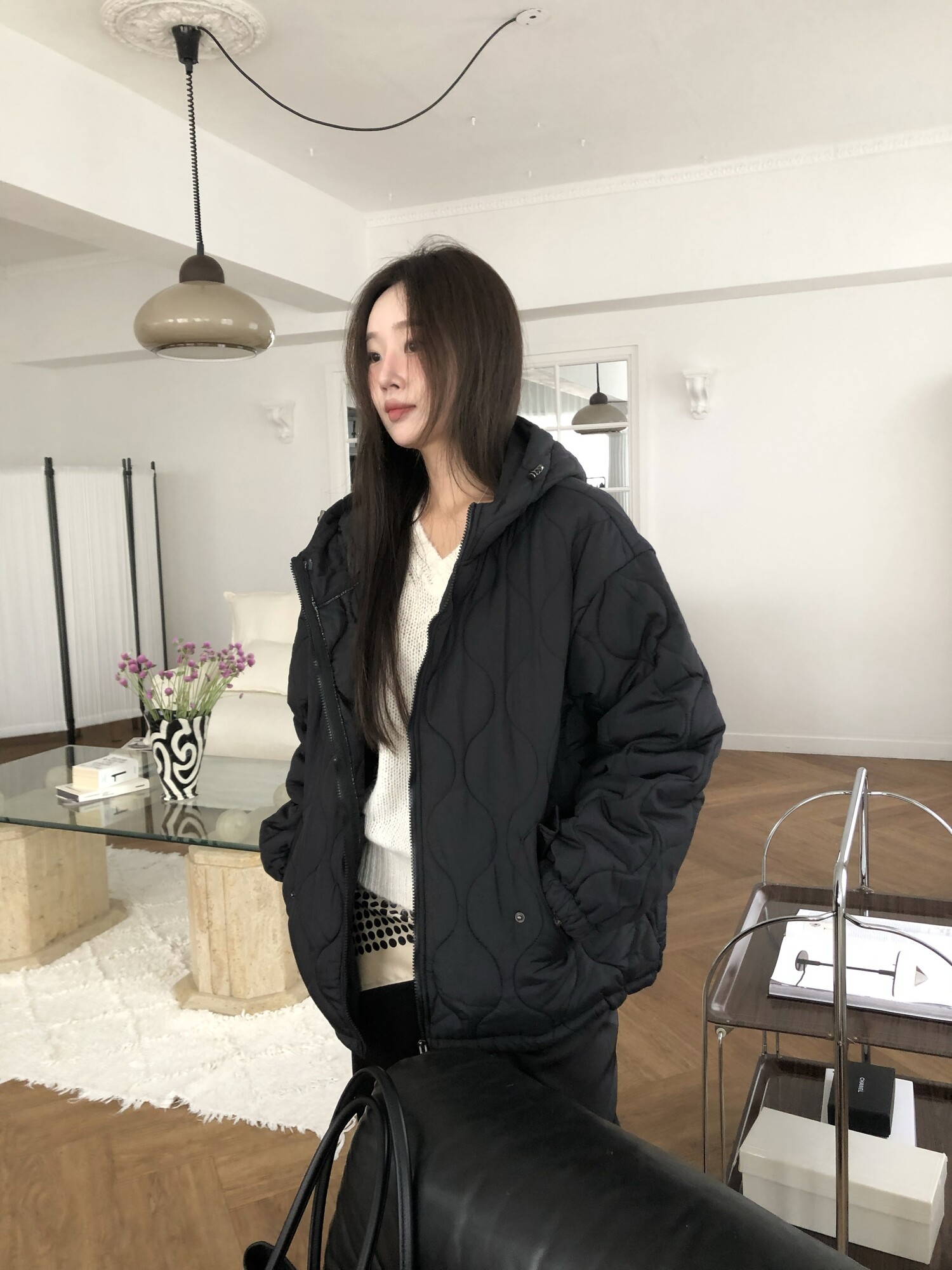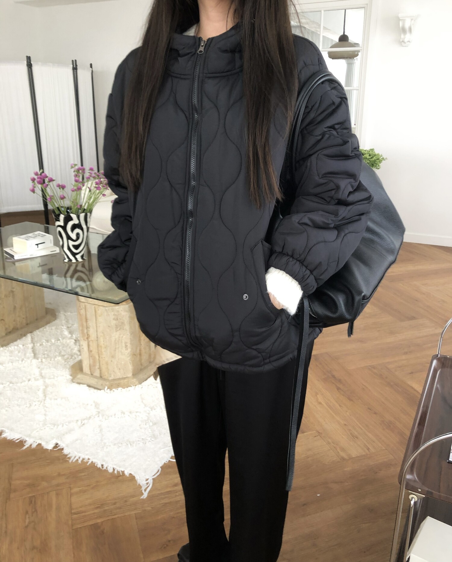 Quilting hoodie puffer-3color
