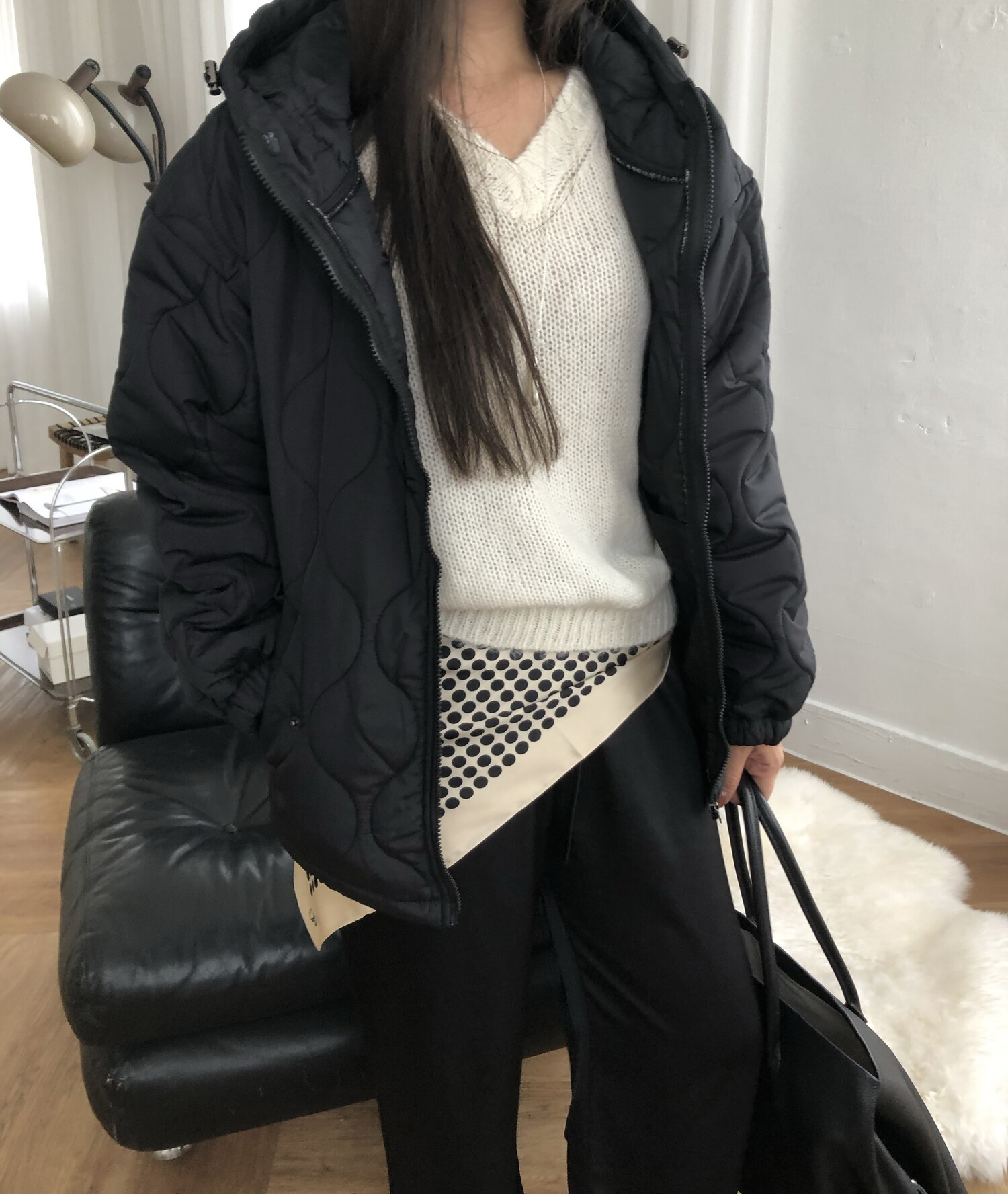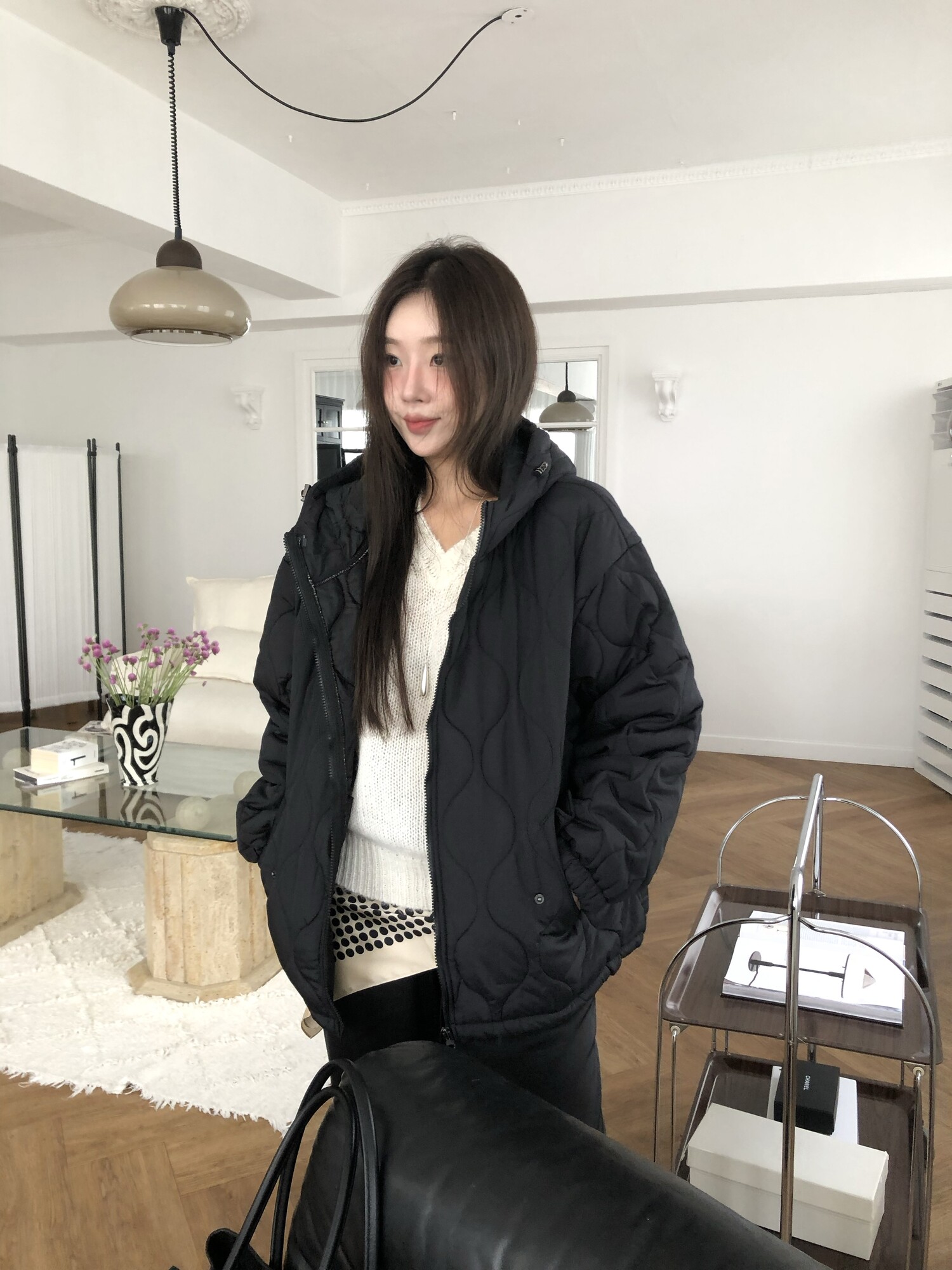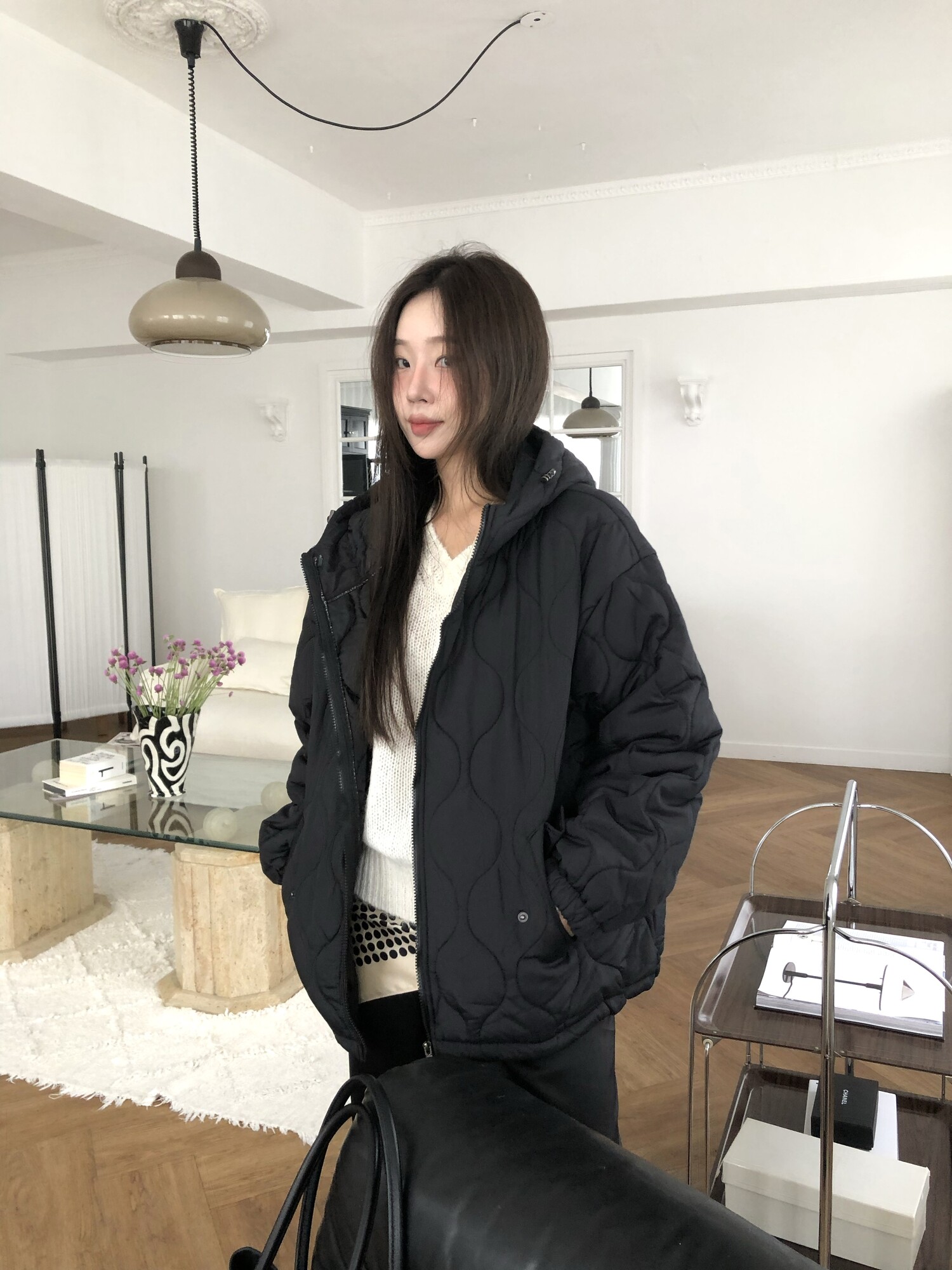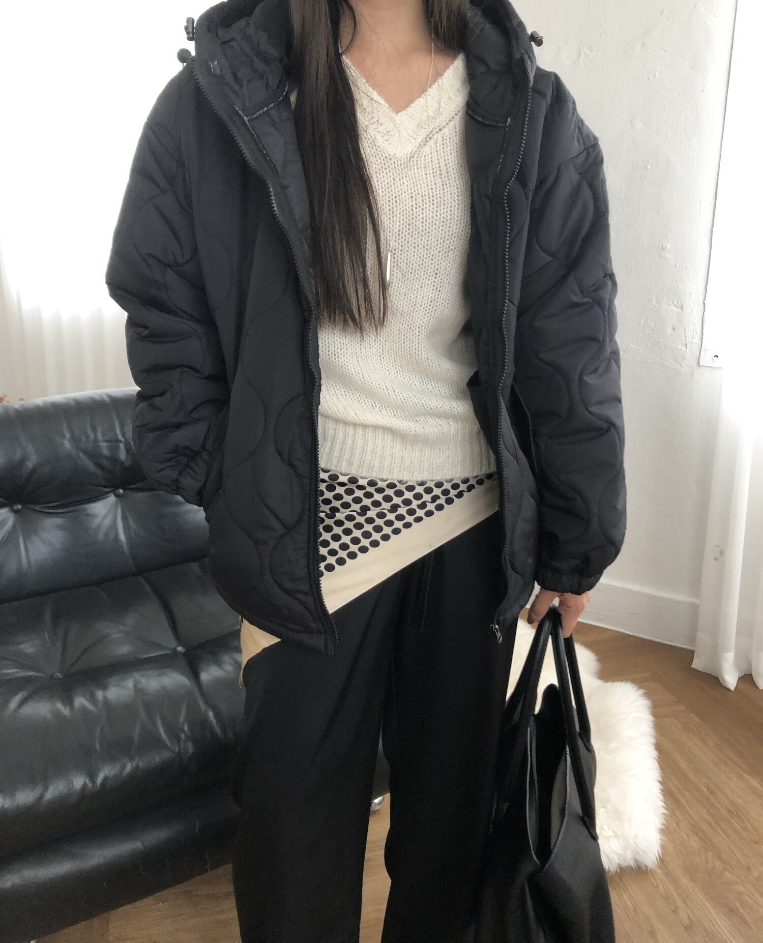 Quilting hoodie puffer-3color