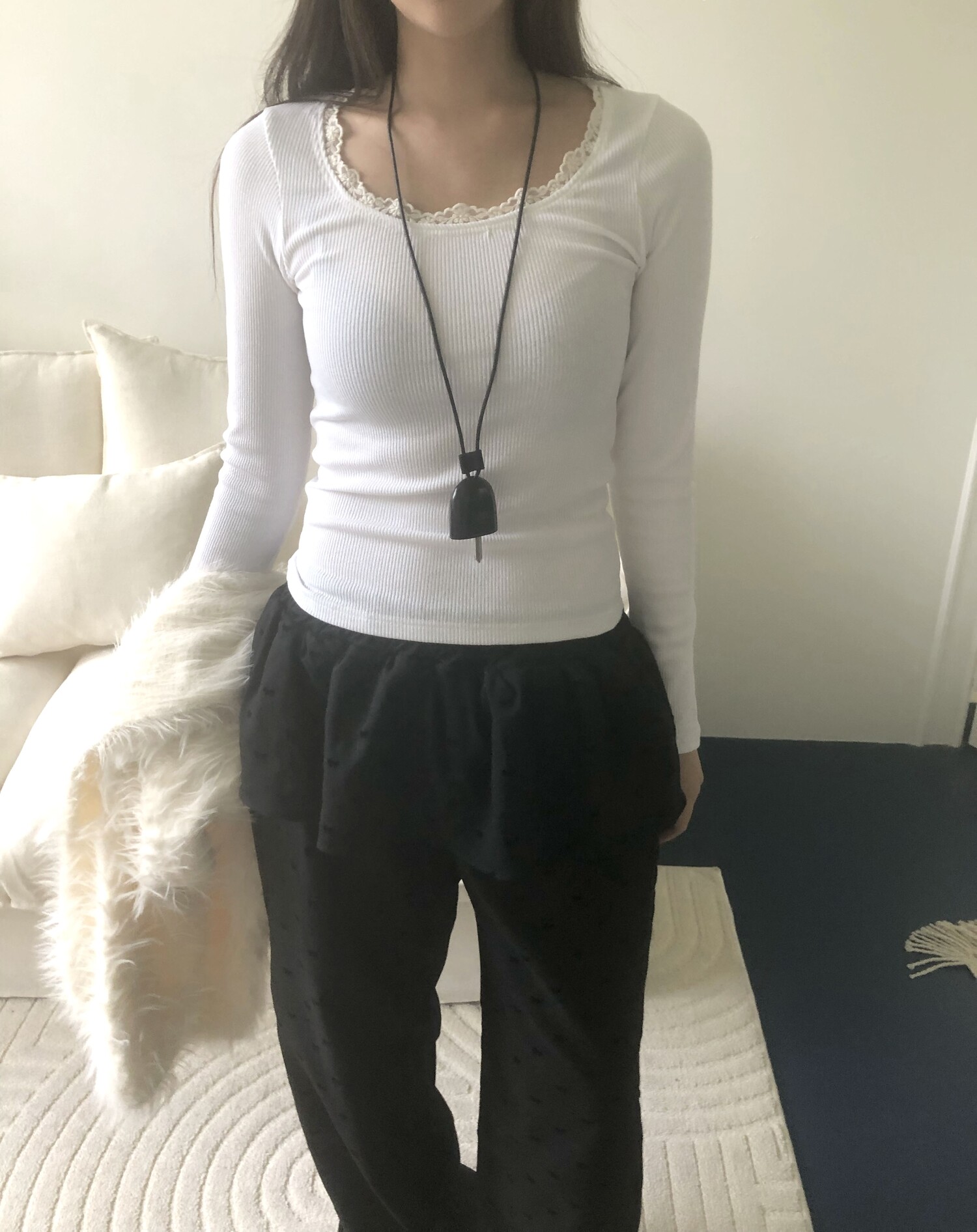 Slim fit lace t-4color