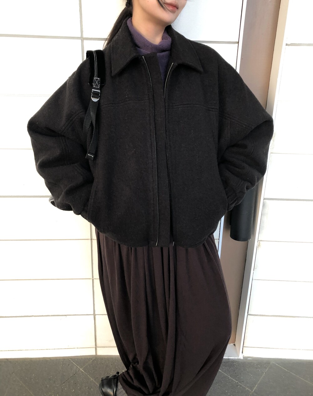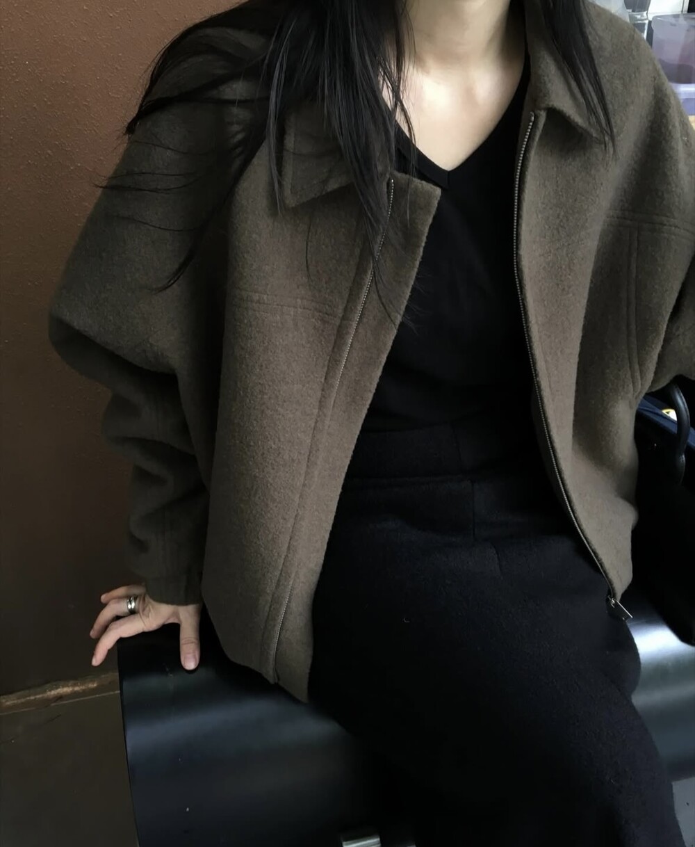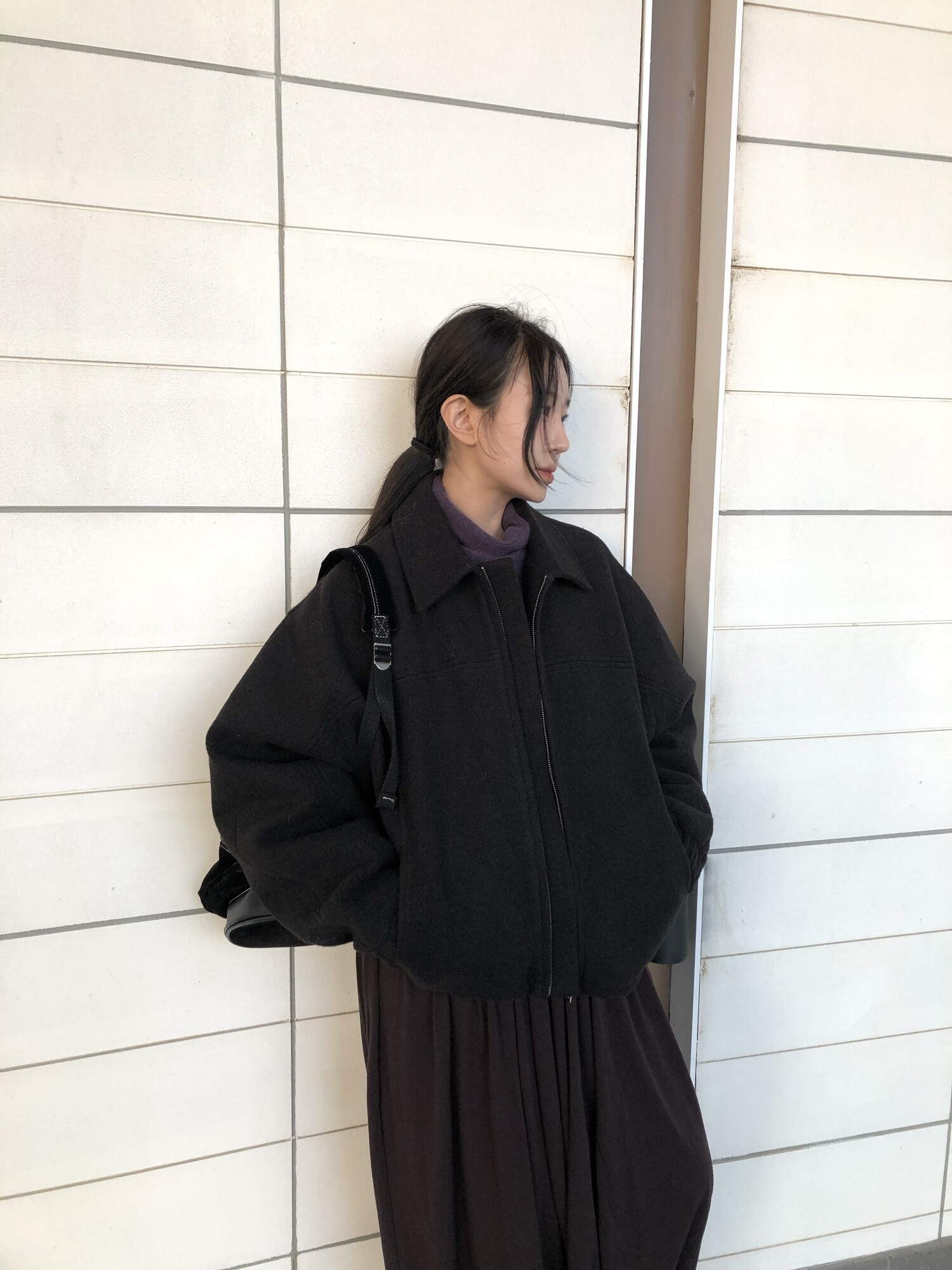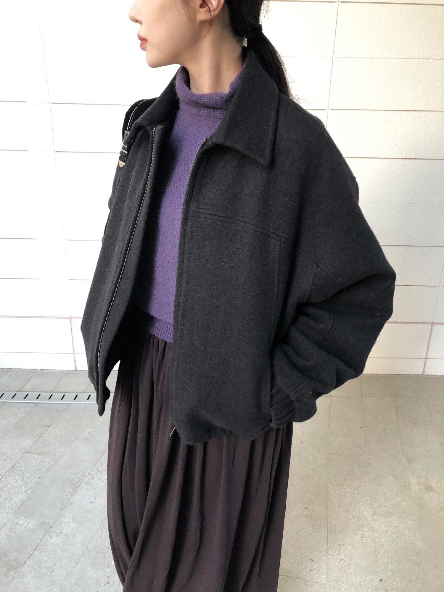 -압축된 부클 울에 한 번 더 견고하게 합포 작업을 더해 만졌을 때 바로 느껴지는 탄탄한 질감의 울 크롭 점퍼입니다.