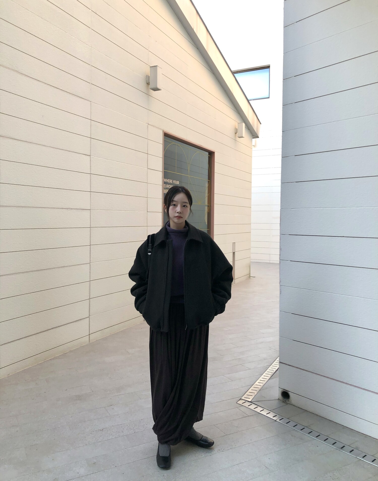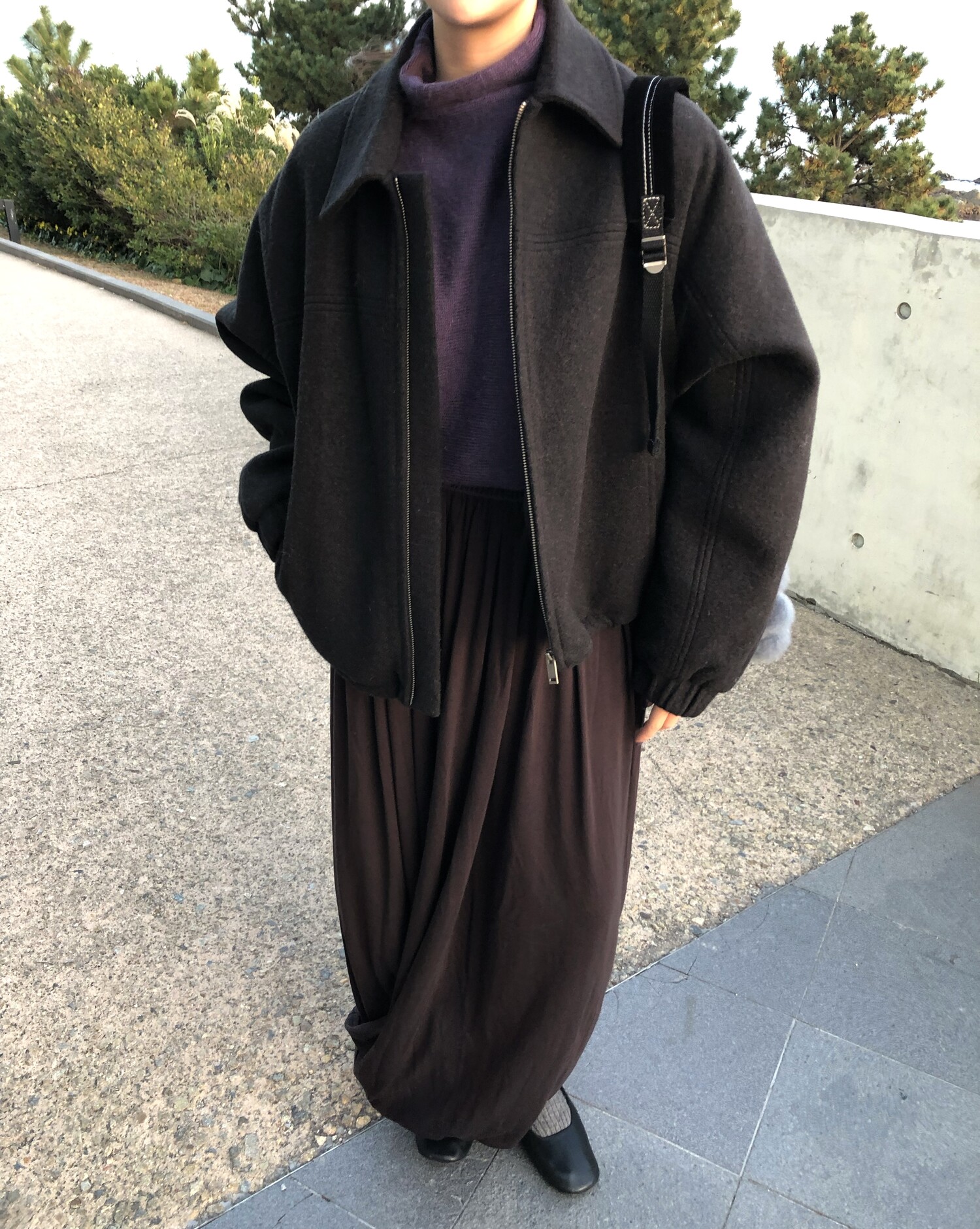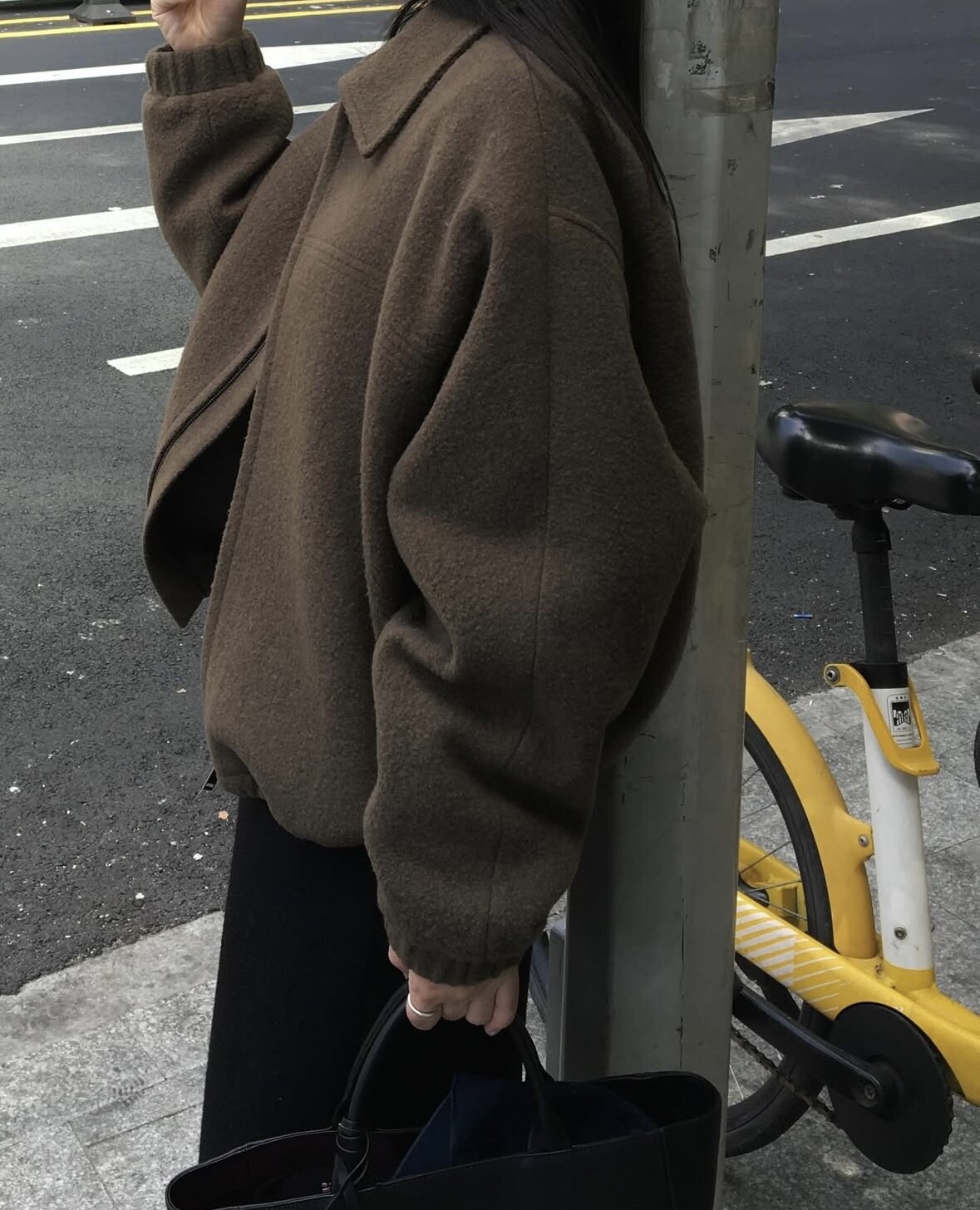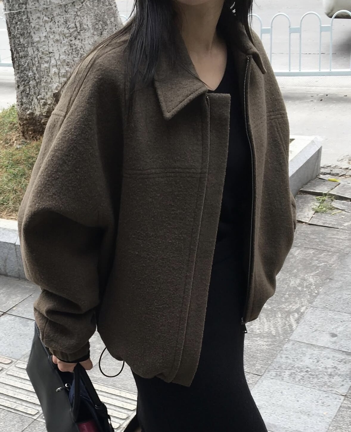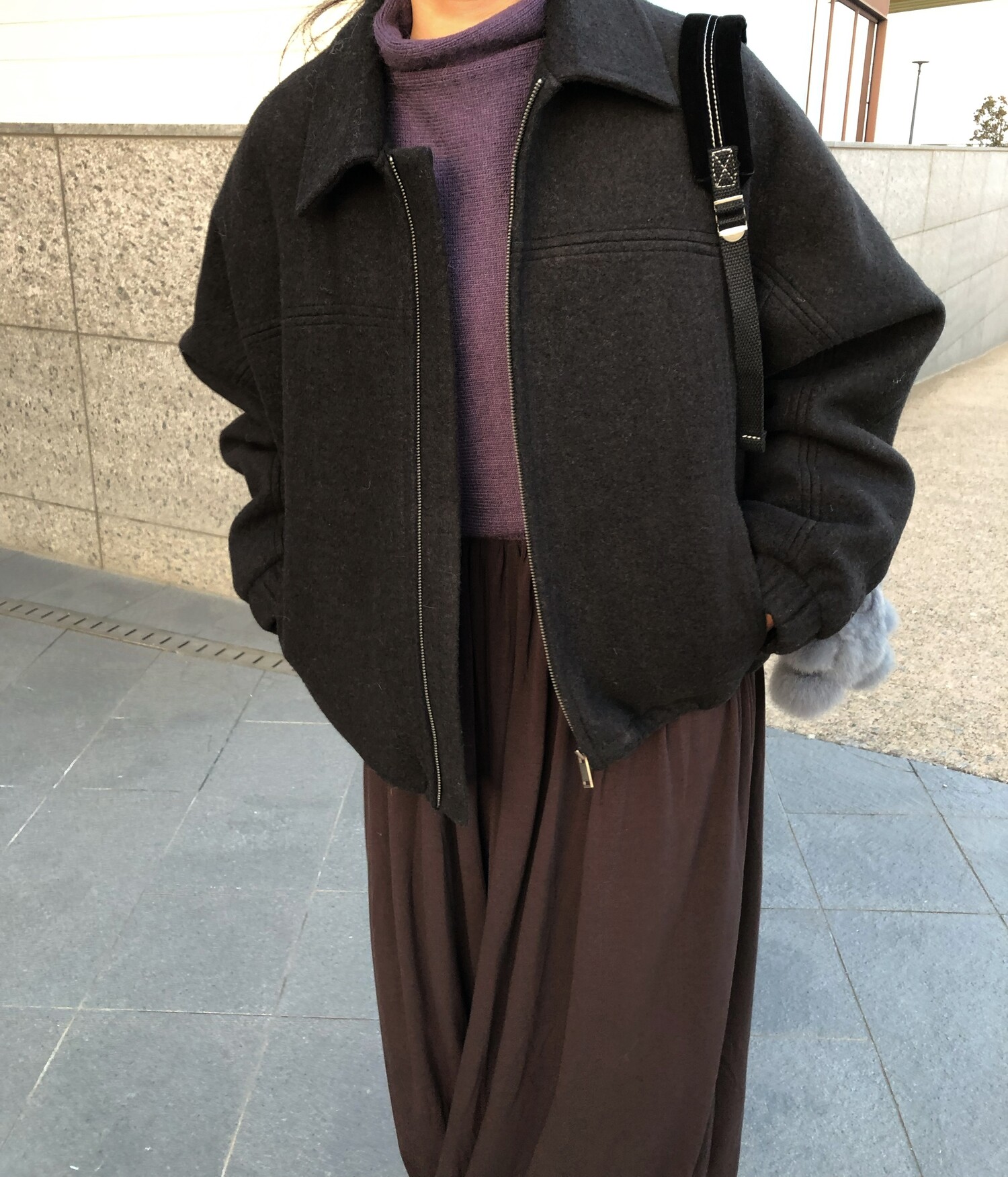 -압축된 부클 울에 한 번 더 견고하게 합포 작업을 더해 만졌을 때 바로 느껴지는 탄탄한 질감의 울 크롭 점퍼입니다.