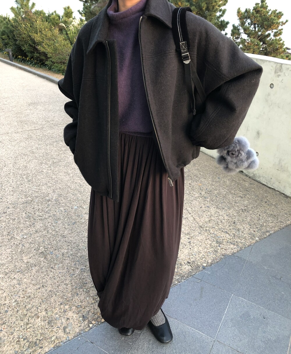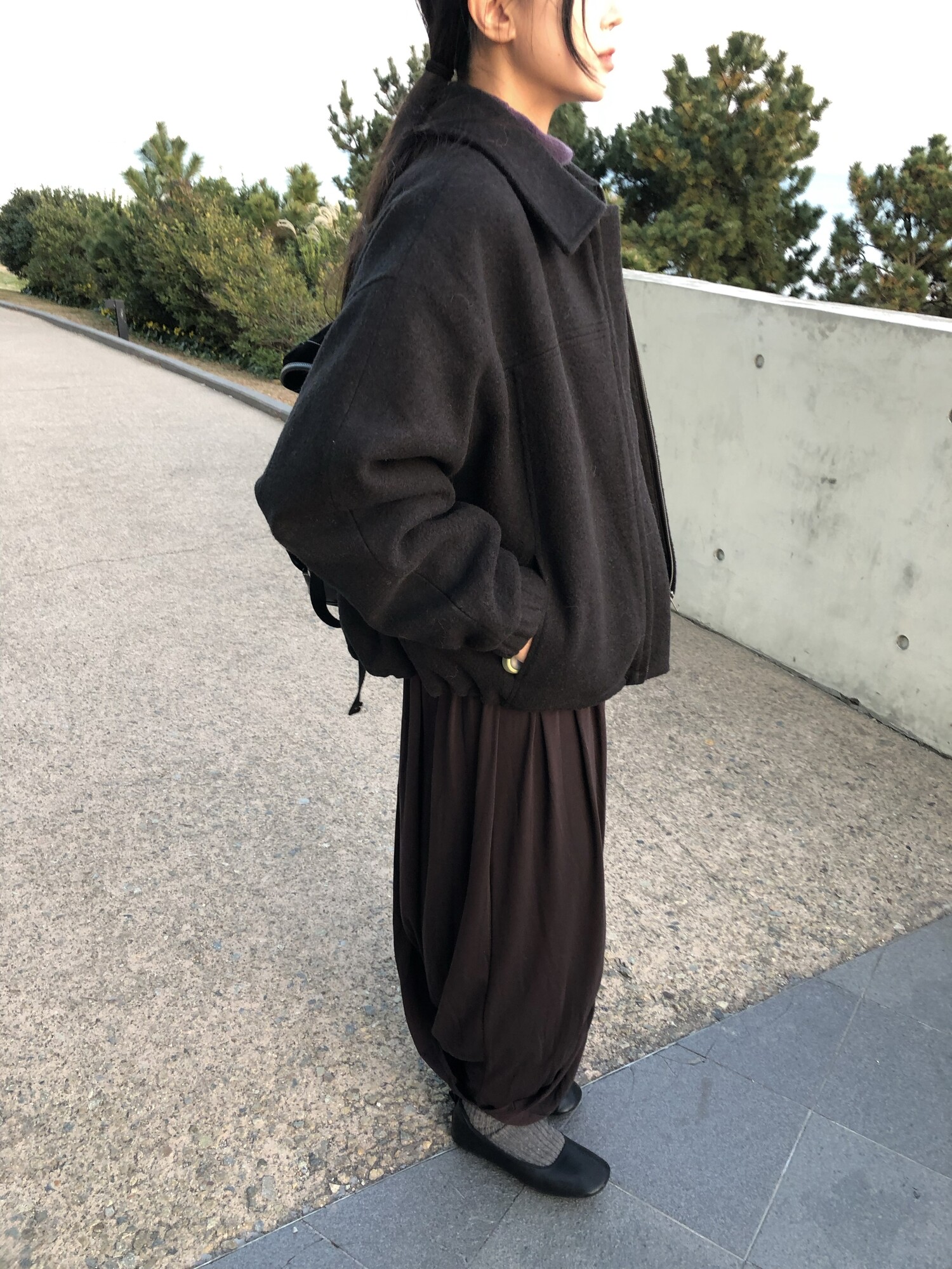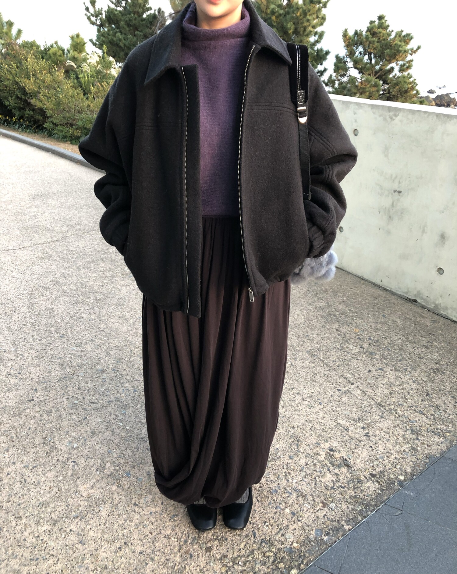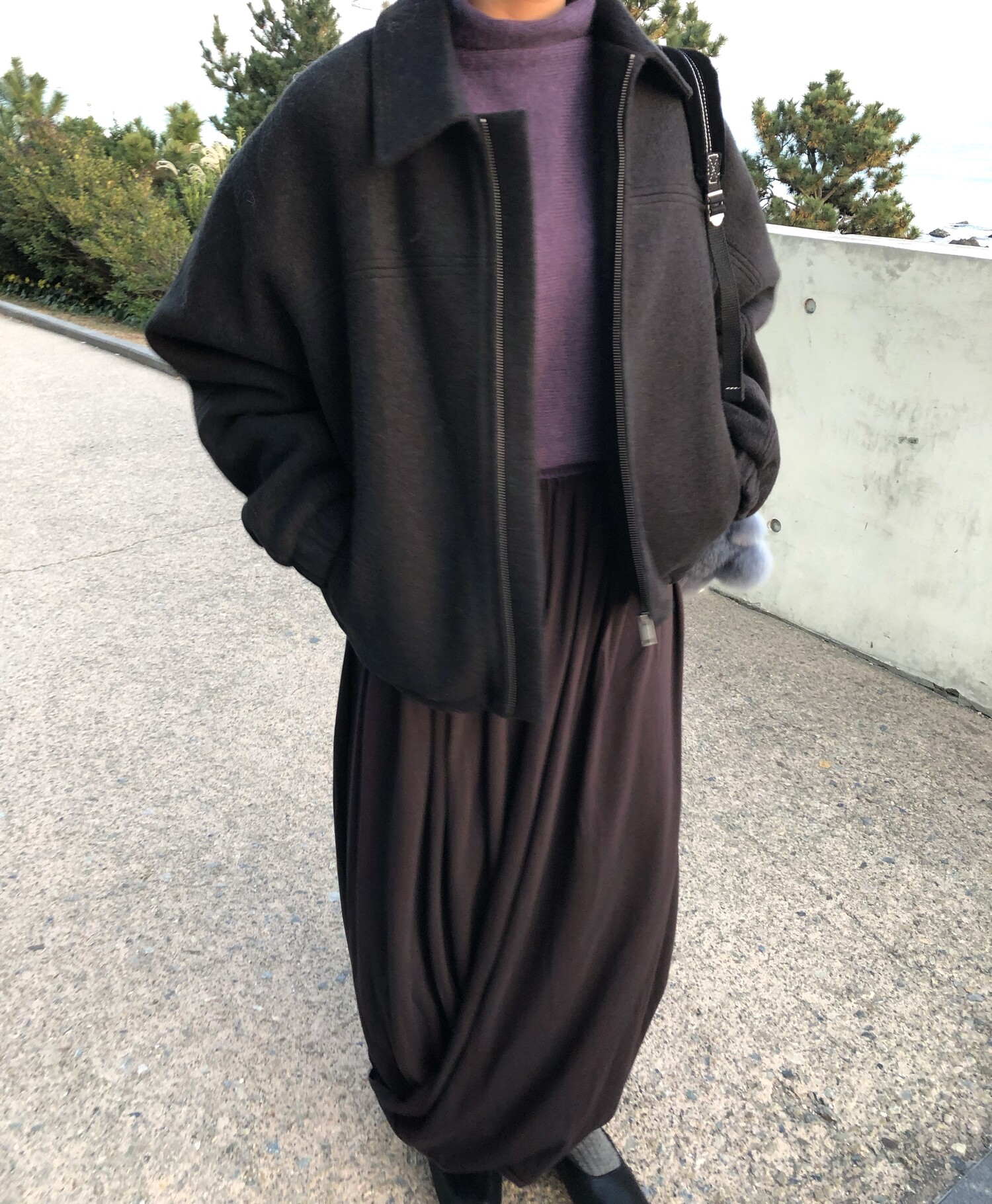 -압축된 부클 울에 한 번 더 견고하게 합포 작업을 더해 만졌을 때 바로 느껴지는 탄탄한 질감의 울 크롭 점퍼입니다.