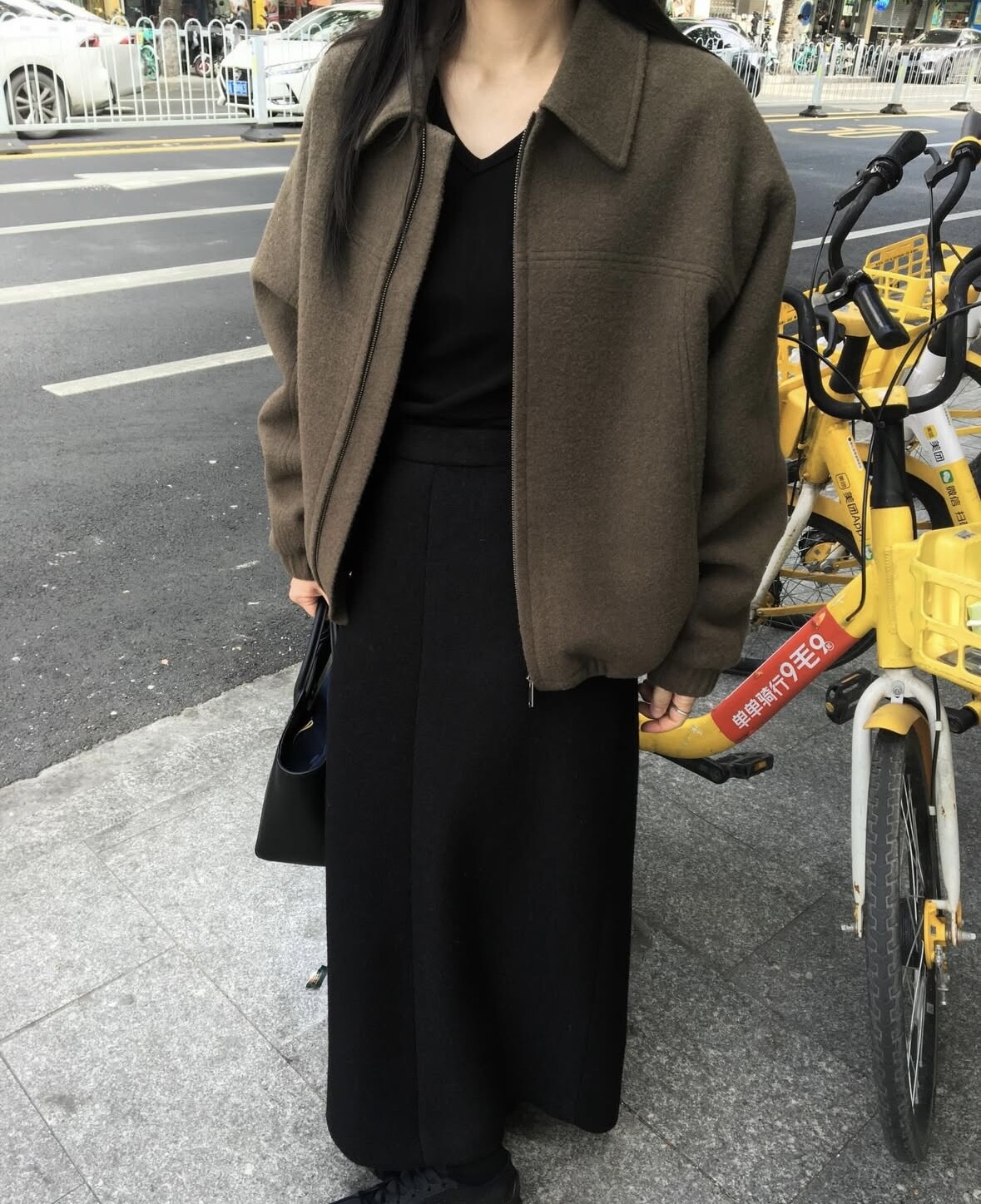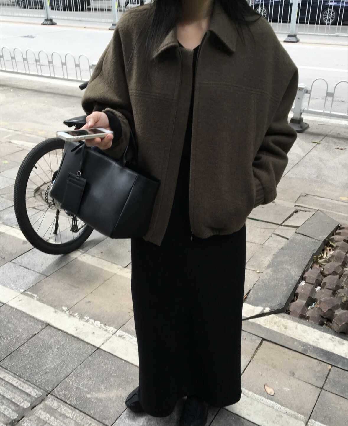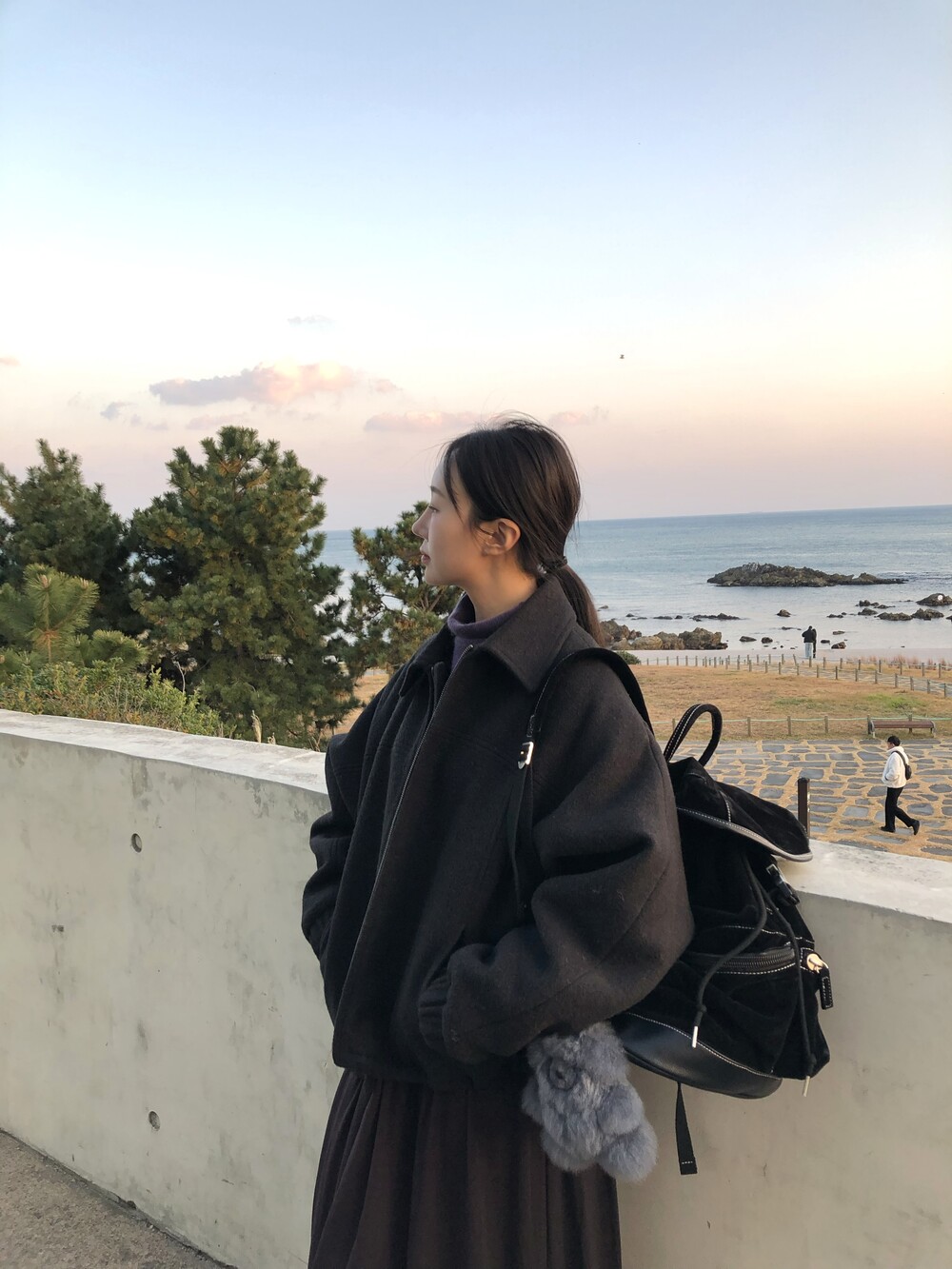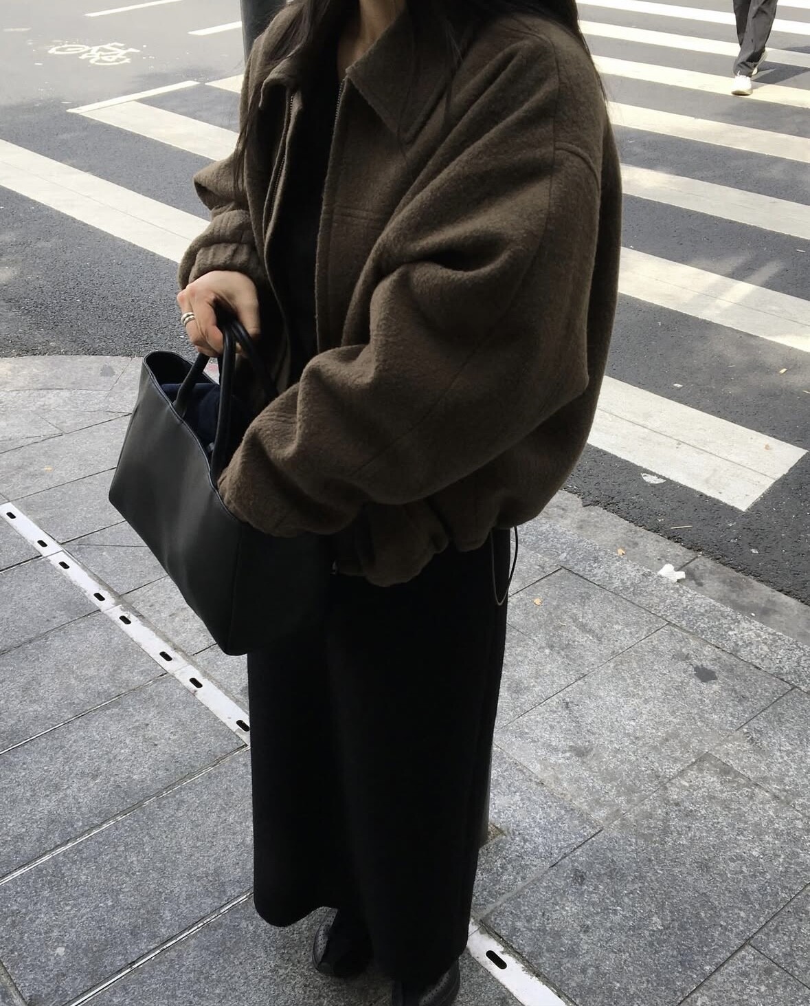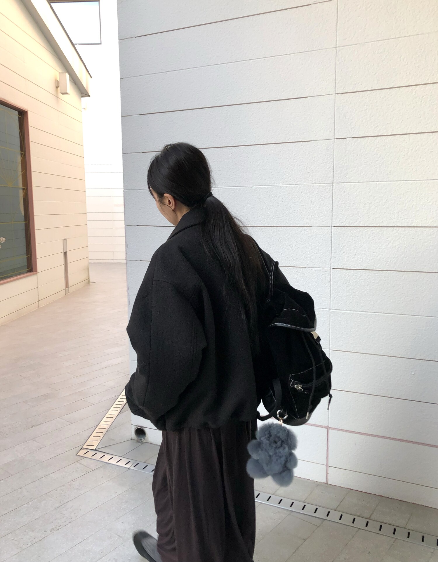 -압축된 부클 울에 한 번 더 견고하게 합포 작업을 더해 만졌을 때 바로 느껴지는 탄탄한 질감의 울 크롭 점퍼입니다.