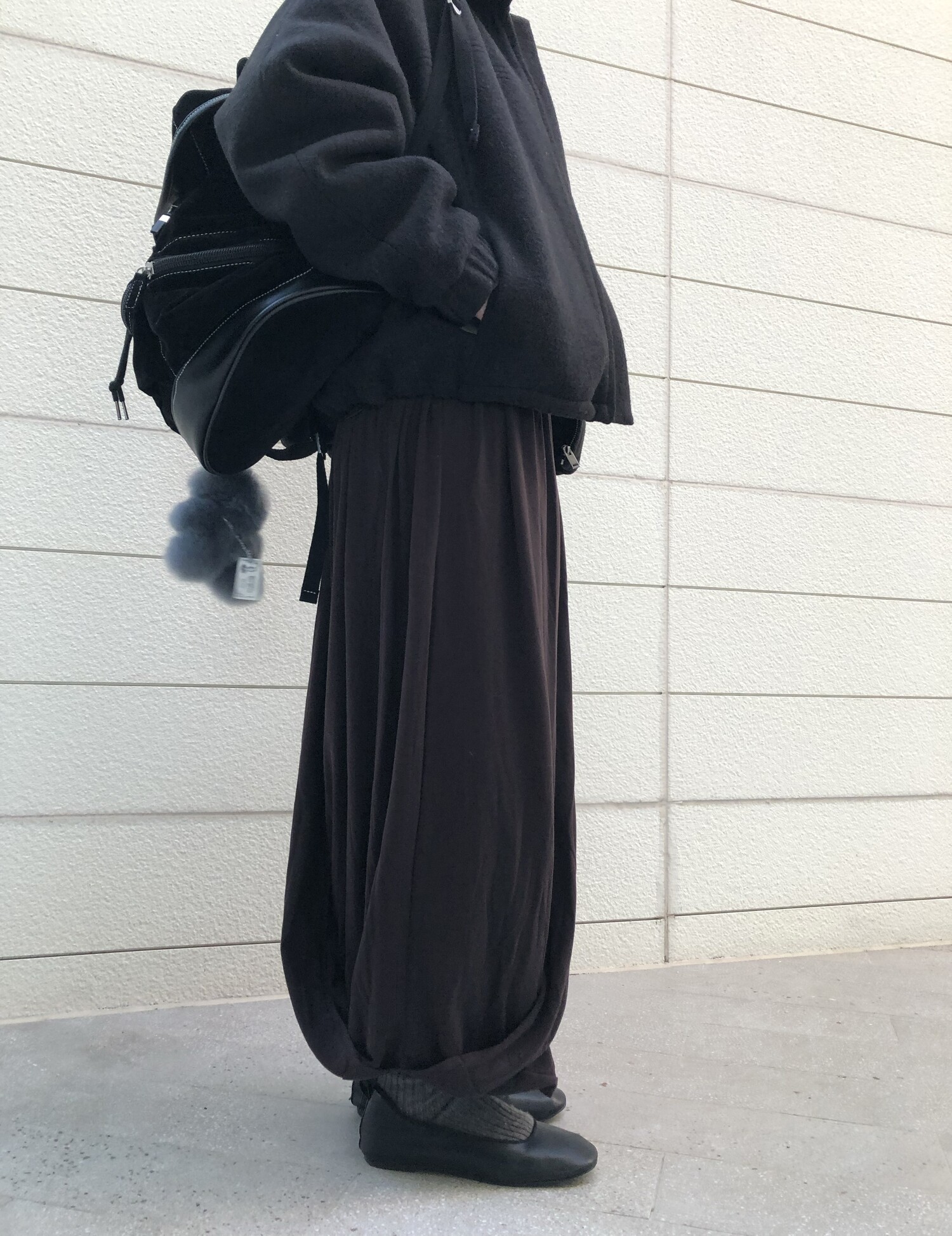 -밑단 스트링 조절 시 크롭한 기장과 밑단 양사이드 스트링으로 조절