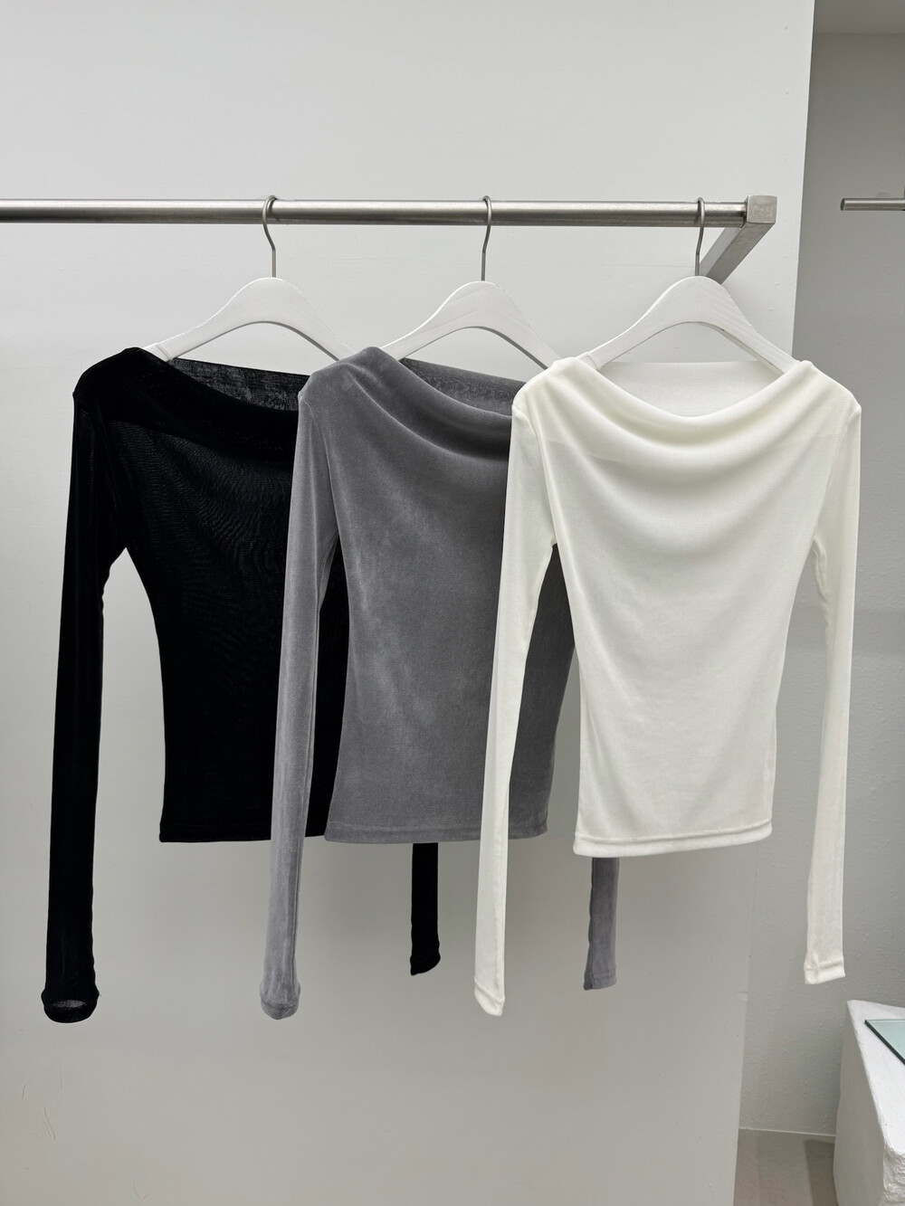 Velour boat neck t-3color