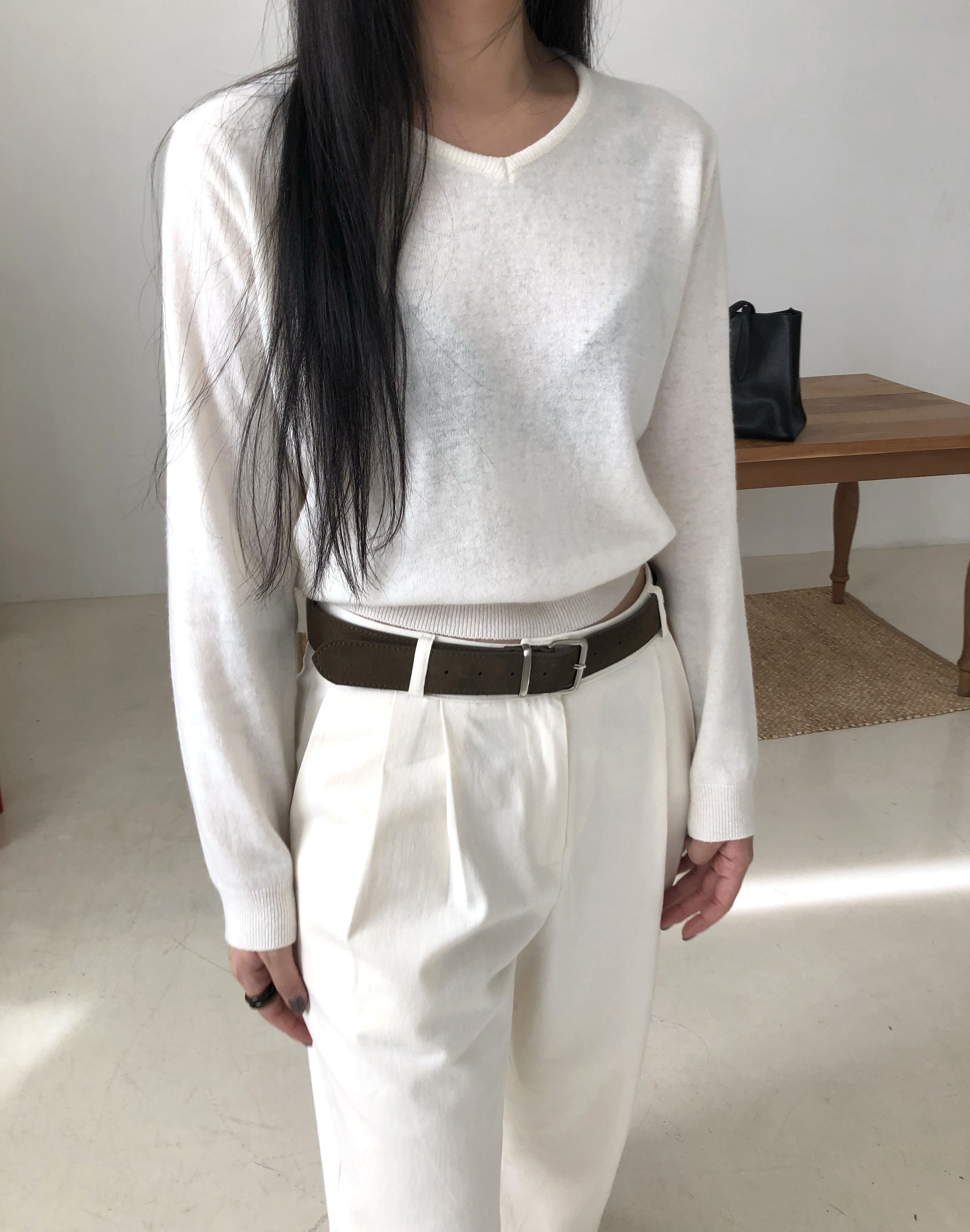 Wool crop v neck knit-5color