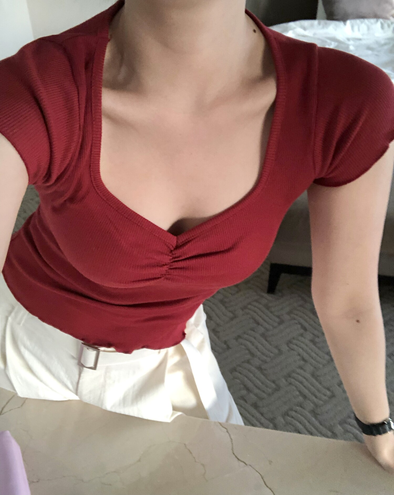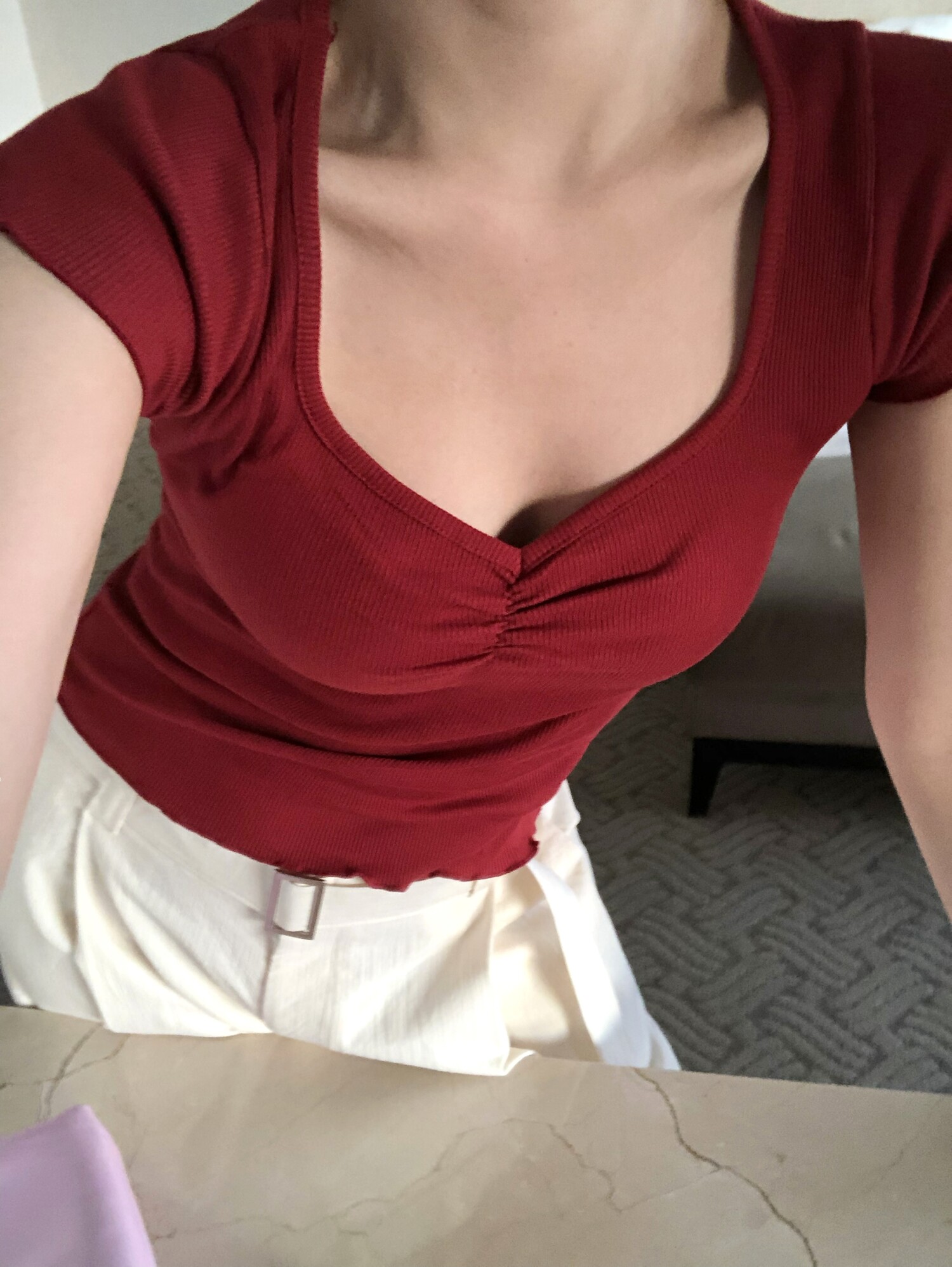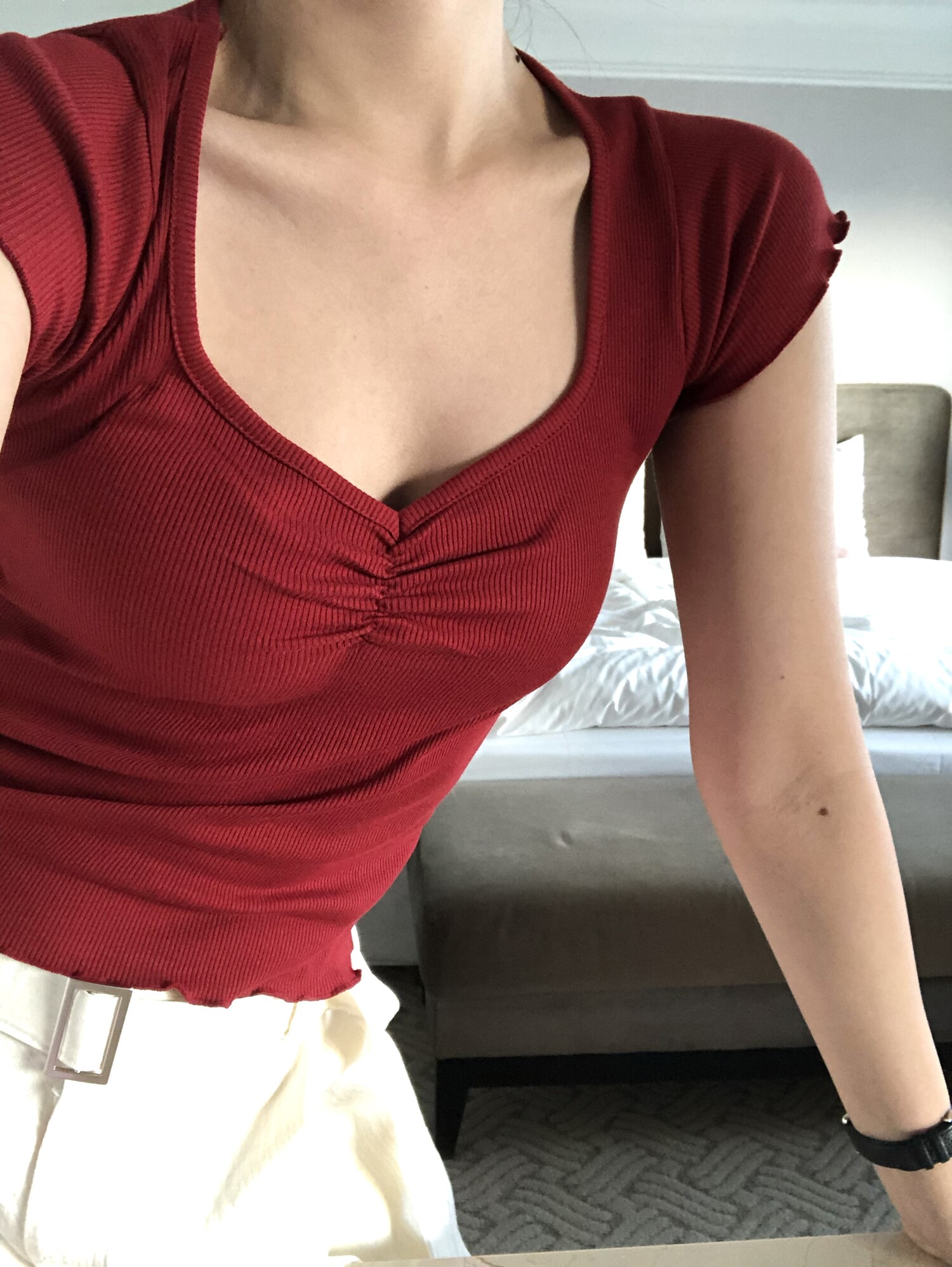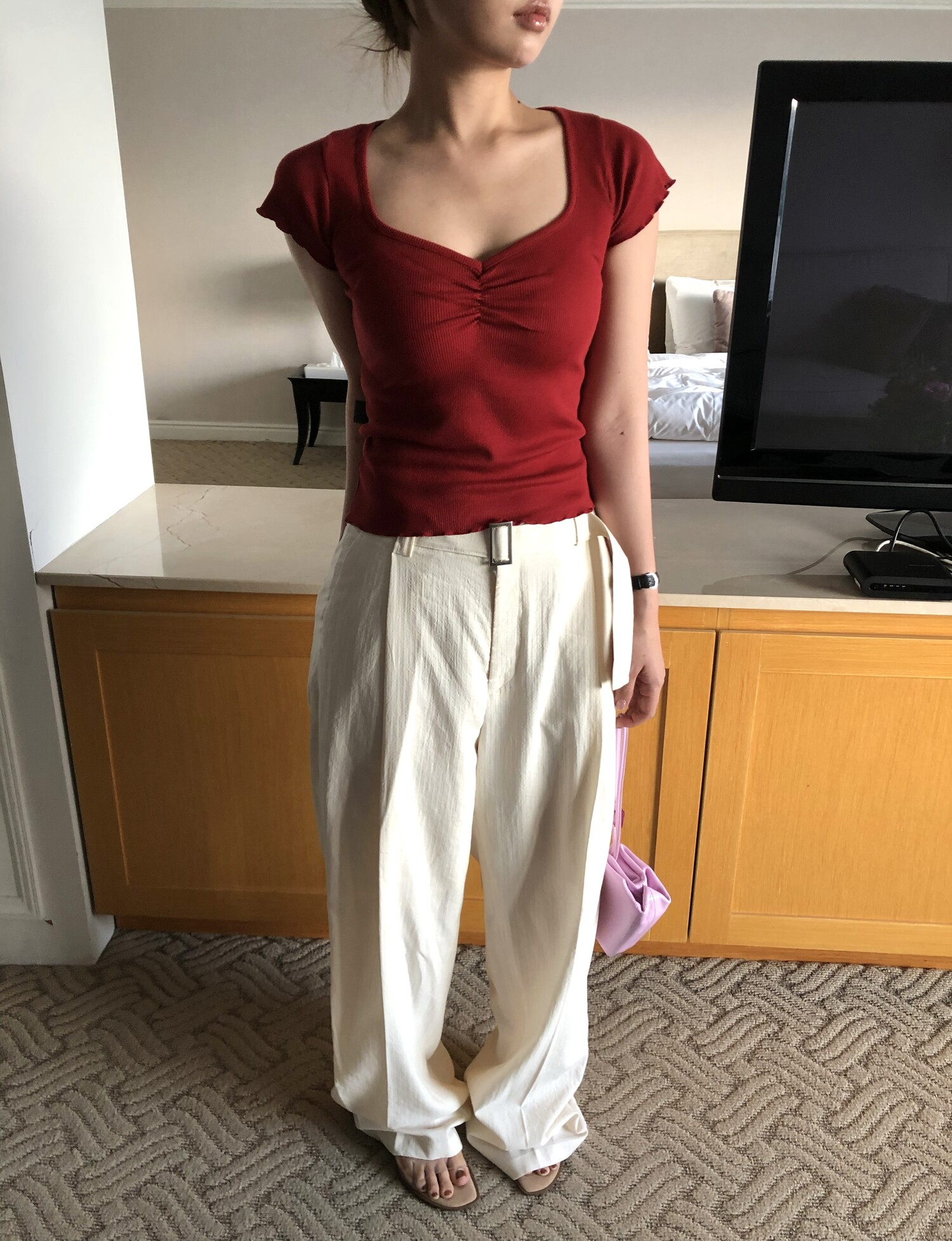 red 착용-명도 낮은 차분한 딥레드 컬러입니다.