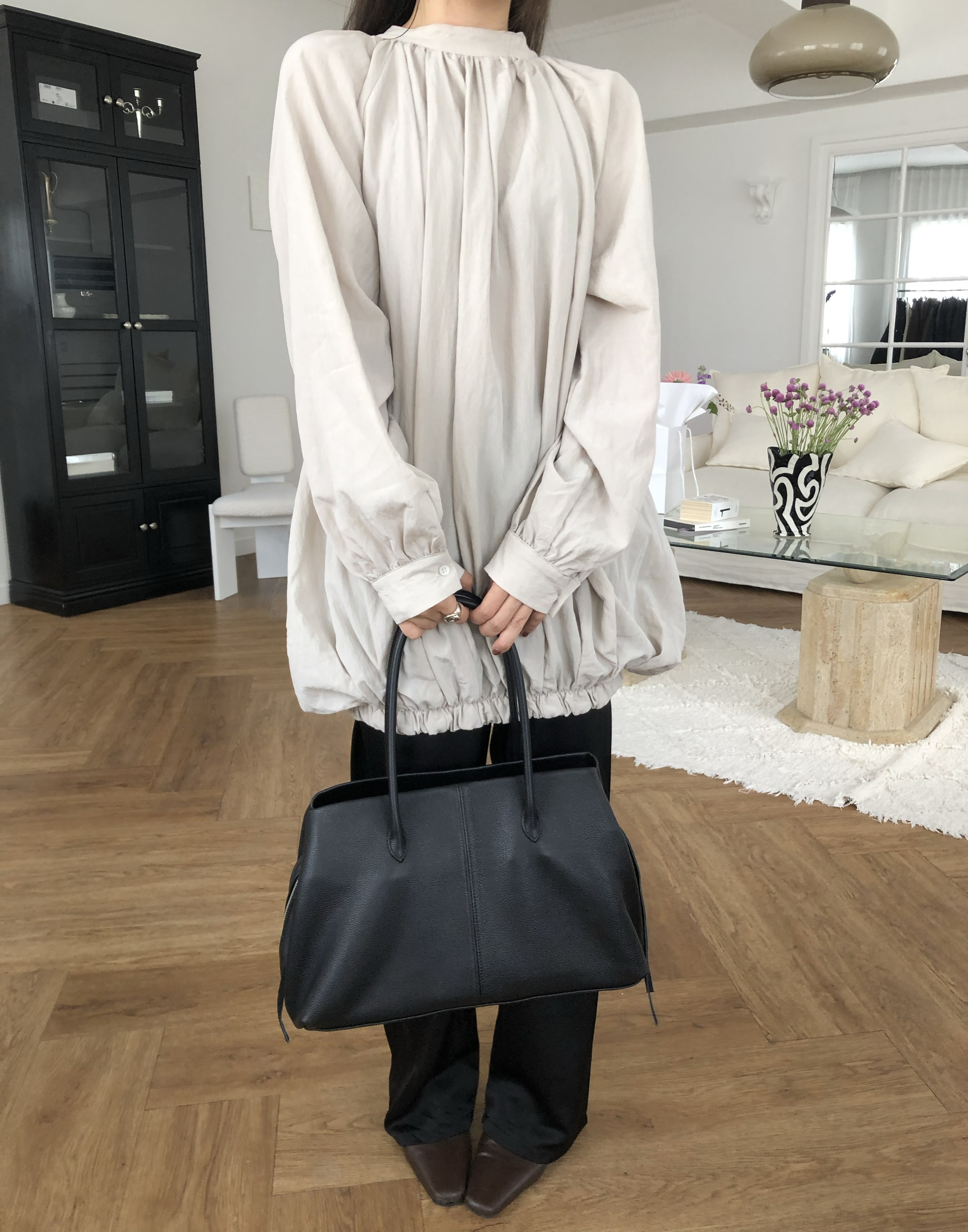 -앞뒤 구분없이 착용 가능한 블라우스 겸 원피스입니다. 드레시한 주름이 여성스럽고 여리한 무드를 연출해줍니다.