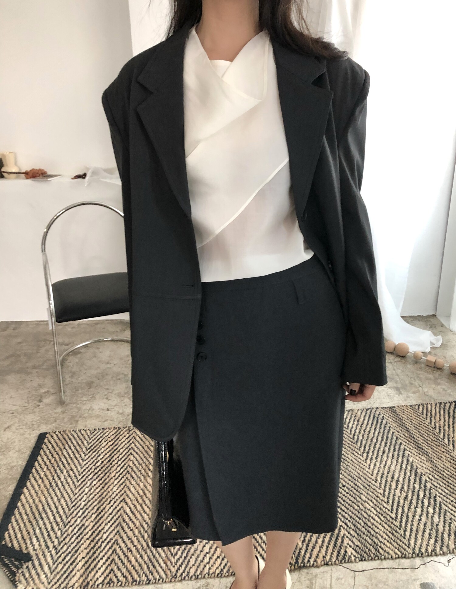 *Gentle lined half jk-charcoal 색상과 셋업처럼 착용하였습니다.