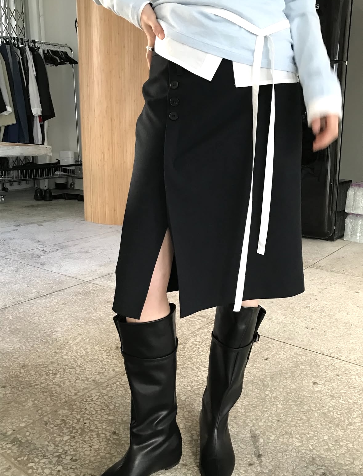 s-허리36/힙47/밑단51/총장56/앞슬릿31