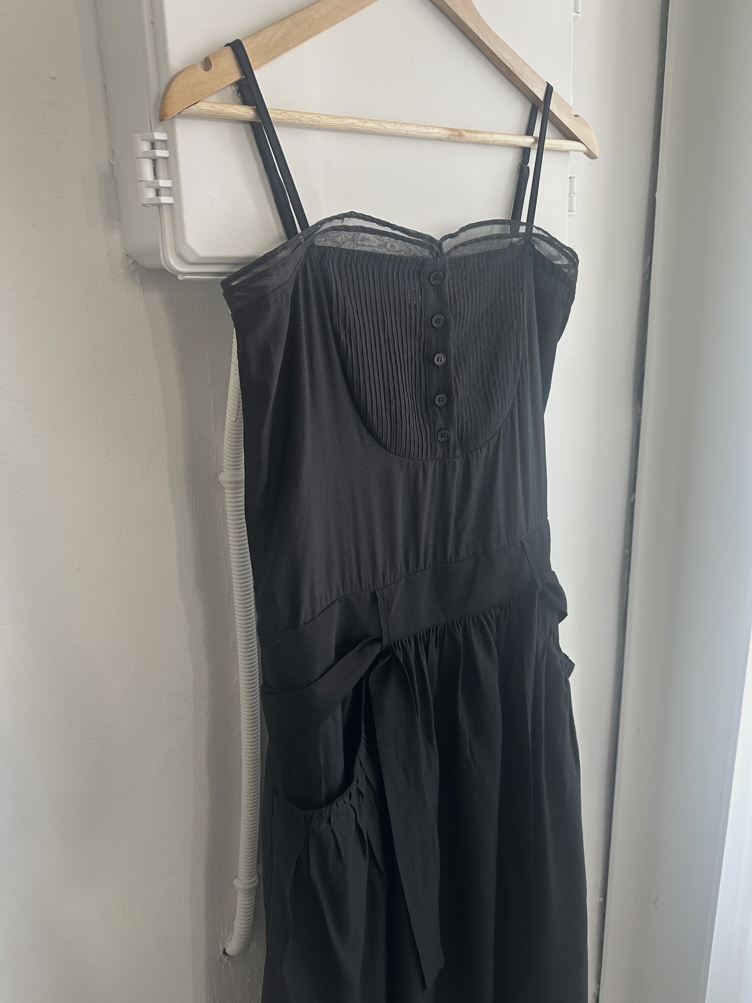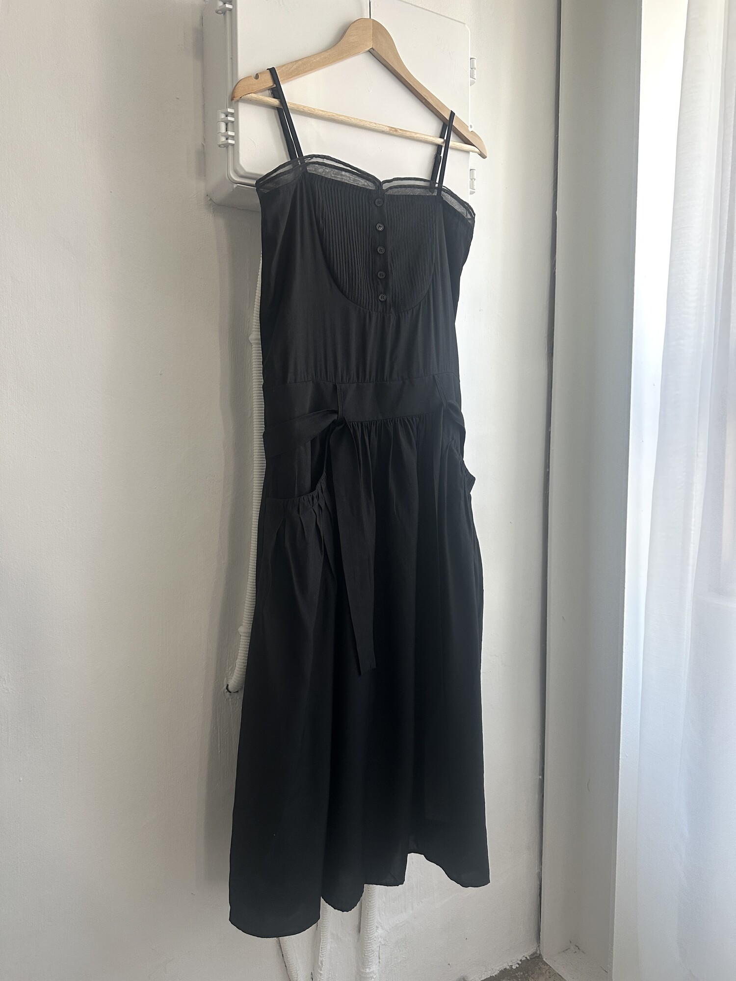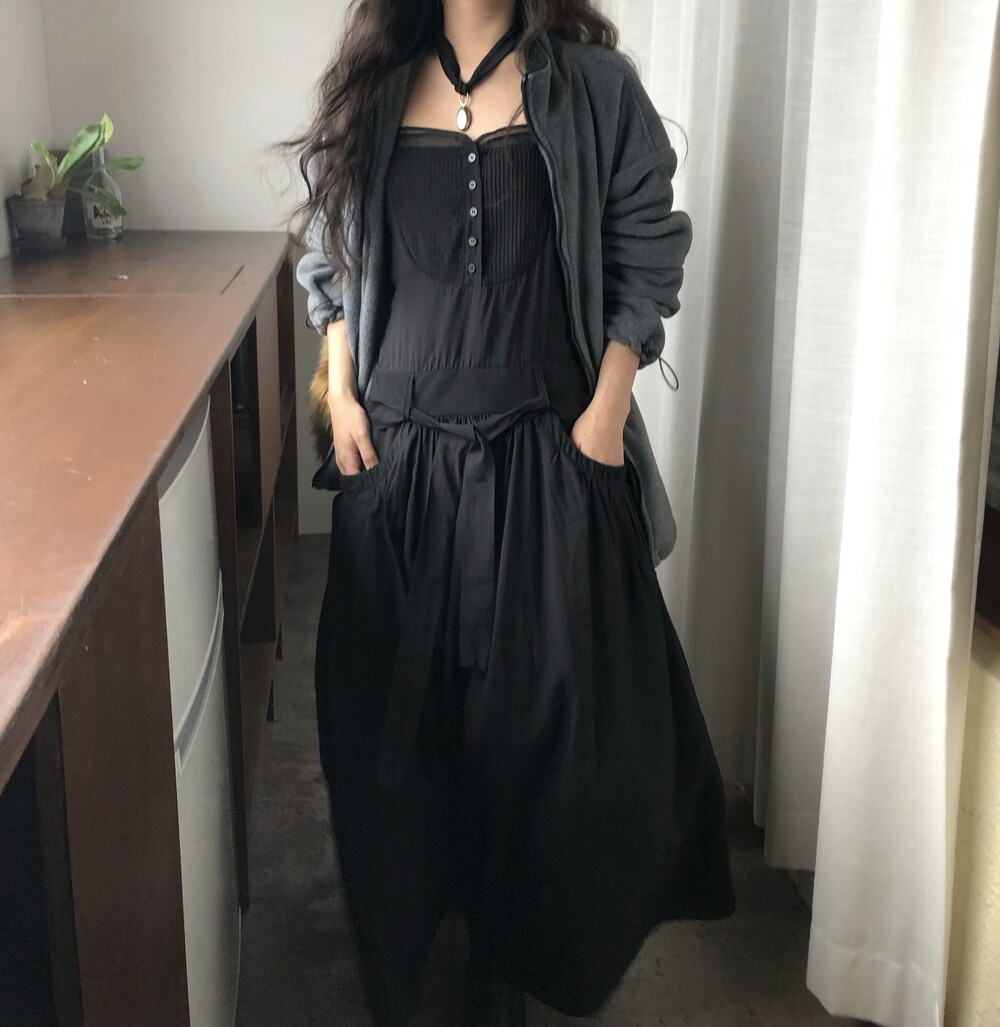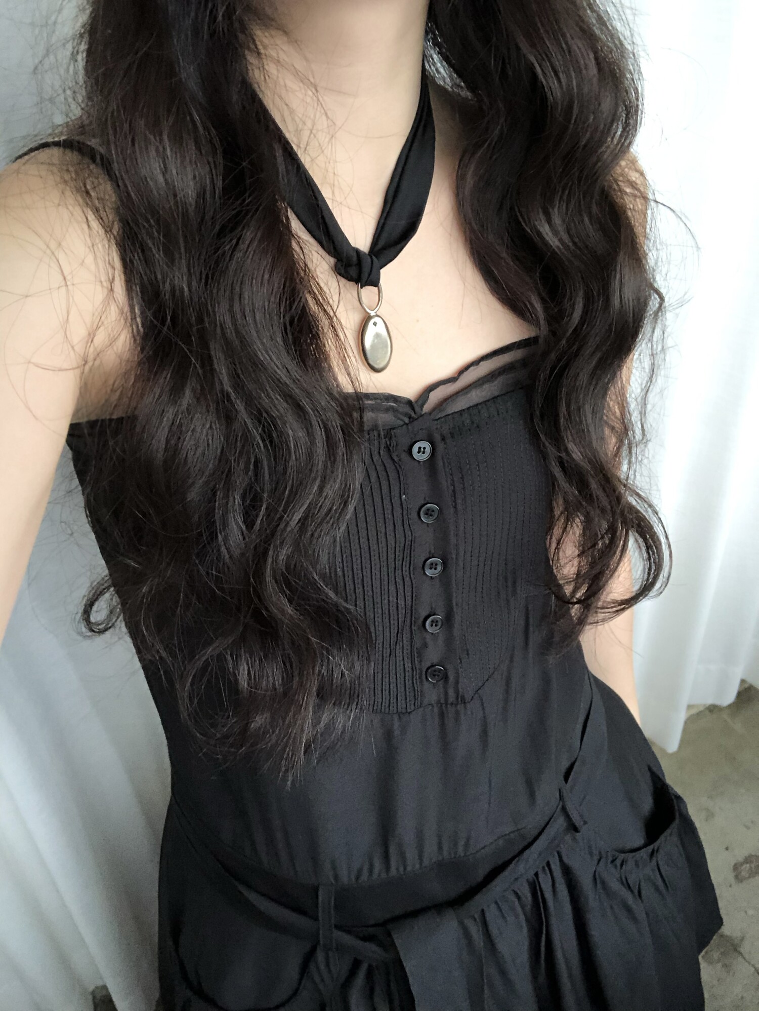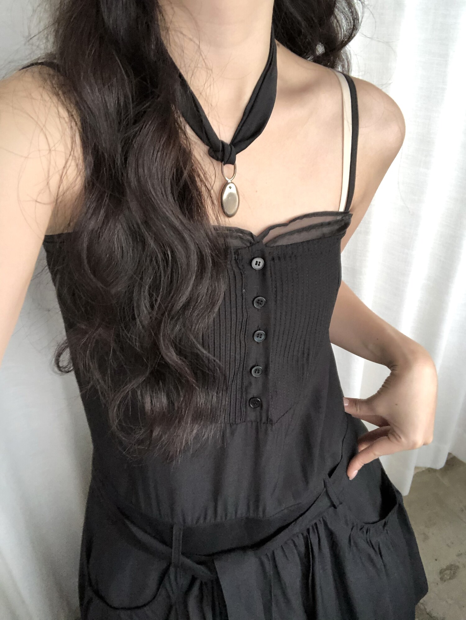 바스트 부분의 핀턱 디테일이 특히나 러블리한 무드를 연출해주며 어깨 끈길이 조절하여 몸에 맞게 입기 좋습니다.