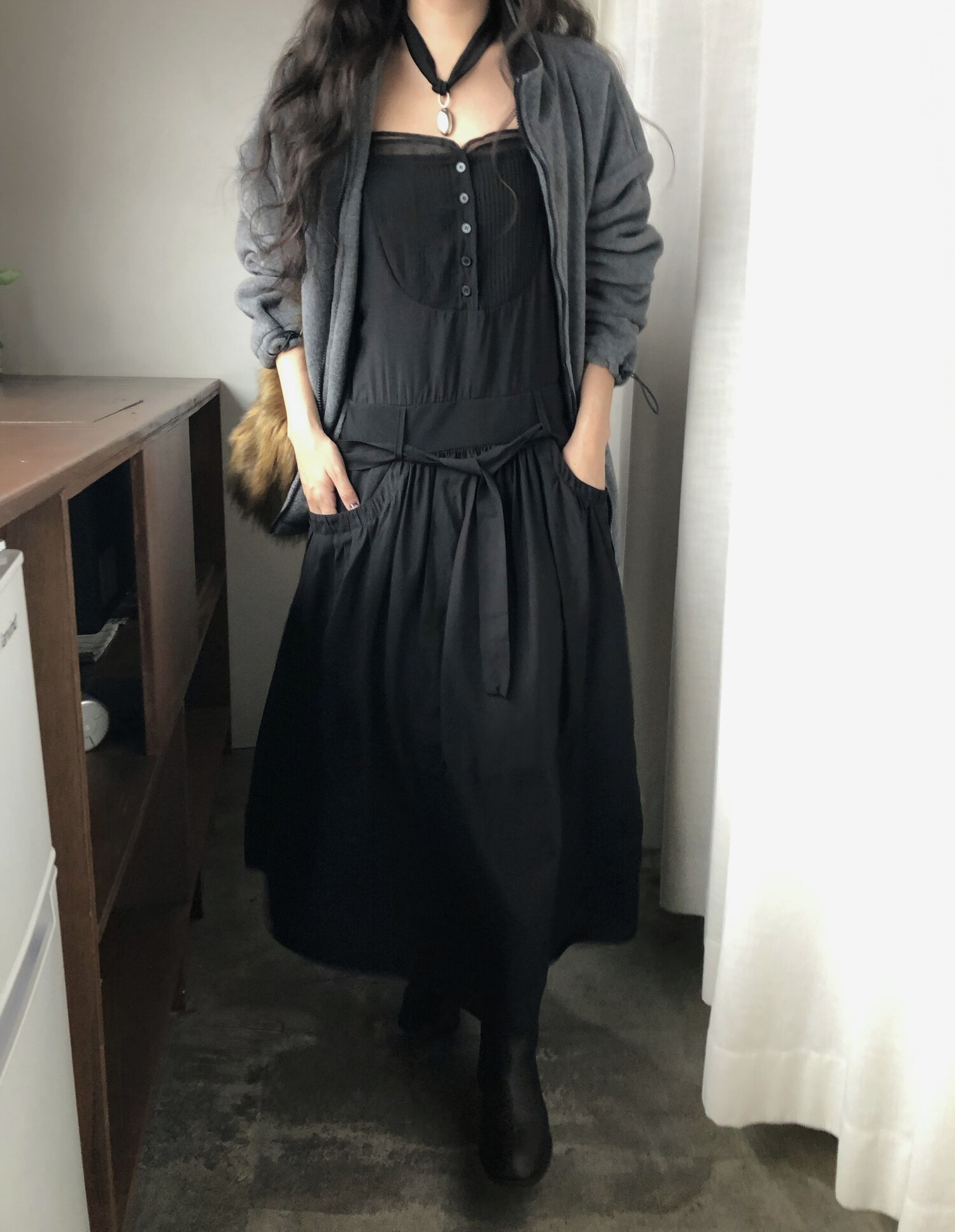 -시즌리스한 소재로 단독 또는 레이어드하여 휘뚤마뚤 즐기기 좋은 벨트 원피스입니다.
