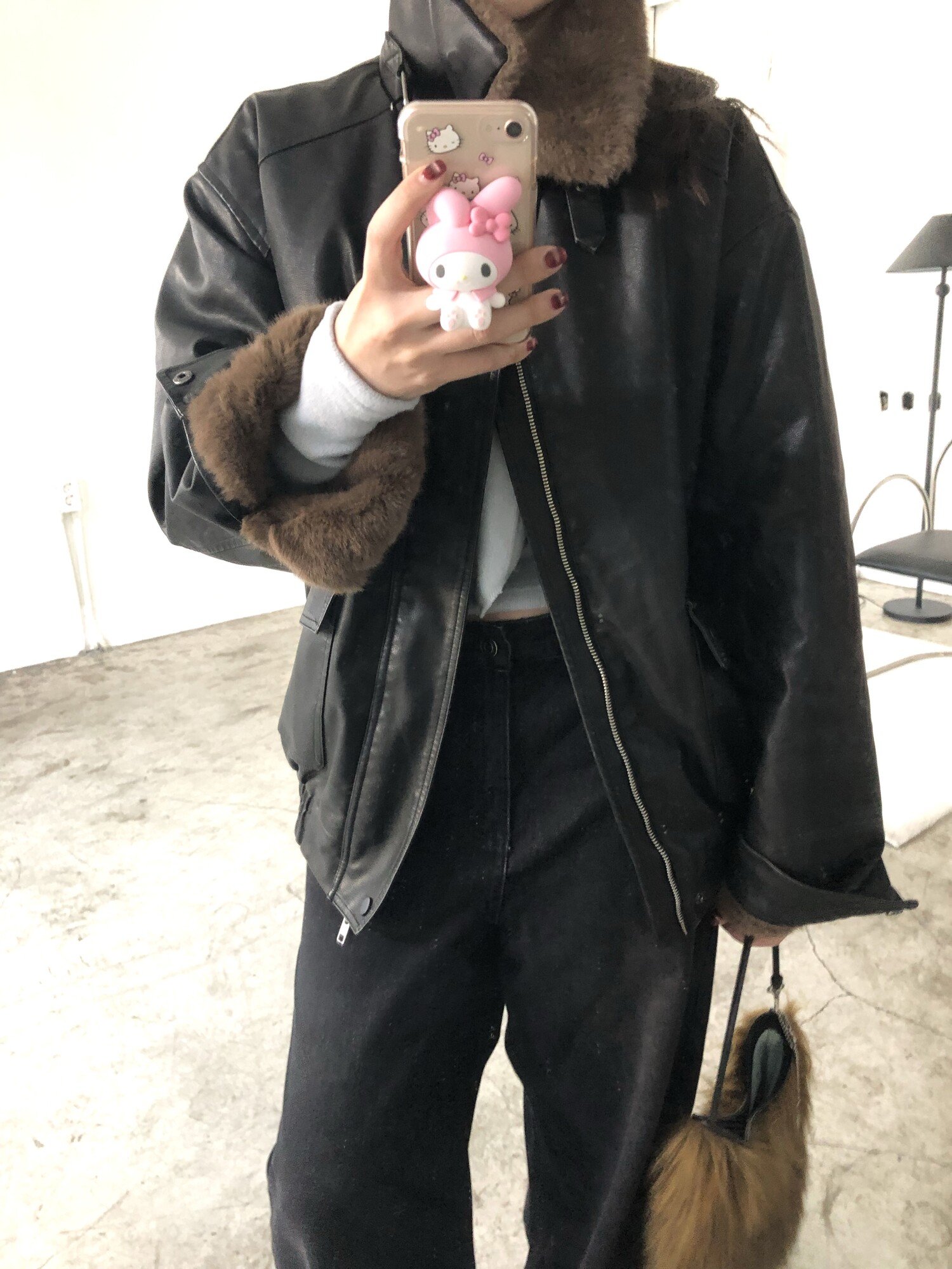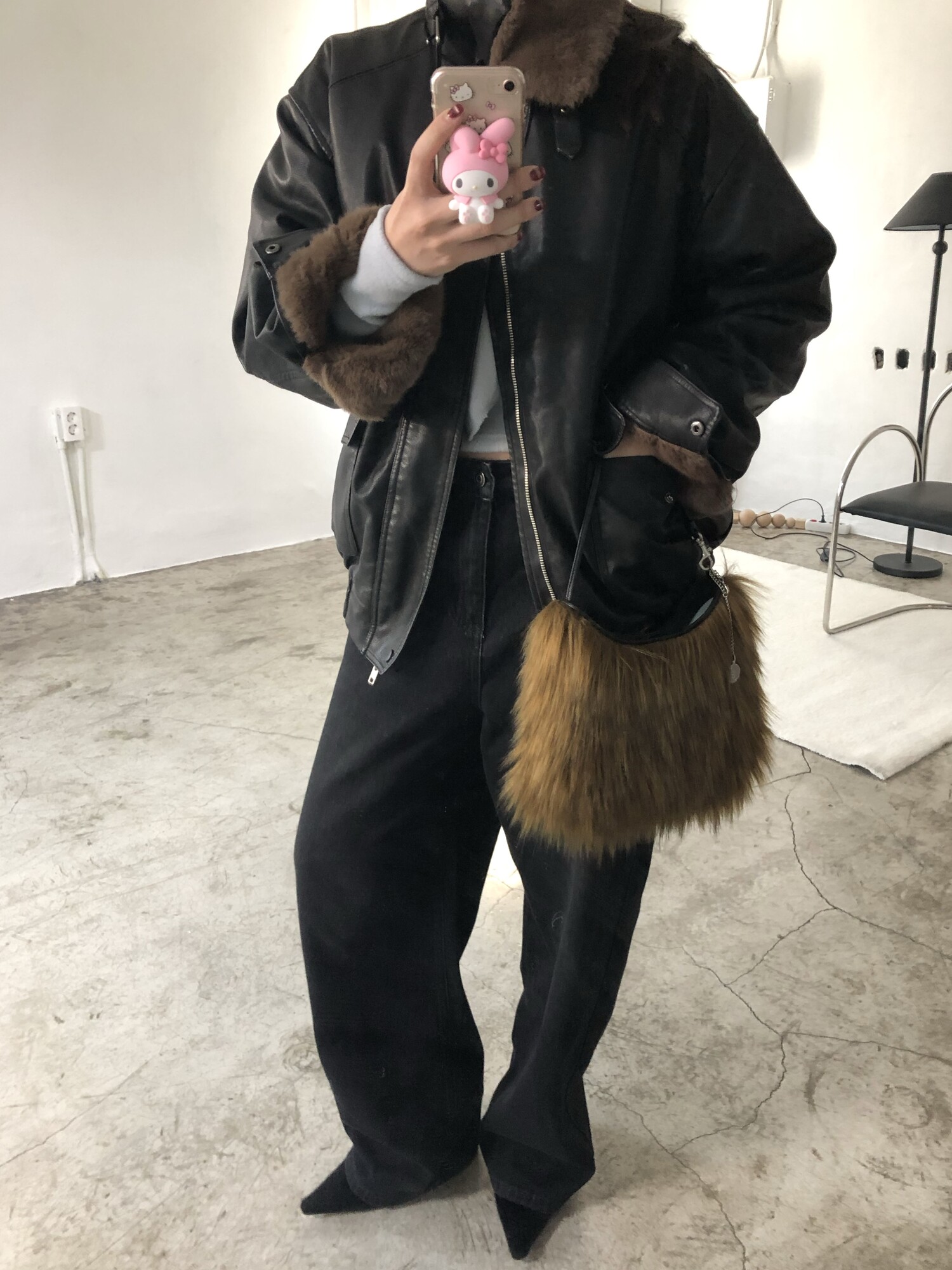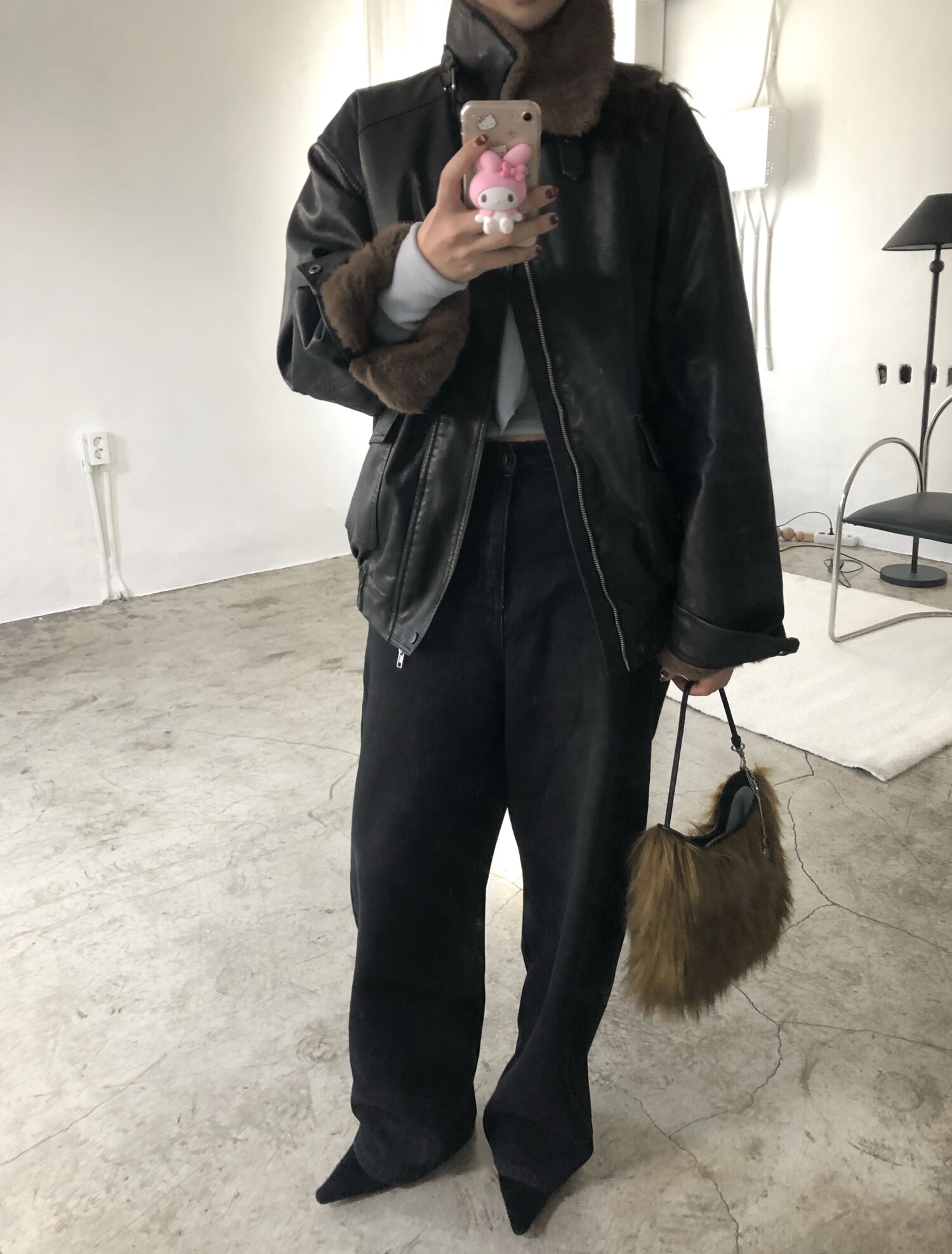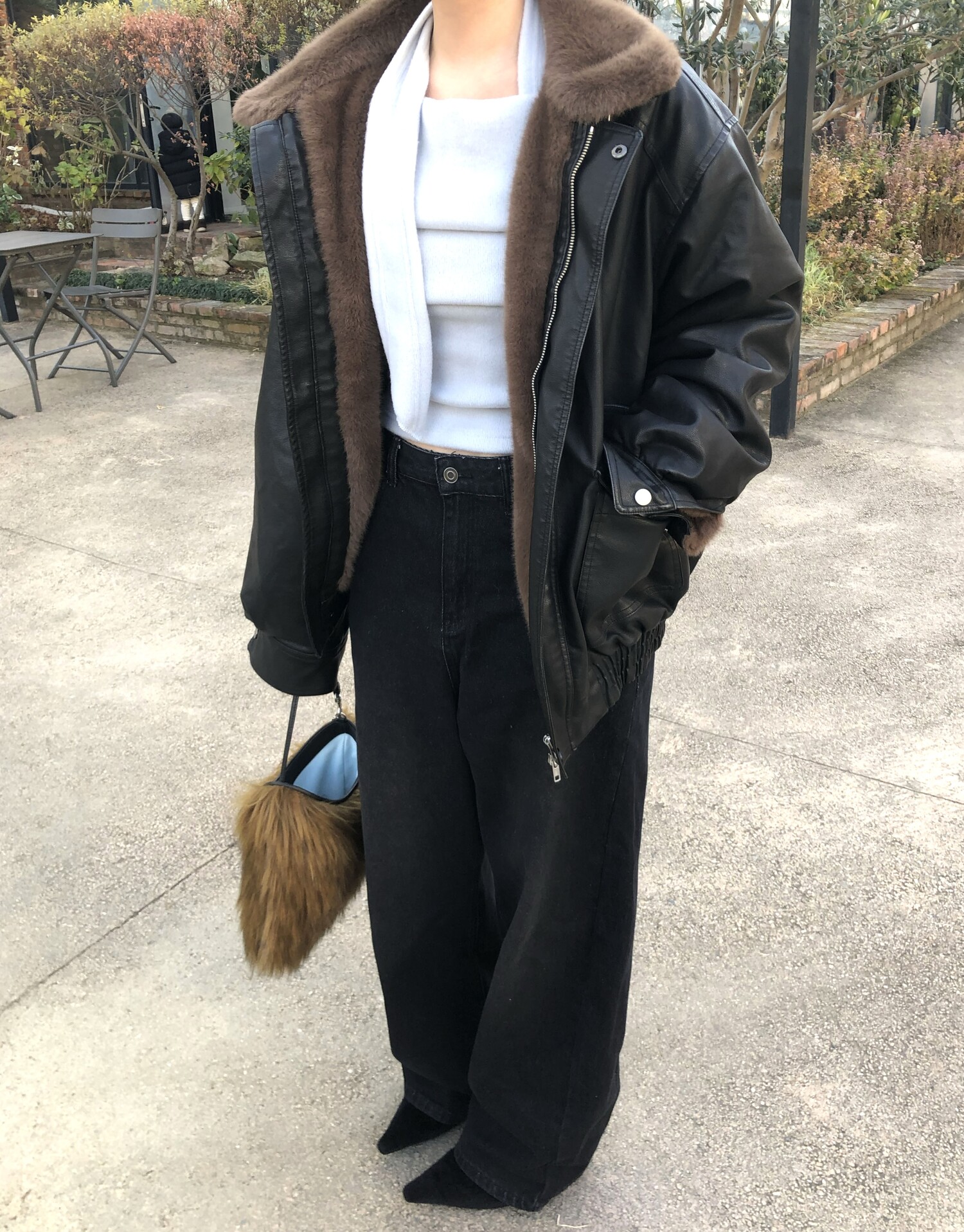 black 착용-두컬러 모두 워싱감있는 레더 사용되었으며 브라운 컬러가 좀 더 워싱감이 잘 보입니다.