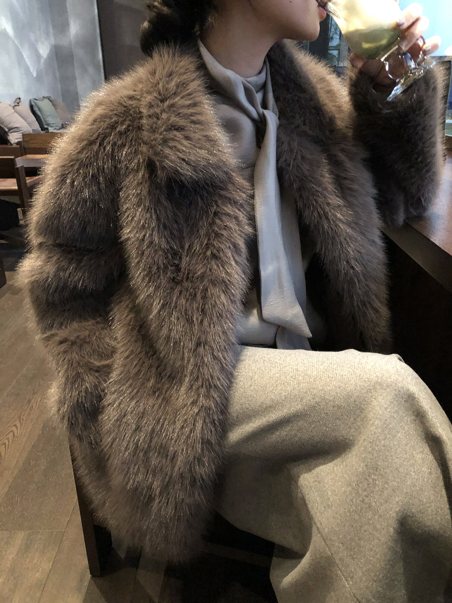 굉장히 부드럽고 볼륨감있는 터치감으로 퍼 아우터 찾으시는 분들께 적극추천드려요.