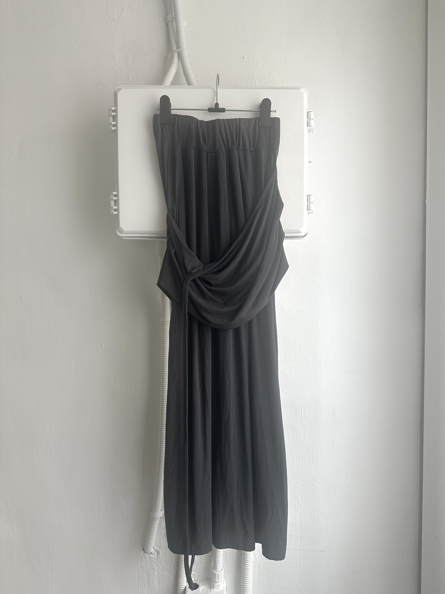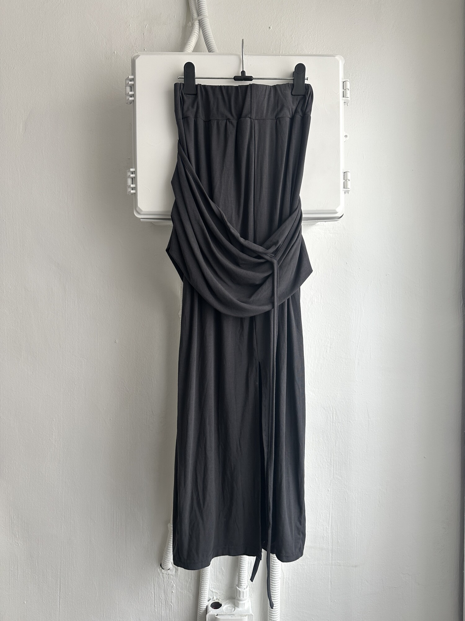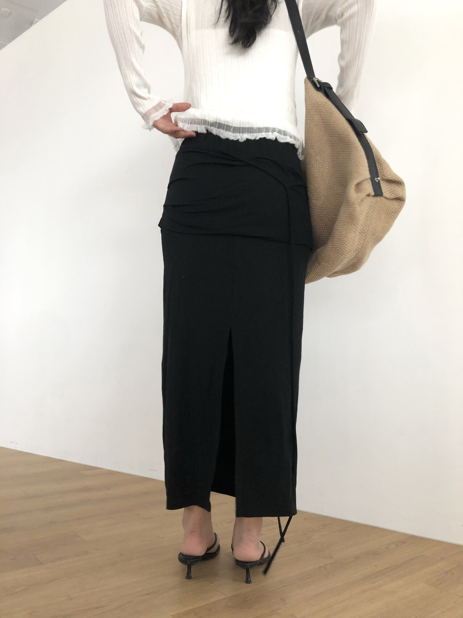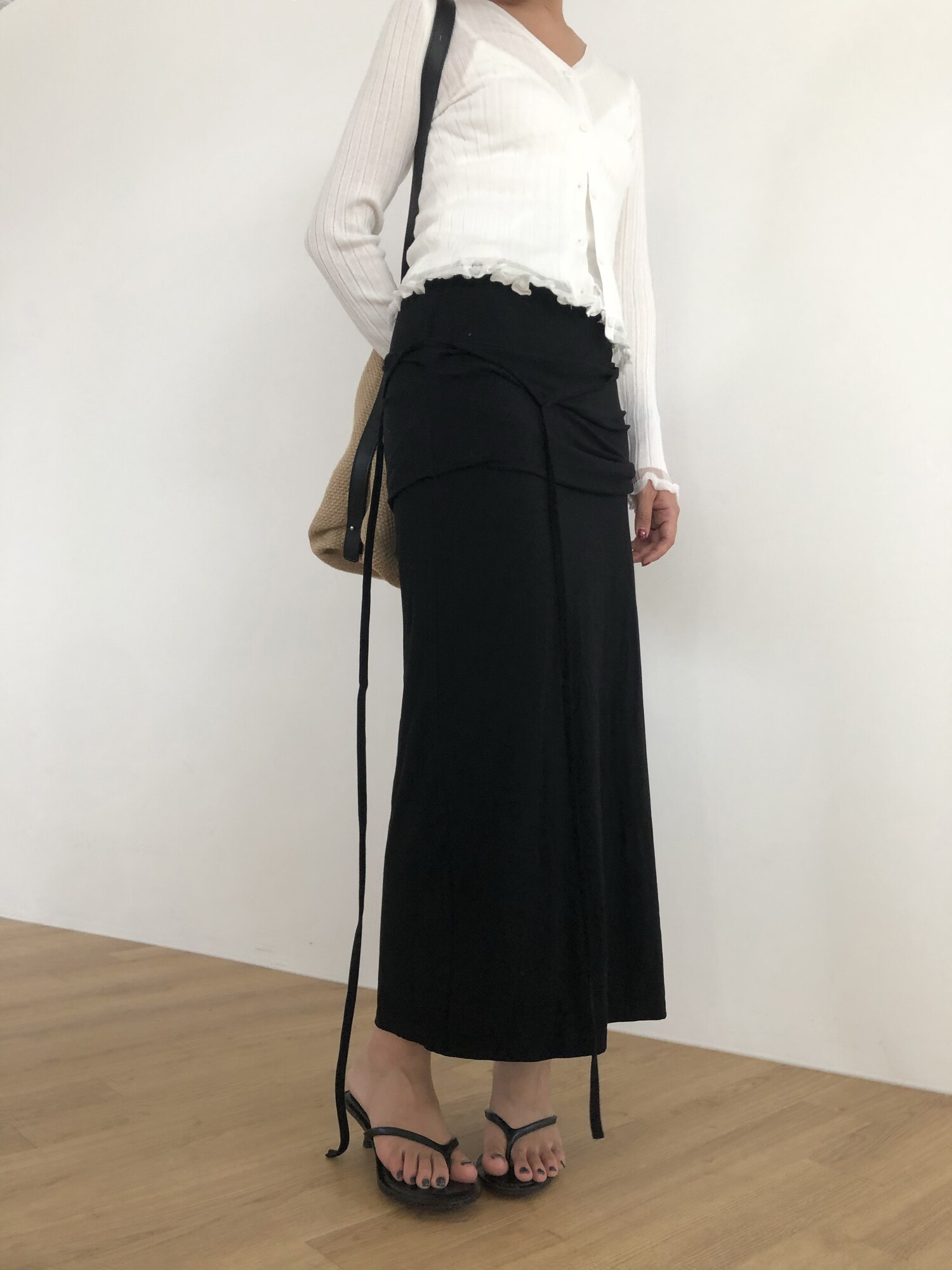 Strap layered long sk-charcoal