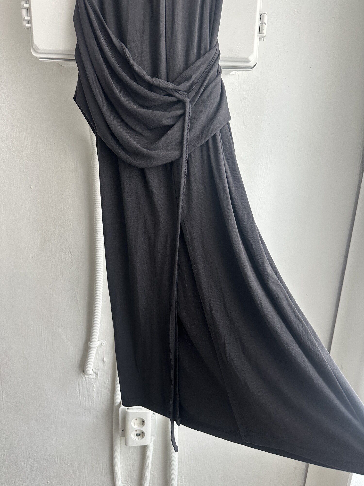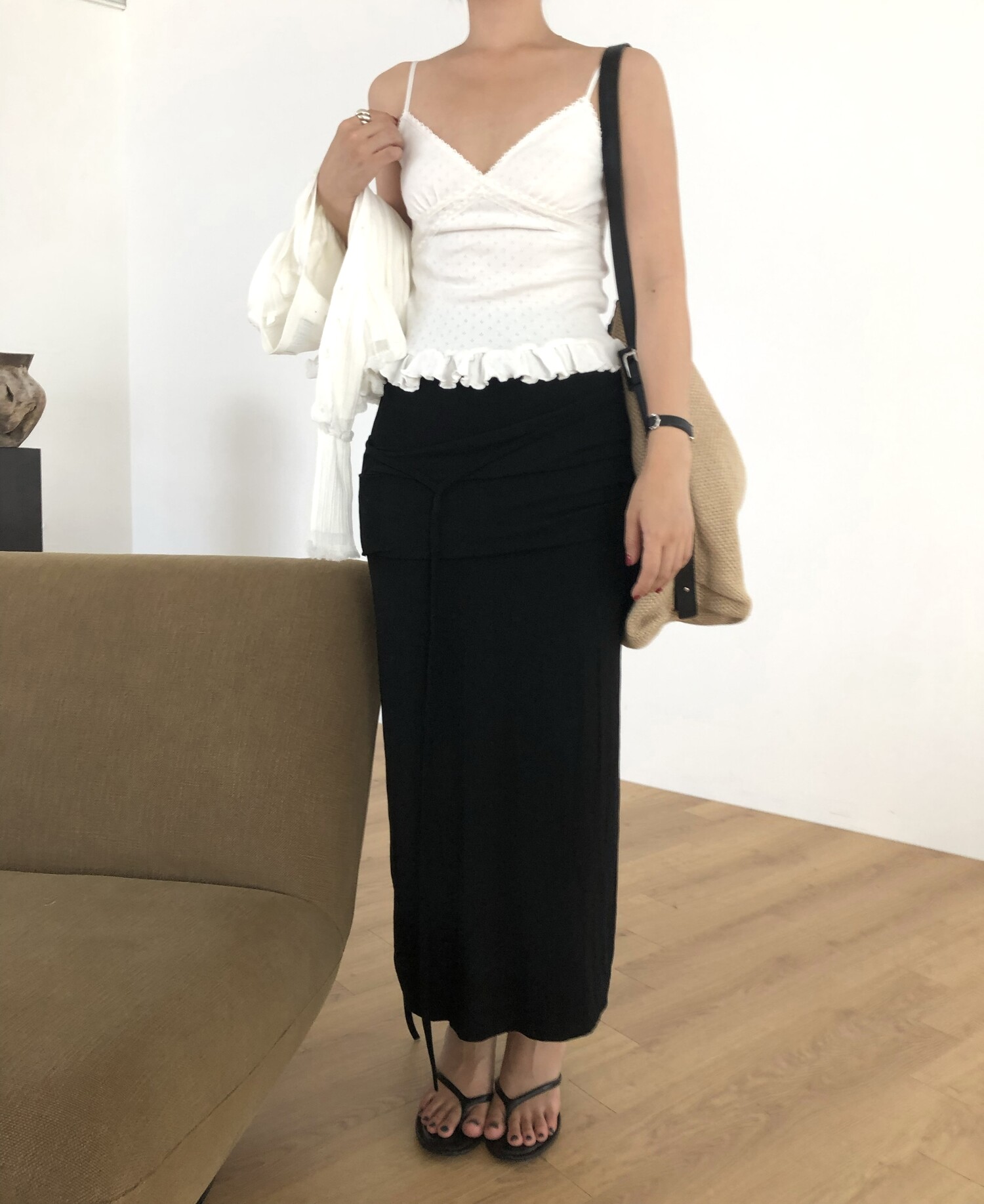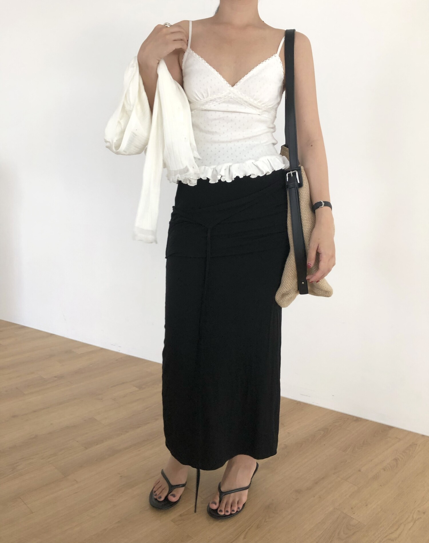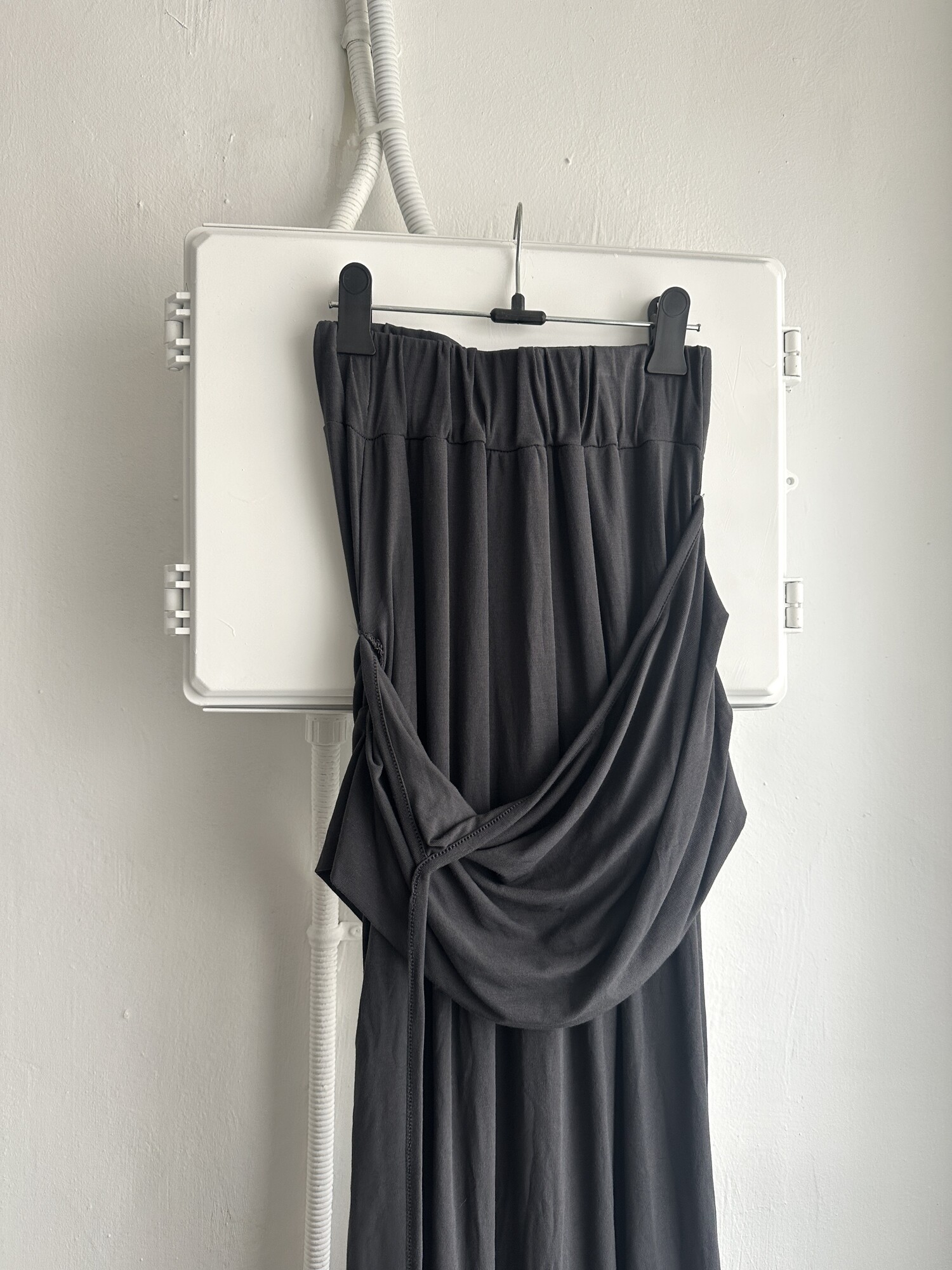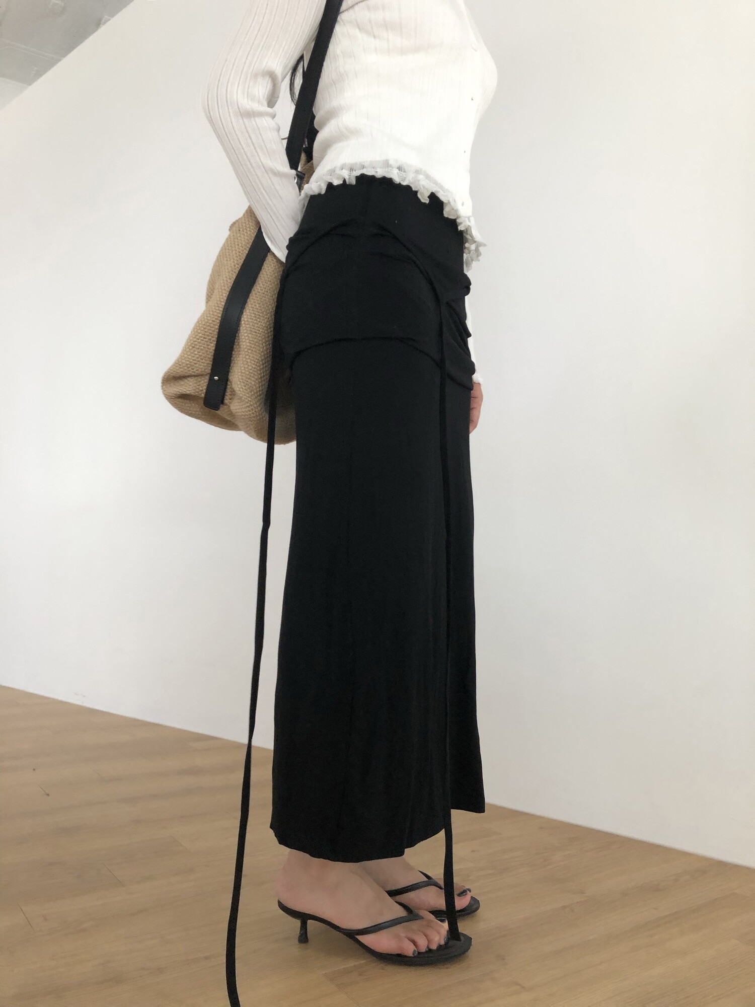 Strap layered long sk-charcoal