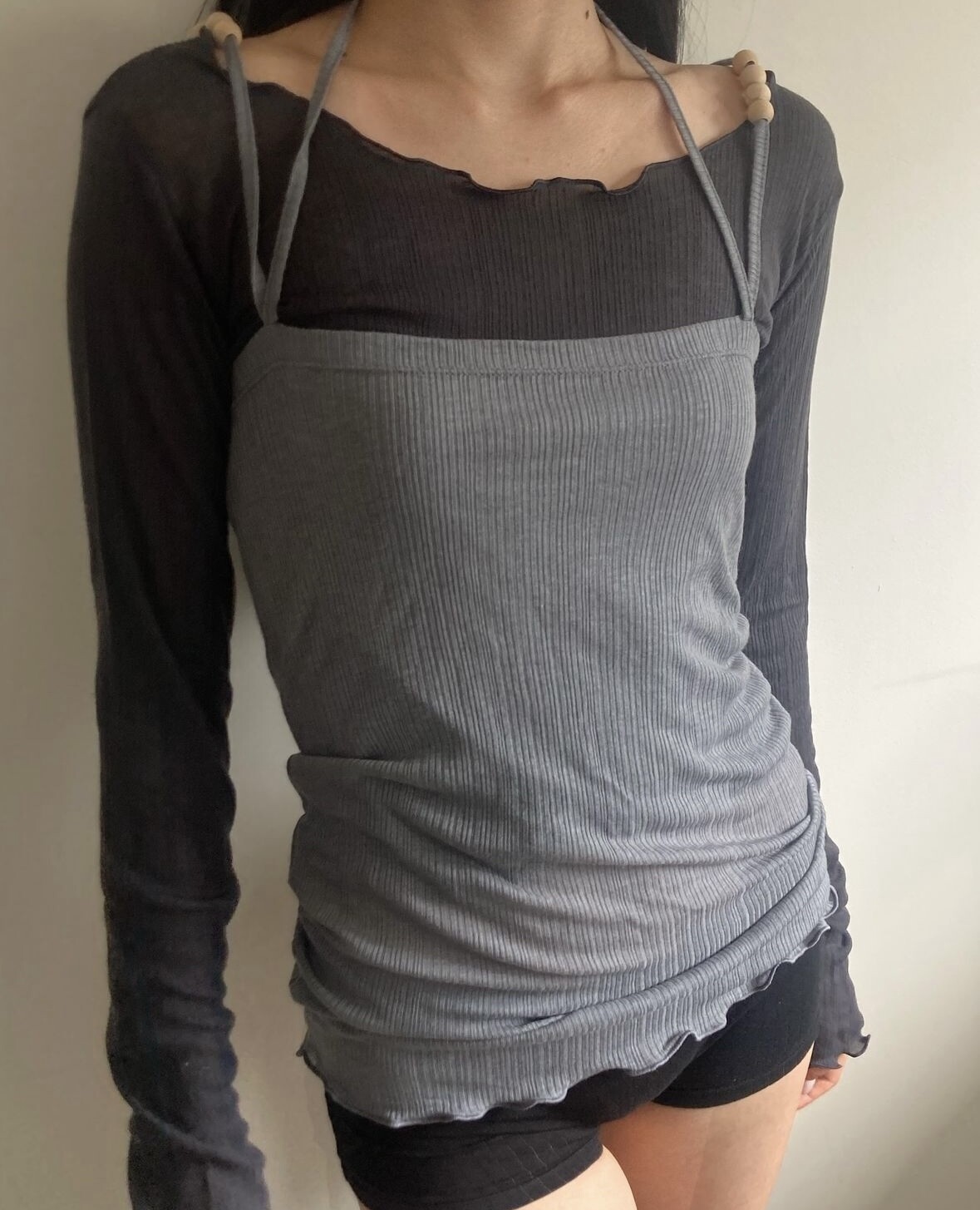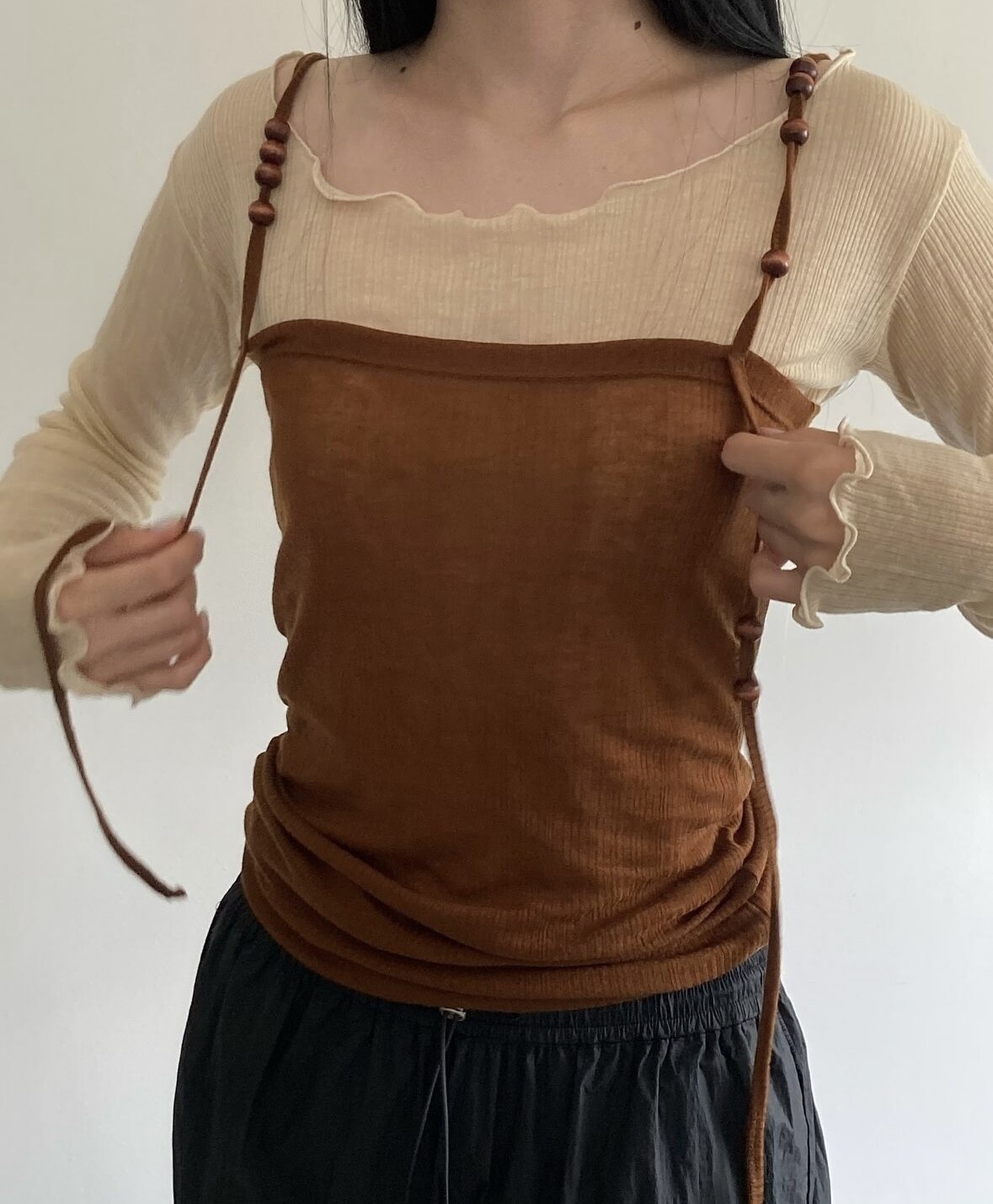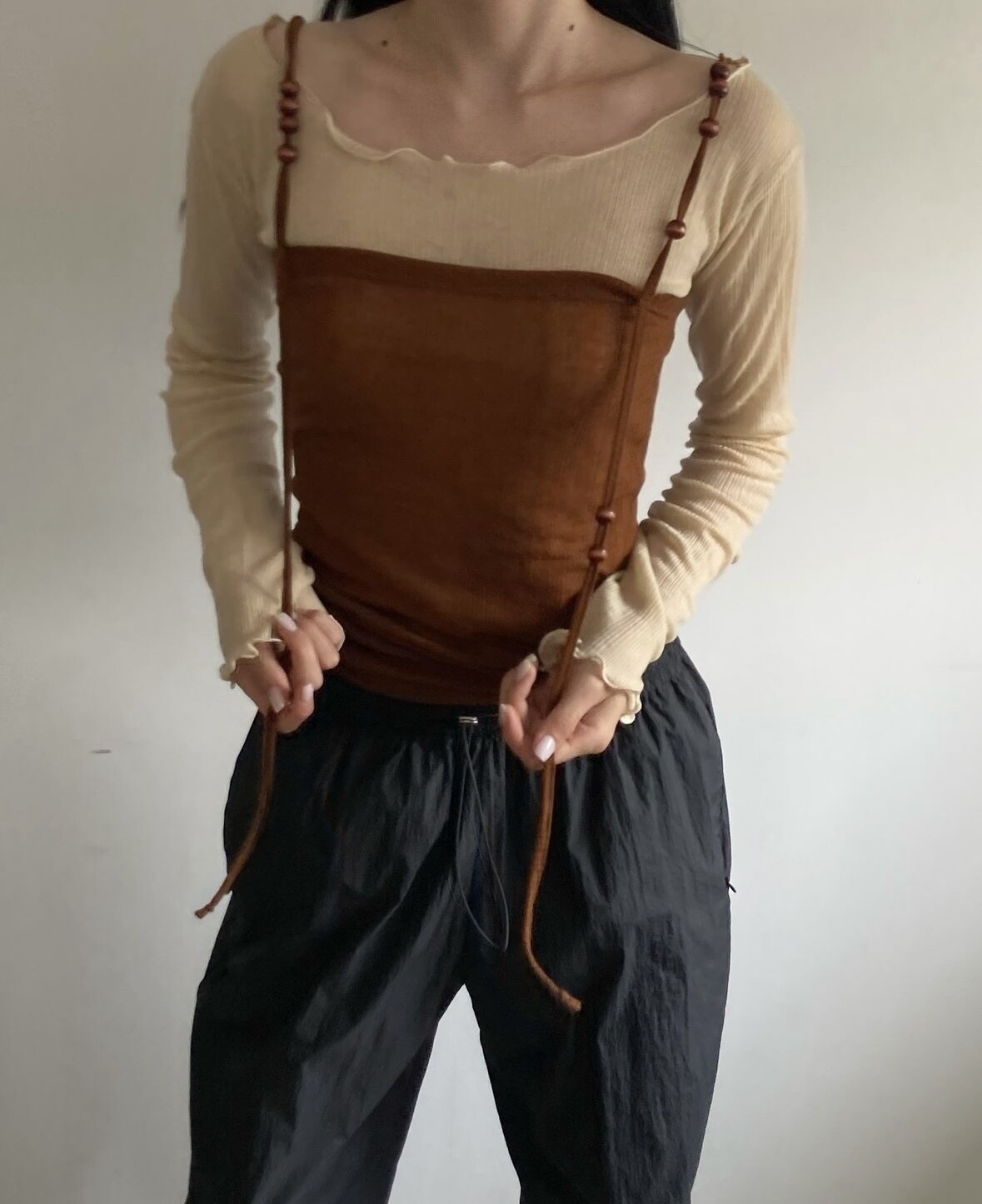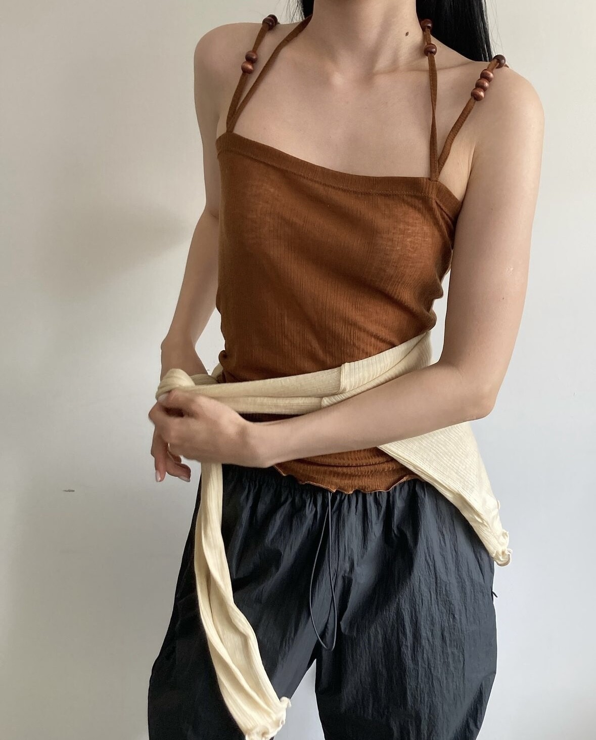 wood sleeveless(나시)-가슴단면35/밑단32/총장51/어깨끈단면17