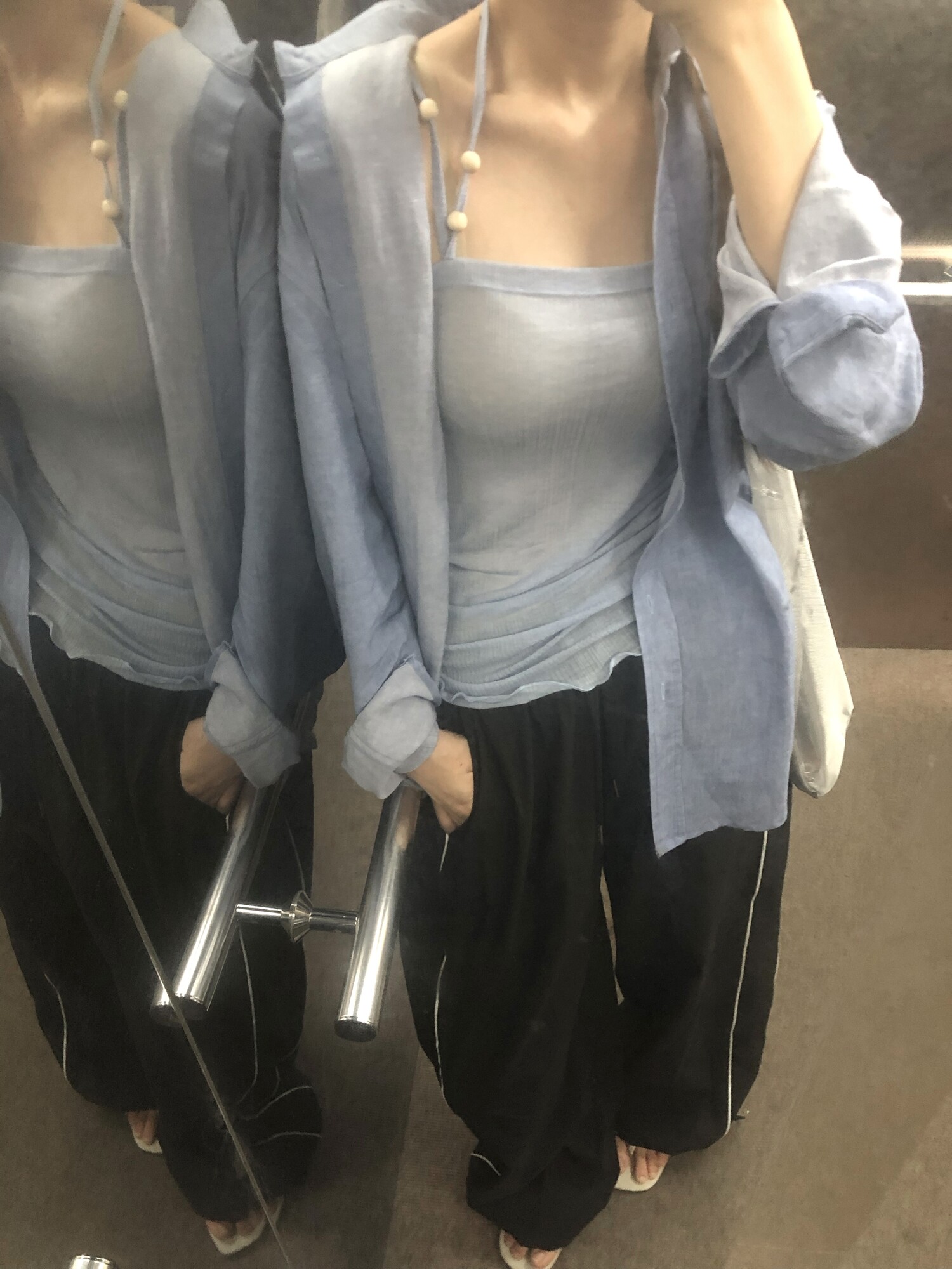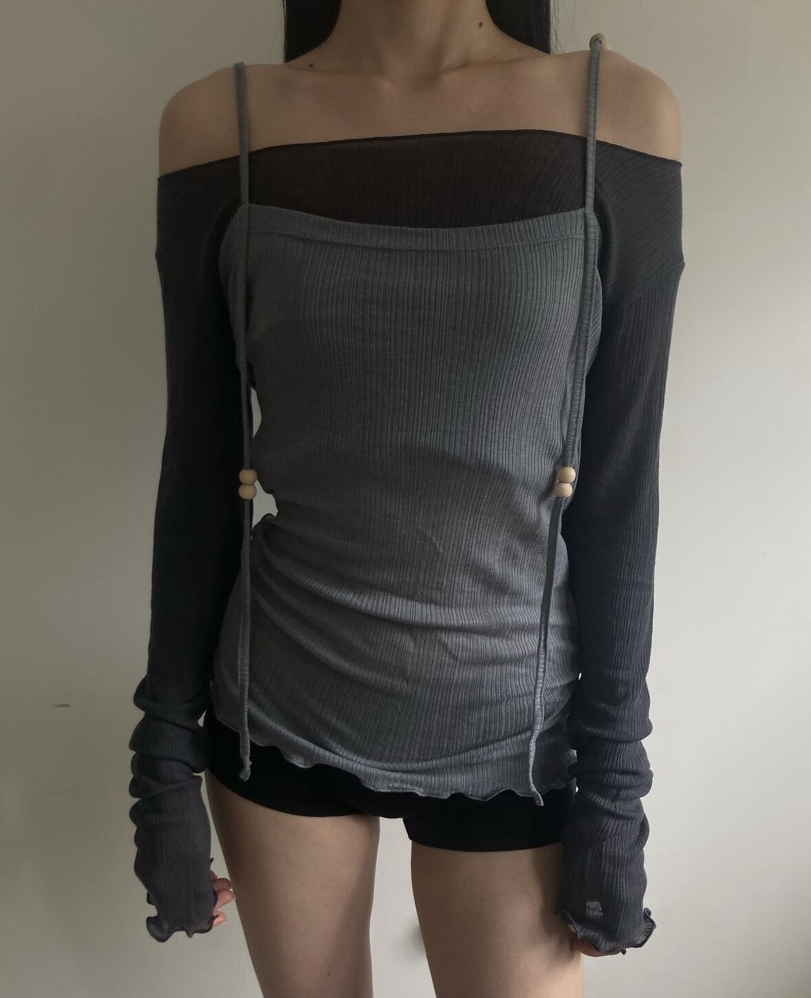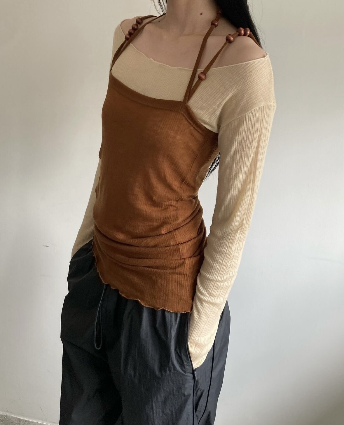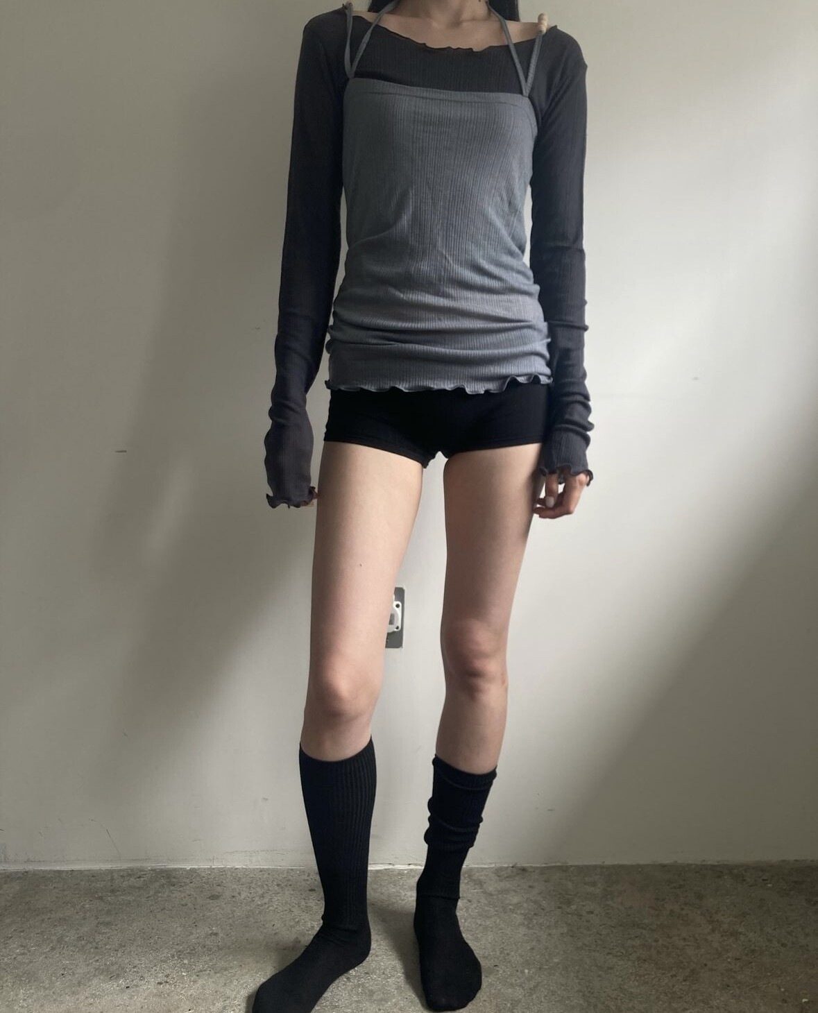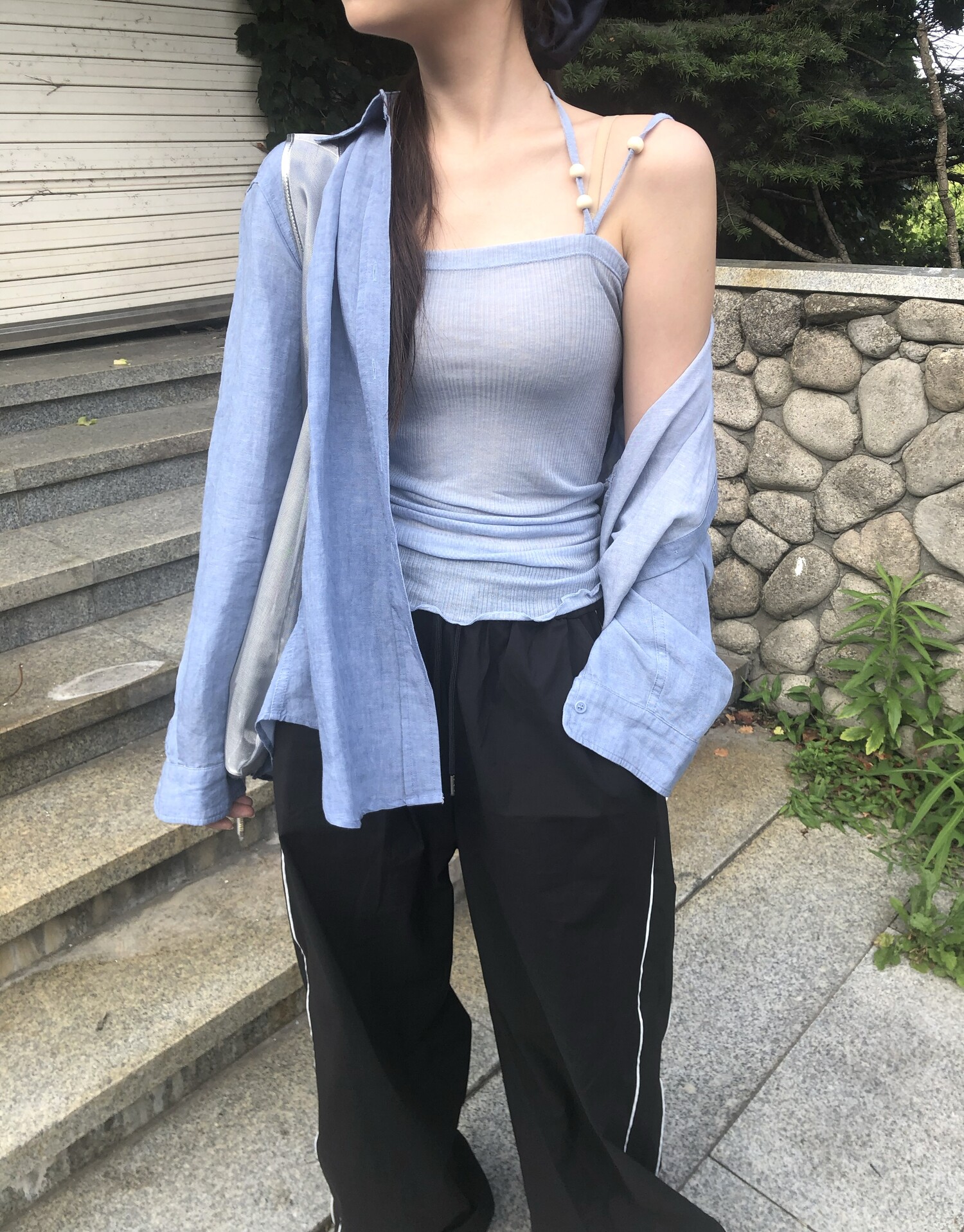 wood sleeveless(나시)-가슴단면35/밑단32/총장51/어깨끈단면17