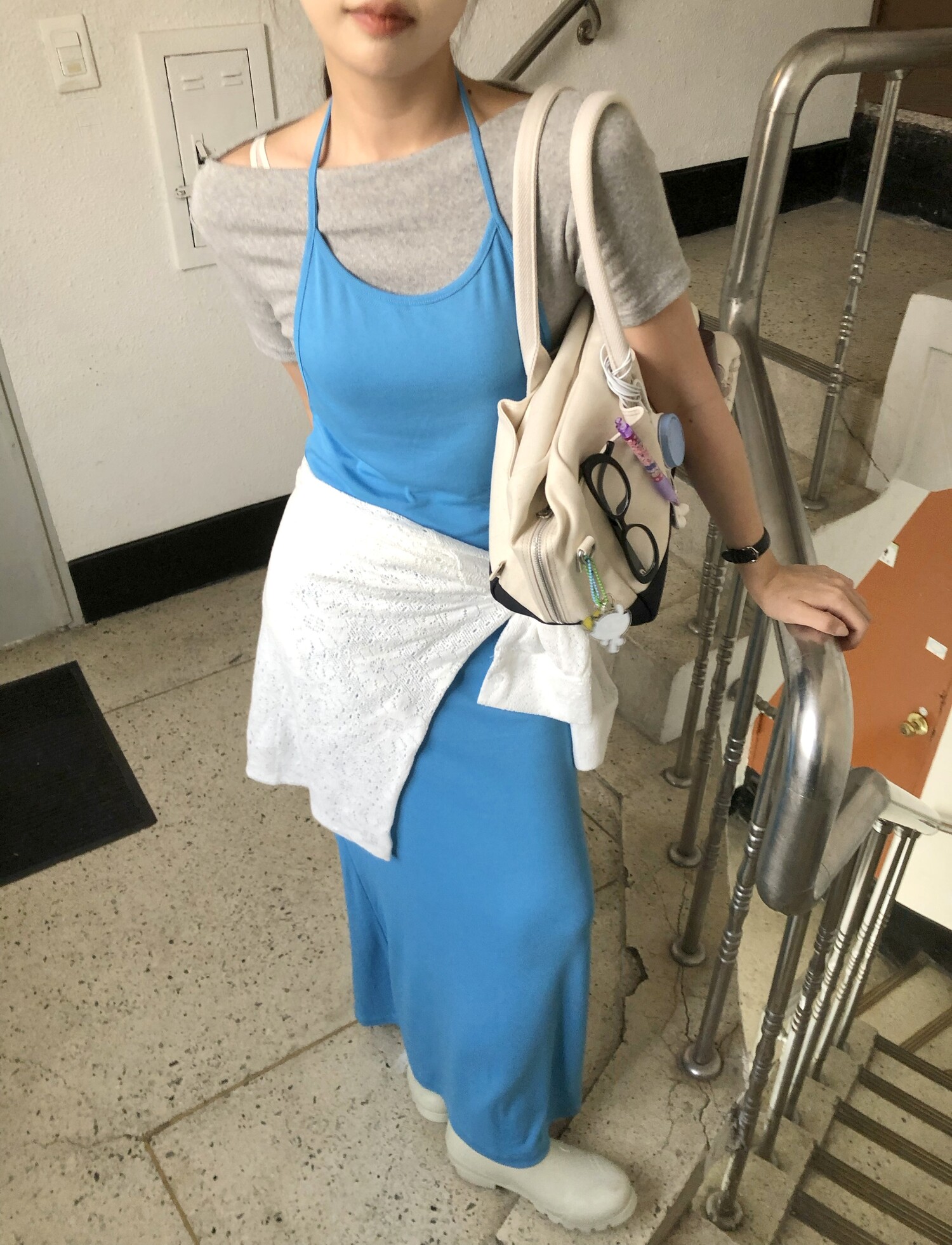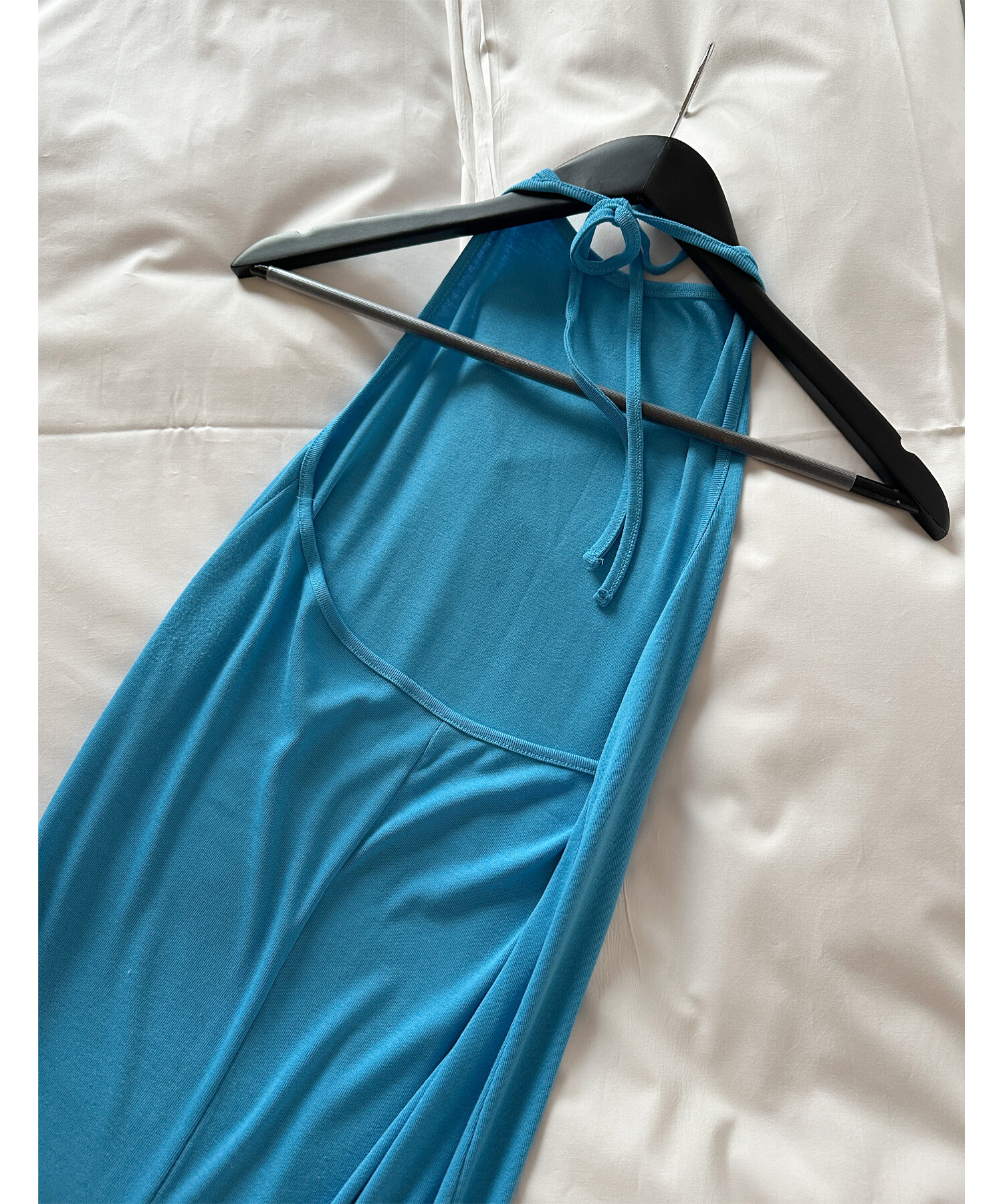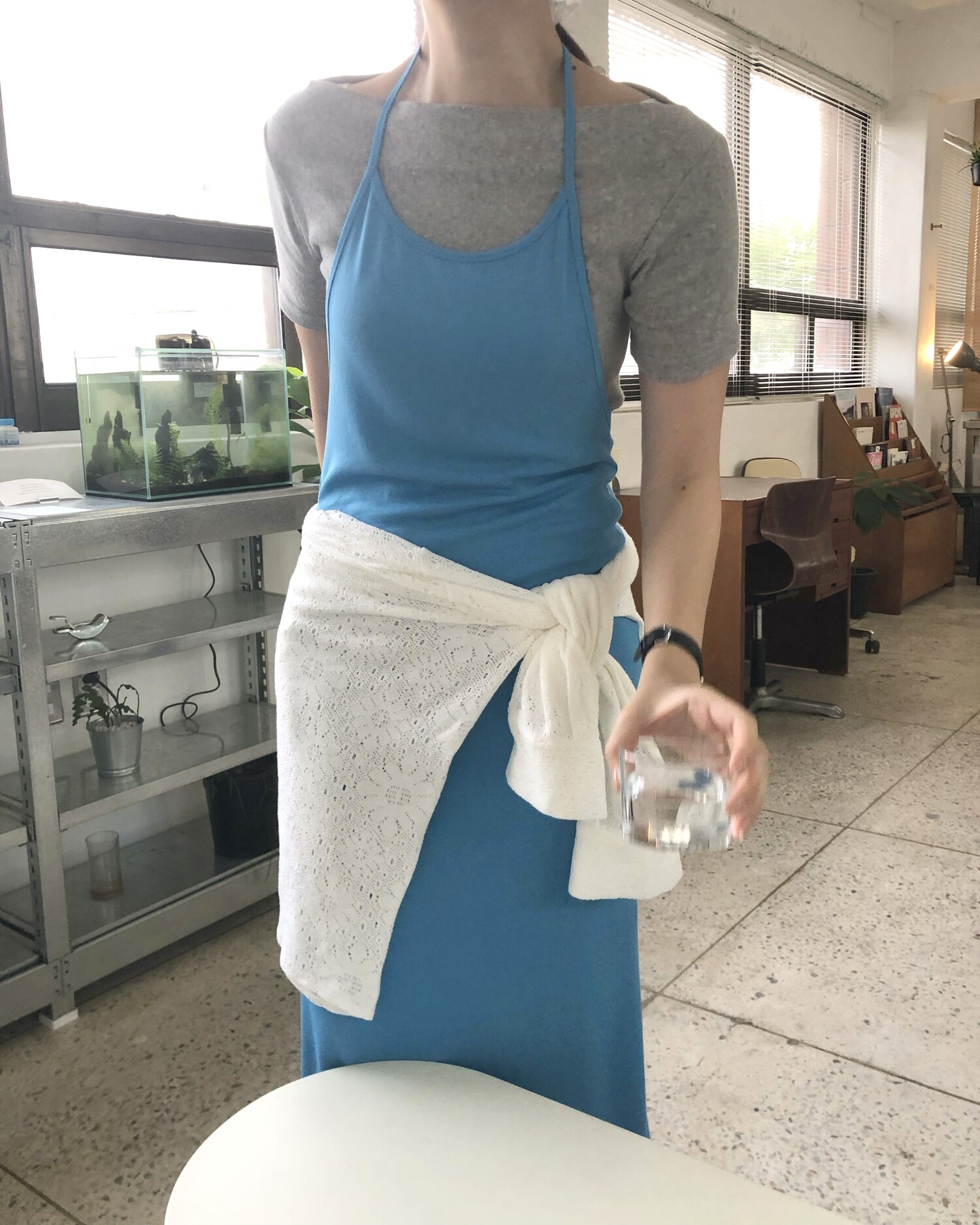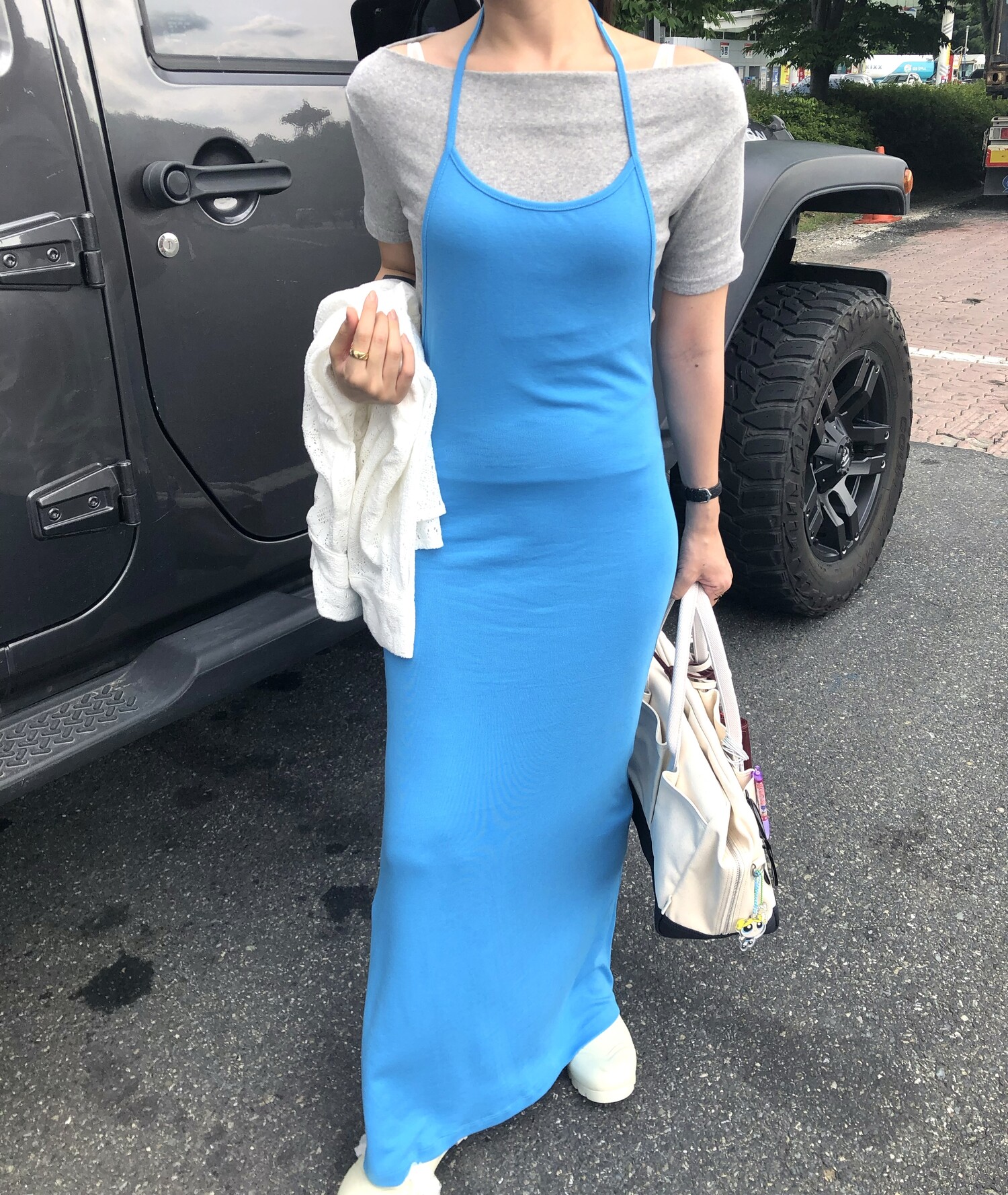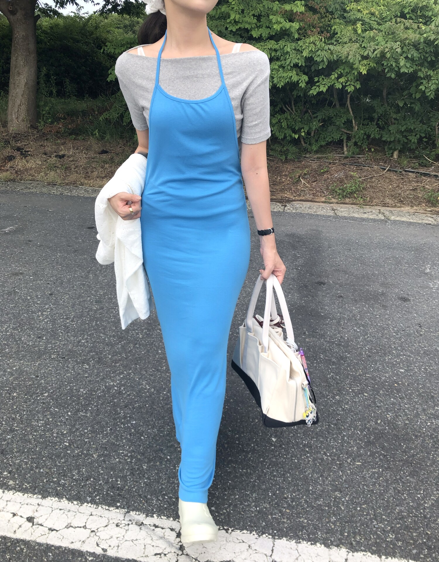어깨홀터넥/가슴단면35/힙40/밑단53/총장121