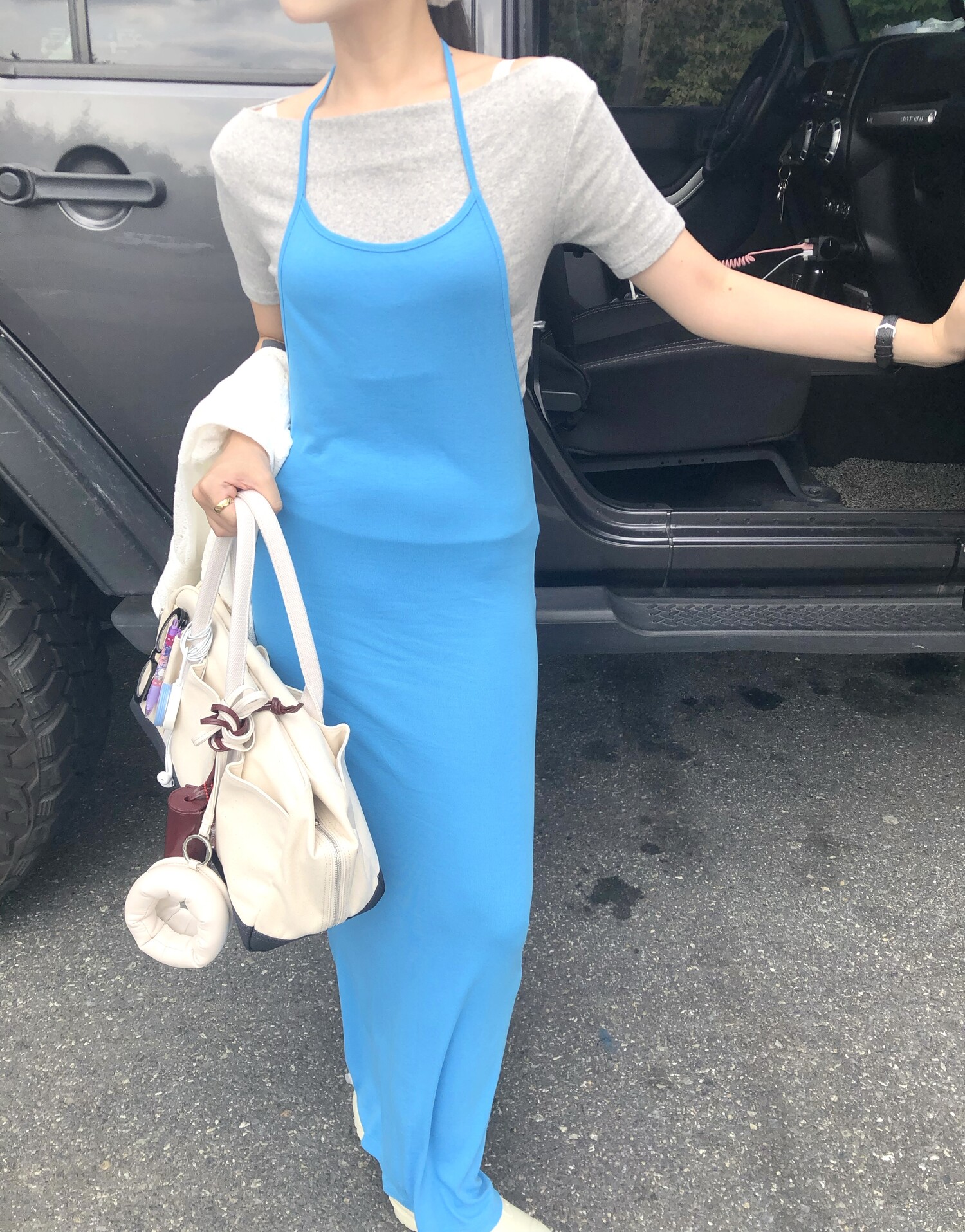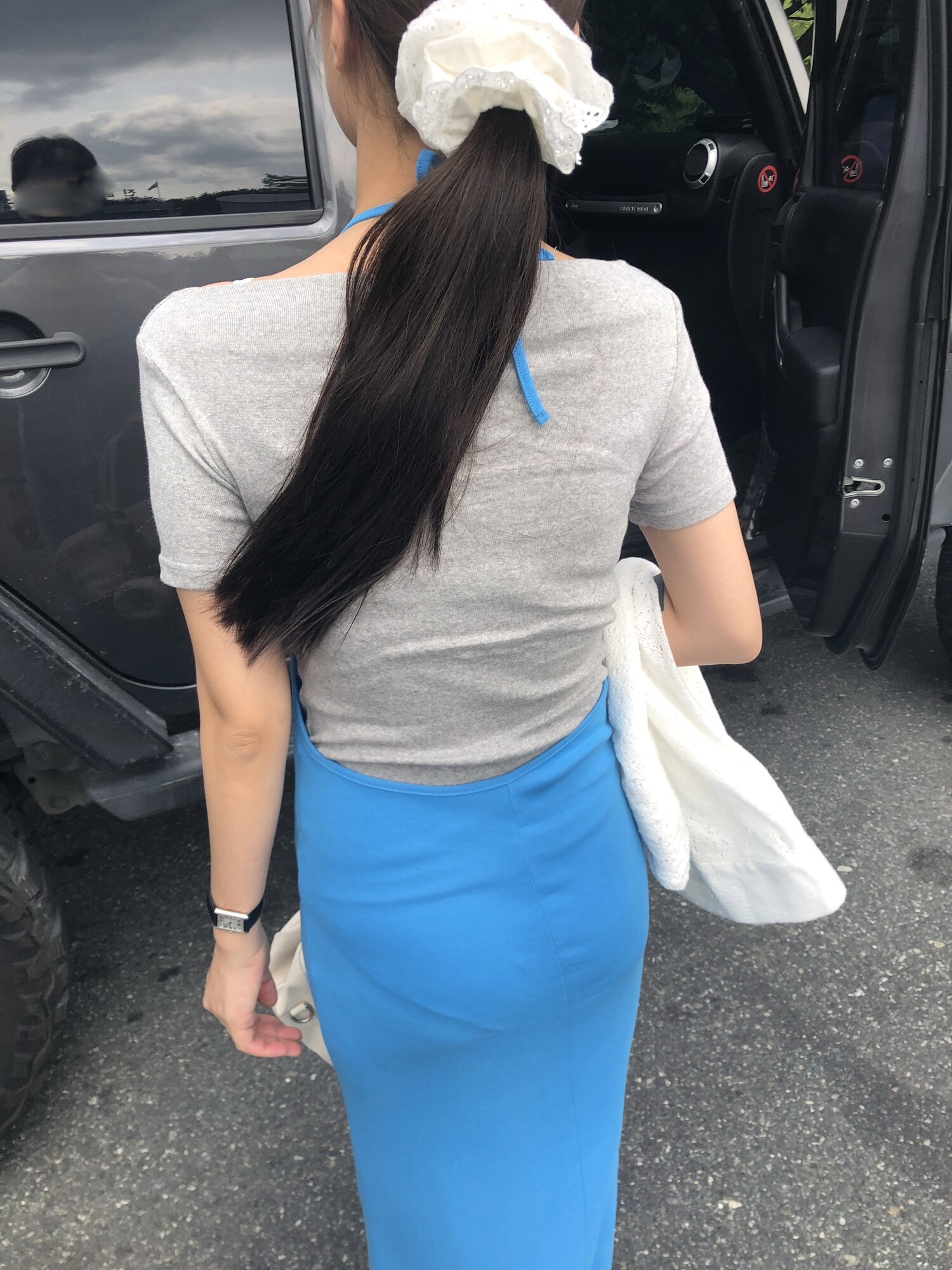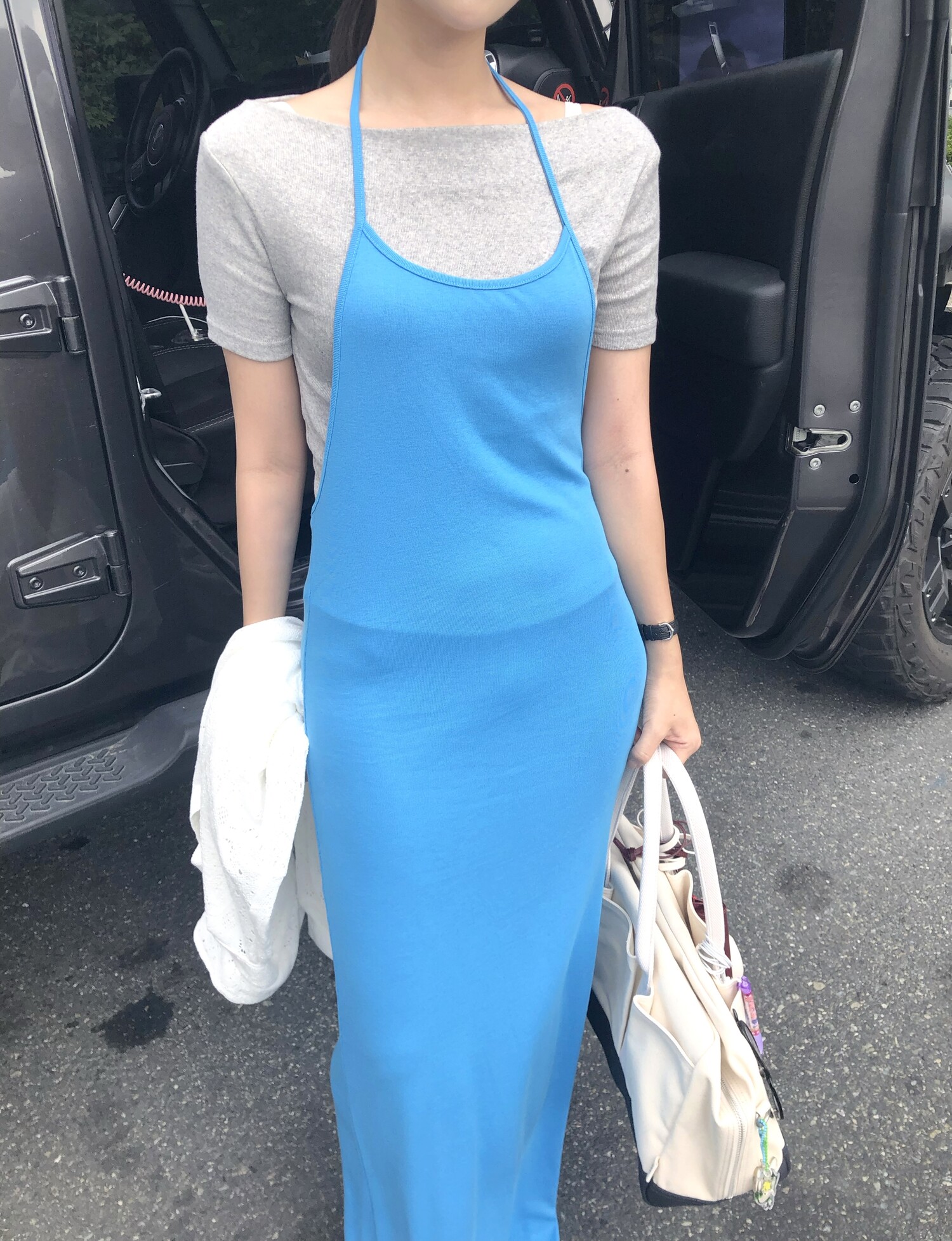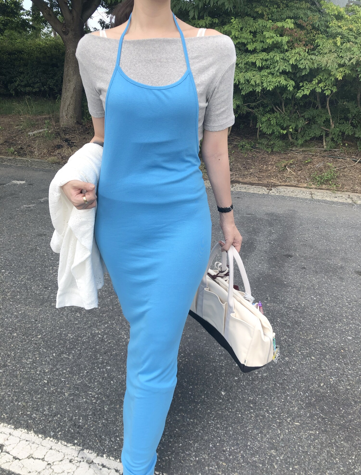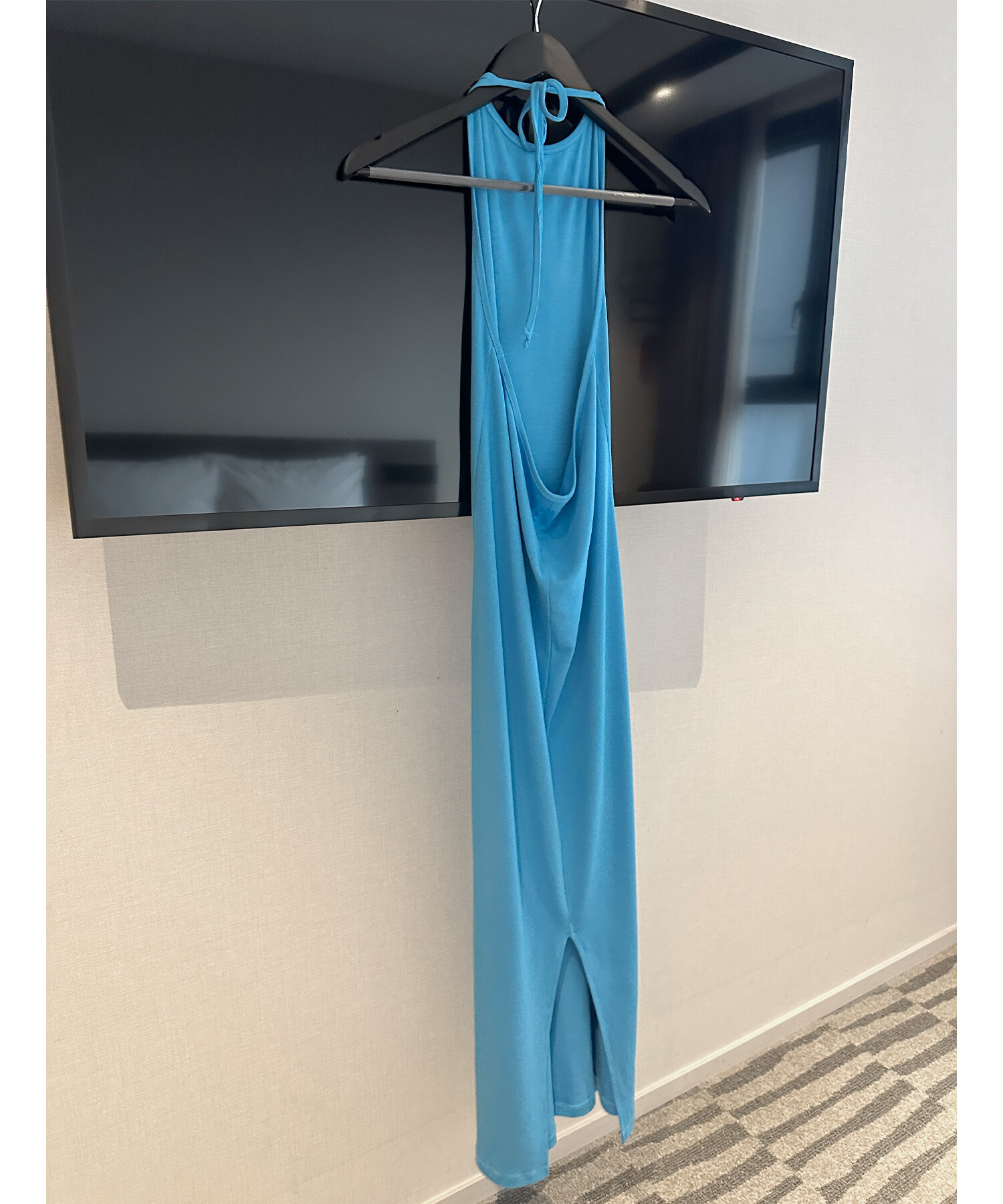 어깨홀터넥/가슴단면35/힙40/밑단53/총장121