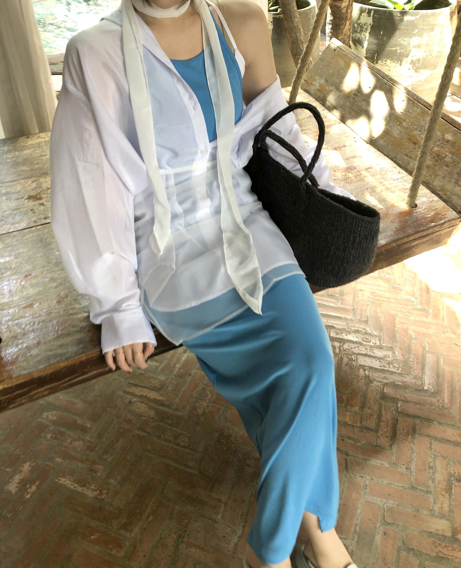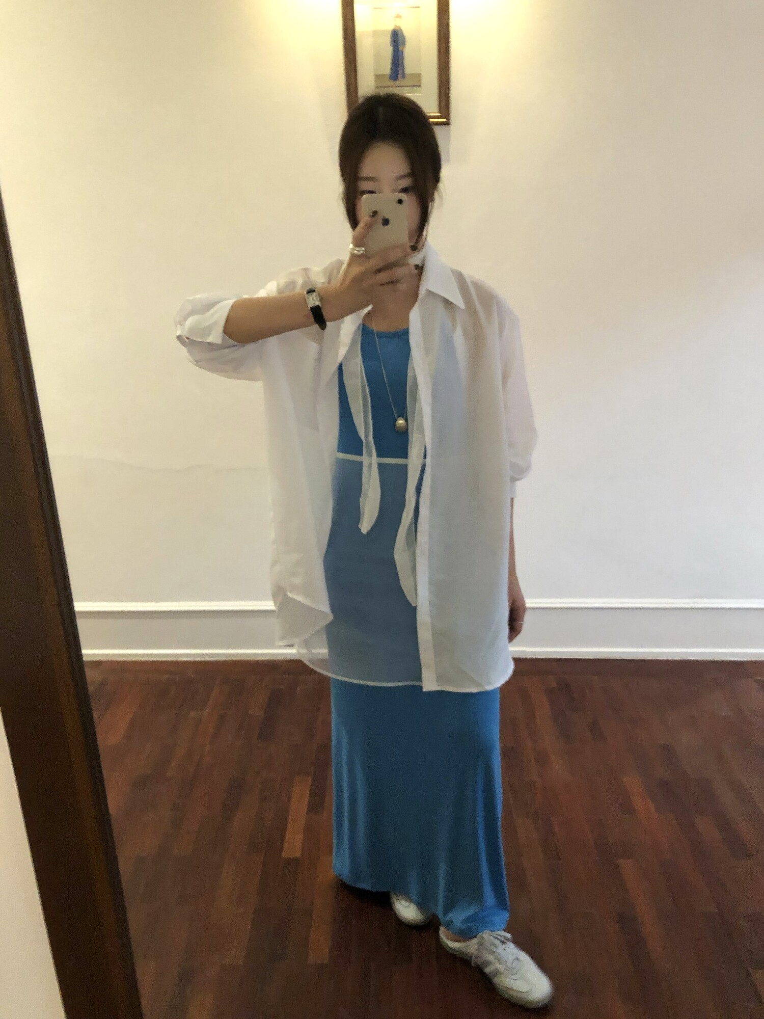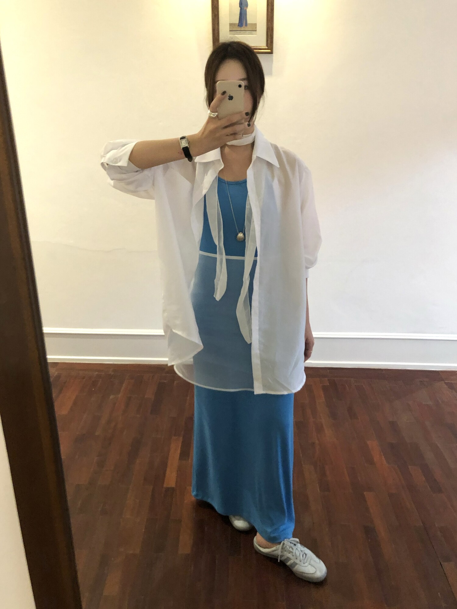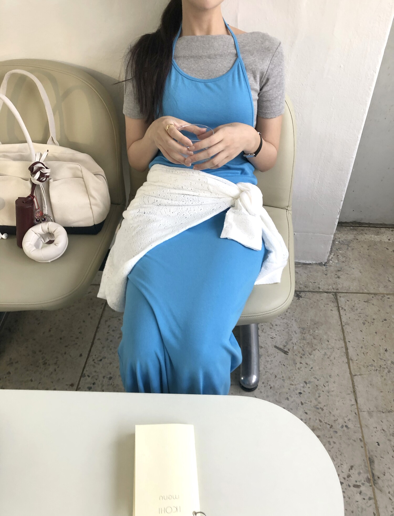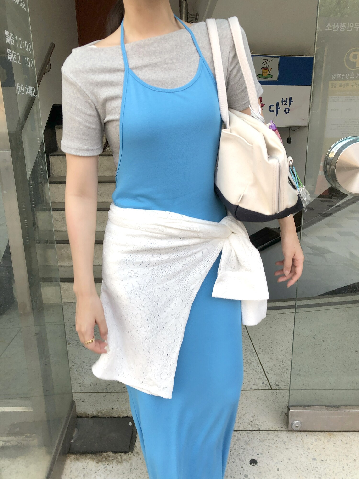 어깨홀터넥/가슴단면35/힙40/밑단53/총장121