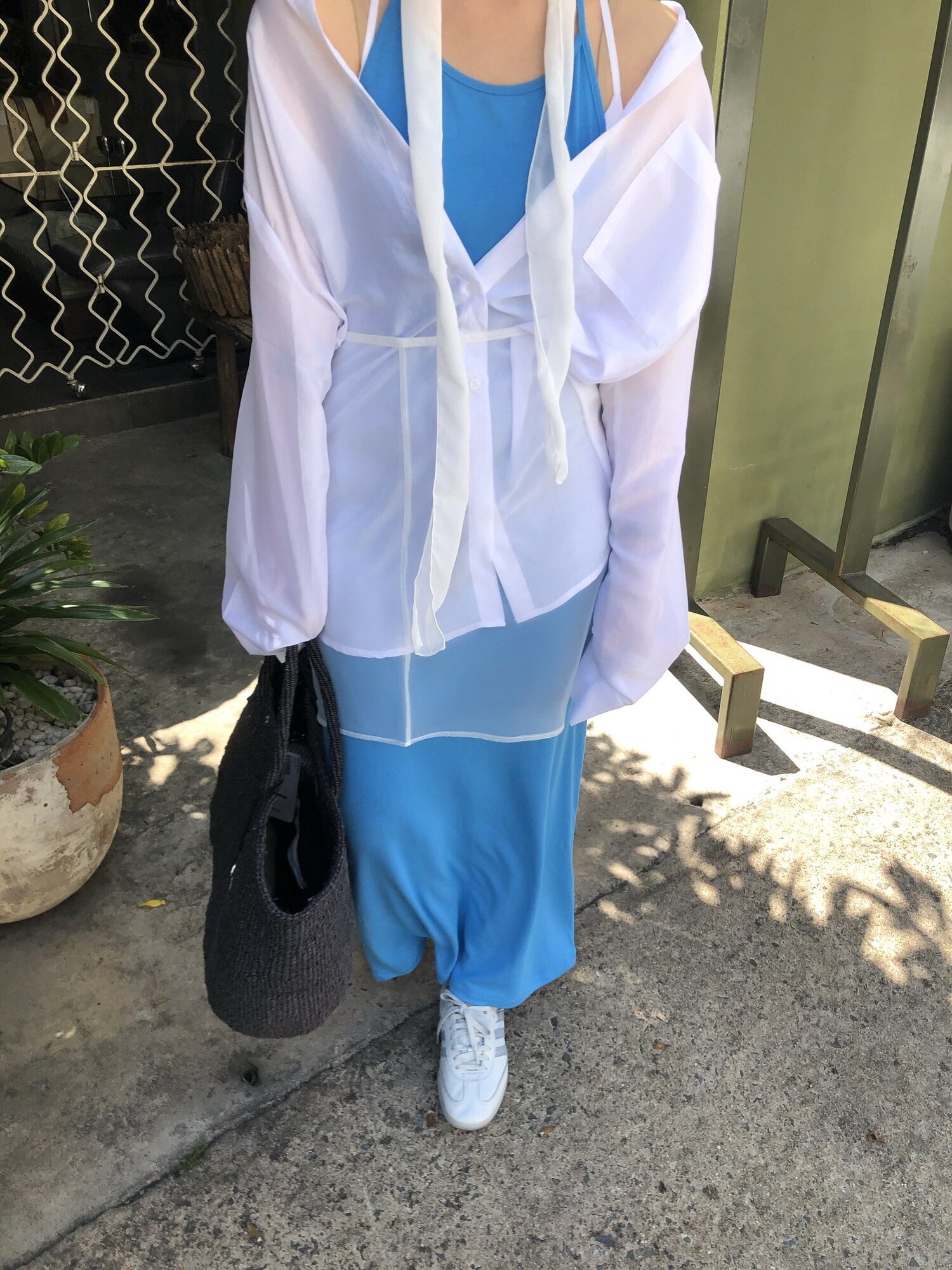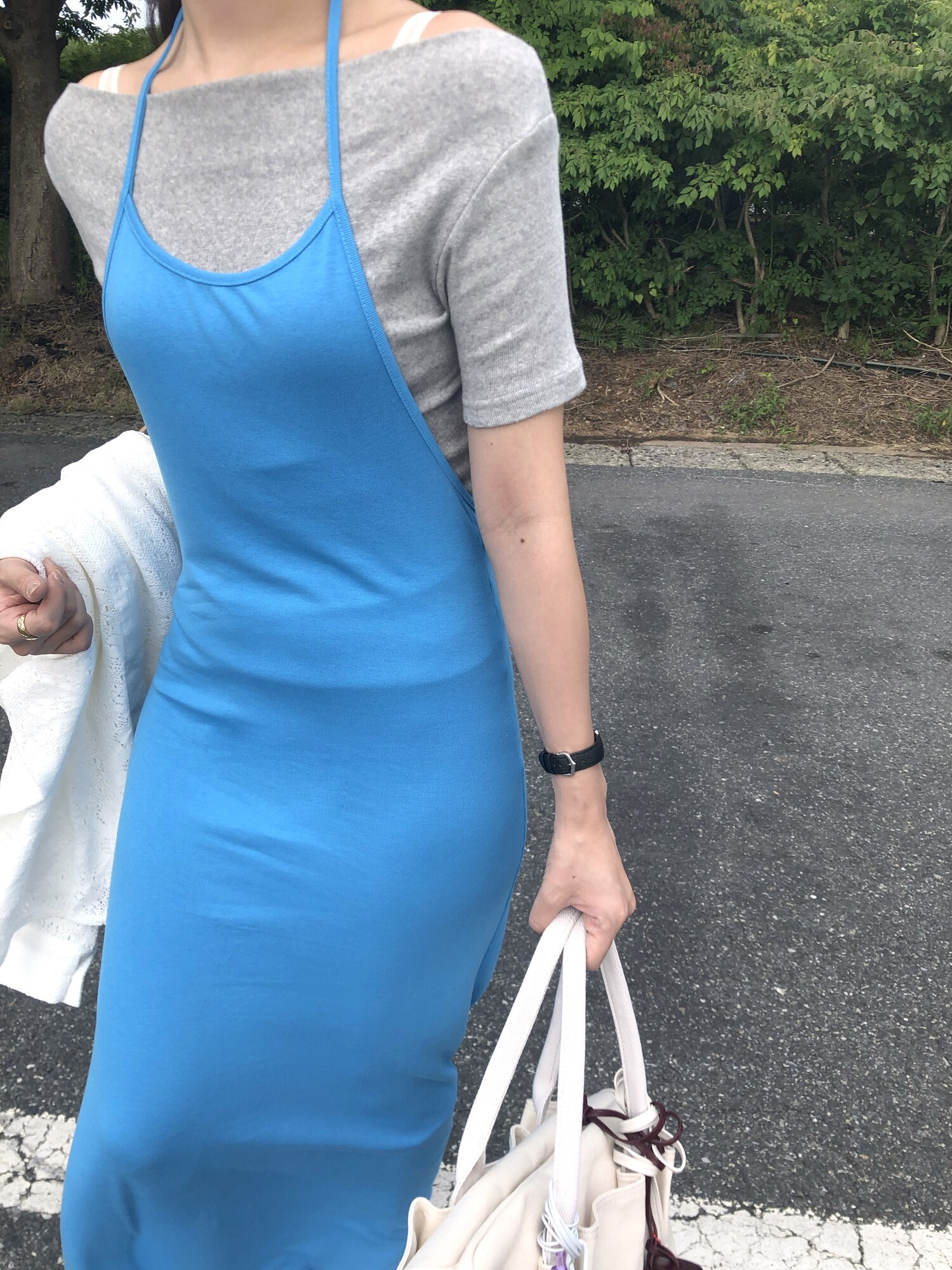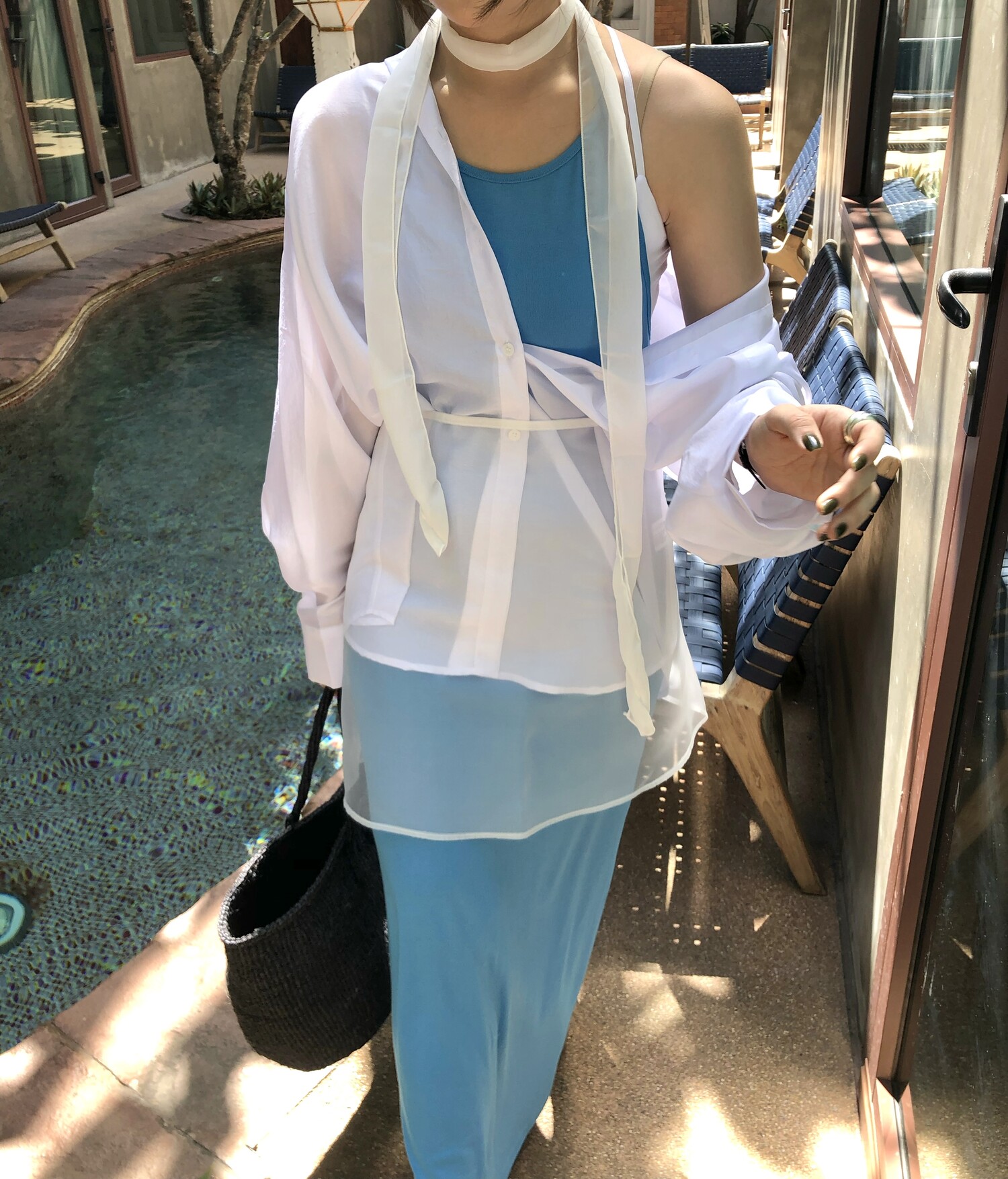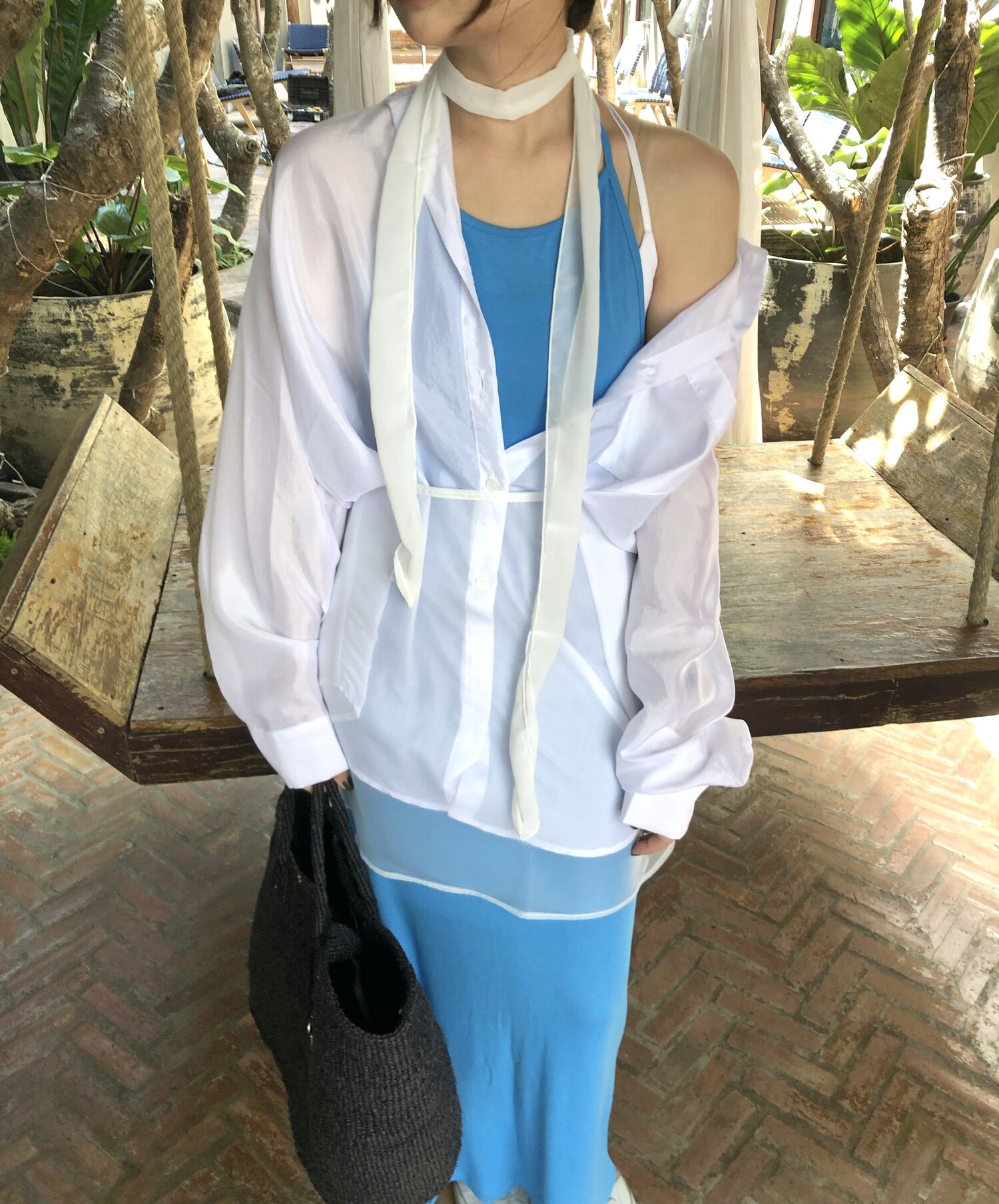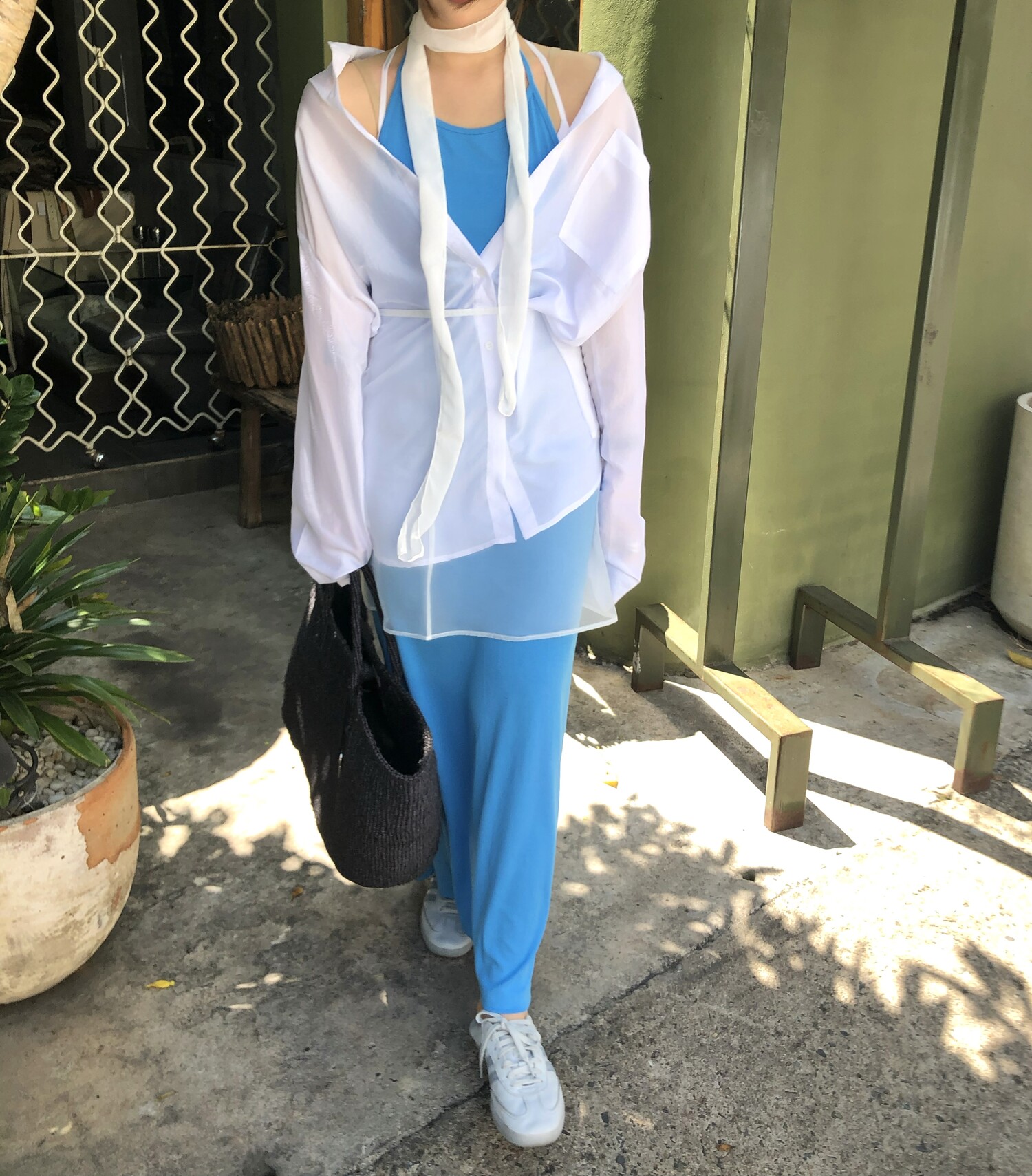 어깨홀터넥/가슴단면35/힙40/밑단53/총장121