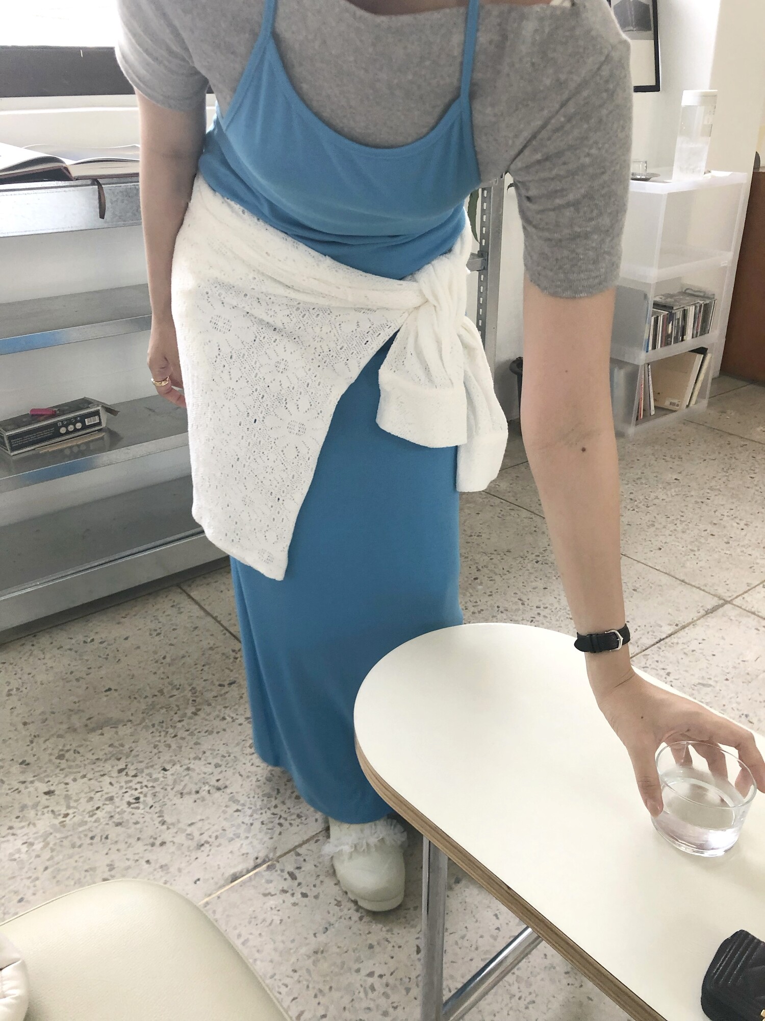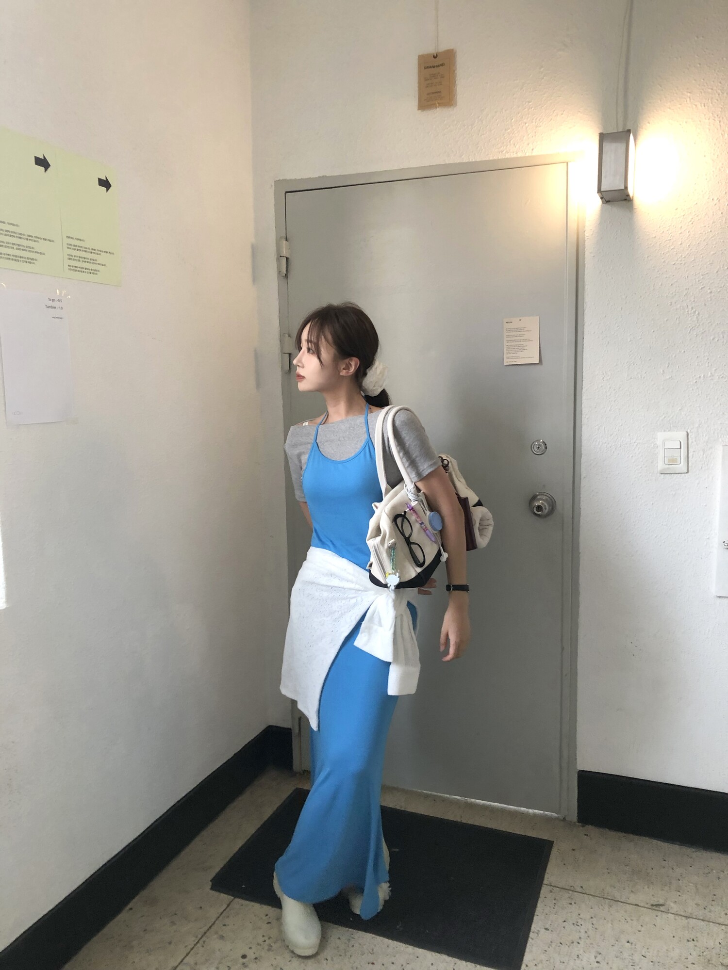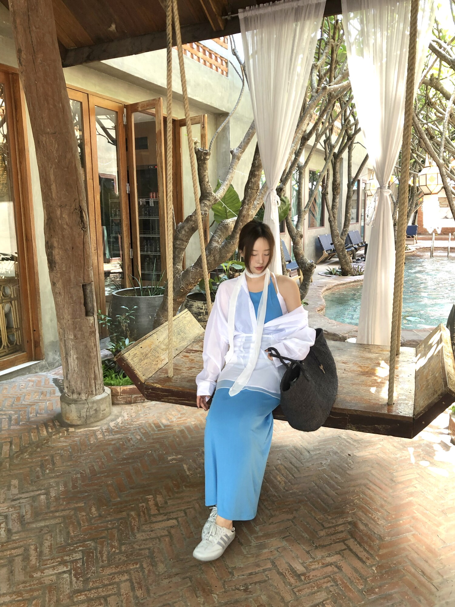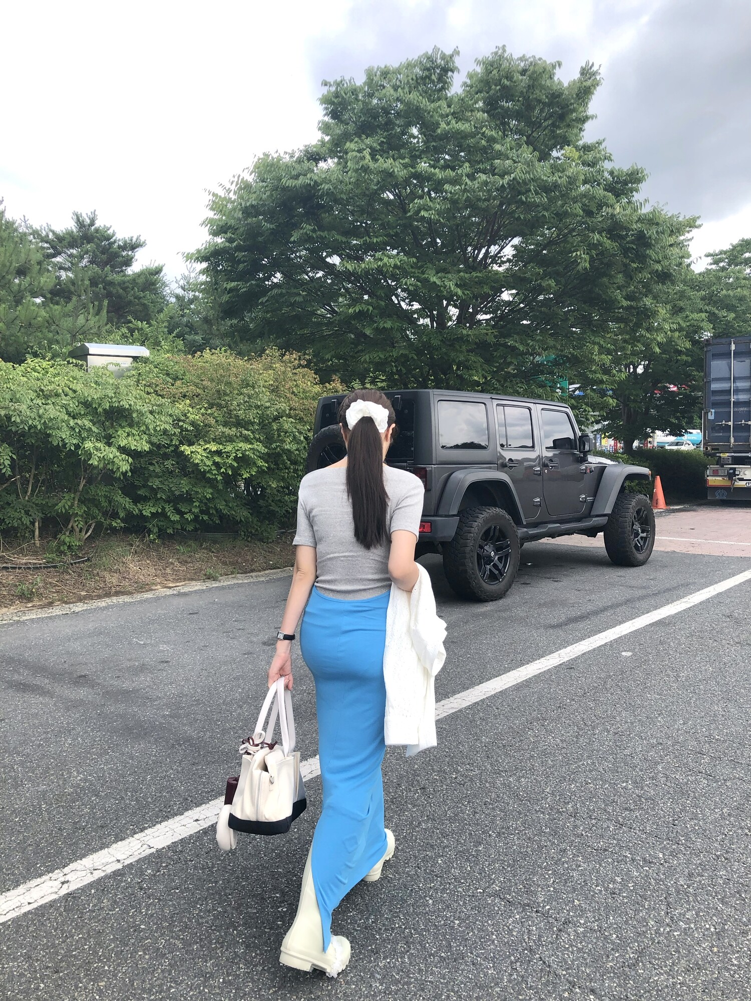 어깨홀터넥/가슴단면35/힙40/밑단53/총장121