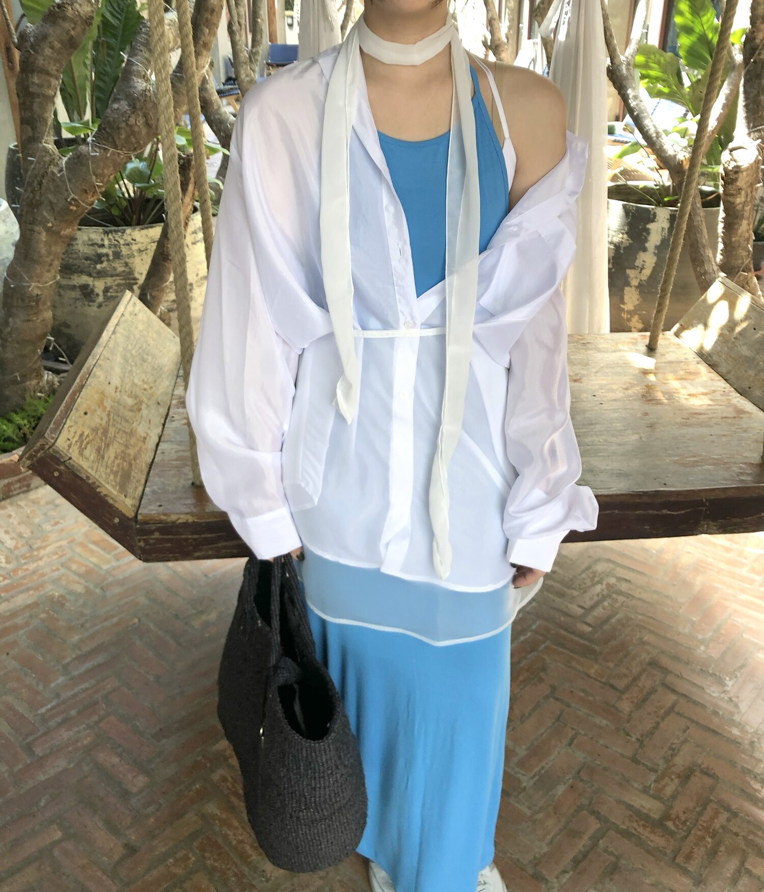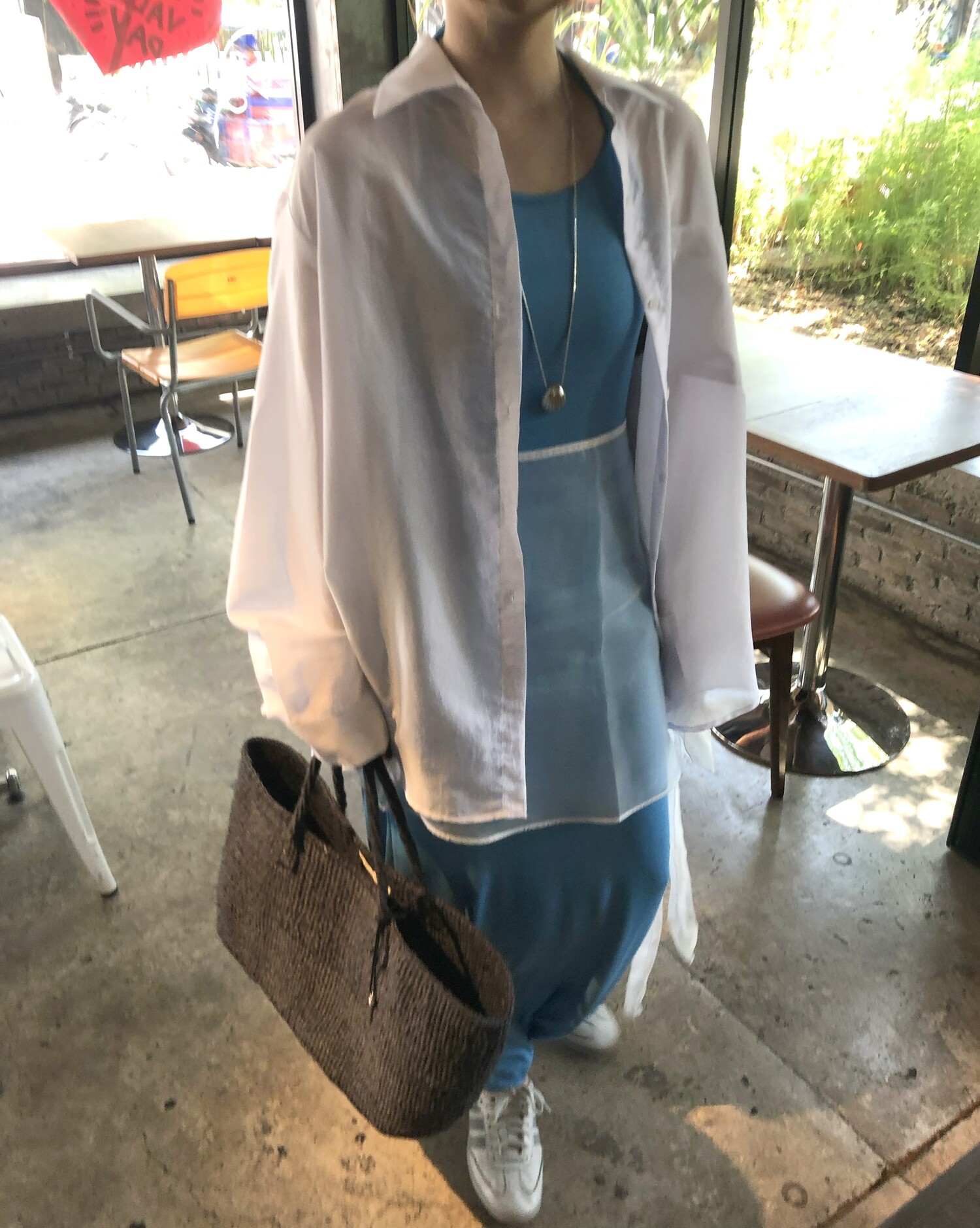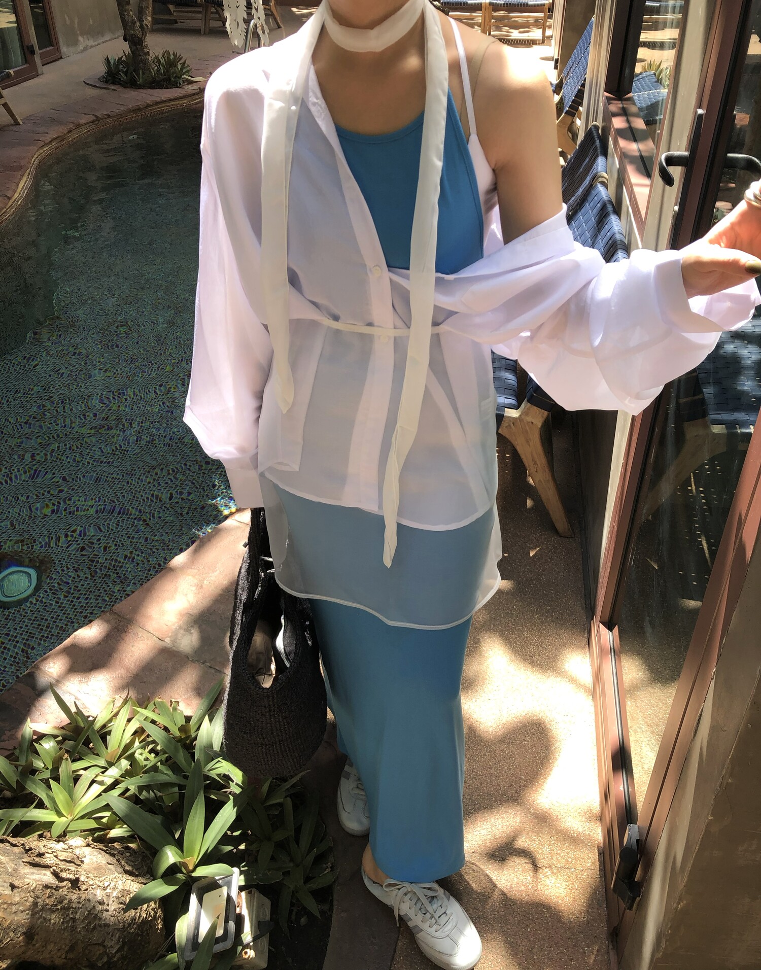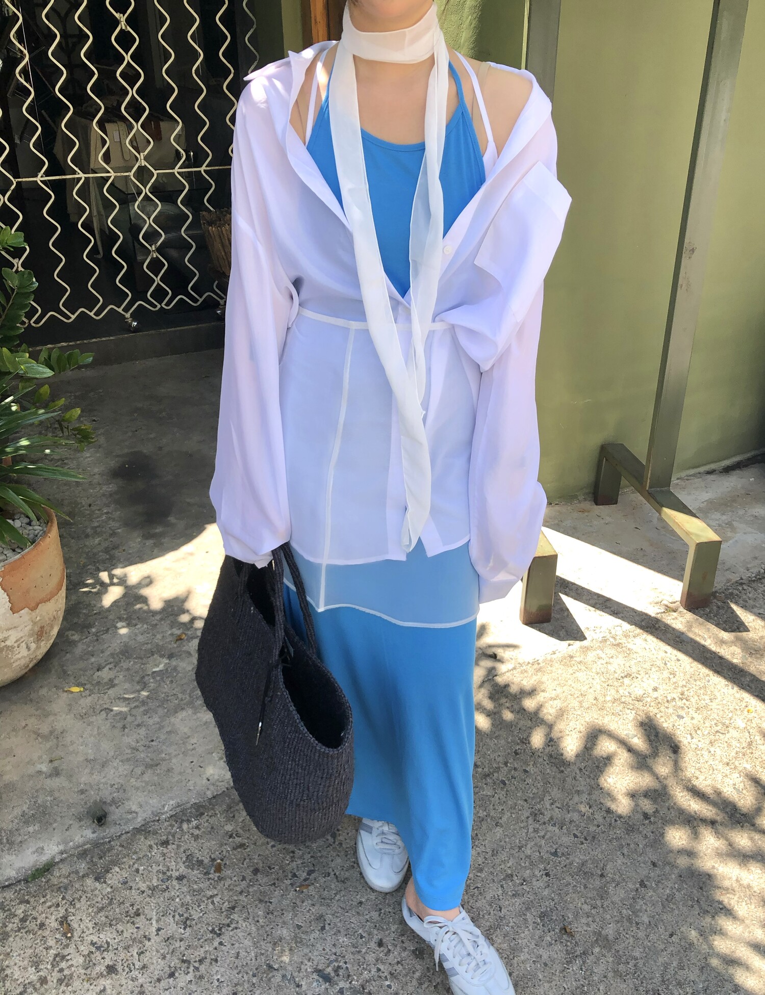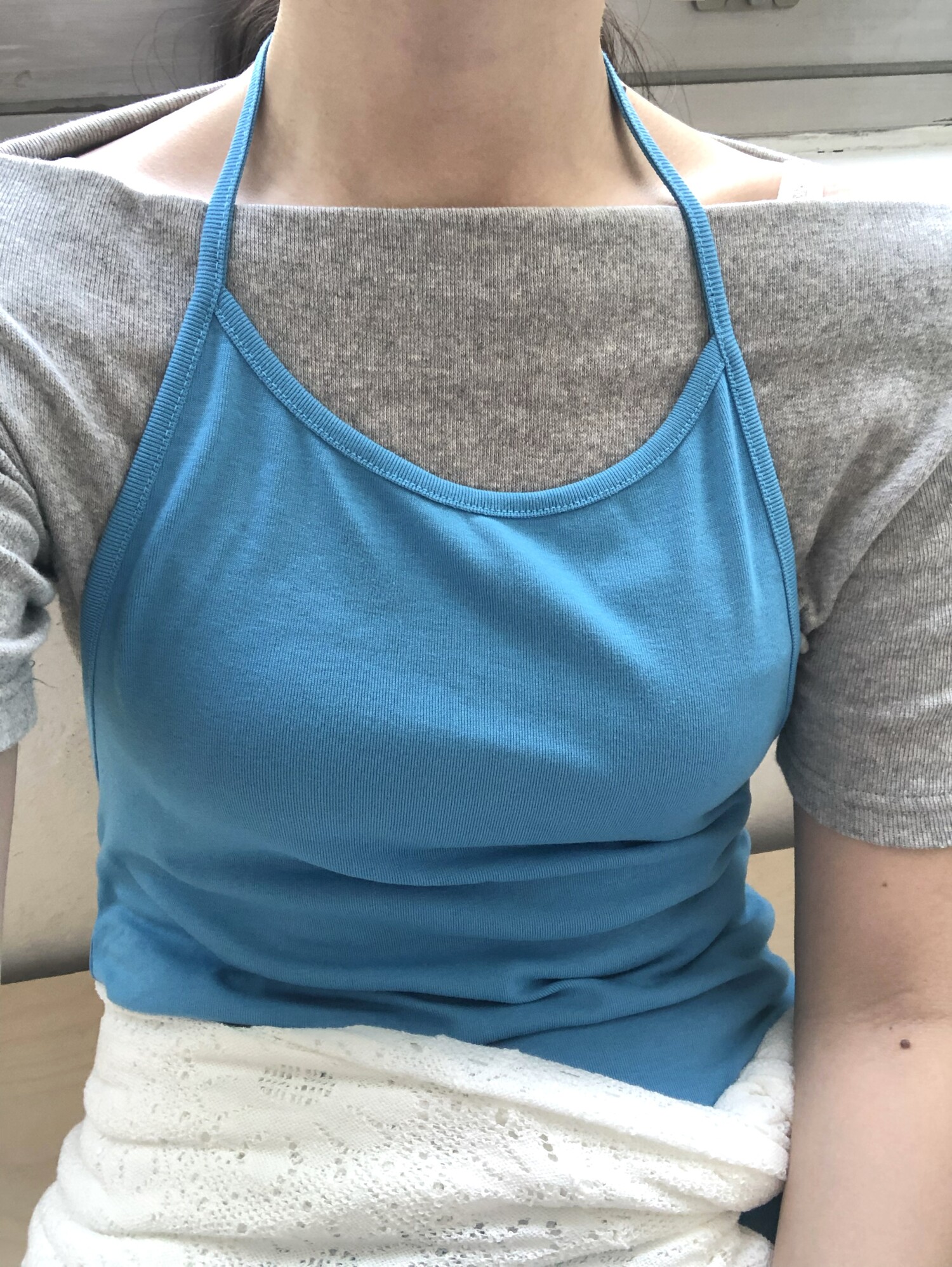 어깨홀터넥/가슴단면35/힙40/밑단53/총장121