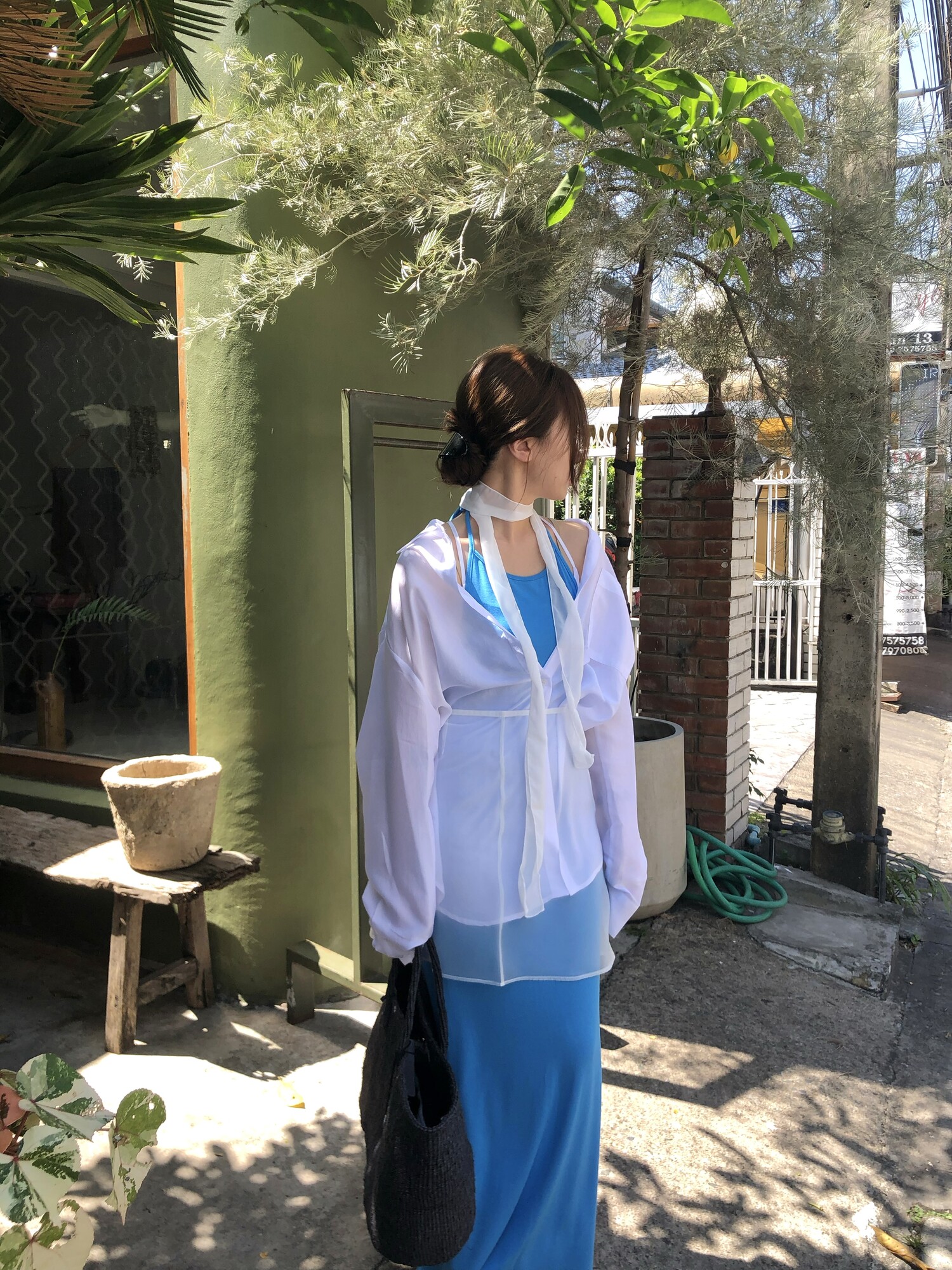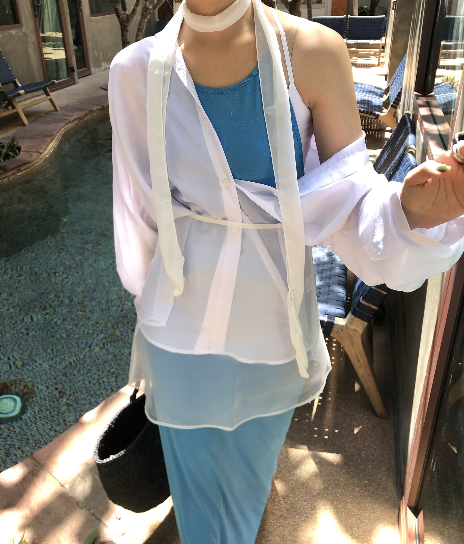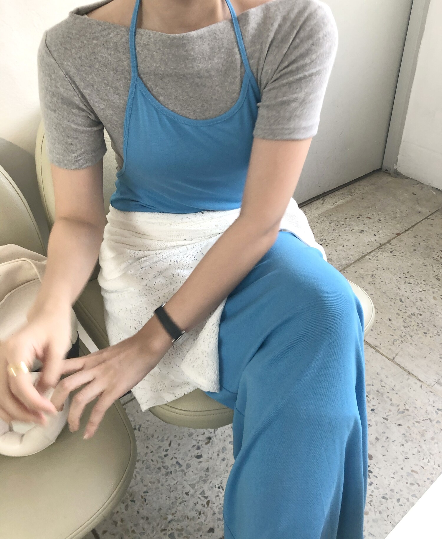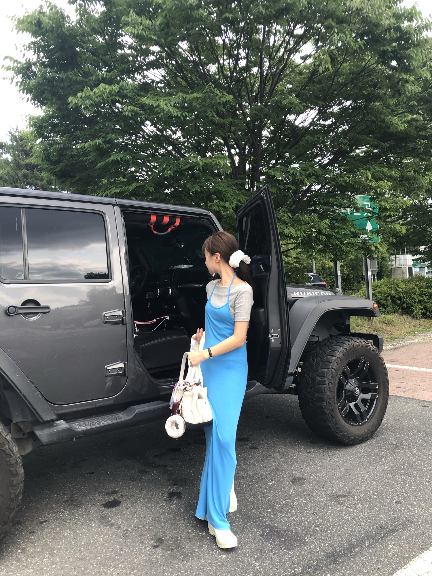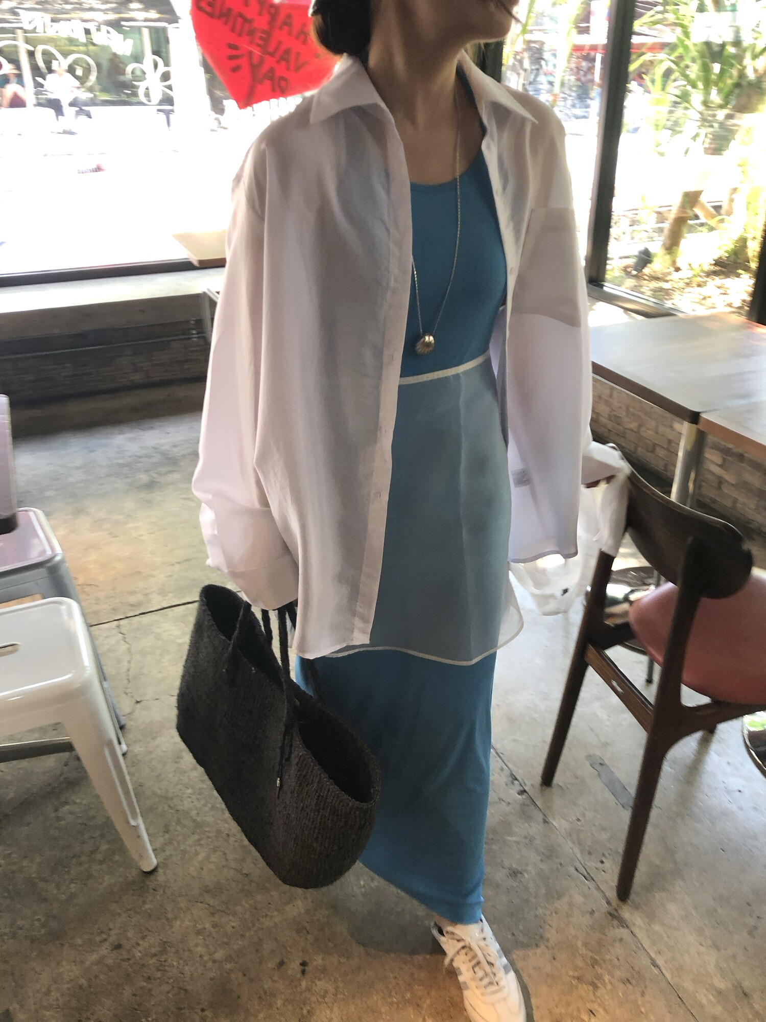 어깨홀터넥/가슴단면35/힙40/밑단53/총장121