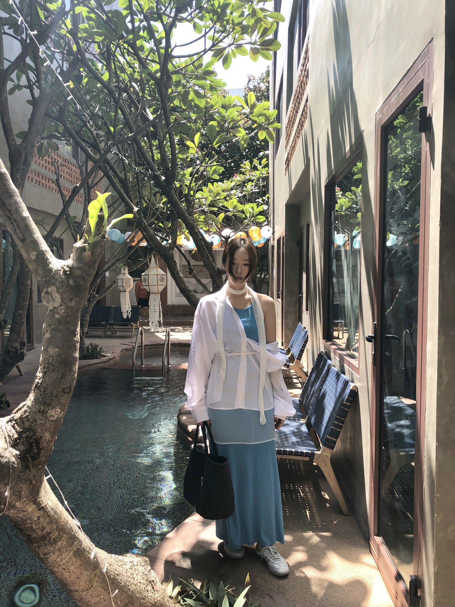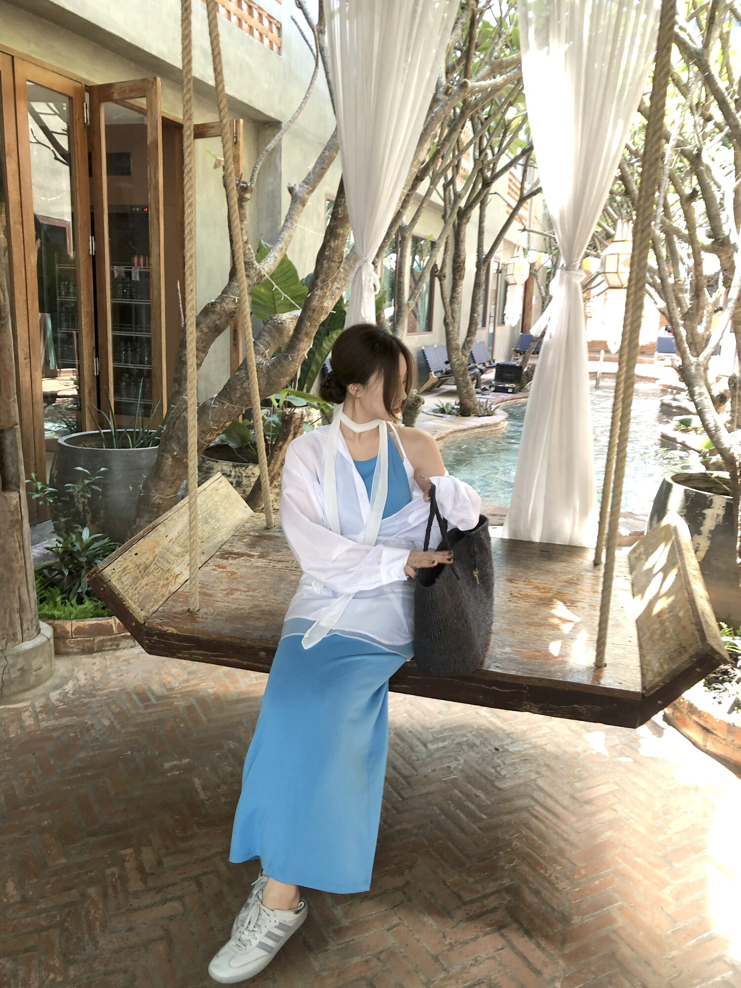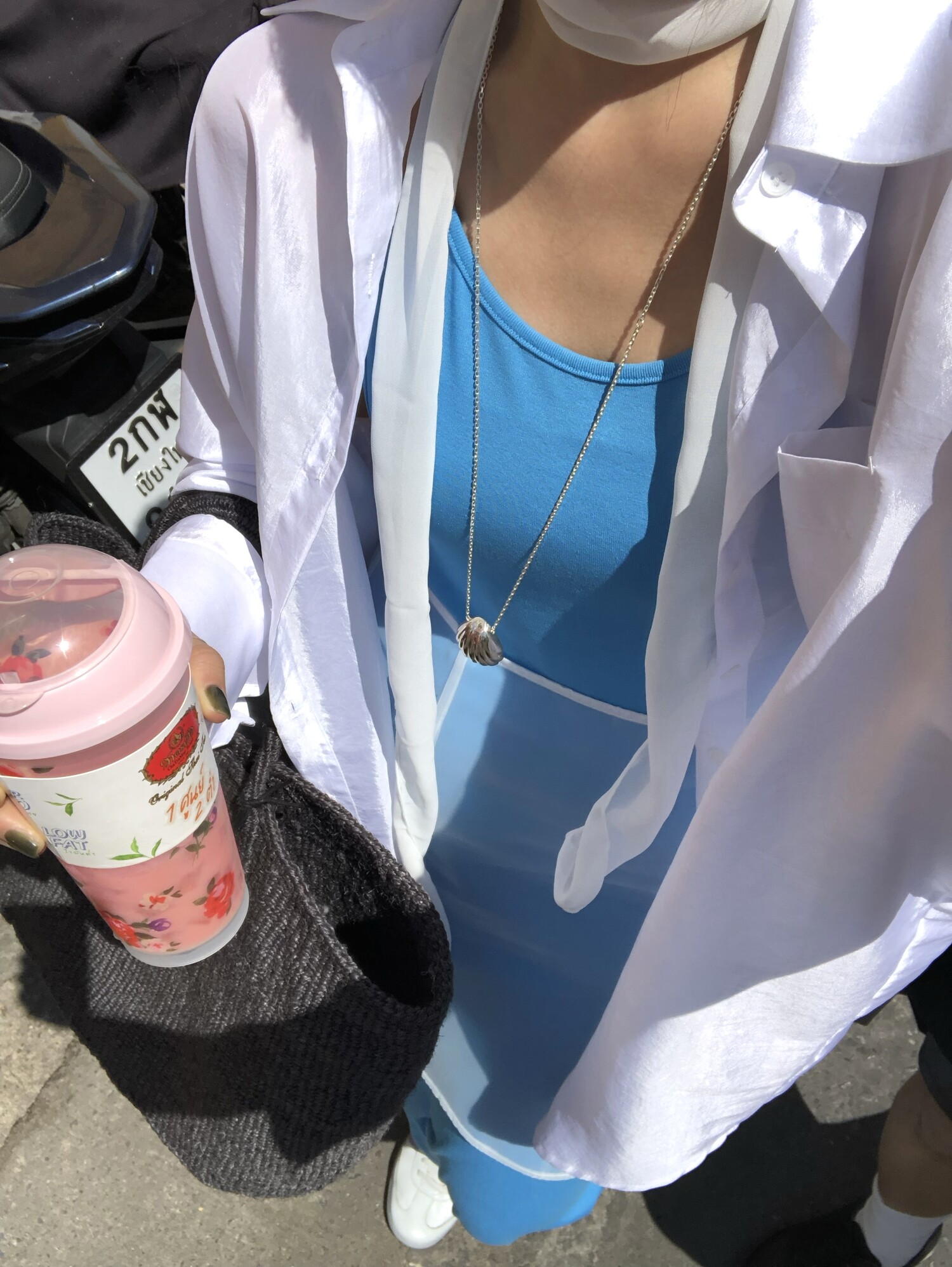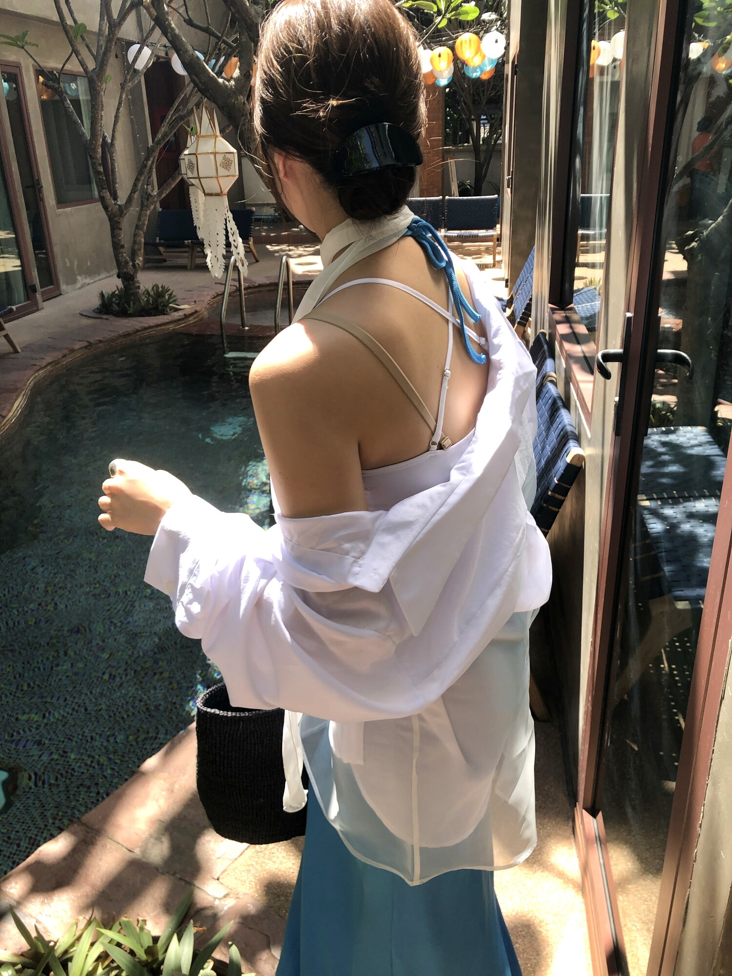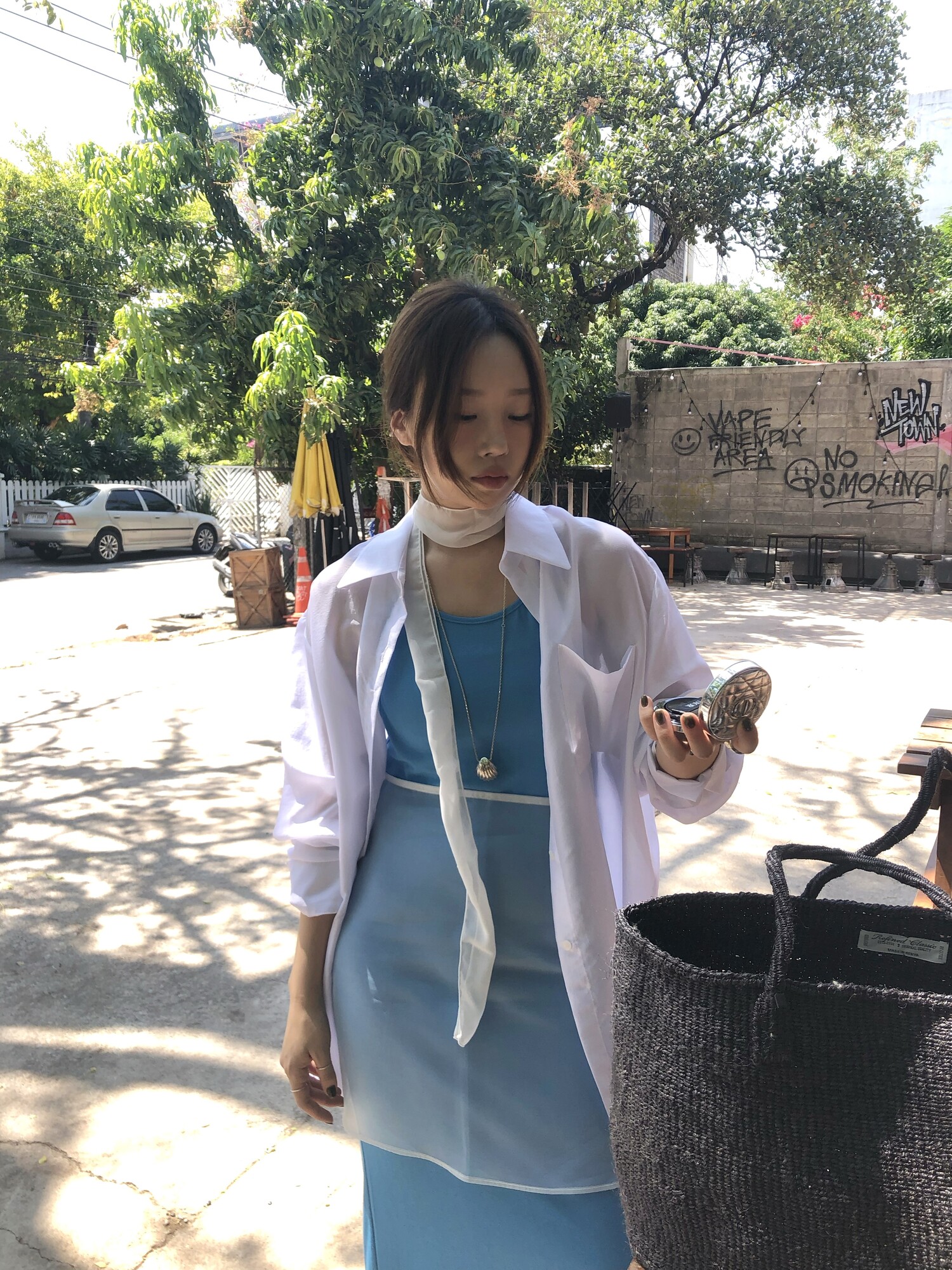 어깨홀터넥/가슴단면35/힙40/밑단53/총장121