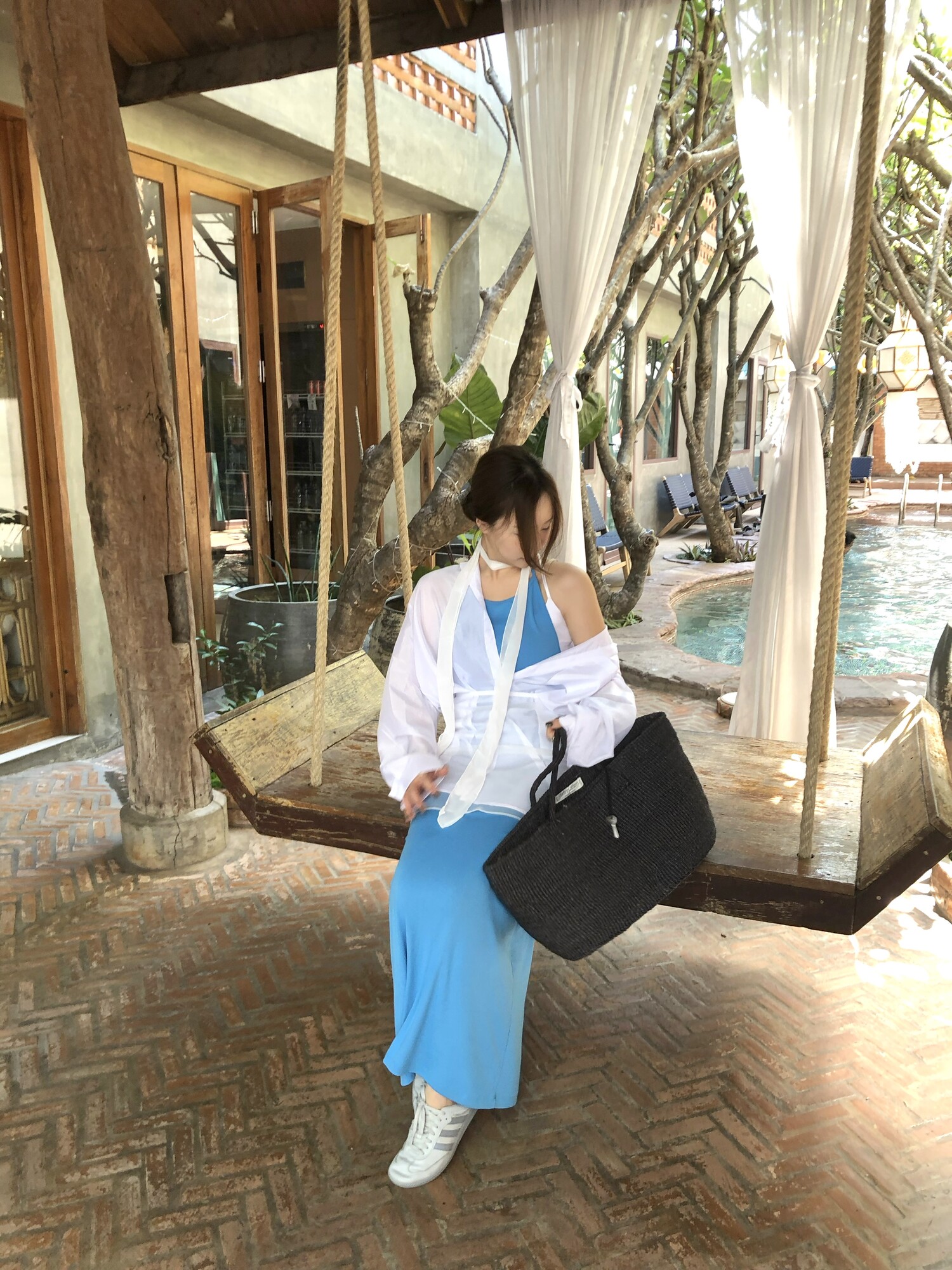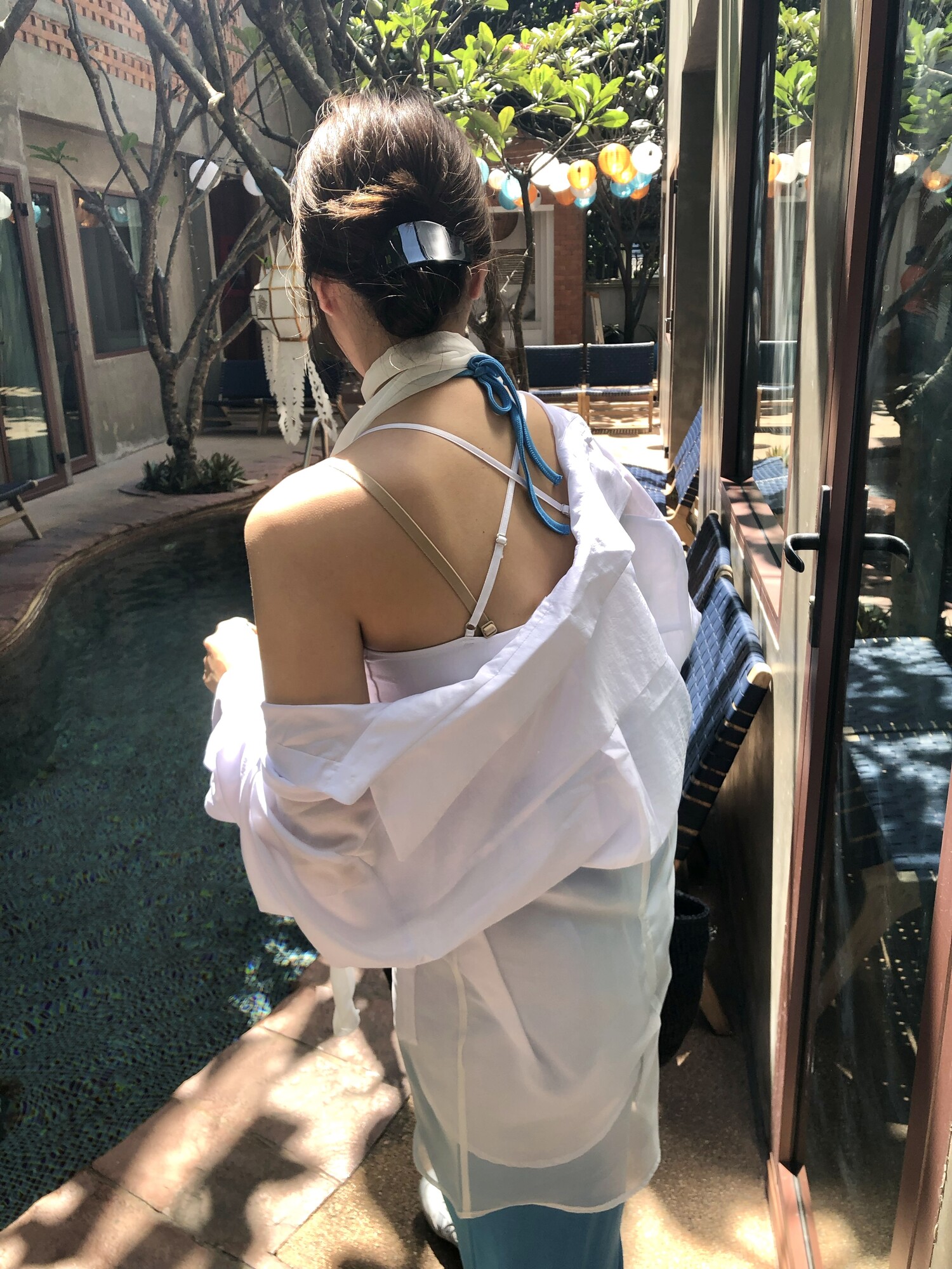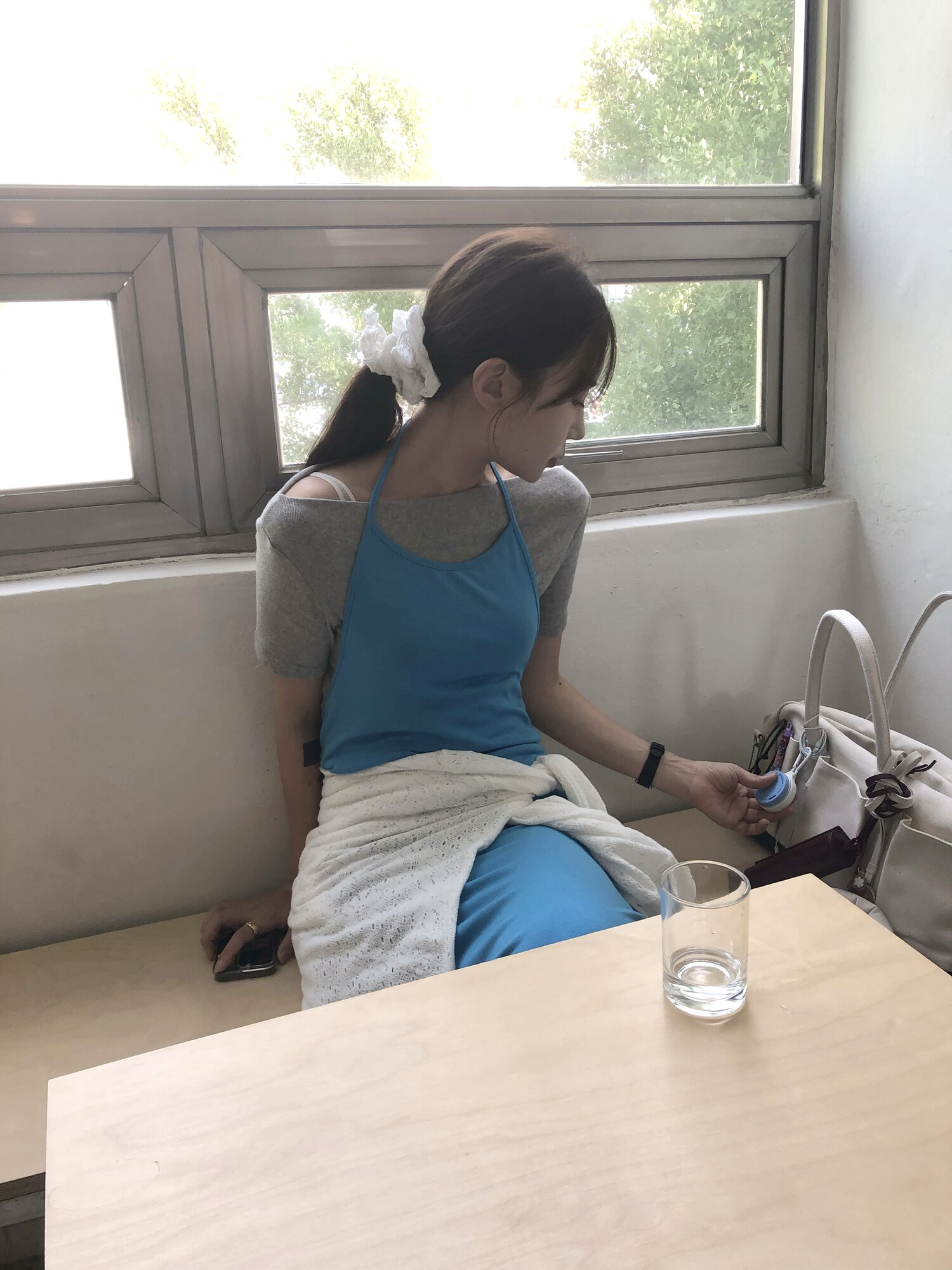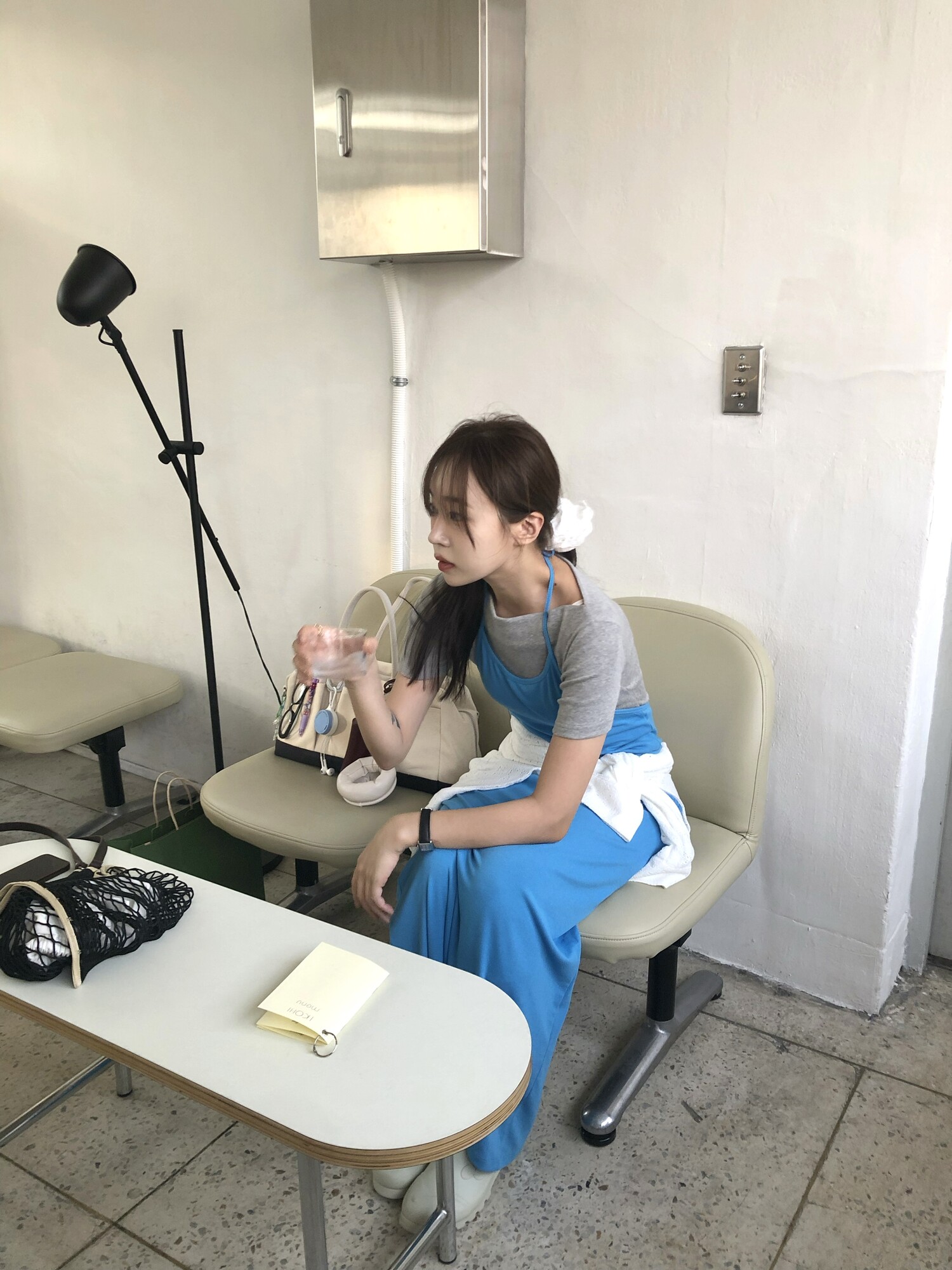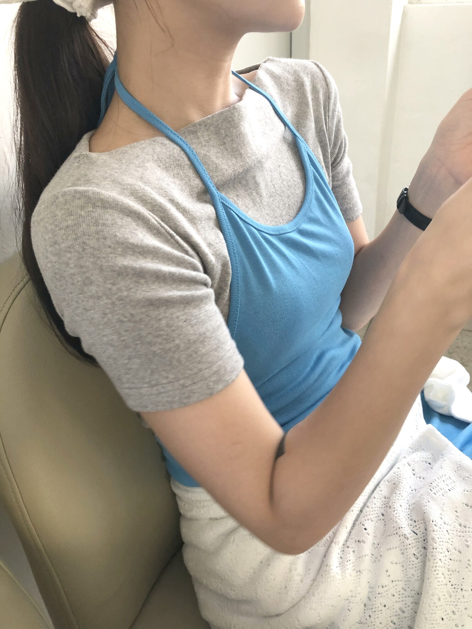 어깨홀터넥/가슴단면35/힙40/밑단53/총장121