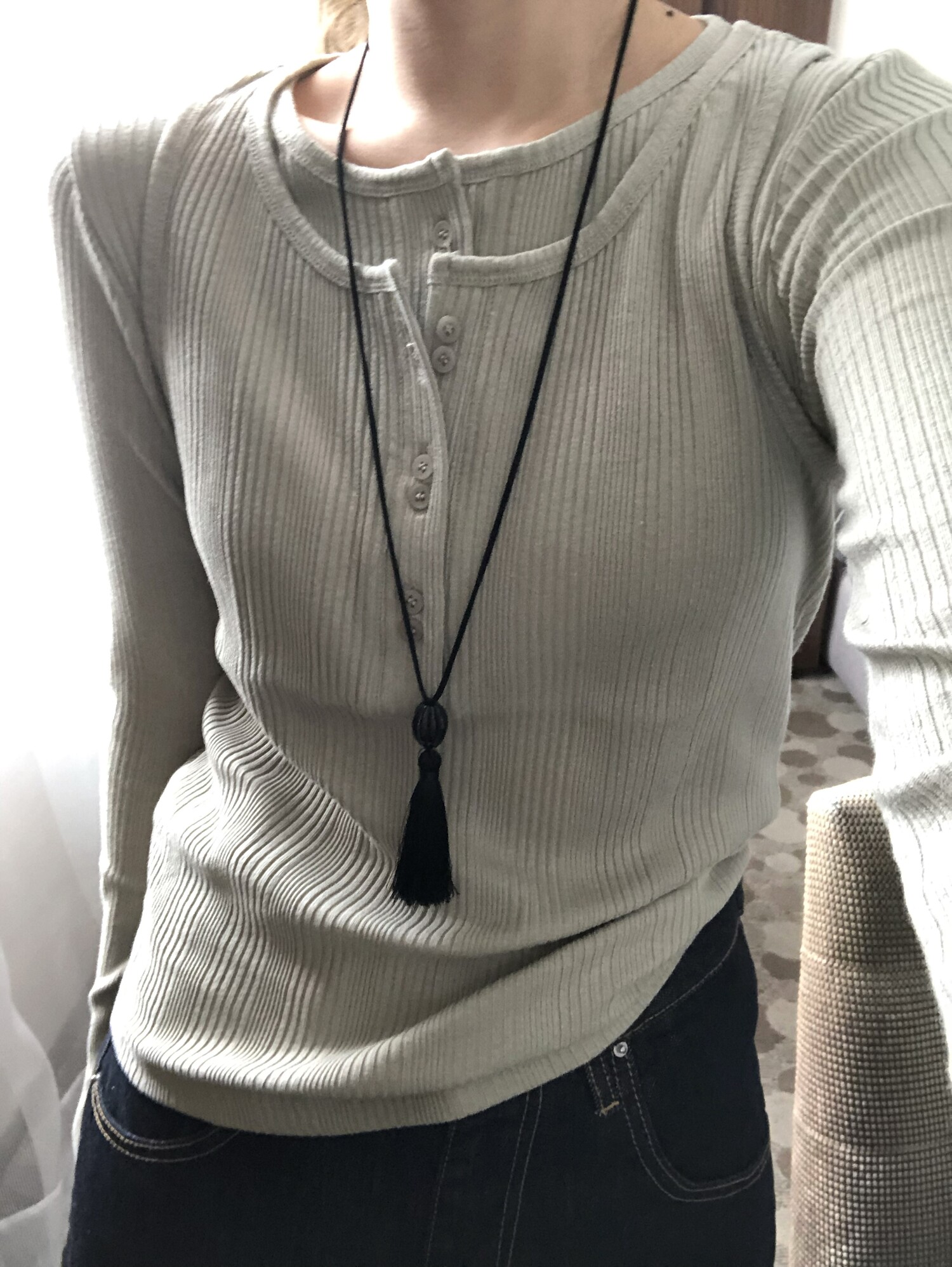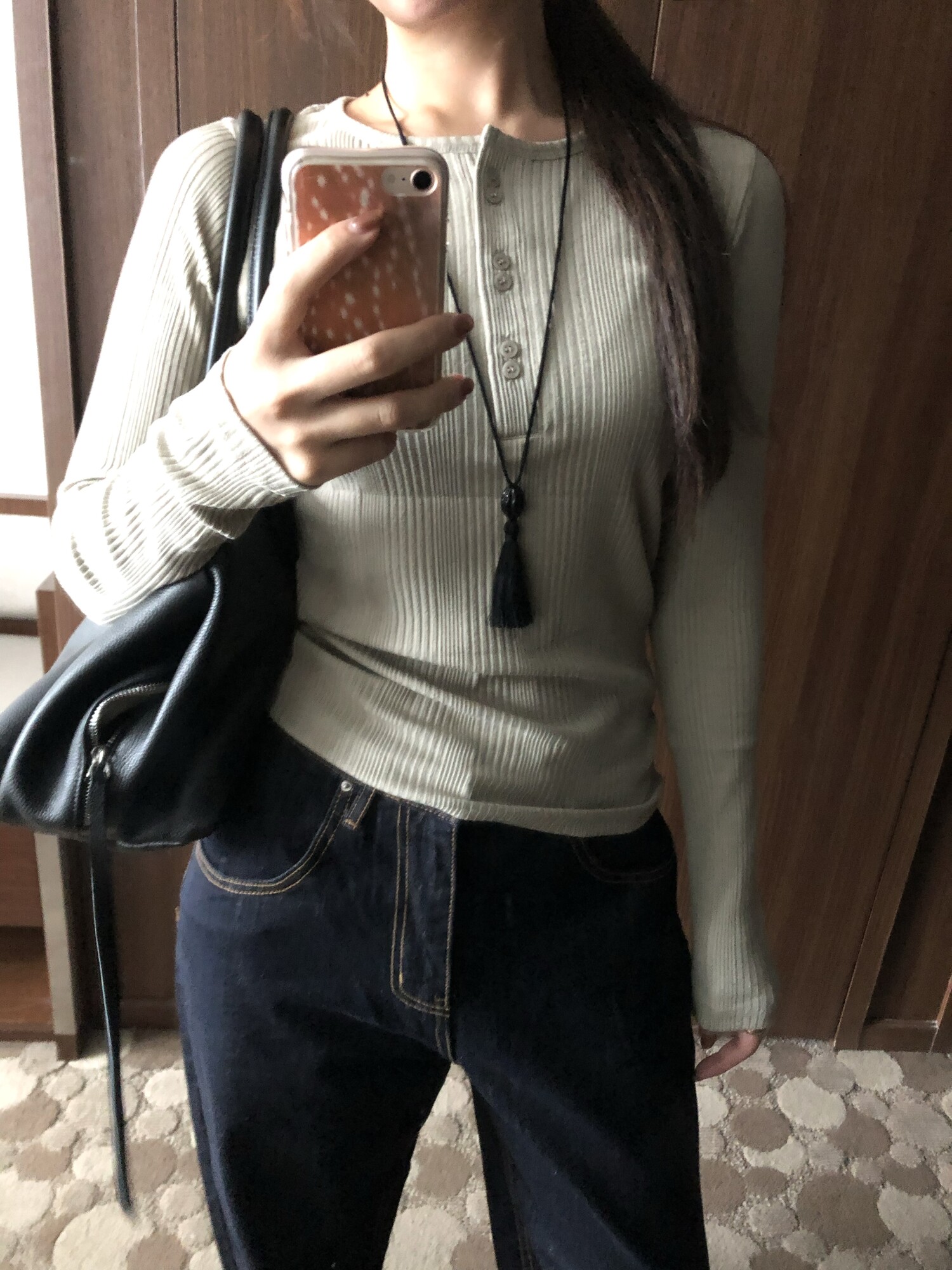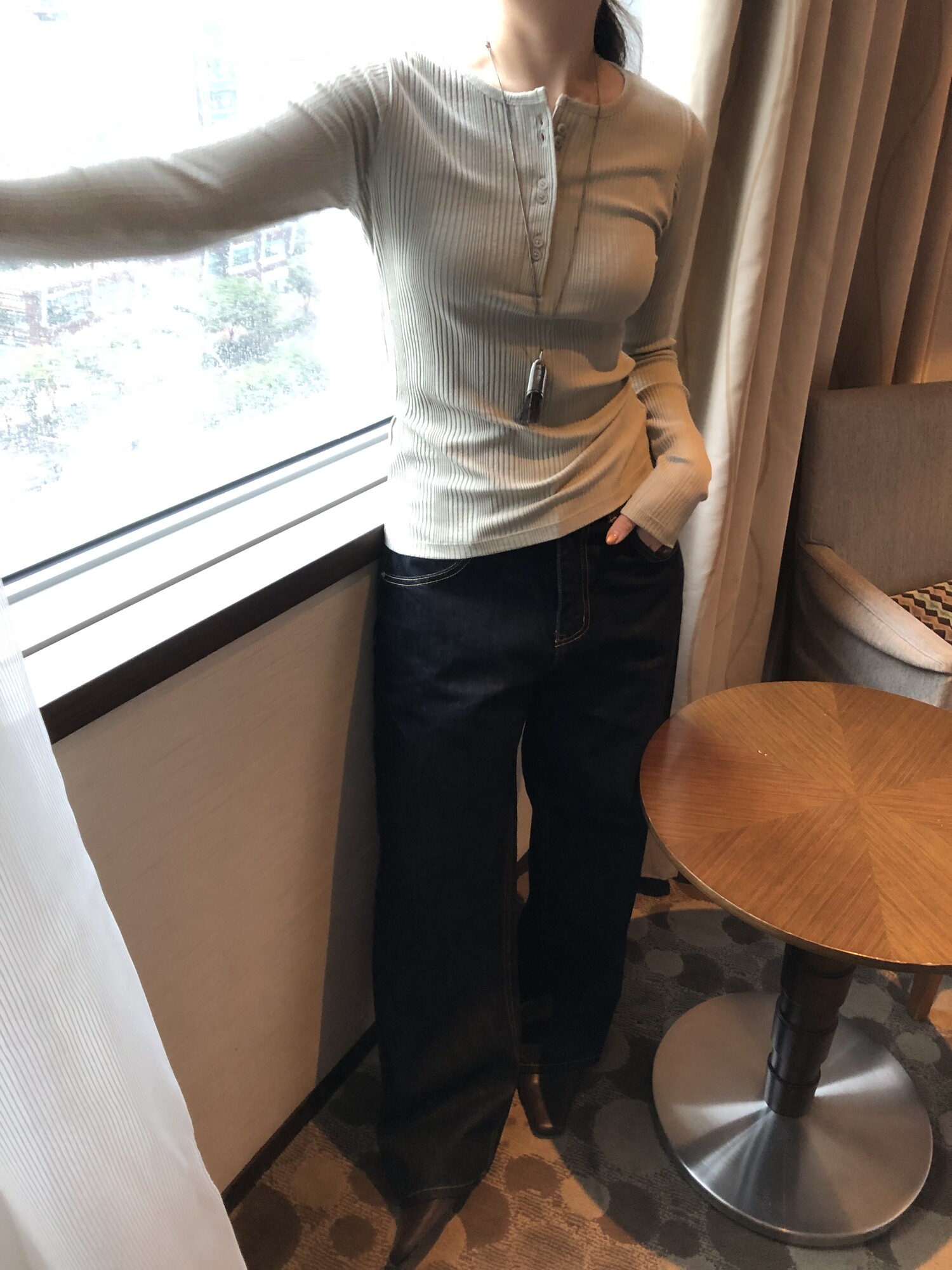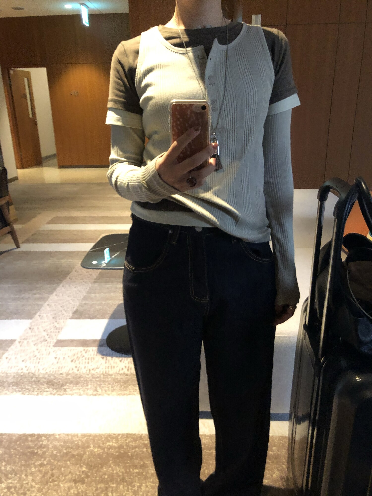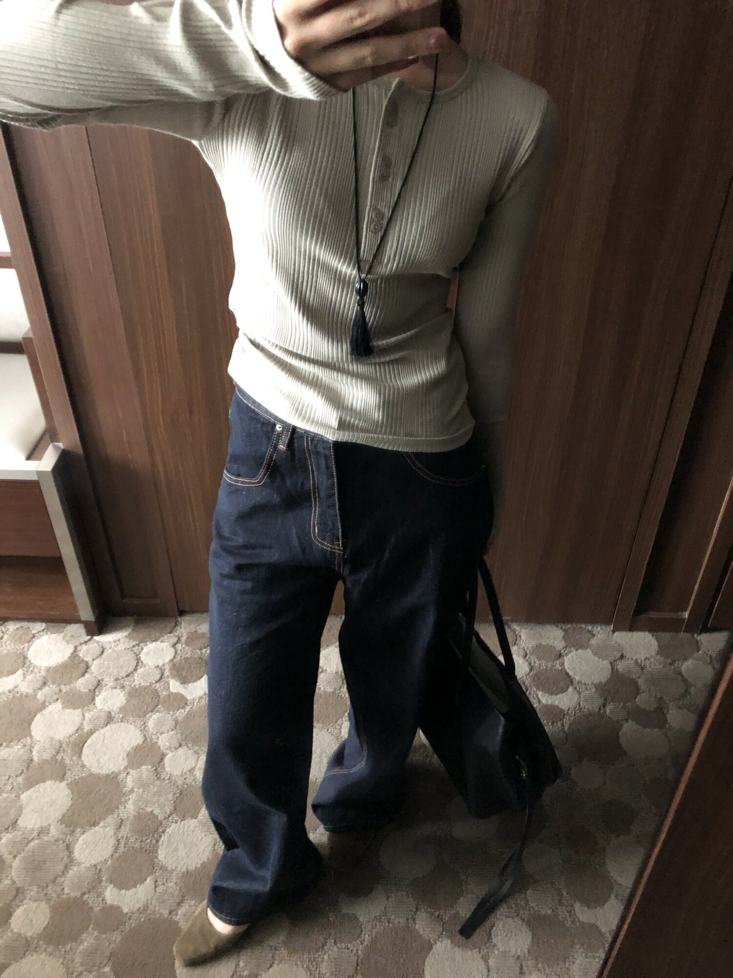 Button pleats sleeveless(beige)+Layered peach t(khaki) 셋업으로 착용