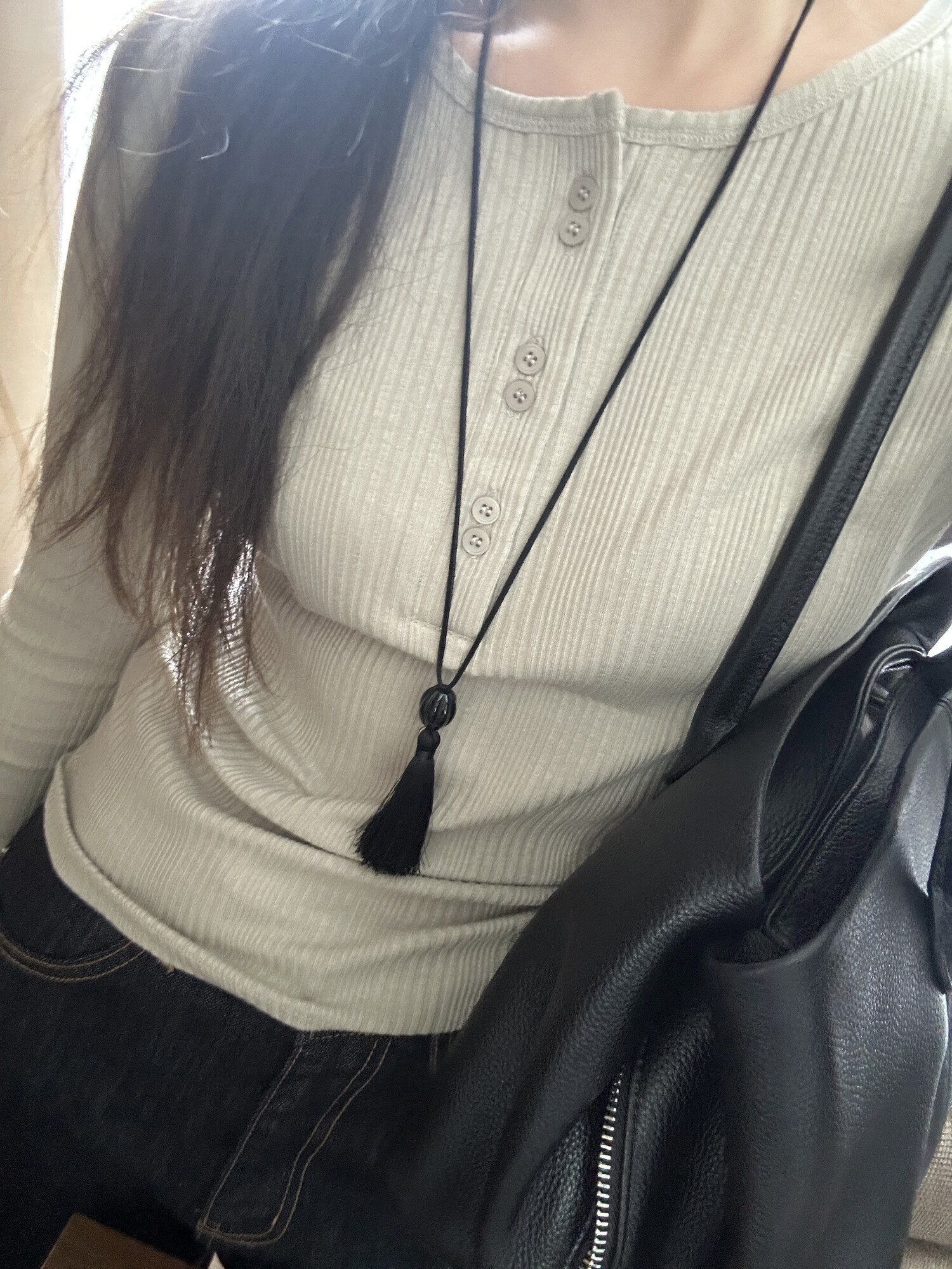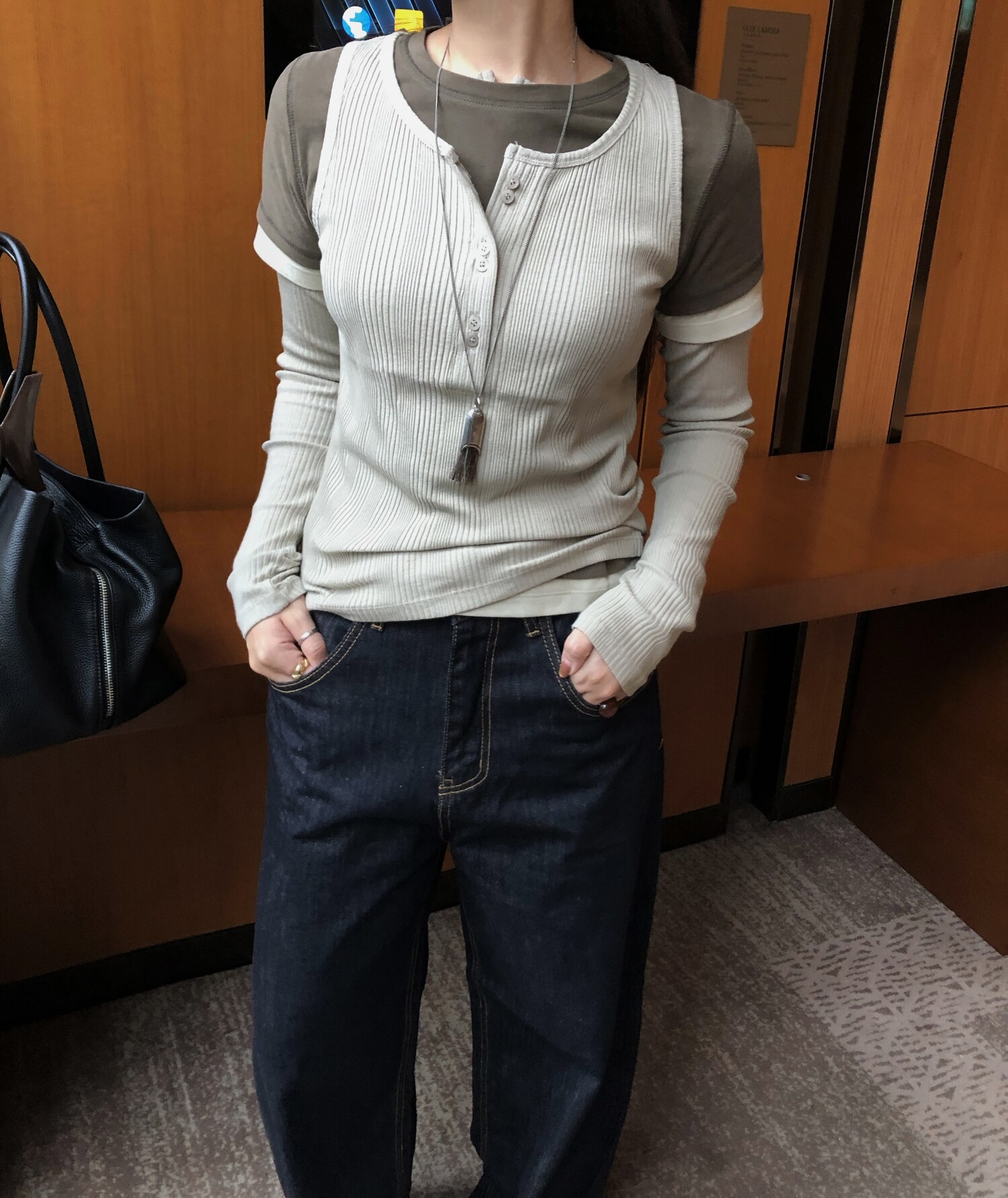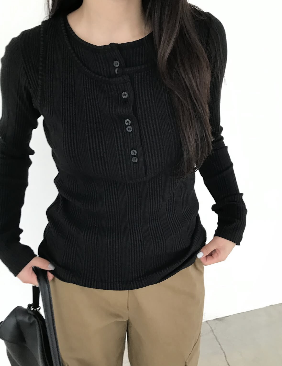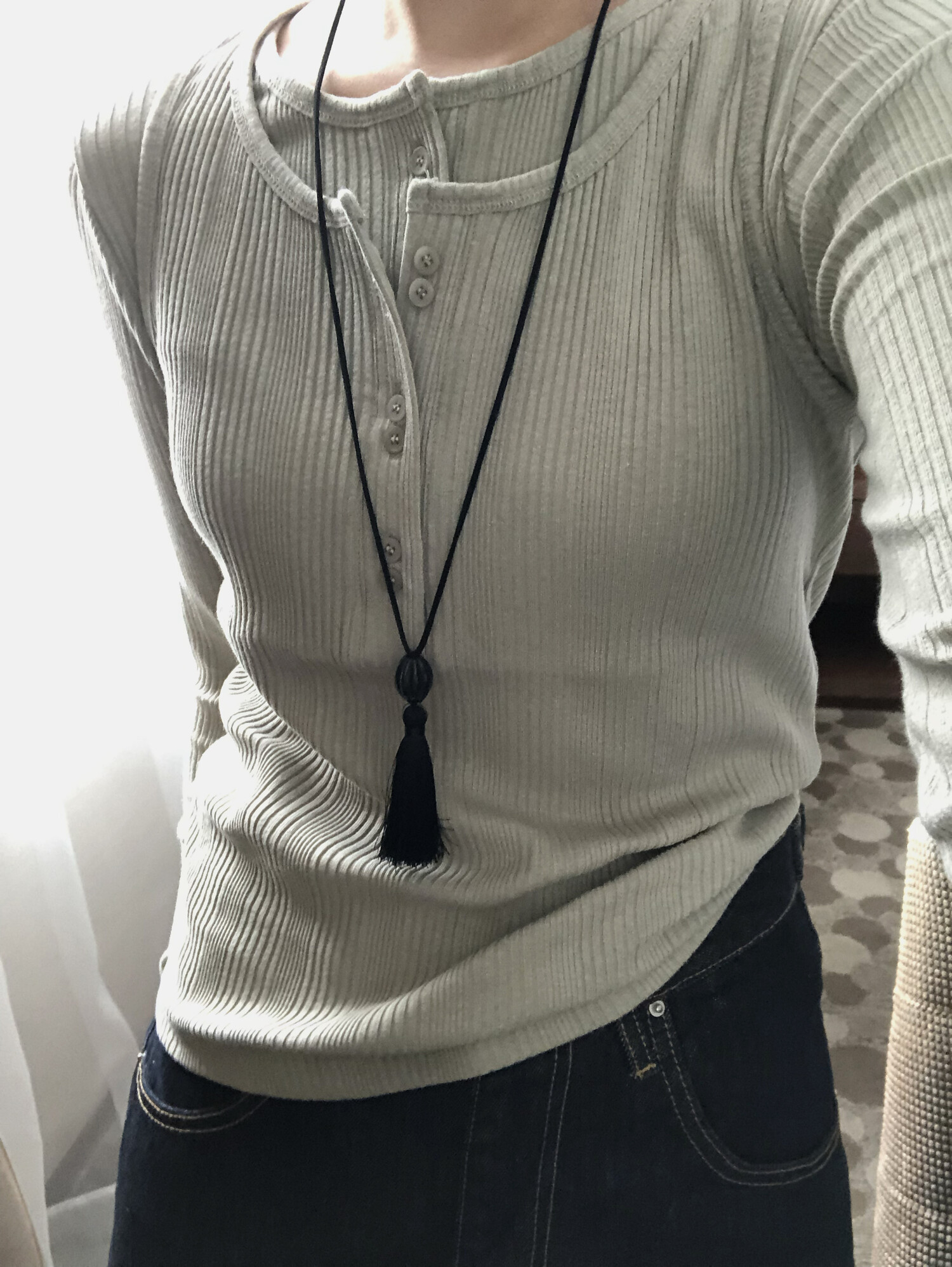 Button pleats sleeveless(beige)+Layered peach t(khaki) 셋업으로 착용