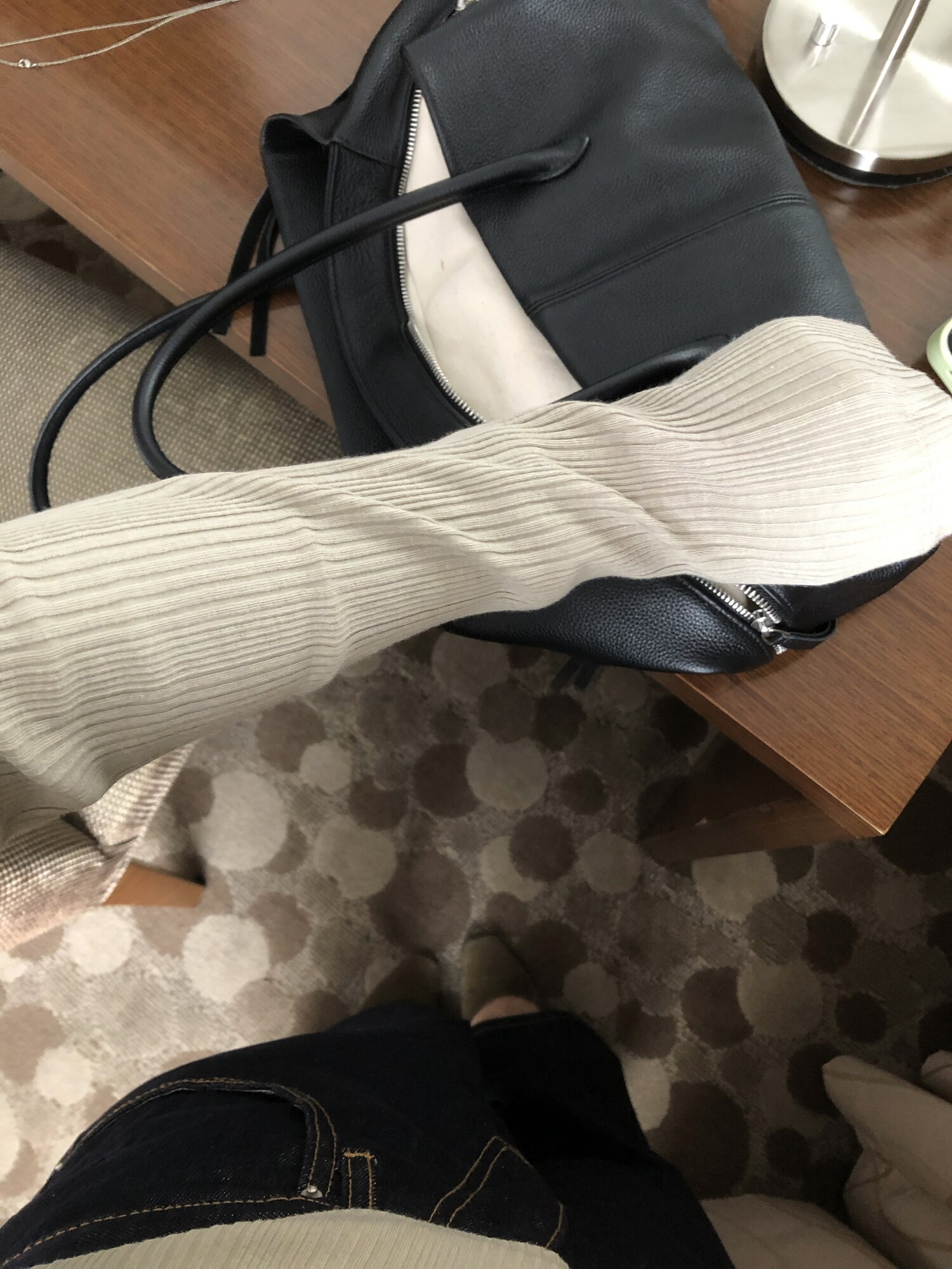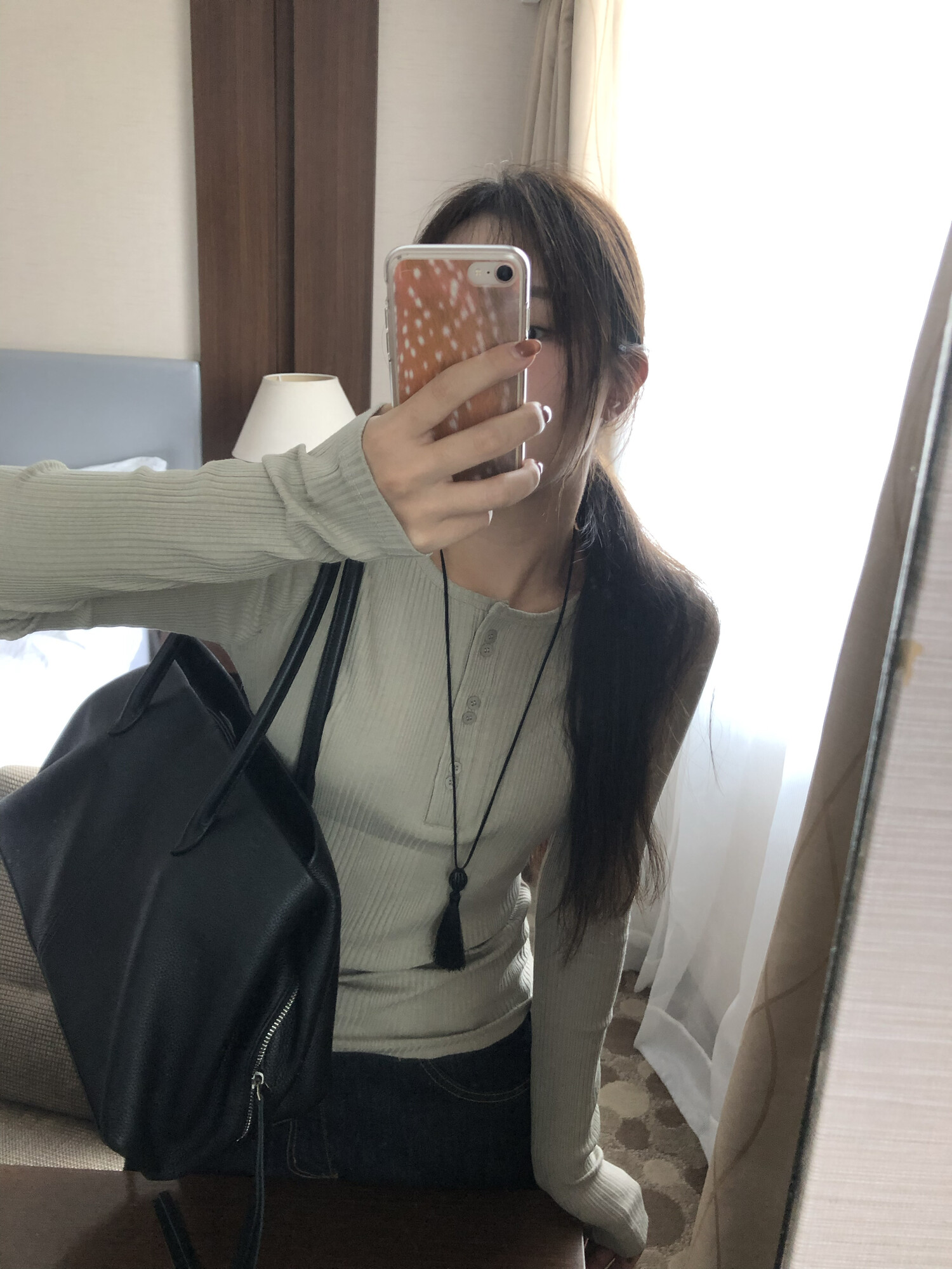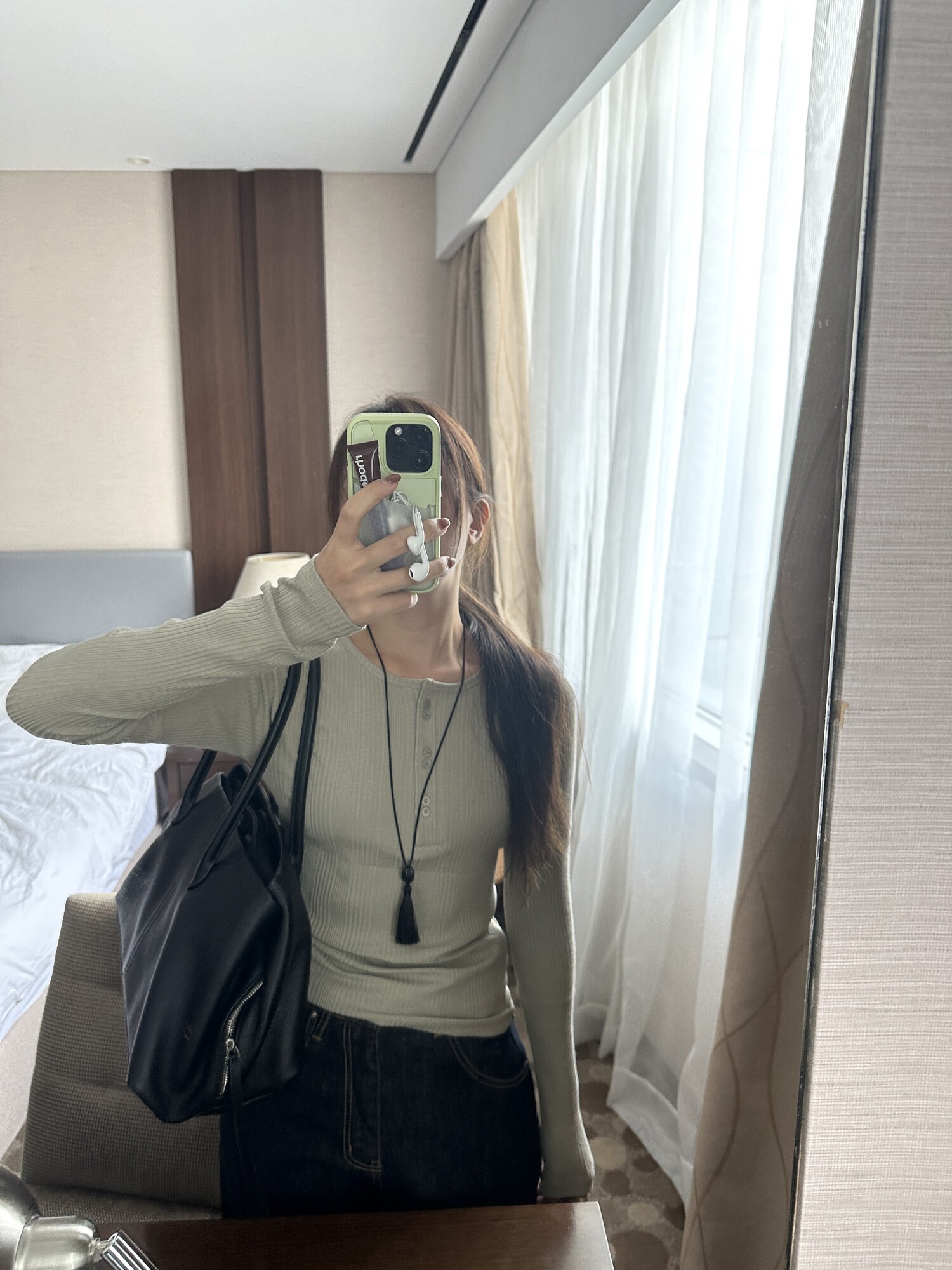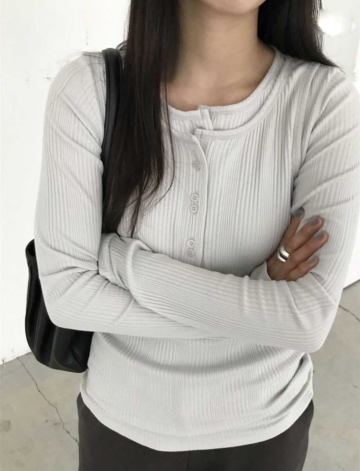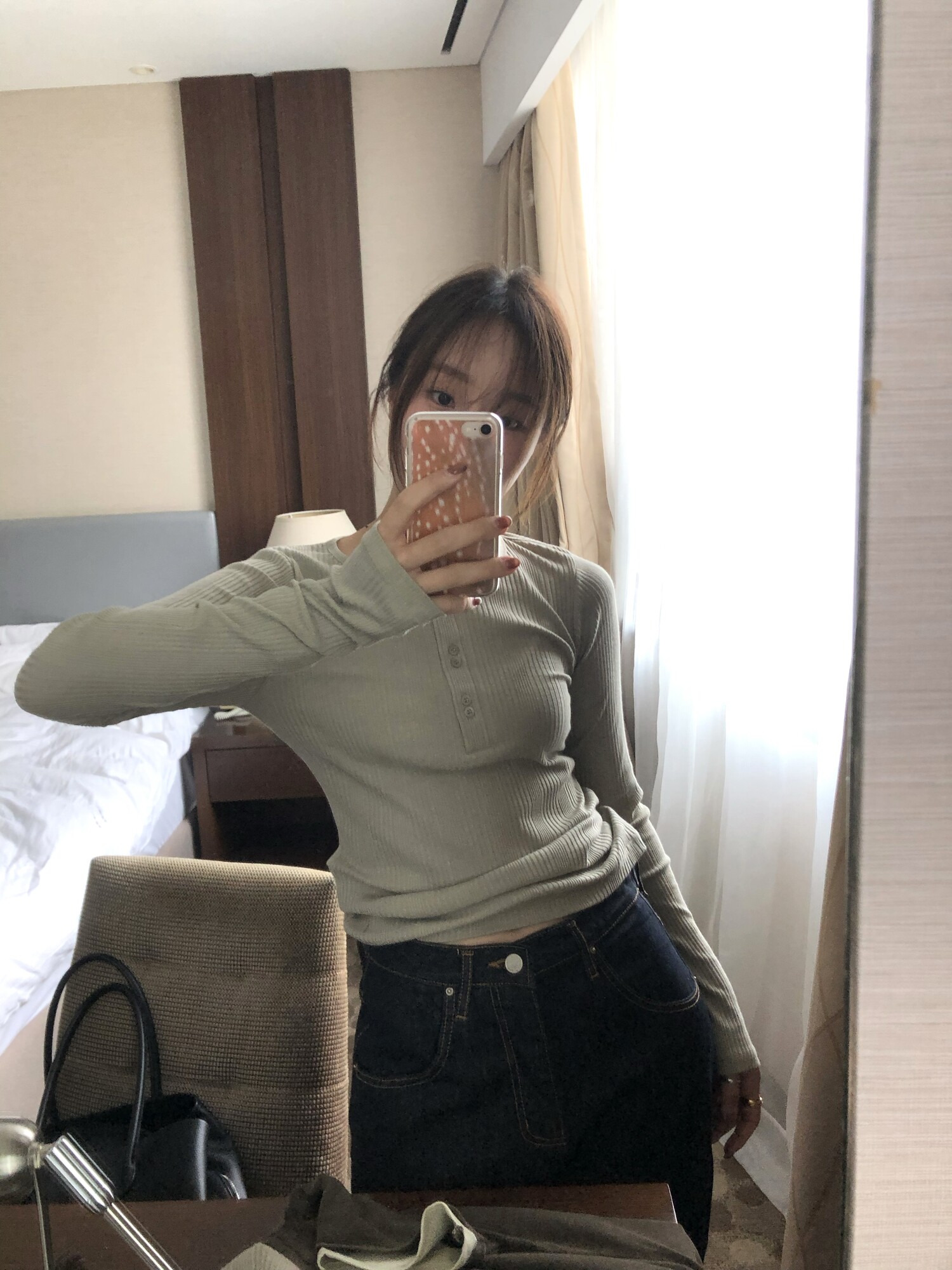 Button pleats sleeveless(beige)+Layered peach t(khaki) 셋업으로 착용