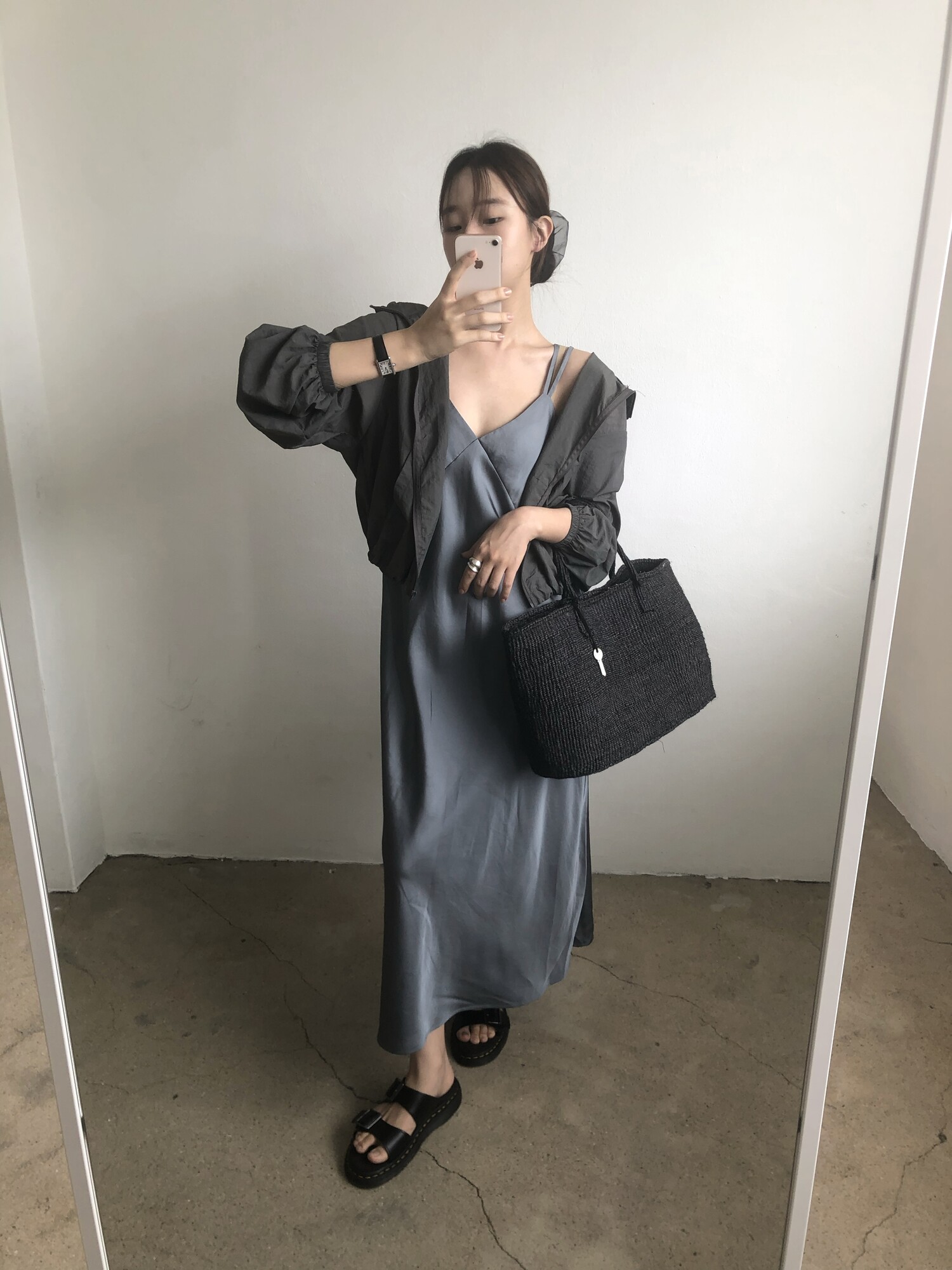 촬영기기 특성상 원피스 파란기가 많이 돌게 나왔으나 컬러감이 오묘하고 이쁜 green(청록) 입니다.