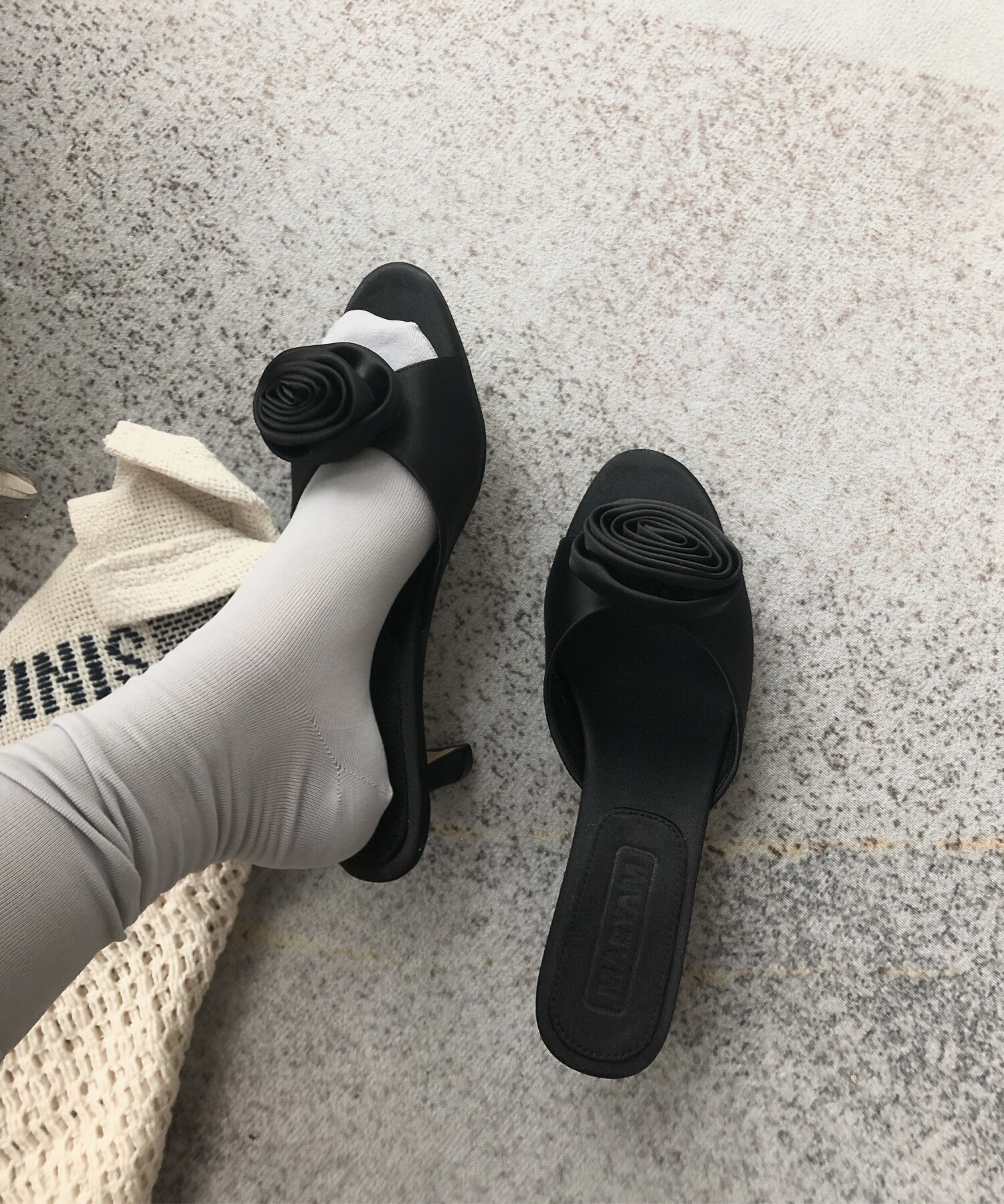 Her black rose mule