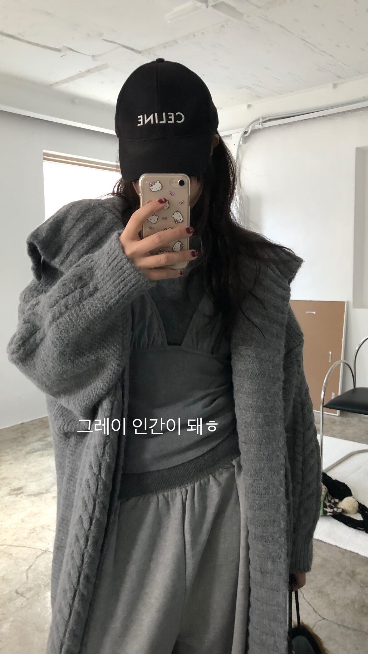 gray착용-미디엄그레이로 베이직한 컬러감이라 누구에게나 웜/쿨 관계없이 잘 어울리며 무난하면서도 고급스러운 무드로 연출해줍니다.